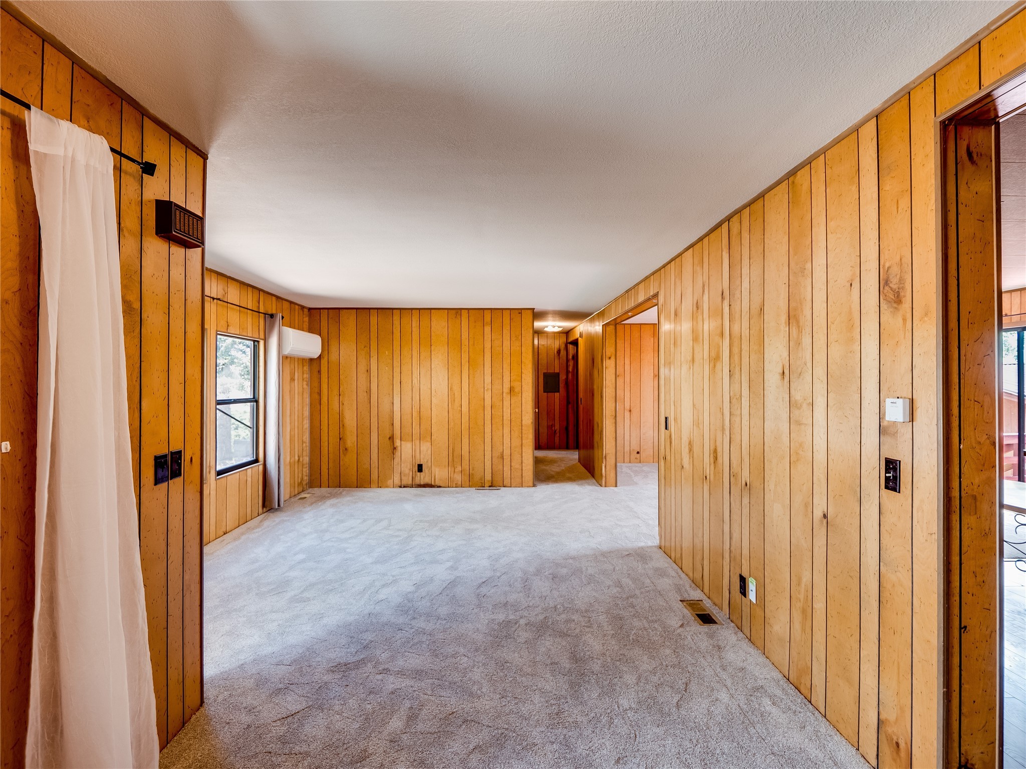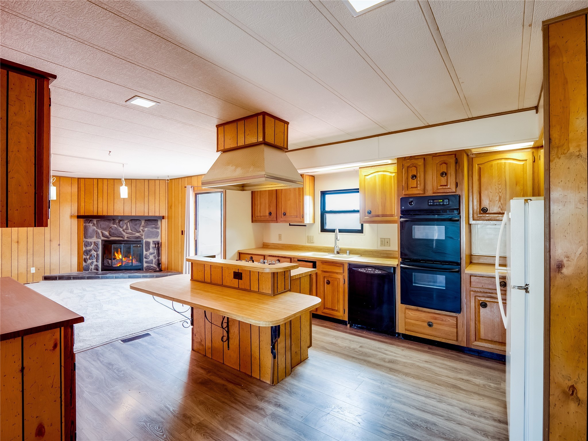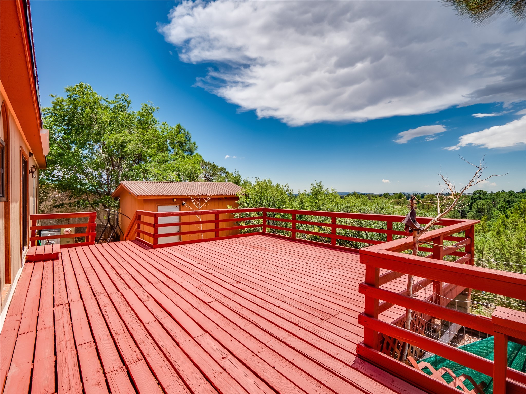 Charming Single-Story Home on the Canyon with Mountain Views in Tsikumu Village! This home offers incredible mountain views and a peaceful setting just moments from schools, trails, and stables. With a low-maintenance front yard shaded by mature trees and shrubs, this property offers curb appeal without the work. A step-up porch welcomes you into the home, where you'll find a spacious living and dining room featuring warm wood-paneled walls and newly installed lush carpet that runs throughout the interior. Adjacent to the main living area is a cozy family room with a stunning stone wood-burning fireplace, perfect for chilly nights, and sliding glass doors that lead to the expansive backyard deck. The nearby kitchen offers both charm and function with laminate wood flooring, wood cabinets with black hardware, generous counter space, and a center island with bar seating and a gas cooktop with overhead hood--ideal for both casual meals and entertaining. Off the kitchen is a laundry room complete with a utility sink, storage closets, and direct access to the back deck for convenience. The large primary en-suite bedroom features a wall of closets with elegant glass sliding doors and plenty of natural light. The attached bathroom includes a double sink vanity, a dedicated makeup vanity, a walk-in shower, and a deep soaking tub--a perfect retreat for relaxation. Down the hallway are two nice-sized guest bedrooms and a full guest bathroom with a single sink vanity and a shower/tub combo with glass door enclosures. Enjoy modern comfort with central A/C for those warm summer days. Step outside to the oversized deck that offers panoramic mountain and canyon views--an entertainer's dream and a stargazer's paradise. The backyard also includes a large storage shed for your tools and gear, and just down the street is a community playground. If you're looking for a unique home with gorgeous views, peaceful surroundings, and easy access to outdoor adventures, this gem is a must-see!