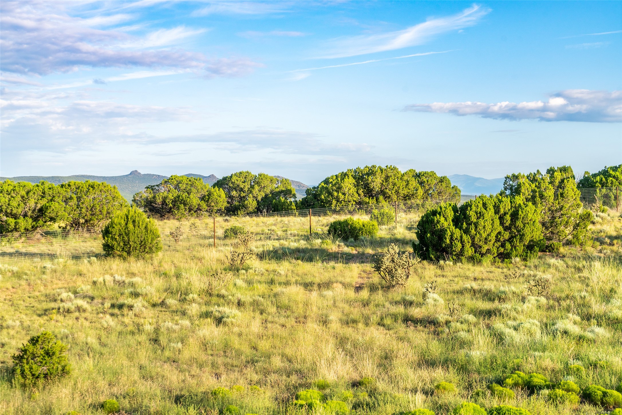 120 acres of gently rolling grasslands are green after the summer rains with 360 views of all the mountain ranges in Santa Fe County. Site is served by county water, electricity, natural gas, and septic. Site elevation ranges from 6,360 ft 6,452 ft. Improvements include an 2,496sf 4 bed 2 bath mobile home from 2021 that has never been lived in, automatic rolling security gate w keypad, 2,000 ft asphalt driveway with culverts, and the north part of the lot completely enclosed by a 6ft metal wire fence. Located in the rural "Northwest quadrant" near Las Campanas and City/County Recreational Facilities. The site is bordered by some of the largest lots in the area ranging from 300 to 900 acres. This part of the county borders on large government tracts to the west including a 2,600 ac. parcel of State land and US Forest Service parcels at 2,600 ac, 13,000 ac and 80,000 ac. Nearby developed areas include luxury residential subdivisions, NM Office of Archeological Studies, NM Game and Fish, Santa Fe Municipal Recreational Sports Complex with soccer and baseball fields and the Marty Sanchez Links golf course. Santa Fe County Mixed Use Zoning makes this site suitable for development of one or more luxury estates, residential subdivision, institutional facilities, equestrian, educational/religious use and more.