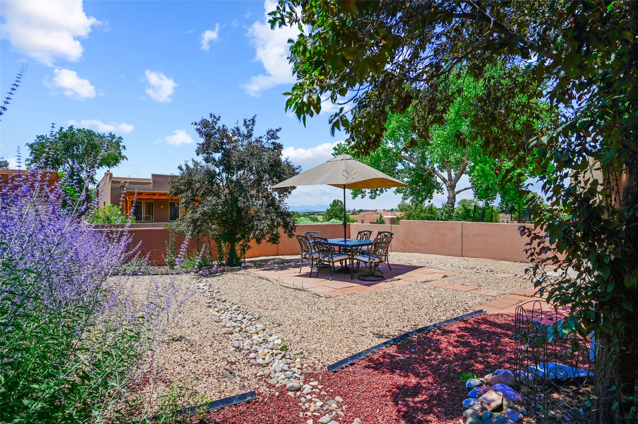 Nestled in the sought-after Windmill Ridge neighborhood of Rancho Viejo, this meticulously maintained 3-BR, 2 BA home offers 1,648 sqft of living space on a partial view lot. Adjacent to green space, walking/riding trails, and nearby parks, the location is ideal for nature lovers and outdoor enthusiasts.Recent updates add modern comfort and style, including stunning wood-look tile flooring in the bedrooms, granite countertops in the kitchen, and all-new energy-efficient appliances. Additional upgrades include a brand new water heater, tankless furnace, water softener, a new foam roof with warranty, new garage door, new windows/blinds, Refrigerated AC w/ Nest Thermostats, California Closet in Master BR, and Simplisafe Security System. Whether you're looking for a turn-key home or a serene retreat within 15 minutes to all of Santa Fe's amenities, this property is a perfect blend of quality, location, and lifestyle in Rancho Viejo.
