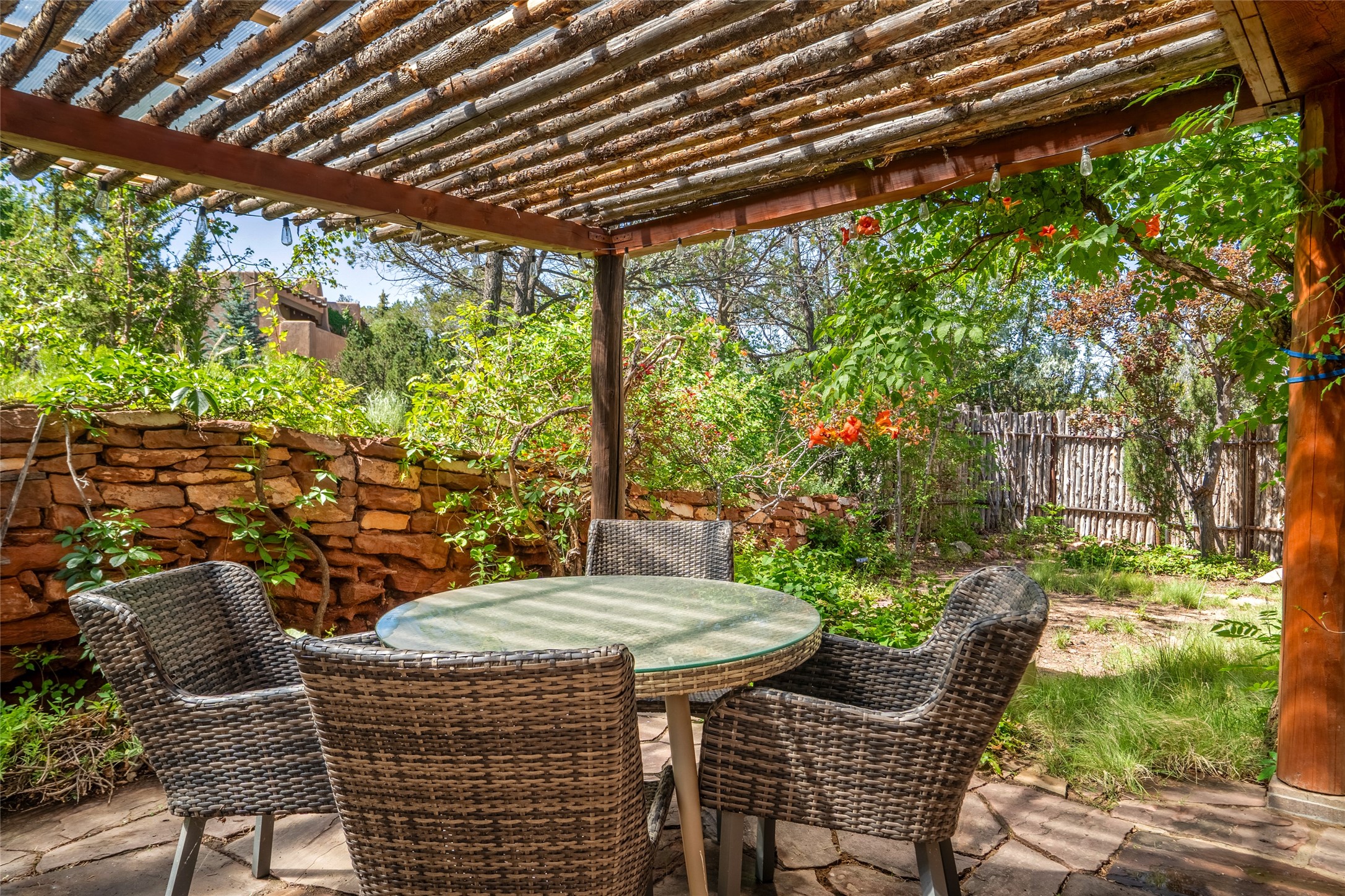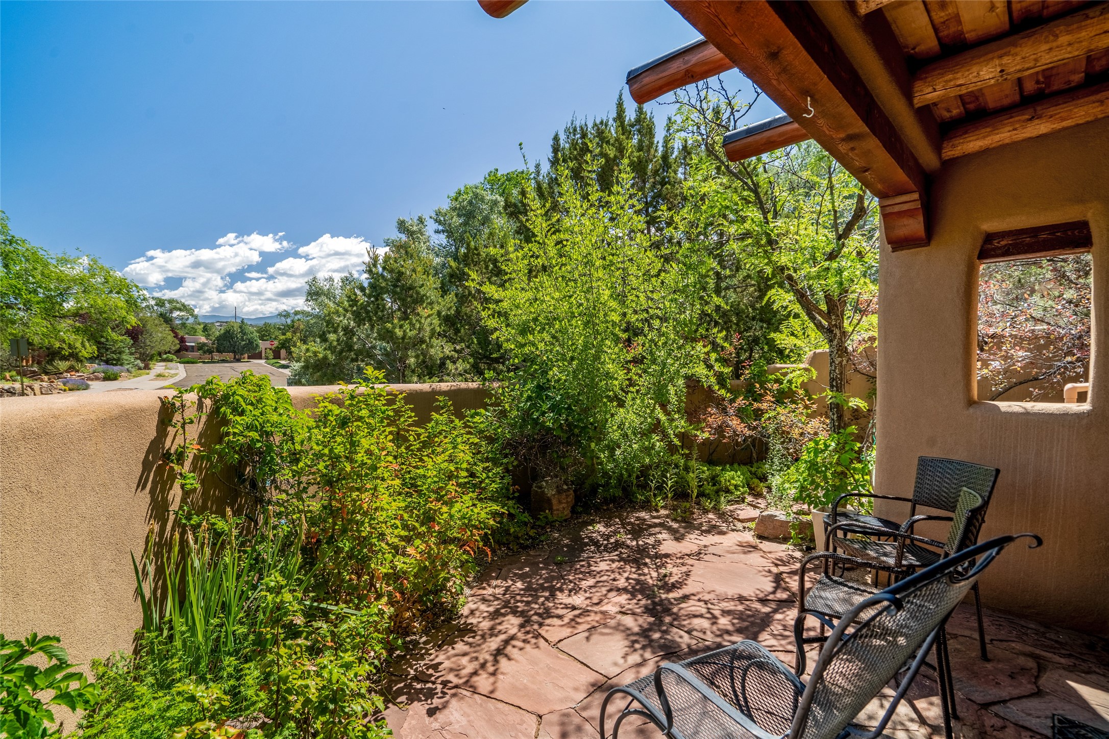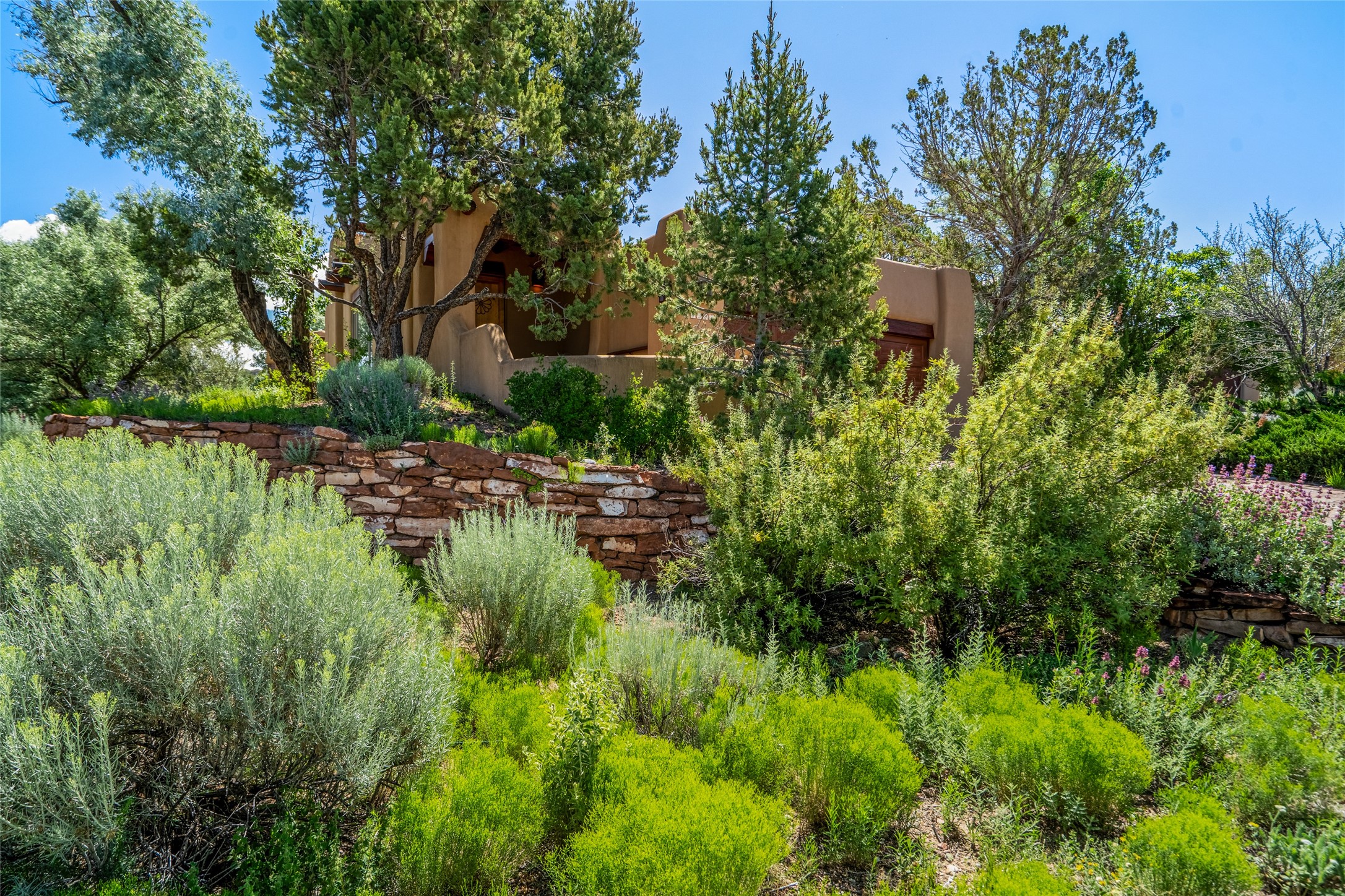 Celebrating the essence of Santa Fe, this lovely Pueblo Revival residence sits elevated on a fabulous corner lot in the foothills of the Sangre de Cristo mountain. The open floor plan, the distribution of natural light, high ceilings and vigas, with a nicely designed kitchen and patio off the kitchen perfect for entertaining, this property has much to offer the discriminating Santa Fe resident. The furniture and rugs were sourced with great care and the landscaping was professionally designed and maintained. A move-in ready home in Santa Fe
