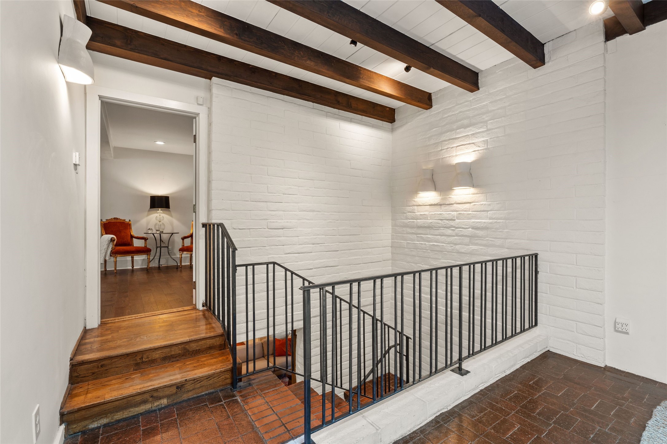 Classic Santa Fe 6 bedroom 5-bath estate in a country-like setting in a coveted location close to Museum Hill, the historic Plaza and Canyon Road. Sited on 1 acre with towering trees, this recently renovated property which includes an attached casita offers the rich combination of old-world elegance blended with iconic Southwestern architecture with brick flooring, beamed ceilings, and carefully-crafted, sculpted corbels. The graceful living room with beamed, brick floors and built-in bookshelves is enhanced by the warmth of a kiva fireplace. For friendly gatherings or formal occasions, the dining room with wall-to-wall windows and access to a back portal and peaceful yard will charm all. Culinary enthusiasts will appreciate the renovated French country kitchen with a breakfast area, large island, granite countertops, Electrolux 6-burner range, and a Subzero refrigerator. In addition, there is a generous butler's pantry with a sink and ice maker connected to the kitchen. The spacious primary suite showcases custom wall-to-wall bookshelves, an attached office, multiple dressing areas, closets and an incredible bath. On the lower level, you'll discover a den/media room with a wood burning fireplace, 2 bedrooms with shared bath and a 450 sq. ft. casita with mini kitchenette. Multi portals and outdoor areas provide opportunities for summer soirees and intimate al fresco meals. 2-car attached garage. An exceptional opportunity to own a home in this special area of town.