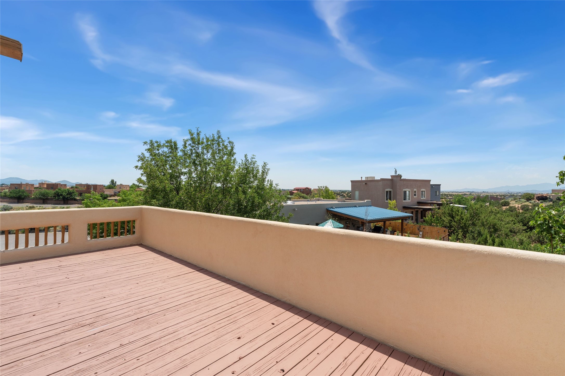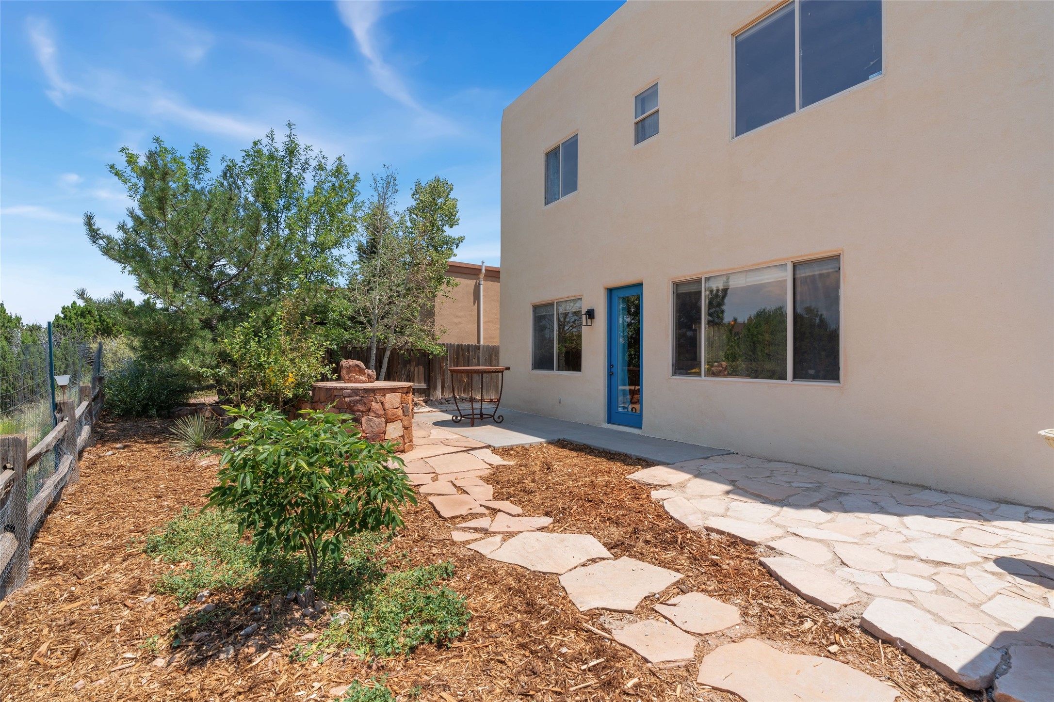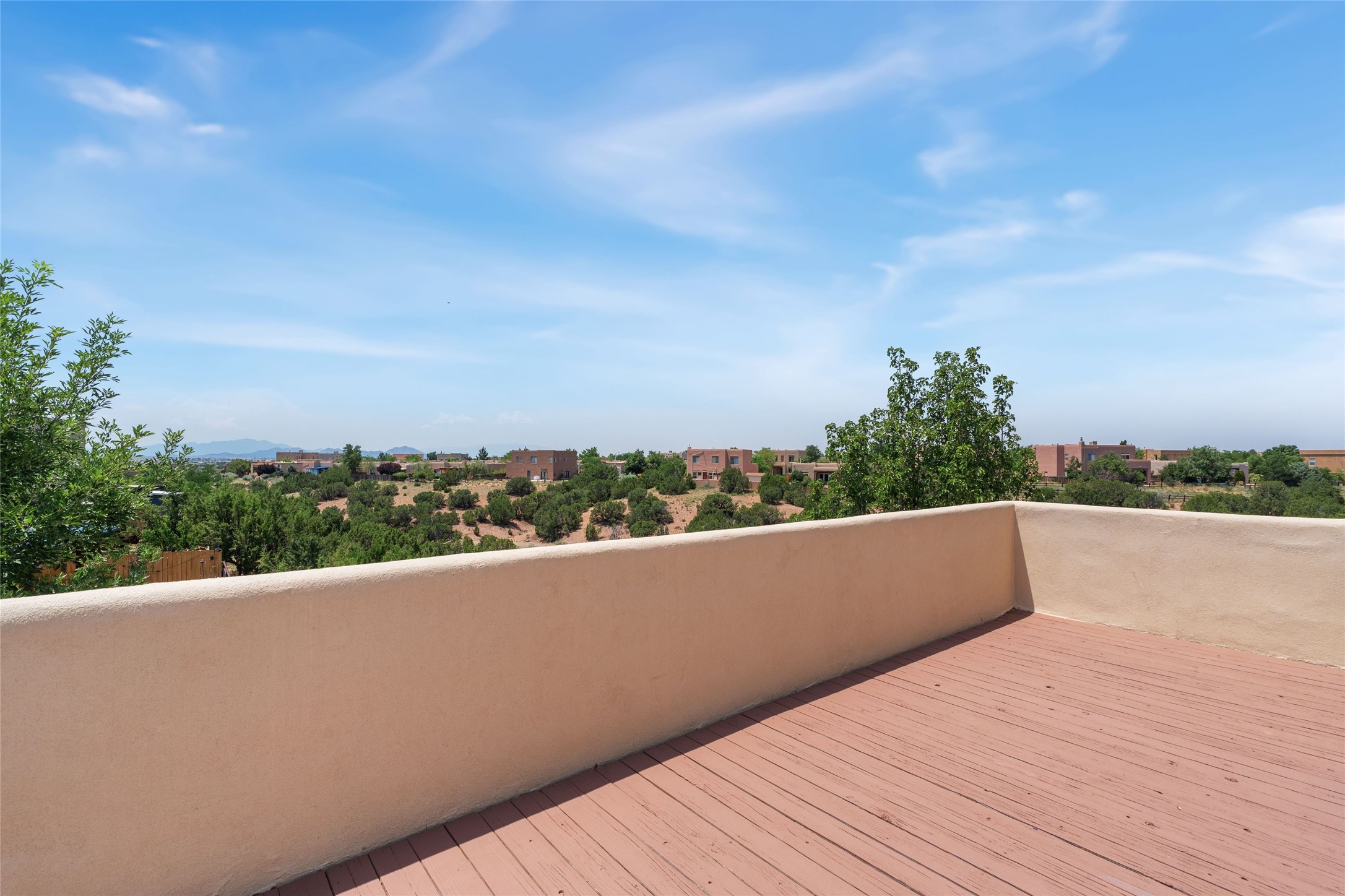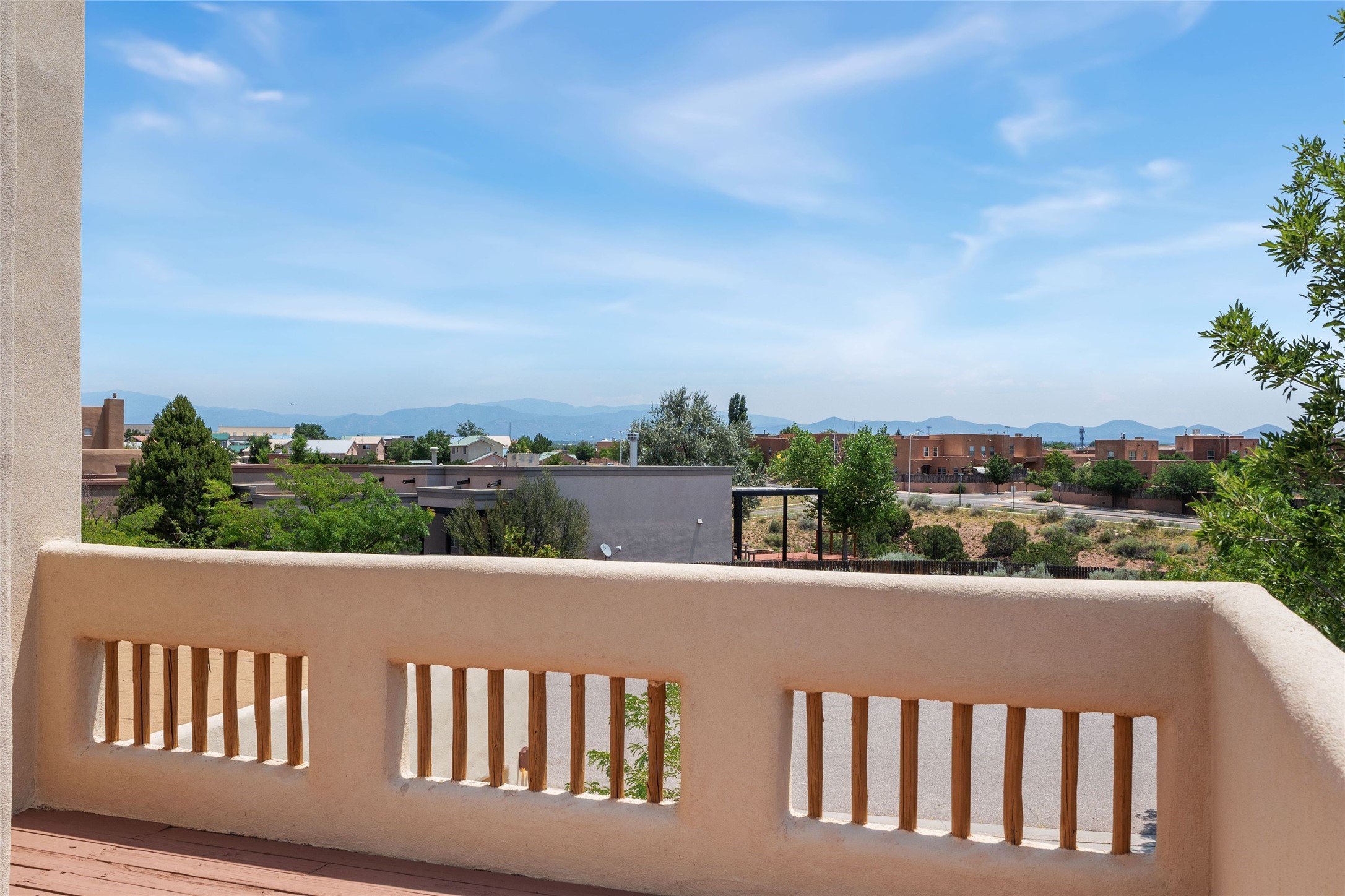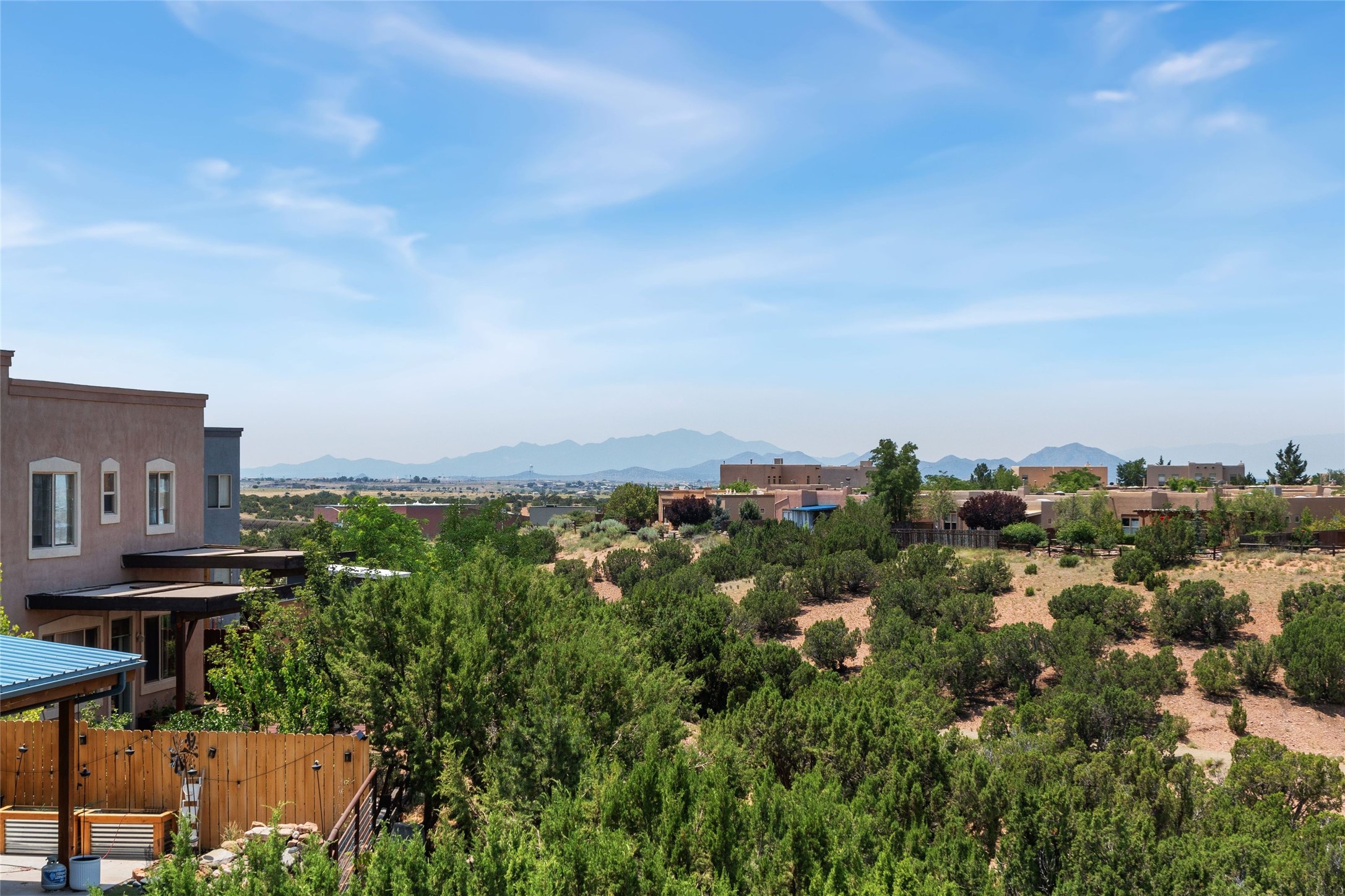 This well-maintained 4-bedroom, 3-bath home on Santa Fe's southside is a rare find--nestled at the end of a quiet cul-de-sac and backing to open space with walking trails and breathtaking views of the Sandia, Sangre de Cristo, Jemez, and East Mountains. Enjoy sweeping 270-degree vistas and the feeling of space and privacy. Step inside to discover a thoughtfully cared-for home with a warm and inviting feel. The living room features a plastered Kiva fireplace, traditional vigas, and opens to both the dining room and kitchen--creating a perfect flow for entertaining. Large kitchen space with stainless steel appliances, center island and ample storage. The kitchen also includes a cozy breakfast nook and updated touches like Baldwin hardware, tongue-and-groove ceilings, and mini splits. Downstairs offers a flexible 4th bedroom or office just off the living room, along with a dedicated laundry room with hardwood cabinetry, mudroom and an oversized washer. The spacious primary suite upstairs includes a large private deck to take in the views, a walk-in closet, and a generous en-suite bath with separate tub and shower. Enjoy Santa Fe's outdoor lifestyle with a fenced backyard, built-in stone counter with BBQ, flagstone patio, walking path, and fresh mulch. Great curb appeal with the beautifully landscaped front yard and flower bed. Recent improvements include newer stucco and water heater. This home checks all the boxes--schedule your showing today!