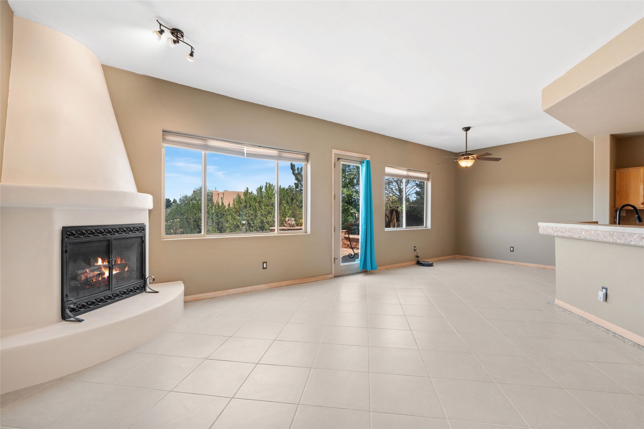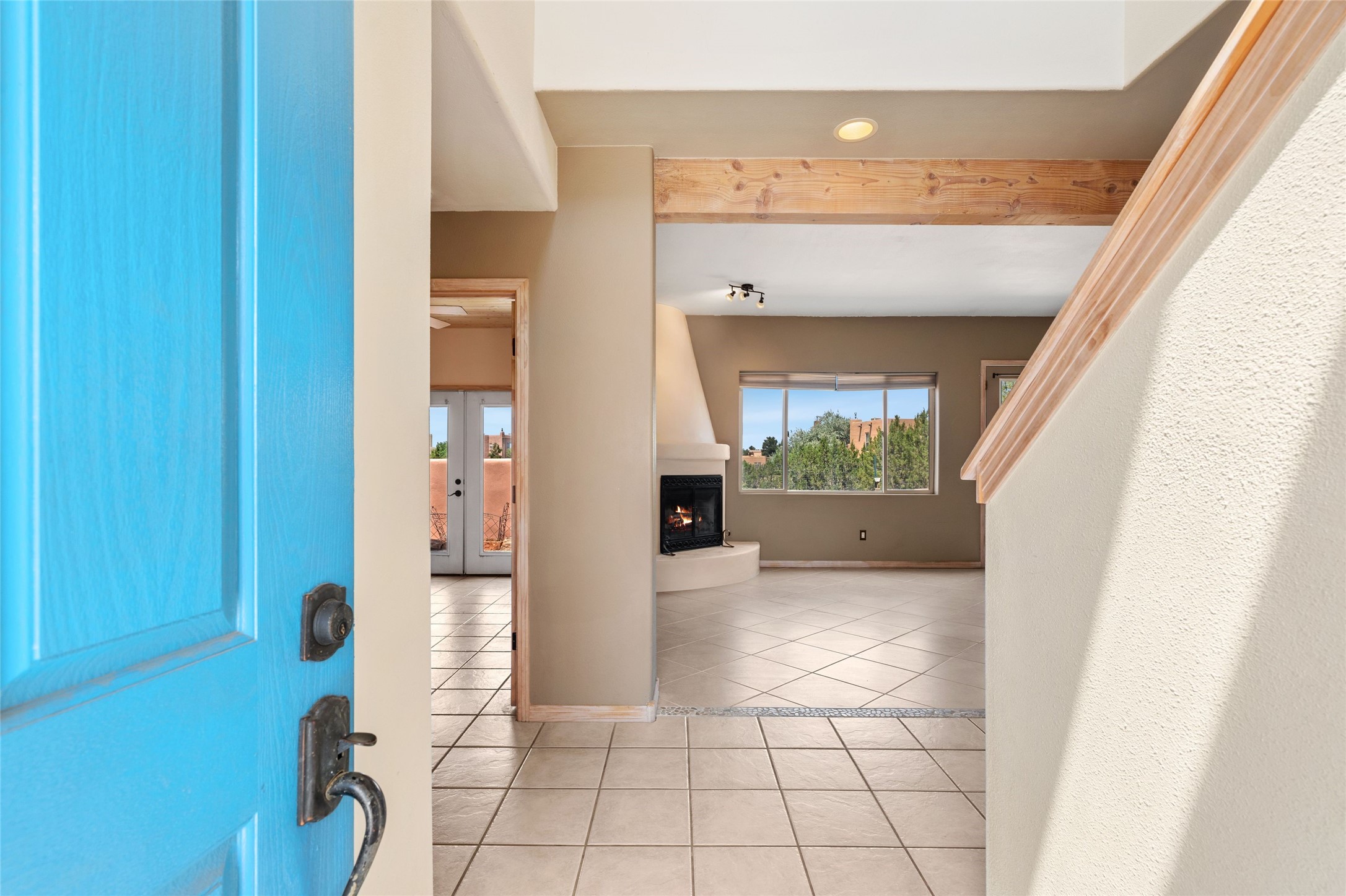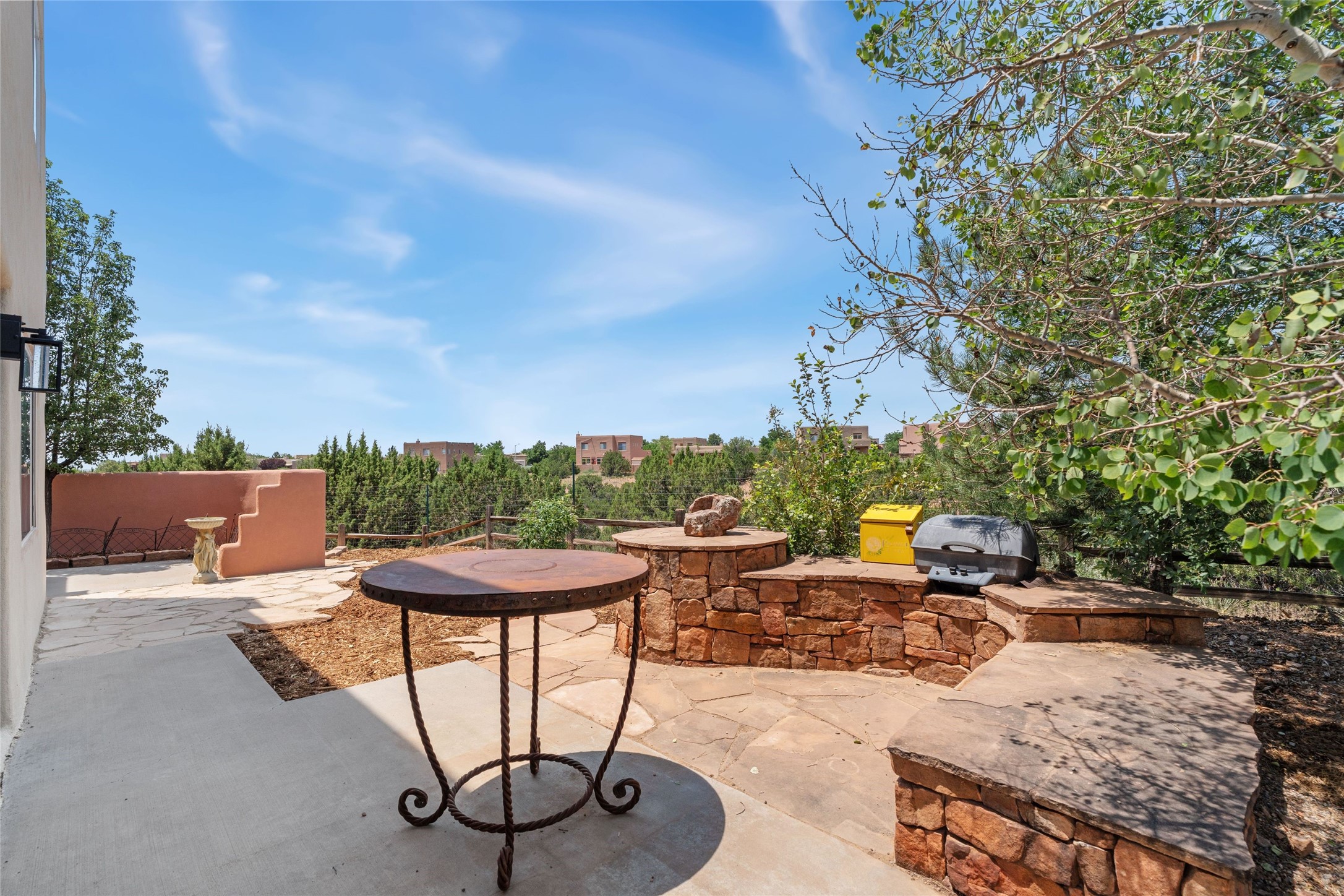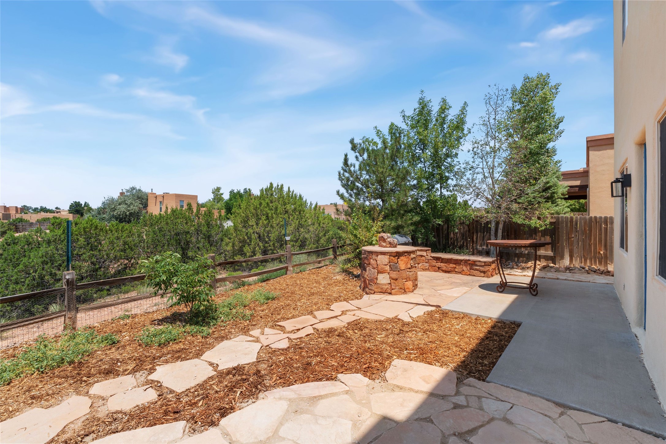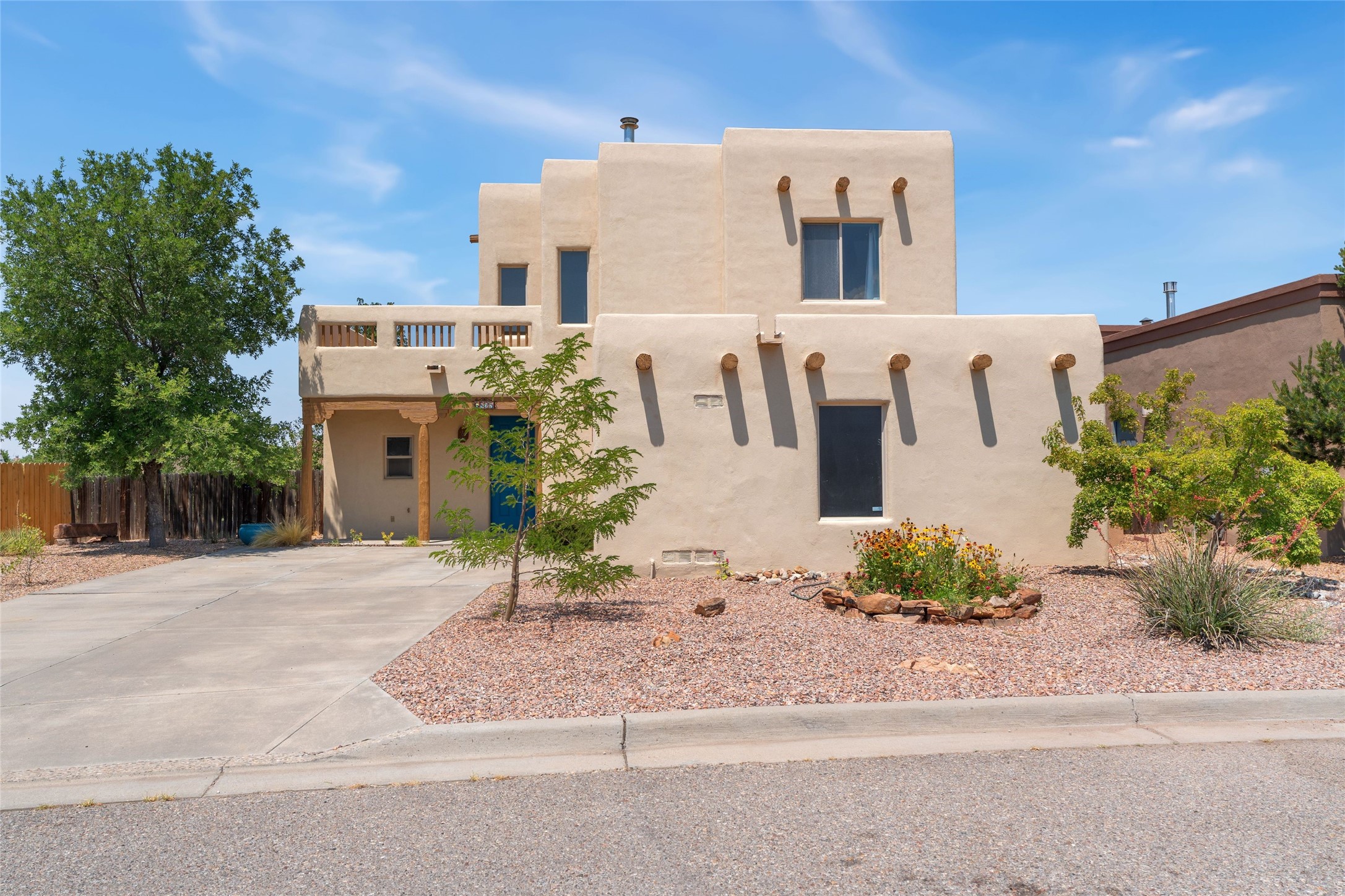 This well-maintained 4-bedroom, 3-bath home on Santa Fe's southside is a rare find--nestled at the end of a quiet cul-de-sac and backing to open space with walking trails and breathtaking views of the Sandia, Sangre de Cristo, Jemez, and East Mountains. Enjoy sweeping 270-degree vistas and the feeling of space and privacy. Step inside to discover a thoughtfully cared-for home with a warm and inviting feel. The living room features a plastered Kiva fireplace, traditional vigas, and opens to both the dining room and kitchen--creating a perfect flow for entertaining. Large kitchen space with stainless steel appliances, center island and ample storage. The kitchen also includes a cozy breakfast nook and updated touches like Baldwin hardware, tongue-and-groove ceilings, and mini splits. Downstairs offers a flexible 4th bedroom or office just off the living room, along with a dedicated laundry room with hardwood cabinetry, mudroom and an oversized washer. The spacious primary suite upstairs includes a large private deck to take in the views, a walk-in closet, and a generous en-suite bath with separate tub and shower. Enjoy Santa Fe's outdoor lifestyle with a fenced backyard, built-in stone counter with BBQ, flagstone patio, walking path, and fresh mulch. Great curb appeal with the beautifully landscaped front yard and flower bed. Recent improvements include newer stucco and water heater. This home checks all the boxes--schedule your showing today!