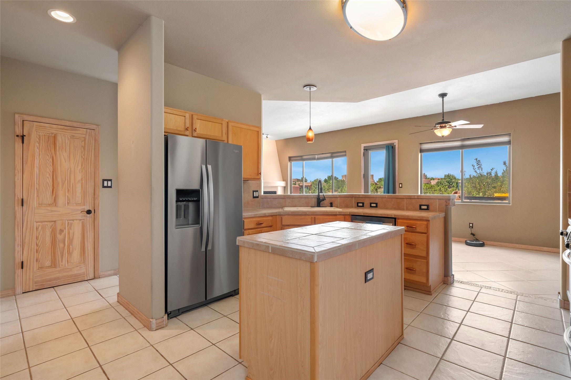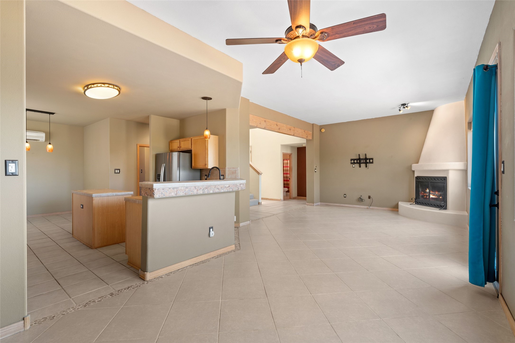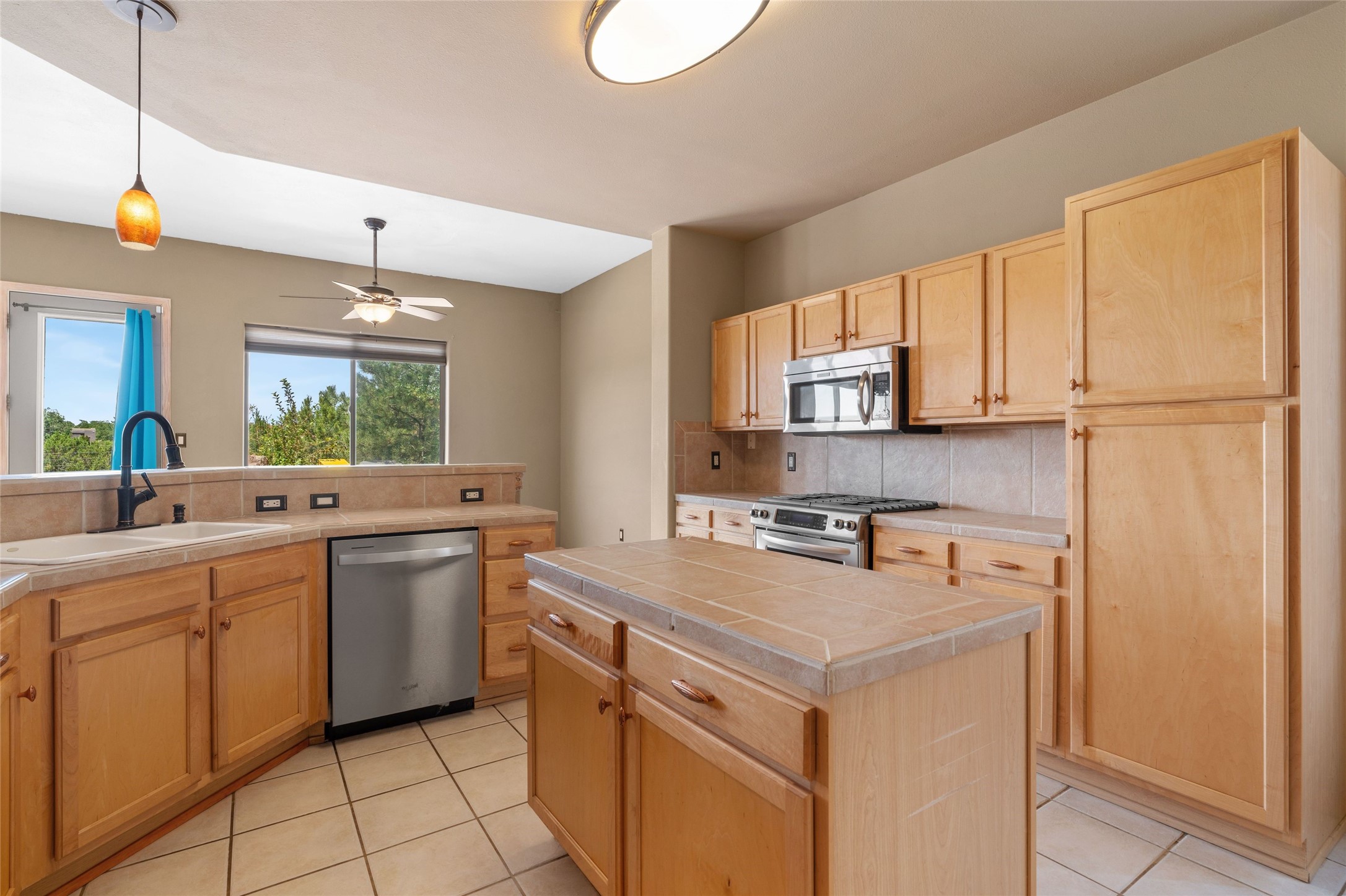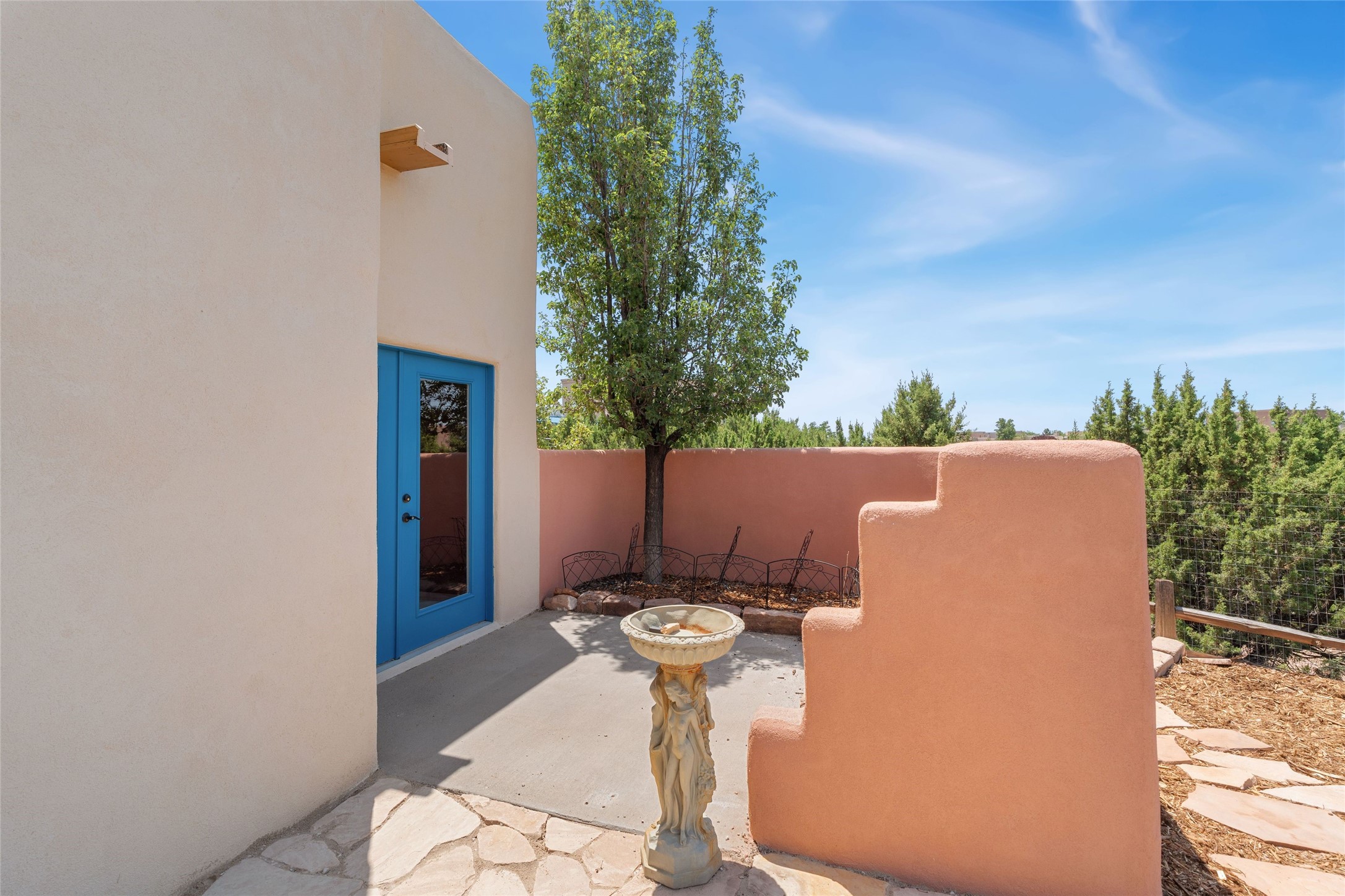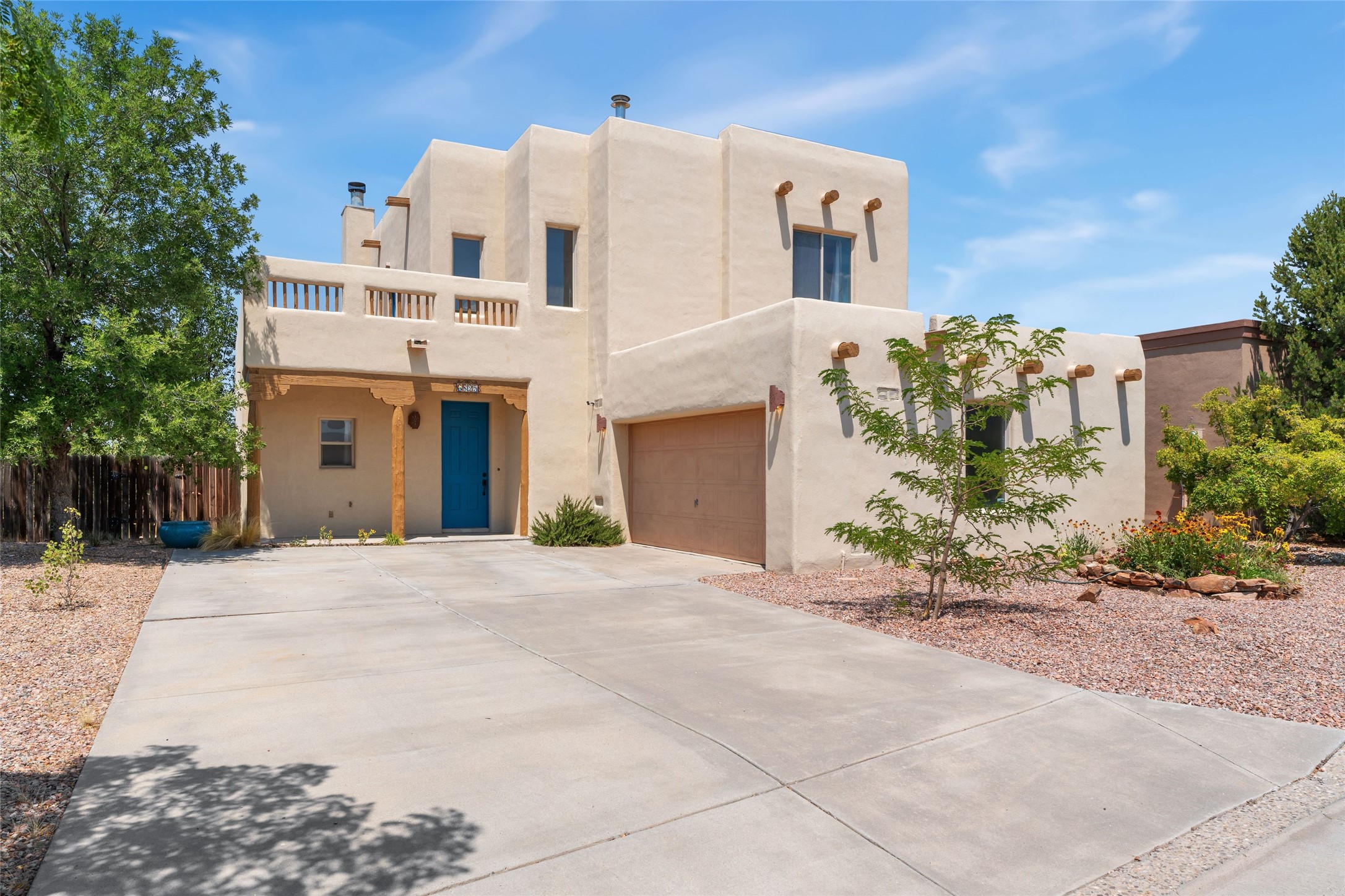 This well-maintained 4-bedroom, 3-bath home on Santa Fe's southside is a rare find--nestled at the end of a quiet cul-de-sac and backing to open space with walking trails and breathtaking views of the Sandia, Sangre de Cristo, Jemez, and East Mountains. Enjoy sweeping 270-degree vistas and the feeling of space and privacy. Step inside to discover a thoughtfully cared-for home with a warm and inviting feel. The living room features a plastered Kiva fireplace, traditional vigas, and opens to both the dining room and kitchen--creating a perfect flow for entertaining. Large kitchen space with stainless steel appliances, center island and ample storage. The kitchen also includes a cozy breakfast nook and updated touches like Baldwin hardware, tongue-and-groove ceilings, and mini splits. Downstairs offers a flexible 4th bedroom or office just off the living room, along with a dedicated laundry room with hardwood cabinetry, mudroom and an oversized washer. The spacious primary suite upstairs includes a large private deck to take in the views, a walk-in closet, and a generous en-suite bath with separate tub and shower. Enjoy Santa Fe's outdoor lifestyle with a fenced backyard, built-in stone counter with BBQ, flagstone patio, walking path, and fresh mulch. Great curb appeal with the beautifully landscaped front yard and flower bed. Recent improvements include newer stucco and water heater. This home checks all the boxes--schedule your showing today!