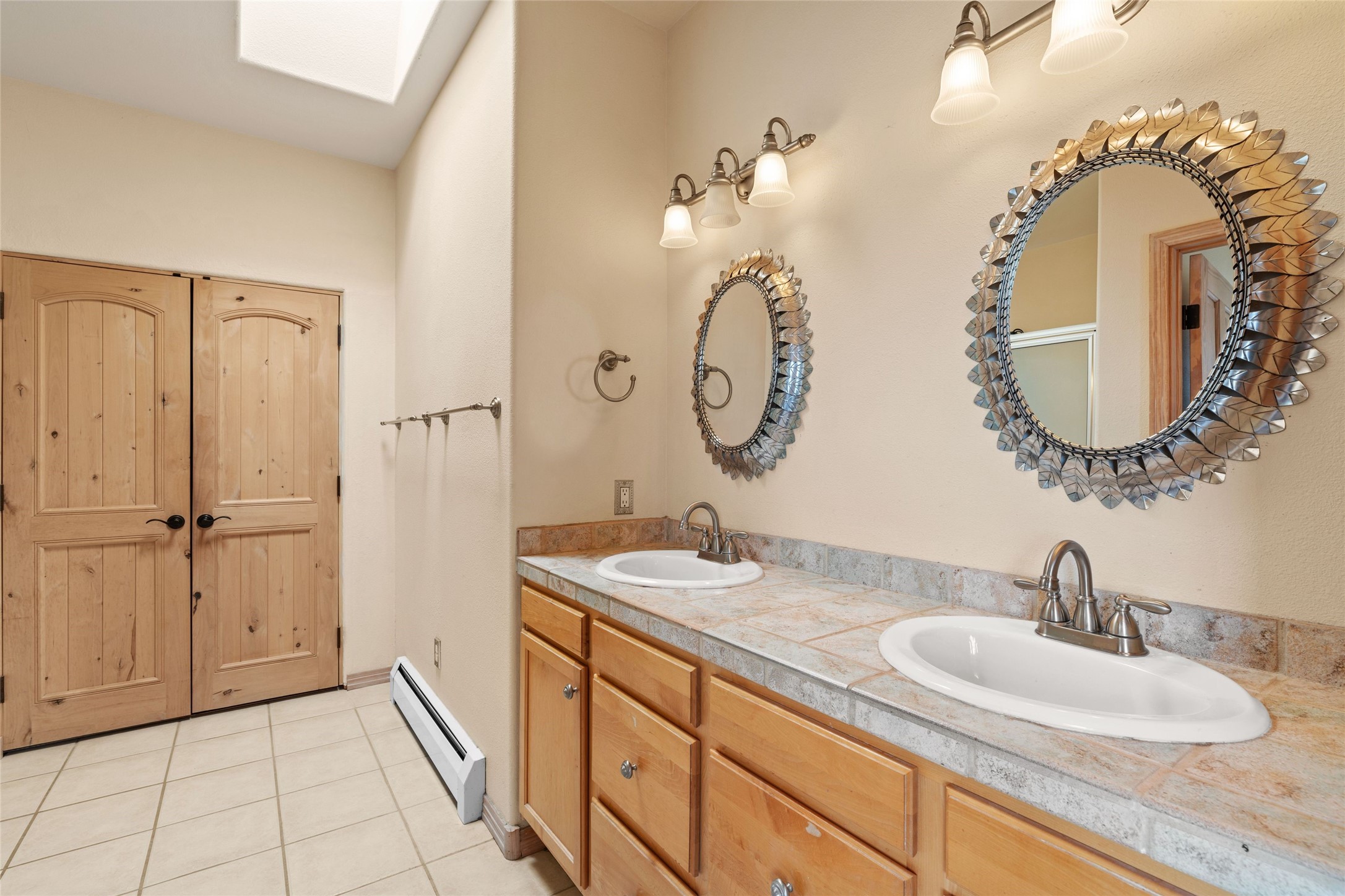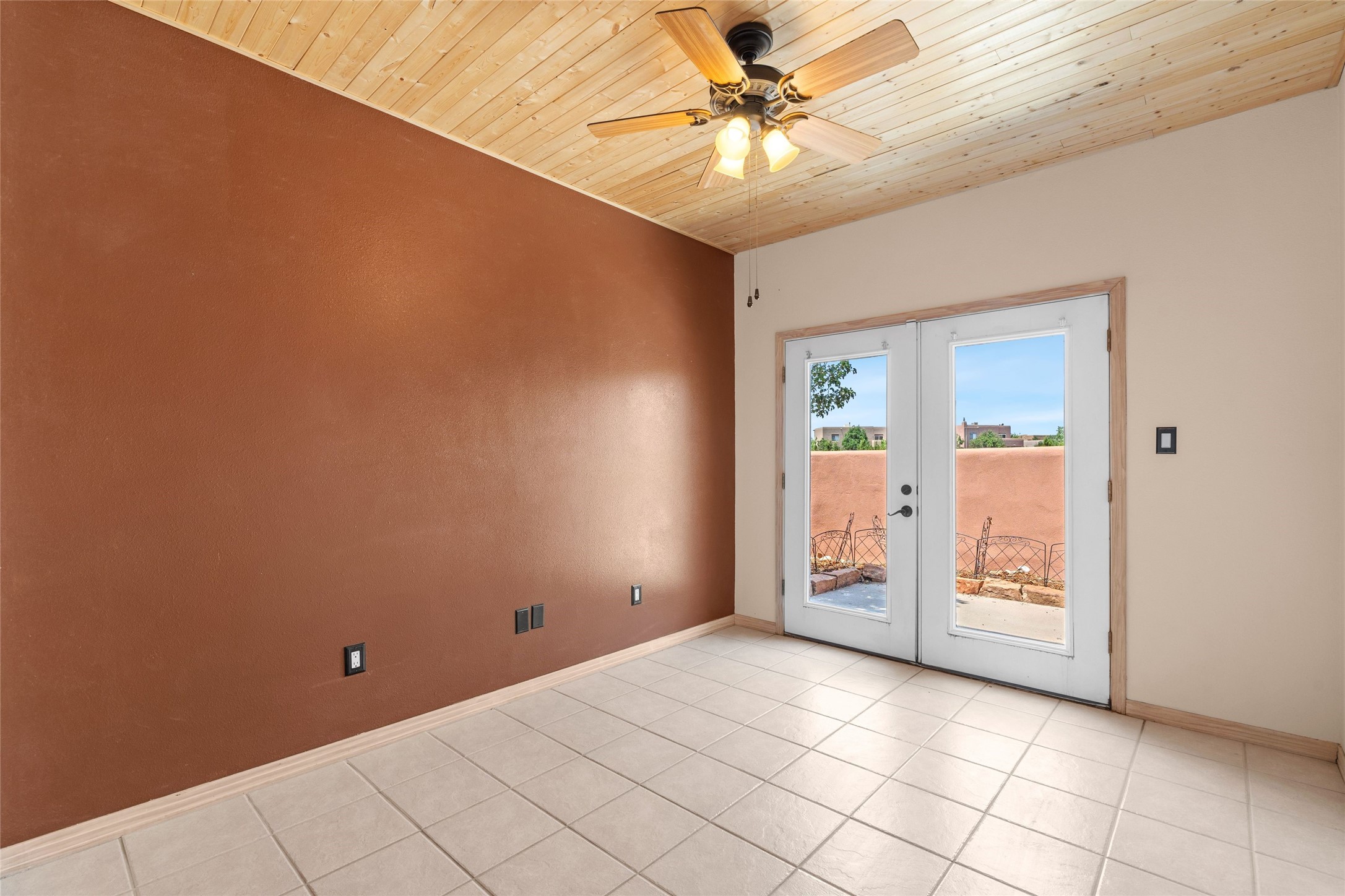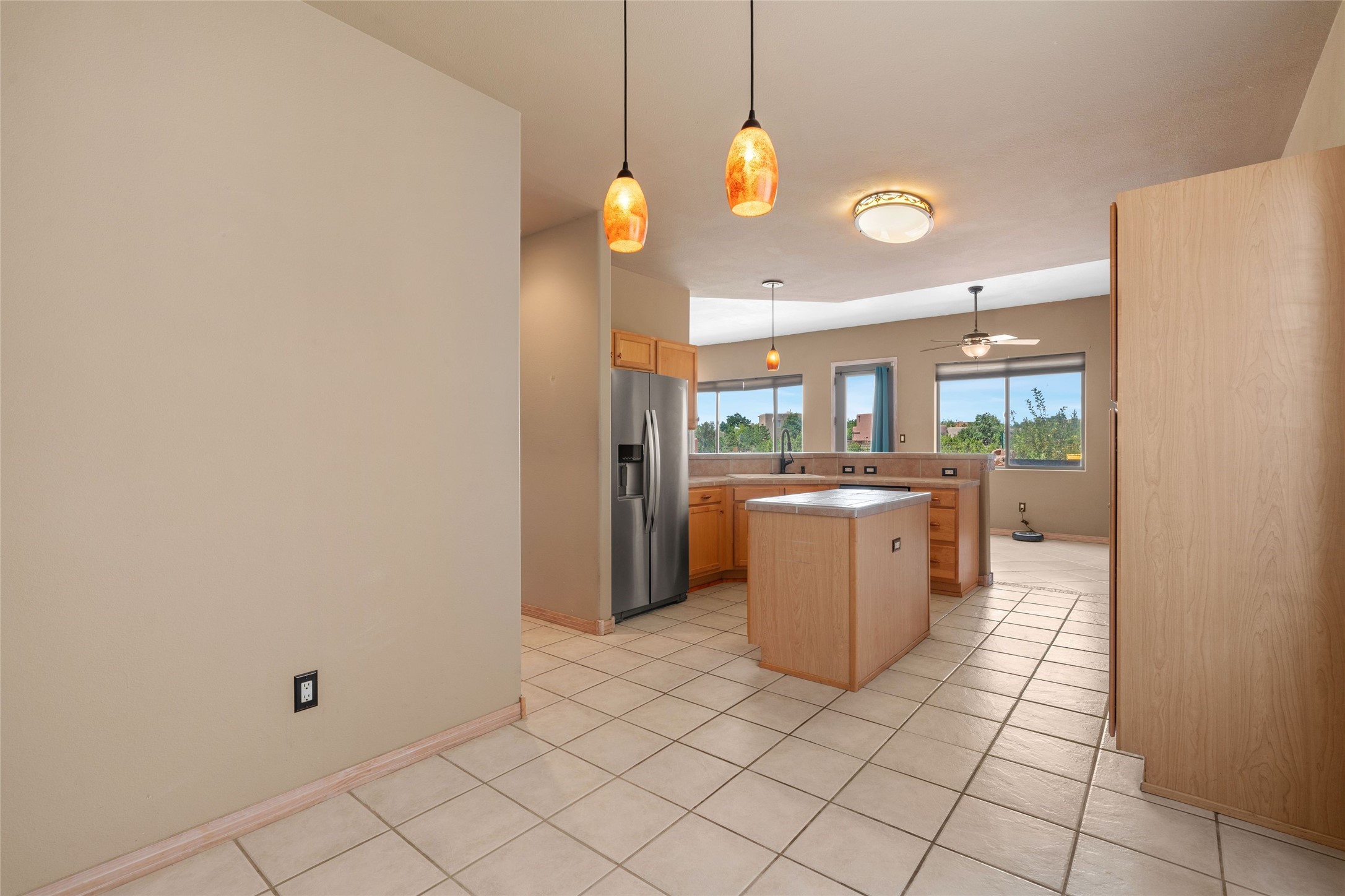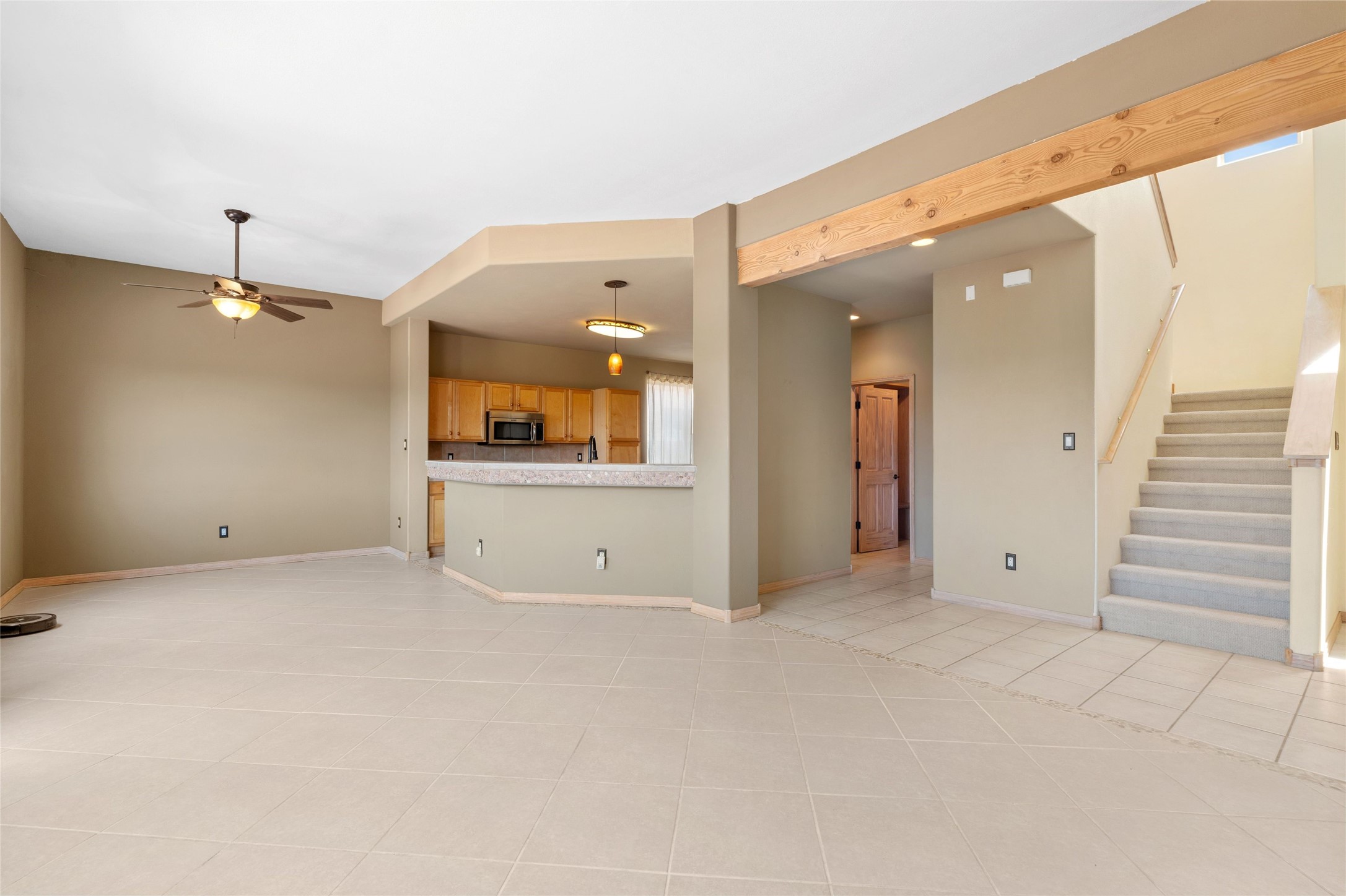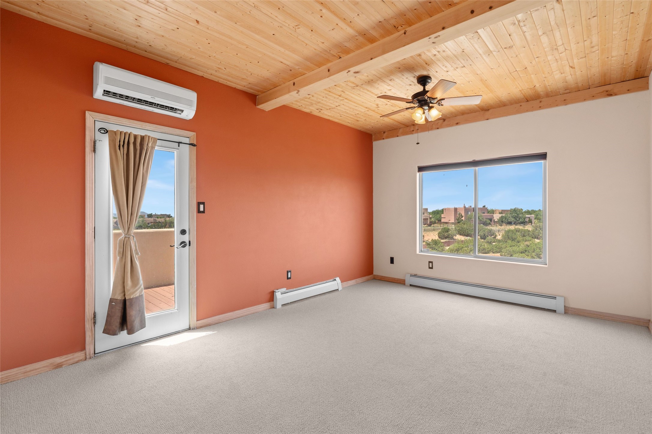 This well-maintained 4-bedroom, 3-bath home on Santa Fe's southside is a rare find--nestled at the end of a quiet cul-de-sac and backing to open space with walking trails and breathtaking views of the Sandia, Sangre de Cristo, Jemez, and East Mountains. Enjoy sweeping 270-degree vistas and the feeling of space and privacy. Step inside to discover a thoughtfully cared-for home with a warm and inviting feel. The living room features a plastered Kiva fireplace, traditional vigas, and opens to both the dining room and kitchen--creating a perfect flow for entertaining. Large kitchen space with stainless steel appliances, center island and ample storage. The kitchen also includes a cozy breakfast nook and updated touches like Baldwin hardware, tongue-and-groove ceilings, and mini splits. Downstairs offers a flexible 4th bedroom or office just off the living room, along with a dedicated laundry room with hardwood cabinetry, mudroom and an oversized washer. The spacious primary suite upstairs includes a large private deck to take in the views, a walk-in closet, and a generous en-suite bath with separate tub and shower. Enjoy Santa Fe's outdoor lifestyle with a fenced backyard, built-in stone counter with BBQ, flagstone patio, walking path, and fresh mulch. Great curb appeal with the beautifully landscaped front yard and flower bed. Recent improvements include newer stucco and water heater. This home checks all the boxes--schedule your showing today!