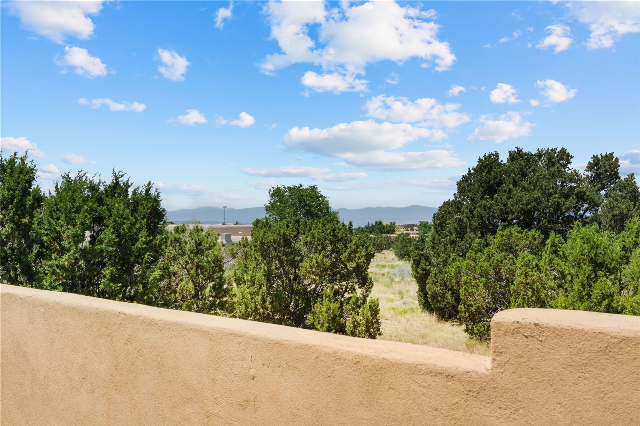Heartstone community 3-bedroom, 3.5-bath soft contemporary home featuring sleek concrete floors, harmoniously paired with traditional Santa Fe elements, including iconic vigas and beams. Designed for convenience, this single-level property offers a spacious layout with no interior steps, making it accessible and easy to navigate. Enjoy the luxury of two living areas, ideal for relaxation and entertaining friends and family. The large kitchen and dining area provide the perfect backdrop for memorable gatherings. Step outside to the back portal, where a generous backyard awaits, offering sweeping views of the Jemez mountains that elevate outdoor living. In addition, enjoy Sangre de Cristo views from the front. Heartstone is characterized by half-acre lots, thoughtfully arranged around a shared meadow and many acres of permanently dedicated open space, fostering a connection to nature and tranquility. For those who enjoy an active lifestyle, the community is surrounded by a network of trails, granting access to the La Tierra Trails--a multi-use system featuring 25 miles of paths designed for hikers, cyclists, and equestrians alike. The community house serves as a venue for social gatherings and activities, complemented by exercise areas and a media room. Located in the desirable Tano Road area, this residence provides easy access to the vibrant Santa Fe Plaza, the artistic charm of Canyon Road, the Santa Fe's Farmer's Market, and the renowned Santa Fe Opera.