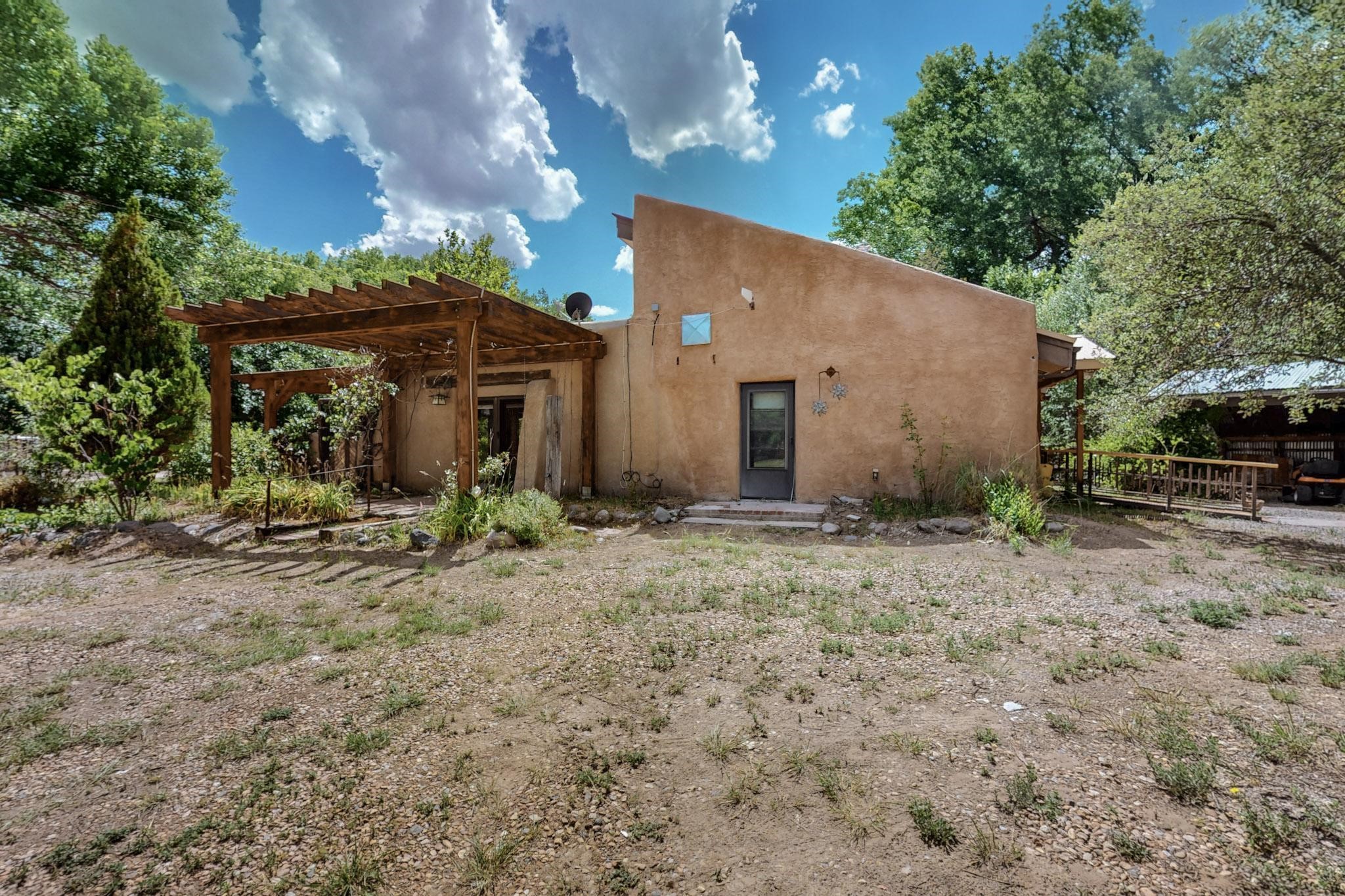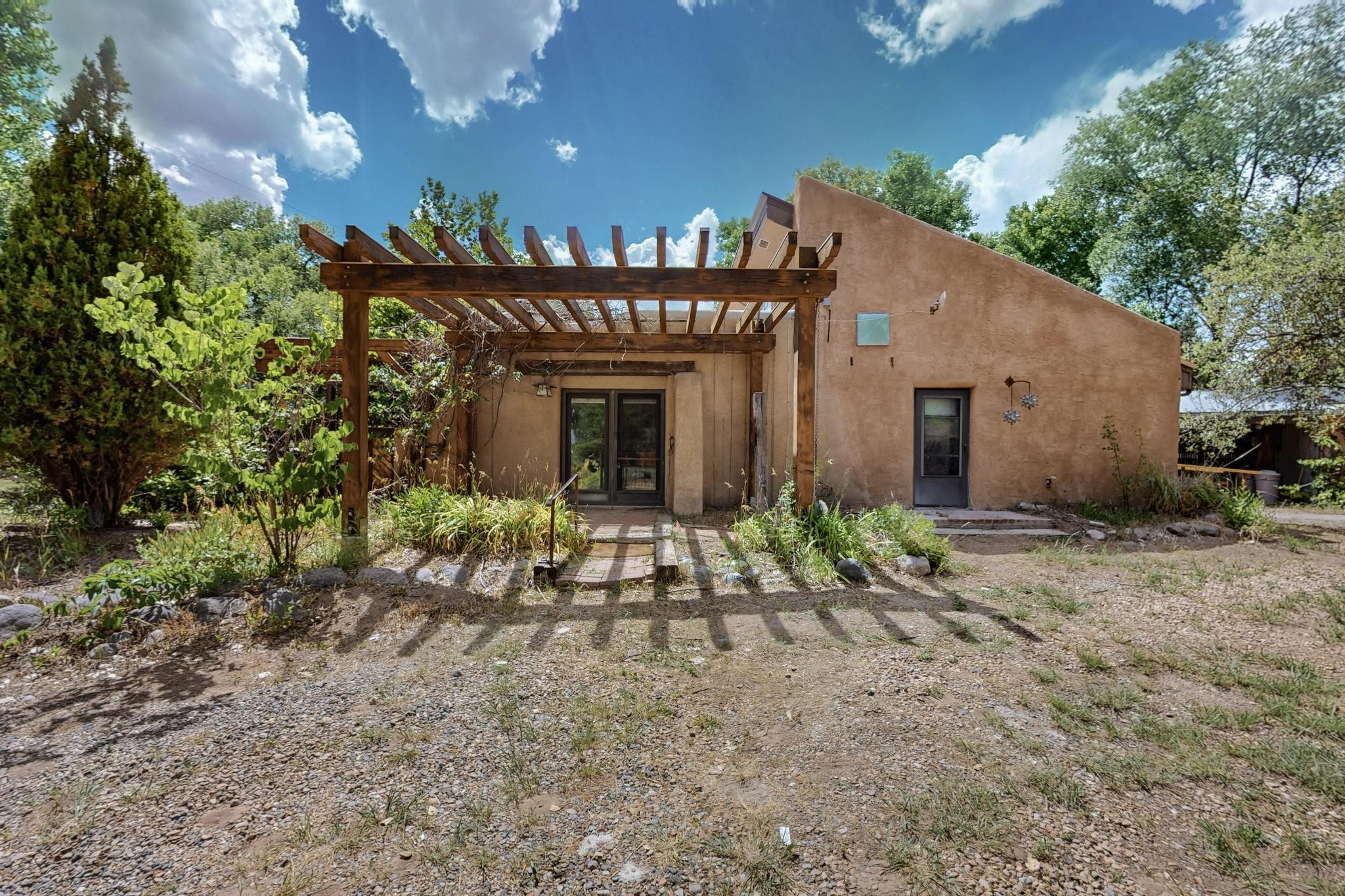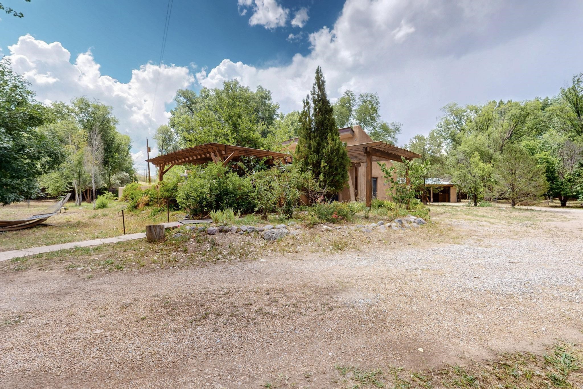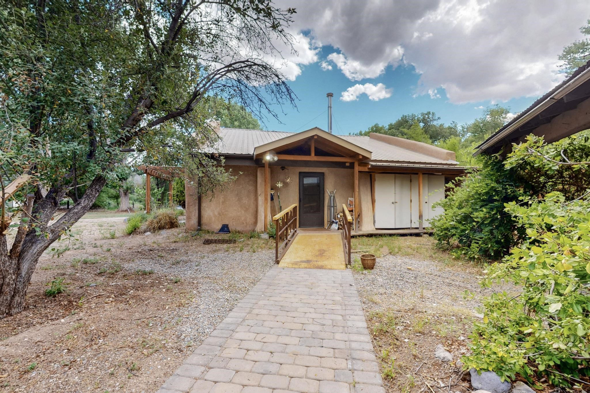 Charming Retreat at the Base of Black Mesa - Ideal for Los Alamos Commuters. Discover the perfect blend of privacy, convenience, and creative potential on this serene 1.5-acre property nestled in the community of Pajarito. This inviting 2-bedroom, 2-bathroom home offers comfortable living with a flexible bonus space ideal as an extra living room, artist studio, or craft area--tailored to fit your lifestyle. The home features large vigas, brick floors and kiva fireplaces. A detached 2-car garage provides ample storage or workshop space, while the expansive grounds offer room to roam, garden, or simply enjoy the quiet beauty of Northern New Mexico. Perfectly situated between Pojoaque and Espaola, this home is an easy drive to Los Alamos and just 30 minutes to Santa Fe, making it a convenient sanctuary for commuters or anyone seeking the tranquility of rural living without sacrificing accessibility.