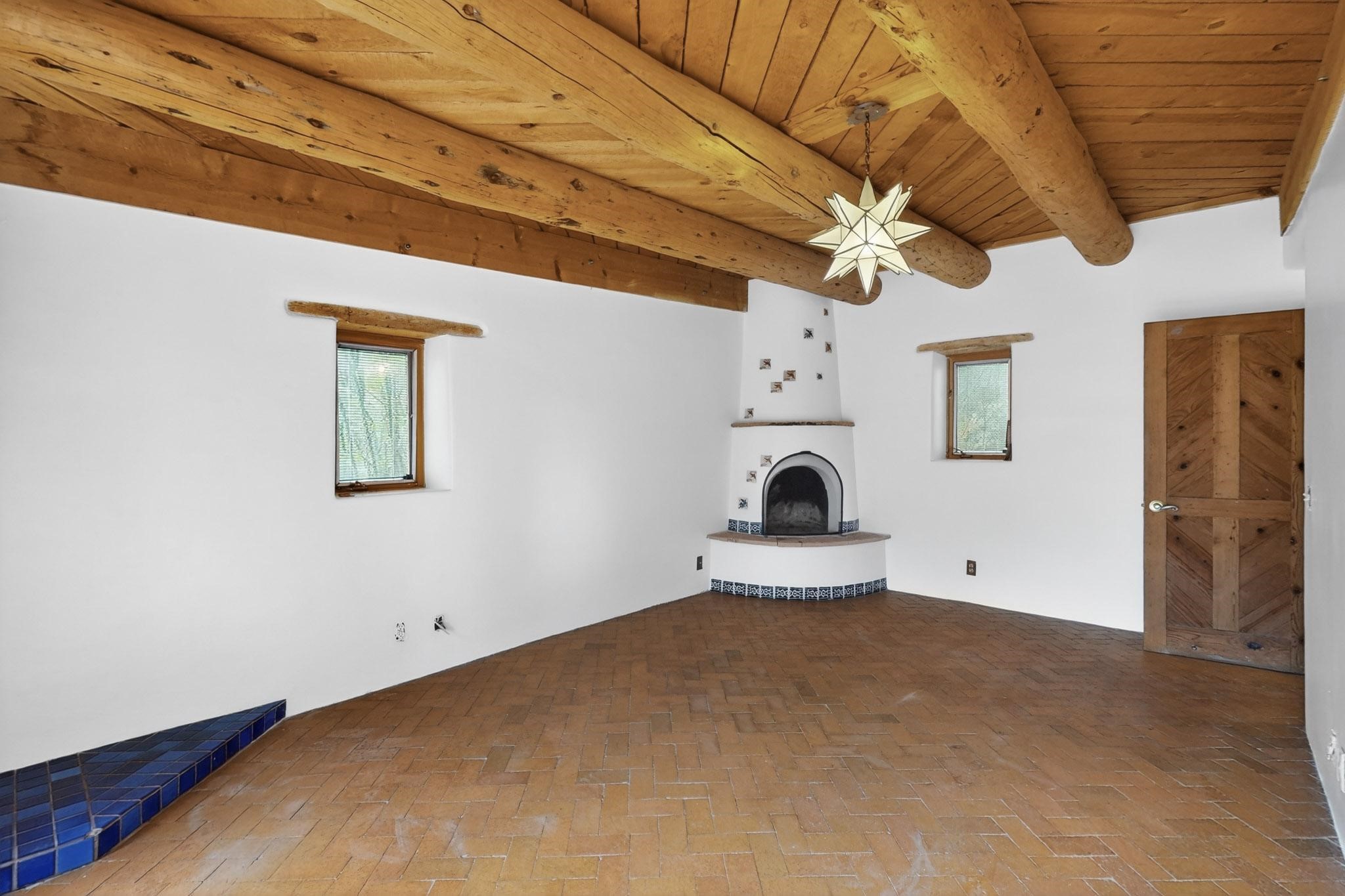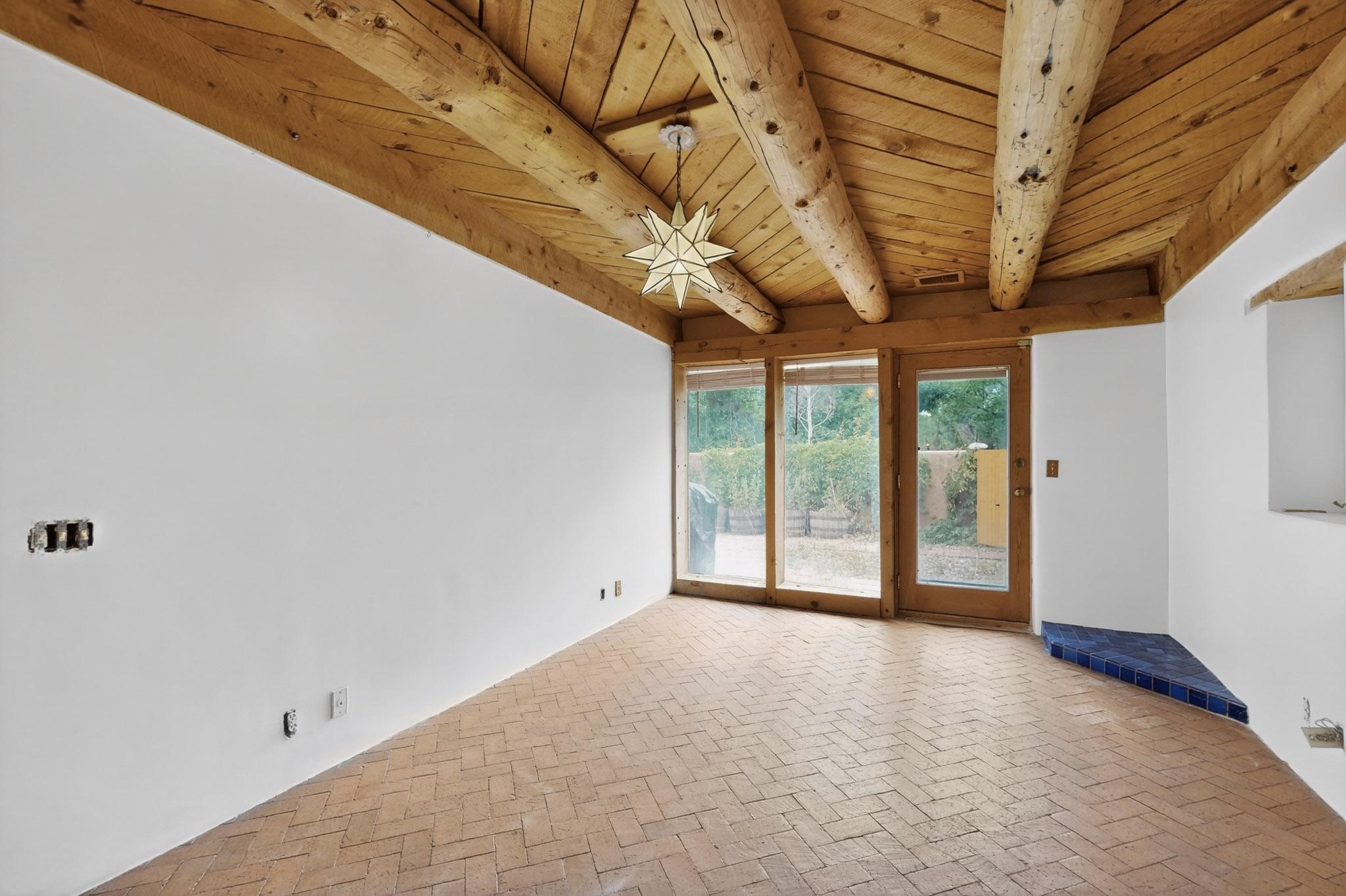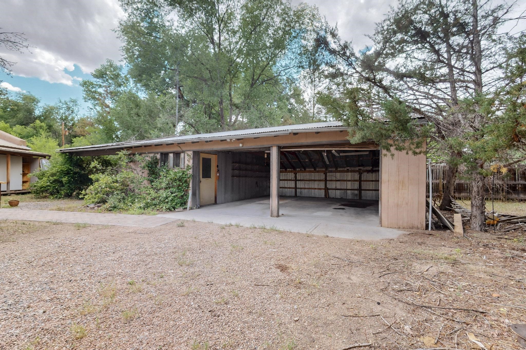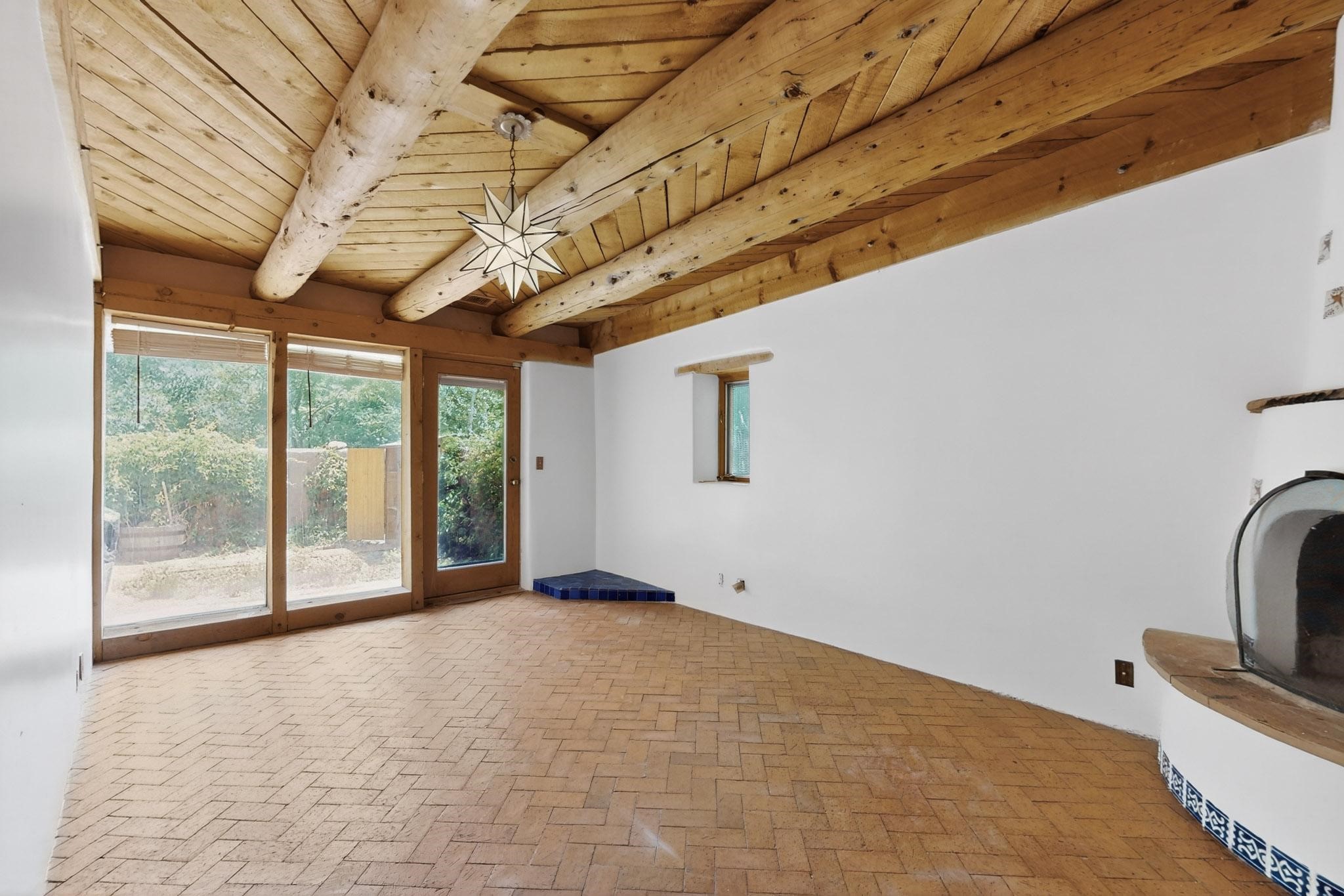 Charming Retreat at the Base of Black Mesa - Ideal for Los Alamos Commuters. Discover the perfect blend of privacy, convenience, and creative potential on this serene 1.5-acre property nestled in the community of Pajarito. This inviting 2-bedroom, 2-bathroom home offers comfortable living with a flexible bonus space ideal as an extra living room, artist studio, or craft area--tailored to fit your lifestyle. The home features large vigas, brick floors and kiva fireplaces. A detached 2-car garage provides ample storage or workshop space, while the expansive grounds offer room to roam, garden, or simply enjoy the quiet beauty of Northern New Mexico. Perfectly situated between Pojoaque and Espaola, this home is an easy drive to Los Alamos and just 30 minutes to Santa Fe, making it a convenient sanctuary for commuters or anyone seeking the tranquility of rural living without sacrificing accessibility.