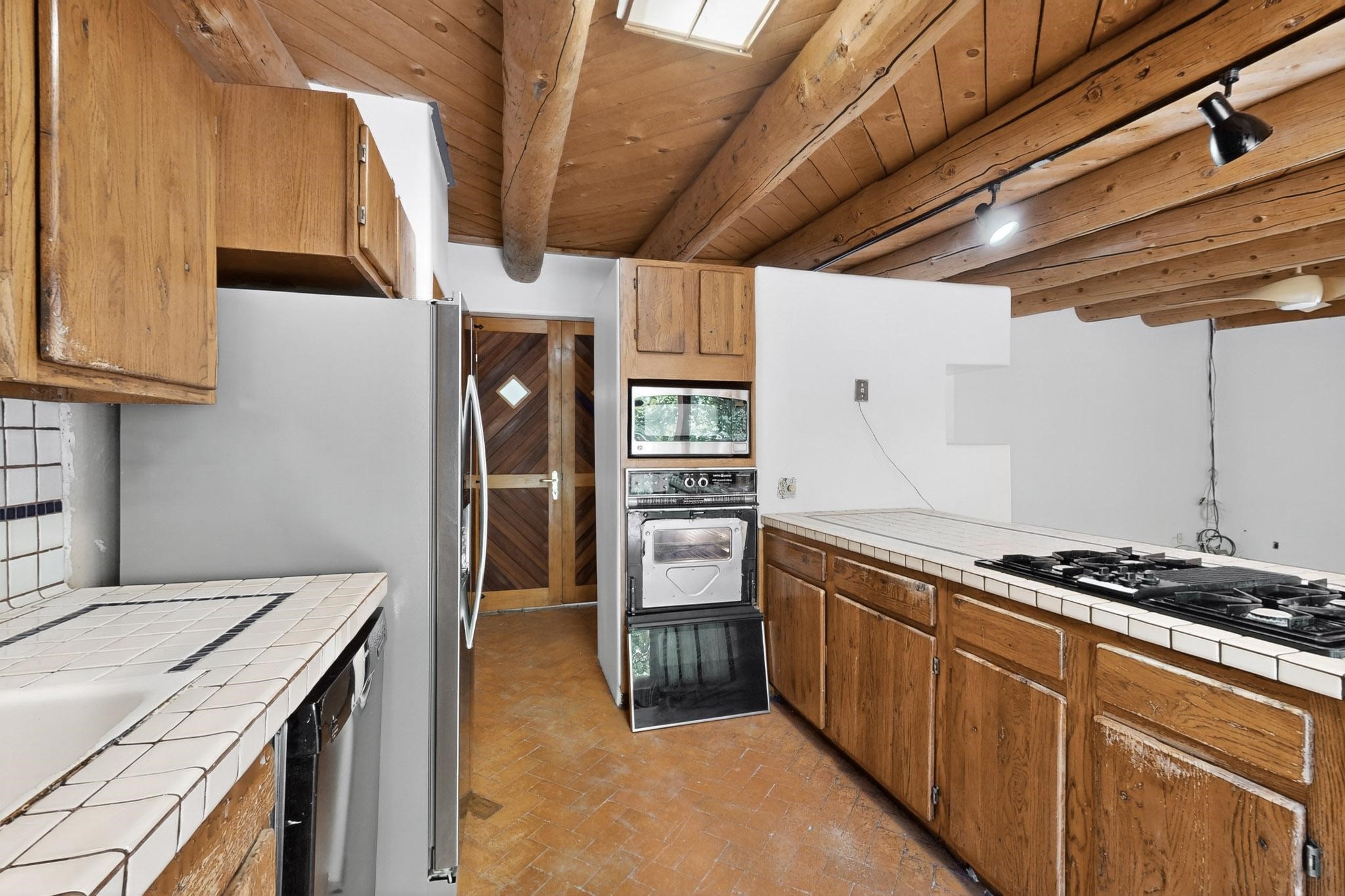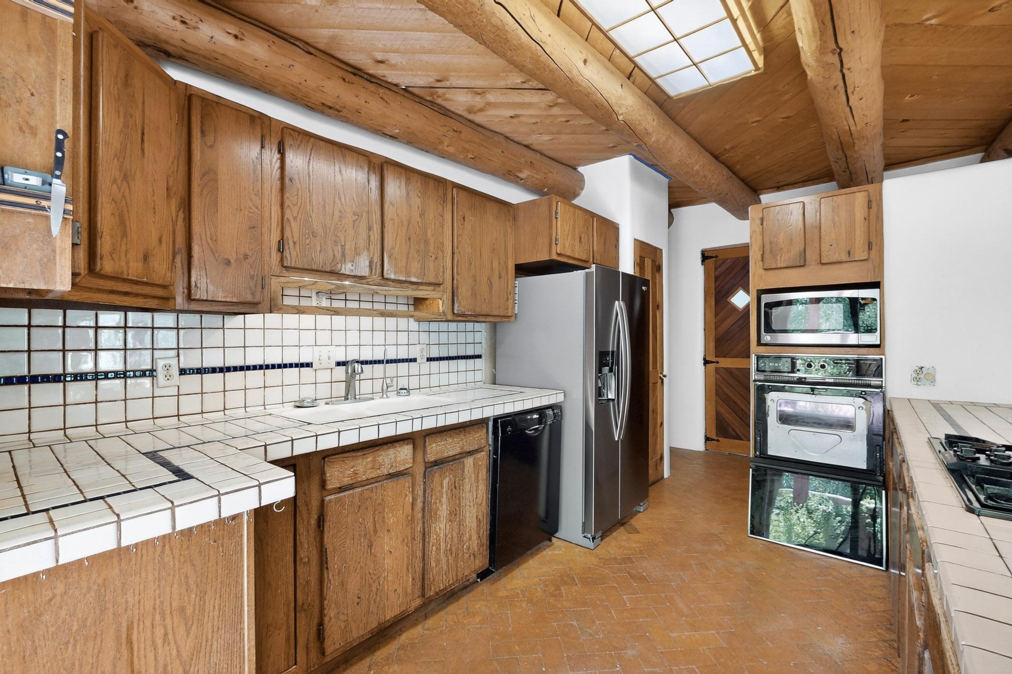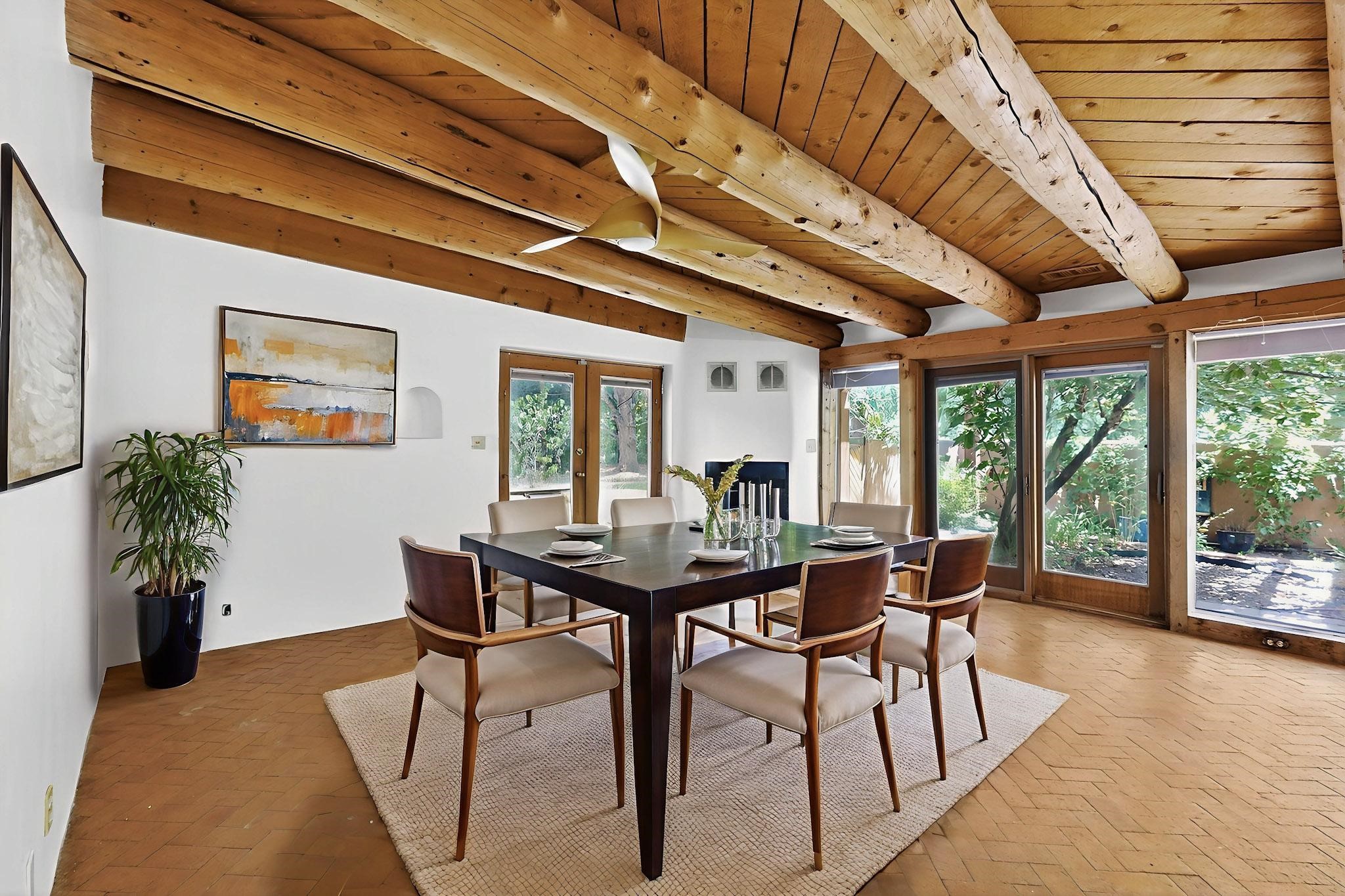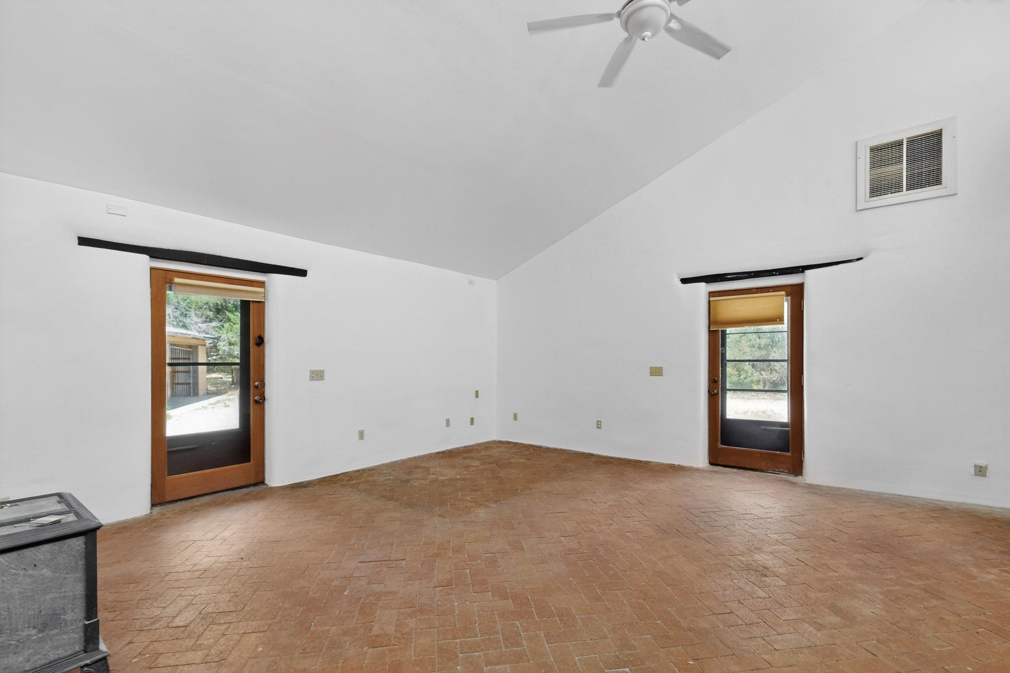 Charming Retreat at the Base of Black Mesa - Ideal for Los Alamos Commuters. Discover the perfect blend of privacy, convenience, and creative potential on this serene 1.5-acre property nestled in the community of Pajarito. This inviting 2-bedroom, 2-bathroom home offers comfortable living with a flexible bonus space ideal as an extra living room, artist studio, or craft area--tailored to fit your lifestyle. The home features large vigas, brick floors and kiva fireplaces. A detached 2-car garage provides ample storage or workshop space, while the expansive grounds offer room to roam, garden, or simply enjoy the quiet beauty of Northern New Mexico. Perfectly situated between Pojoaque and Espaola, this home is an easy drive to Los Alamos and just 30 minutes to Santa Fe, making it a convenient sanctuary for commuters or anyone seeking the tranquility of rural living without sacrificing accessibility.