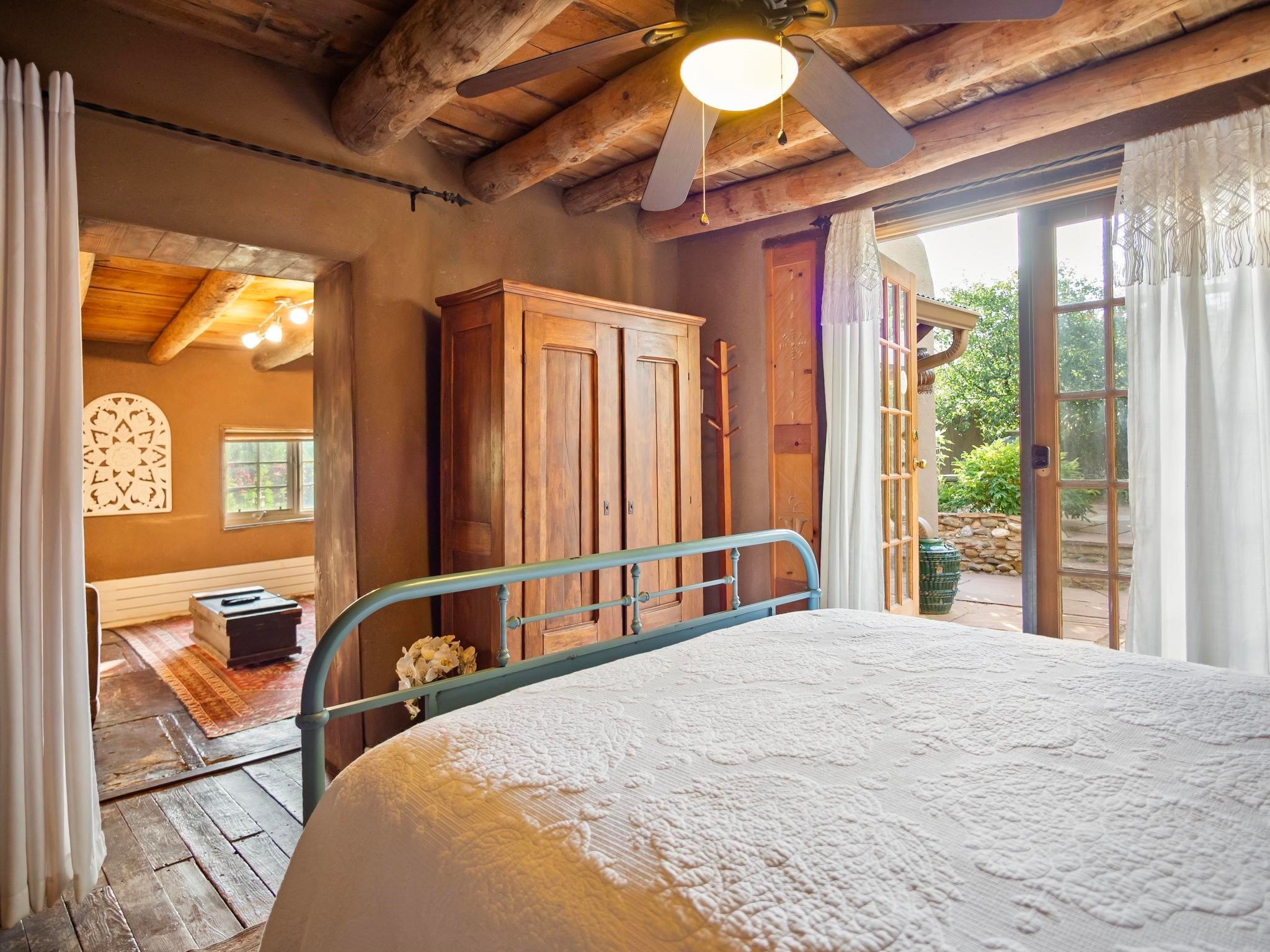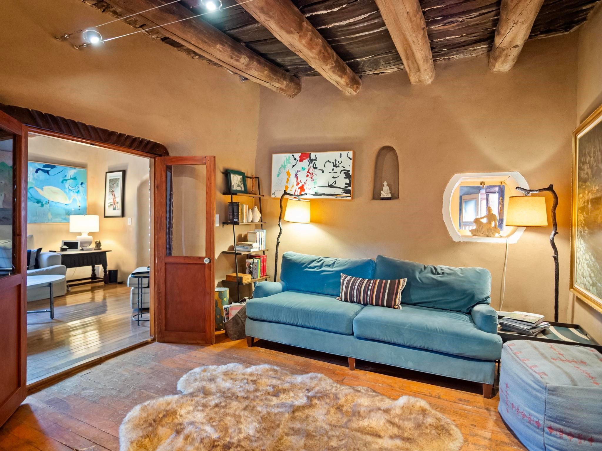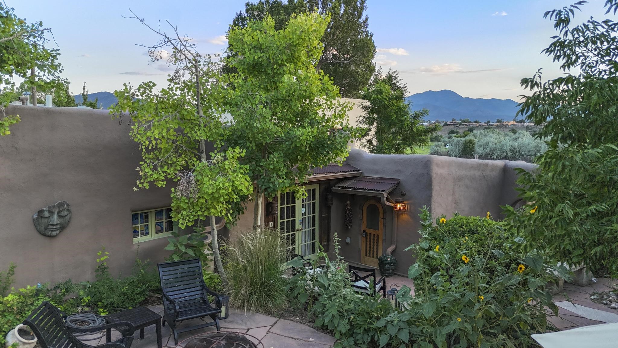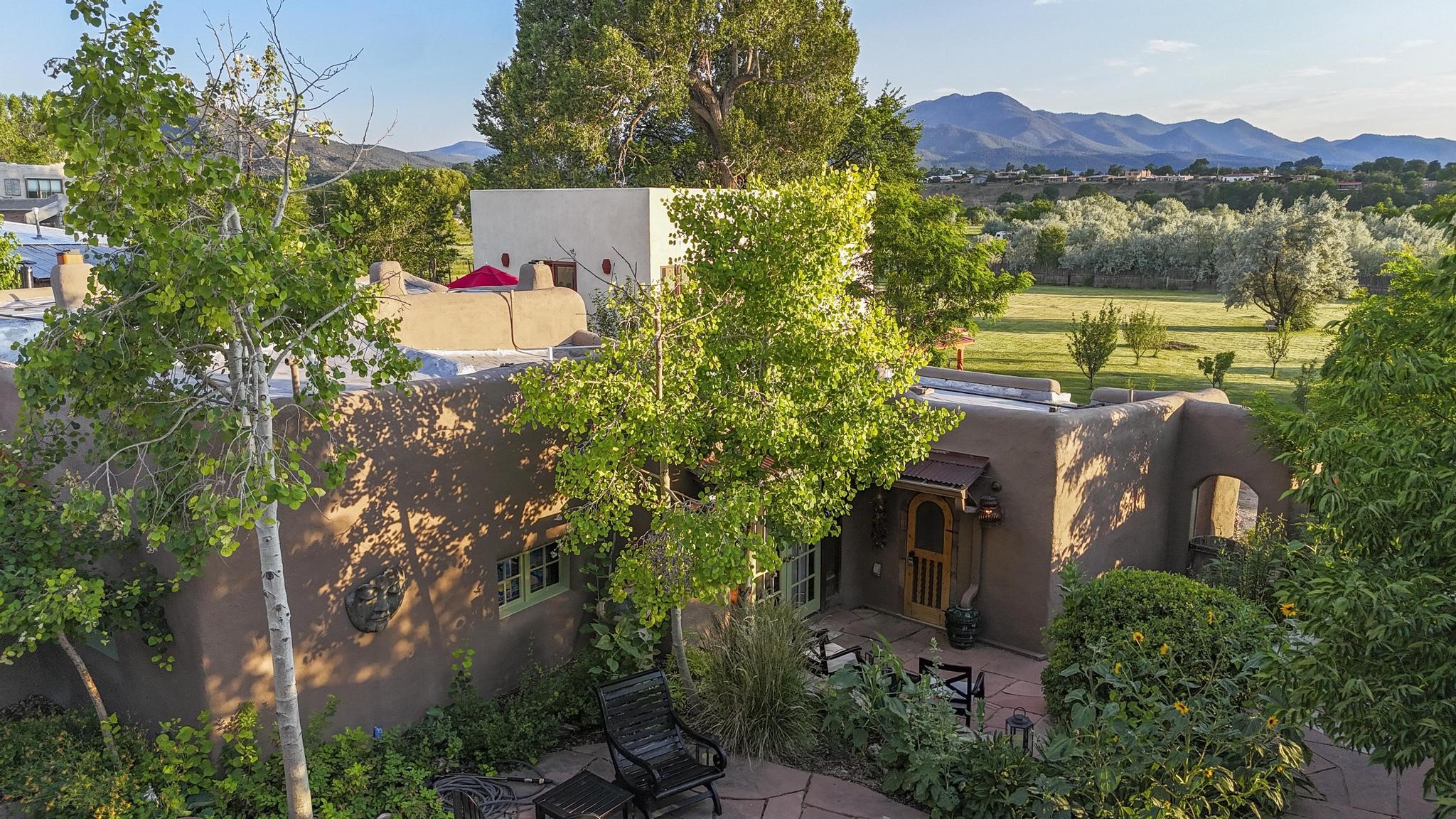 Wonderful historic Ranchos de Taos residence on 1.55 acres of land for in-town privacy. The primary home includes two attached guesthouses that can provide additional income or be used for expanded living space, a recently built studio could be converted into a separate apartment or used to pursue your artistic passions. The property is beautifully landscaped with multiple outdoor living spaces each enveloped by mature flowering flora. The home is what you would expect from a historic Taos dwelling, adobe block with plastered interior walls, New Mexican decor, 6 fireplaces, fine finishes, original hardwood floors, copper countertops and so much more. To top off this special property, there are acequia water rights top help keep the lawn and garden green and productive. The property is minutes from the Taos Plaza, restaurants, galleries and nightlife. Several iconic Taos landmarks are within walking distance and with a location on the south end of Taos there is the added benefit of being only an hour driving time to Santa Fe. You owe it to yourself to visit this amazing Taos retreat. Bring your toothbrush, this property is being sold furnished!