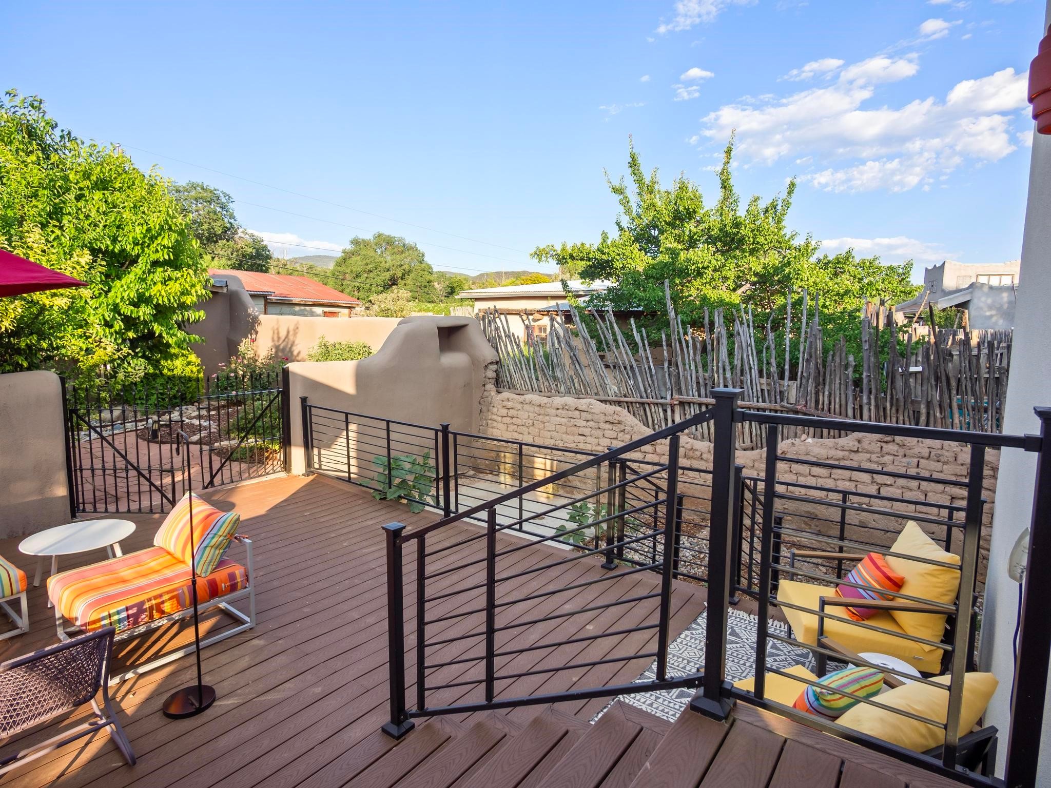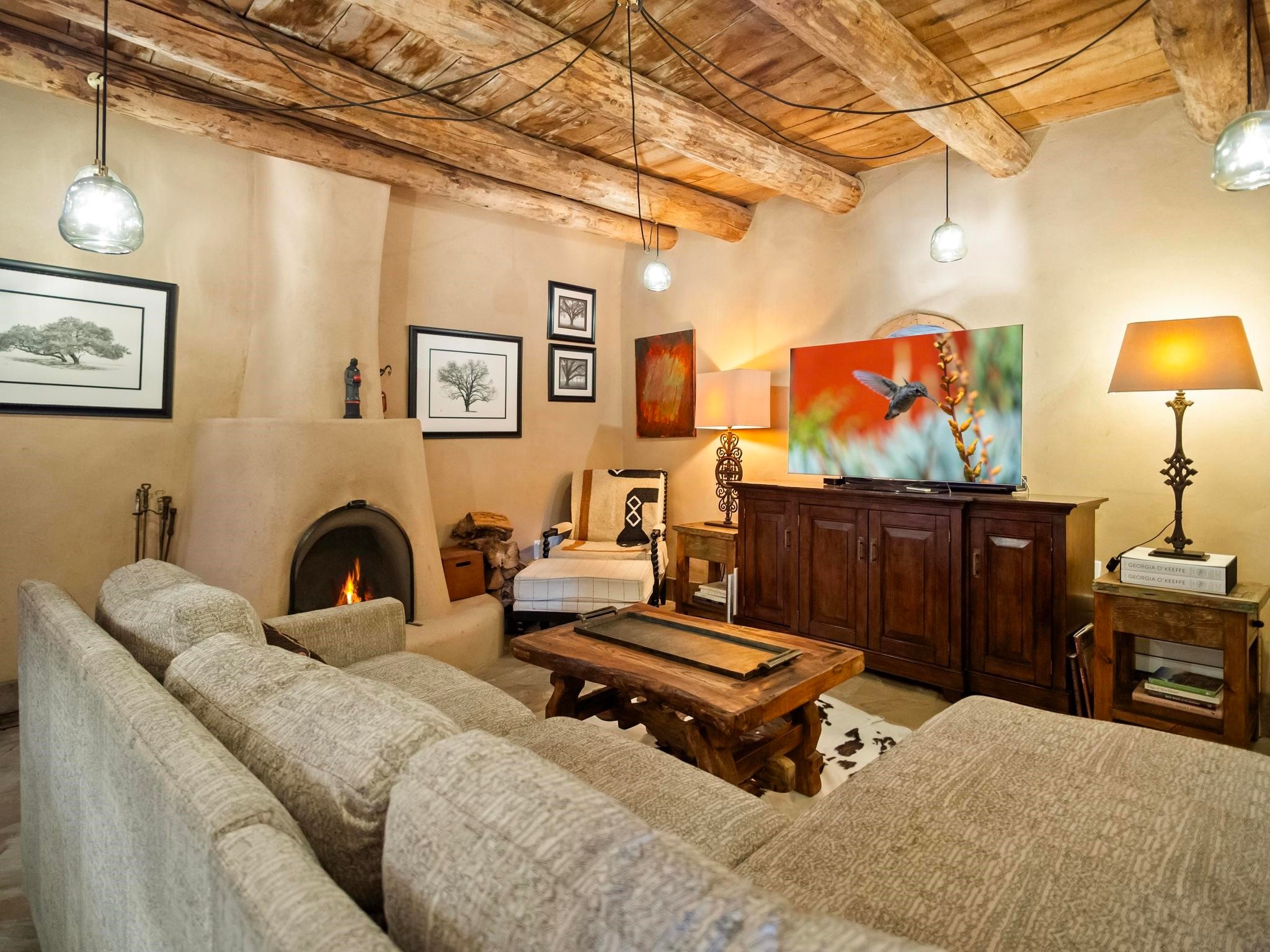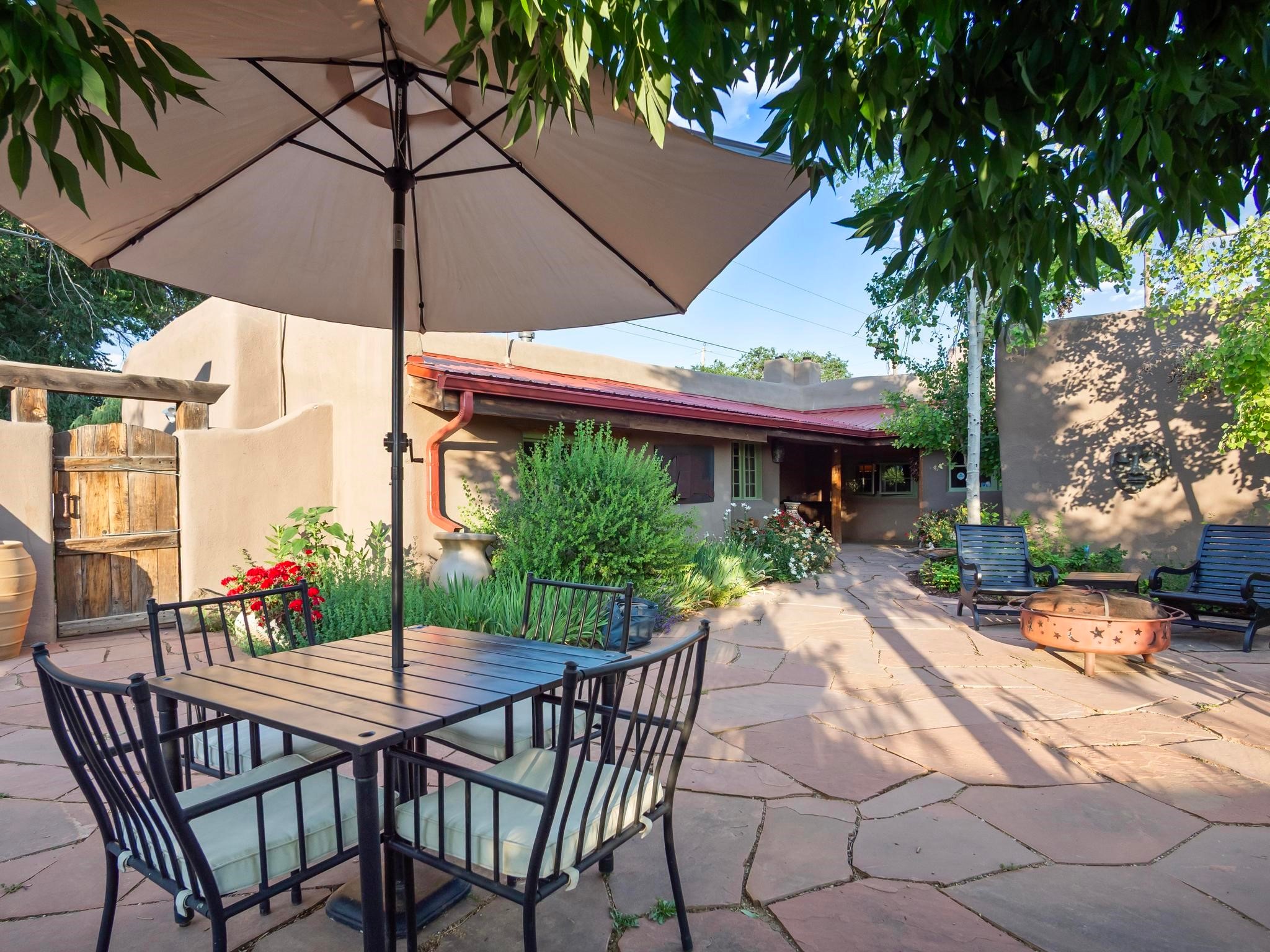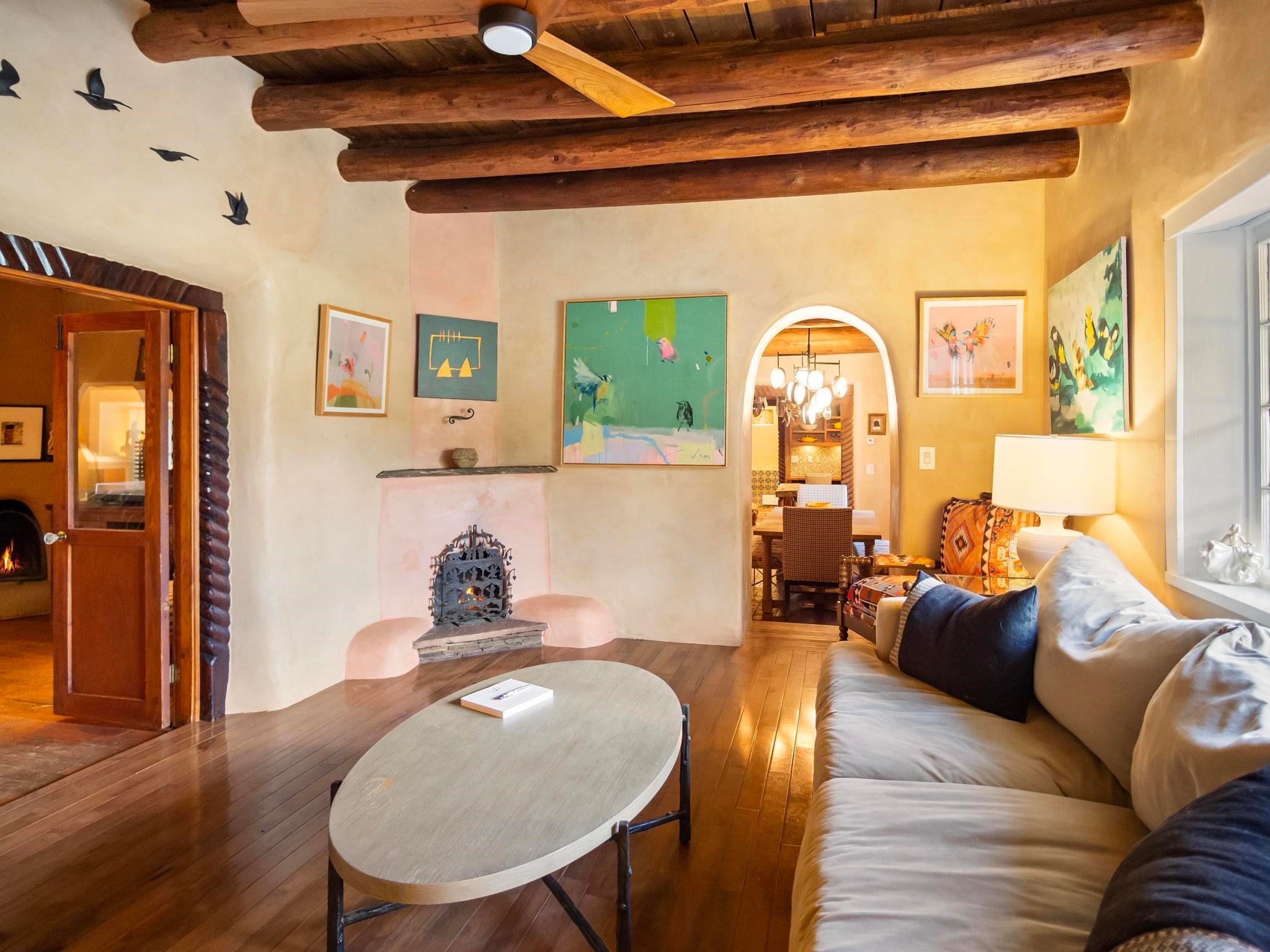 Wonderful historic Ranchos de Taos residence on 1.55 acres of land for in-town privacy. The primary home includes two attached guesthouses that can provide additional income or be used for expanded living space, a recently built studio could be converted into a separate apartment or used to pursue your artistic passions. The property is beautifully landscaped with multiple outdoor living spaces each enveloped by mature flowering flora. The home is what you would expect from a historic Taos dwelling, adobe block with plastered interior walls, New Mexican decor, 6 fireplaces, fine finishes, original hardwood floors, copper countertops and so much more. To top off this special property, there are acequia water rights top help keep the lawn and garden green and productive. The property is minutes from the Taos Plaza, restaurants, galleries and nightlife. Several iconic Taos landmarks are within walking distance and with a location on the south end of Taos there is the added benefit of being only an hour driving time to Santa Fe. You owe it to yourself to visit this amazing Taos retreat. Bring your toothbrush, this property is being sold furnished!