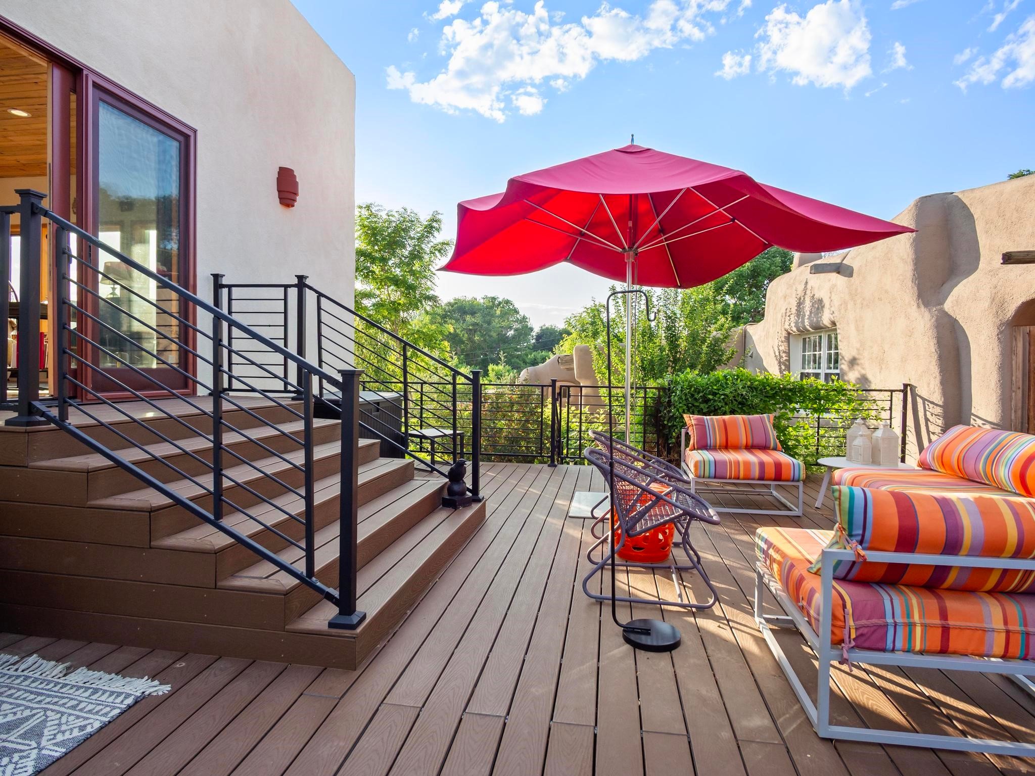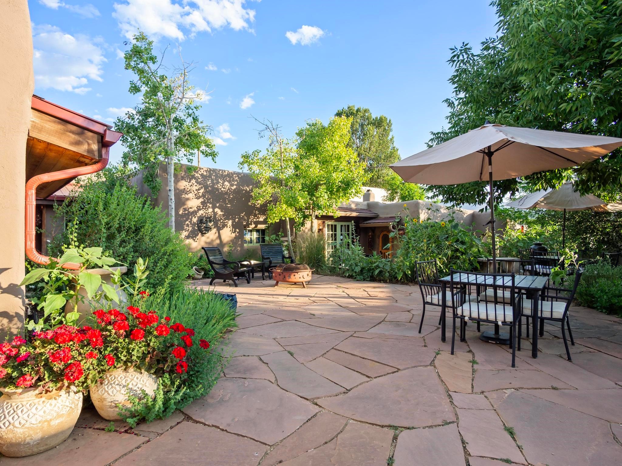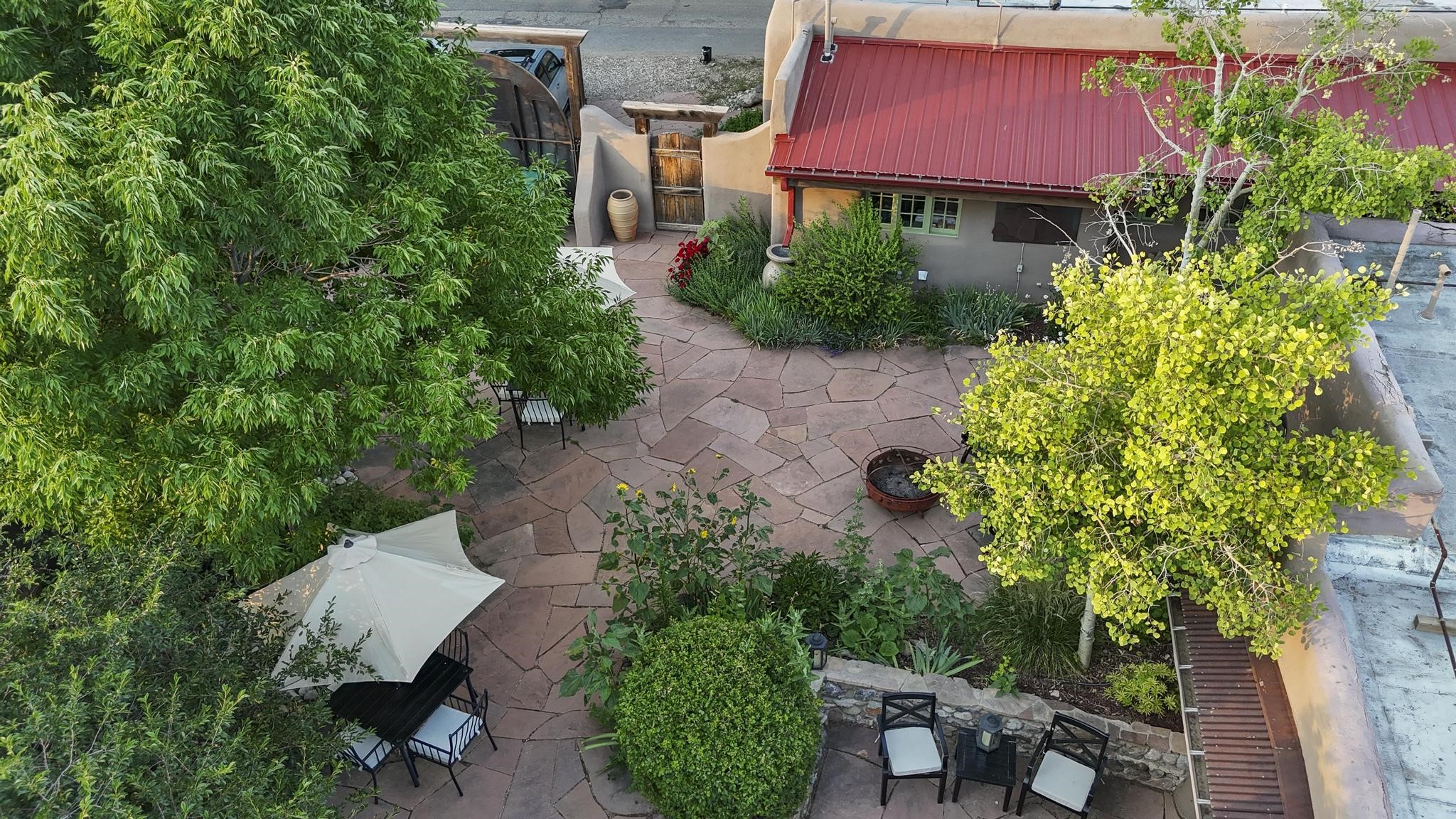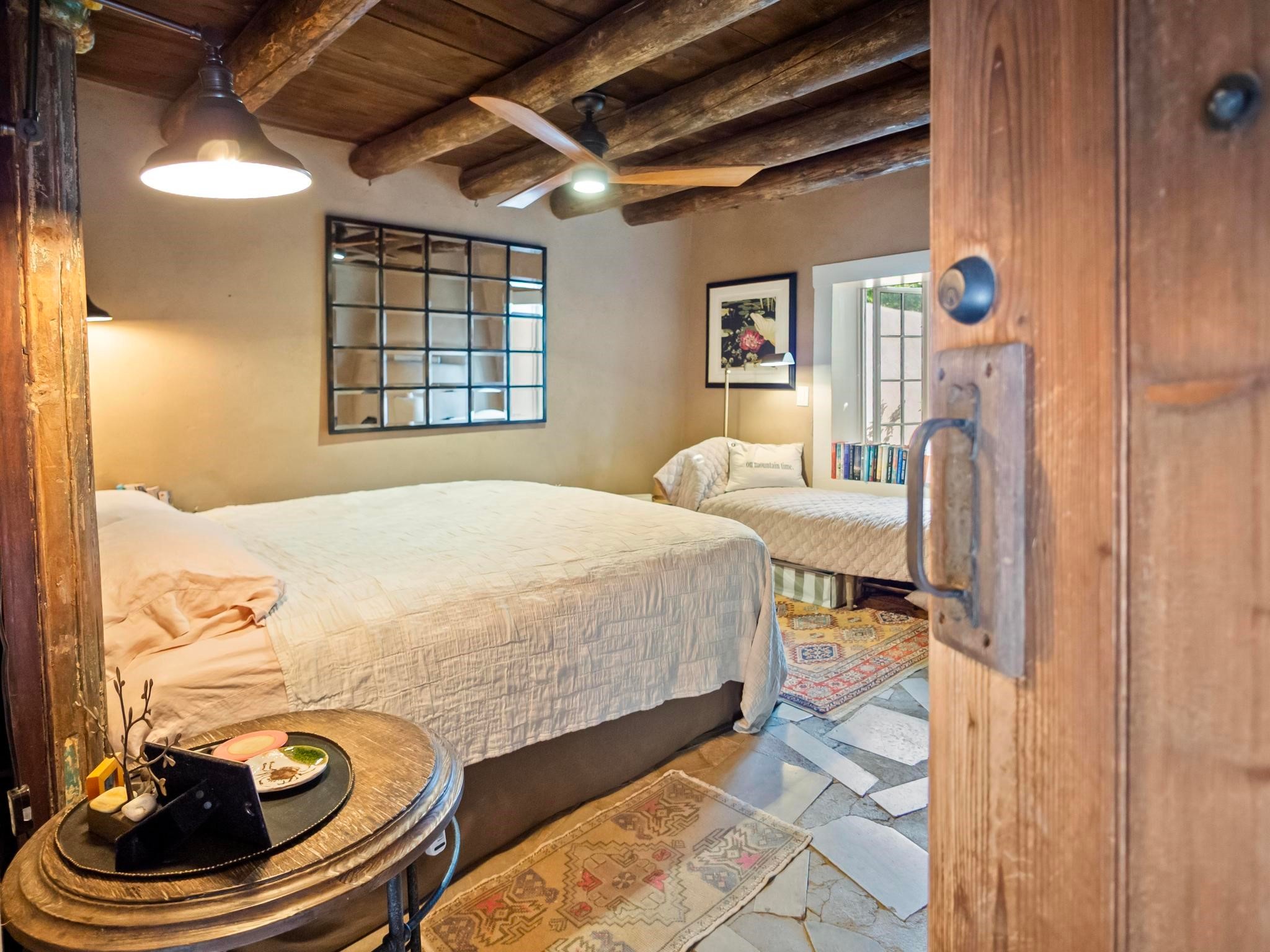Wonderful historic Ranchos de Taos residence on 1.55 acres of land for in-town privacy. The primary home includes two attached guesthouses that can provide additional income or be used for expanded living space, a recently built studio could be converted into a separate apartment or used to pursue your artistic passions. The property is beautifully landscaped with multiple outdoor living spaces each enveloped by mature flowering flora. The home is what you would expect from a historic Taos dwelling, adobe block with plastered interior walls, New Mexican decor, 6 fireplaces, fine finishes, original hardwood floors, copper countertops and so much more. To top off this special property, there are acequia water rights top help keep the lawn and garden green and productive. The property is minutes from the Taos Plaza, restaurants, galleries and nightlife. Several iconic Taos landmarks are within walking distance and with a location on the south end of Taos there is the added benefit of being only an hour driving time to Santa Fe. You owe it to yourself to visit this amazing Taos retreat. Bring your toothbrush, this property is being sold furnished!