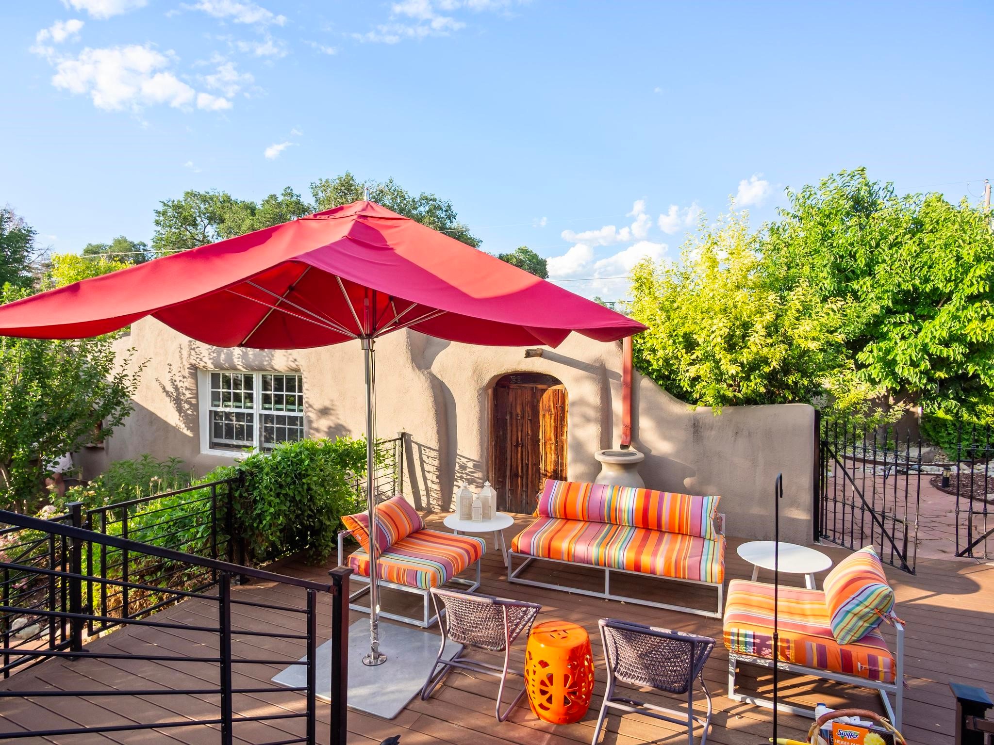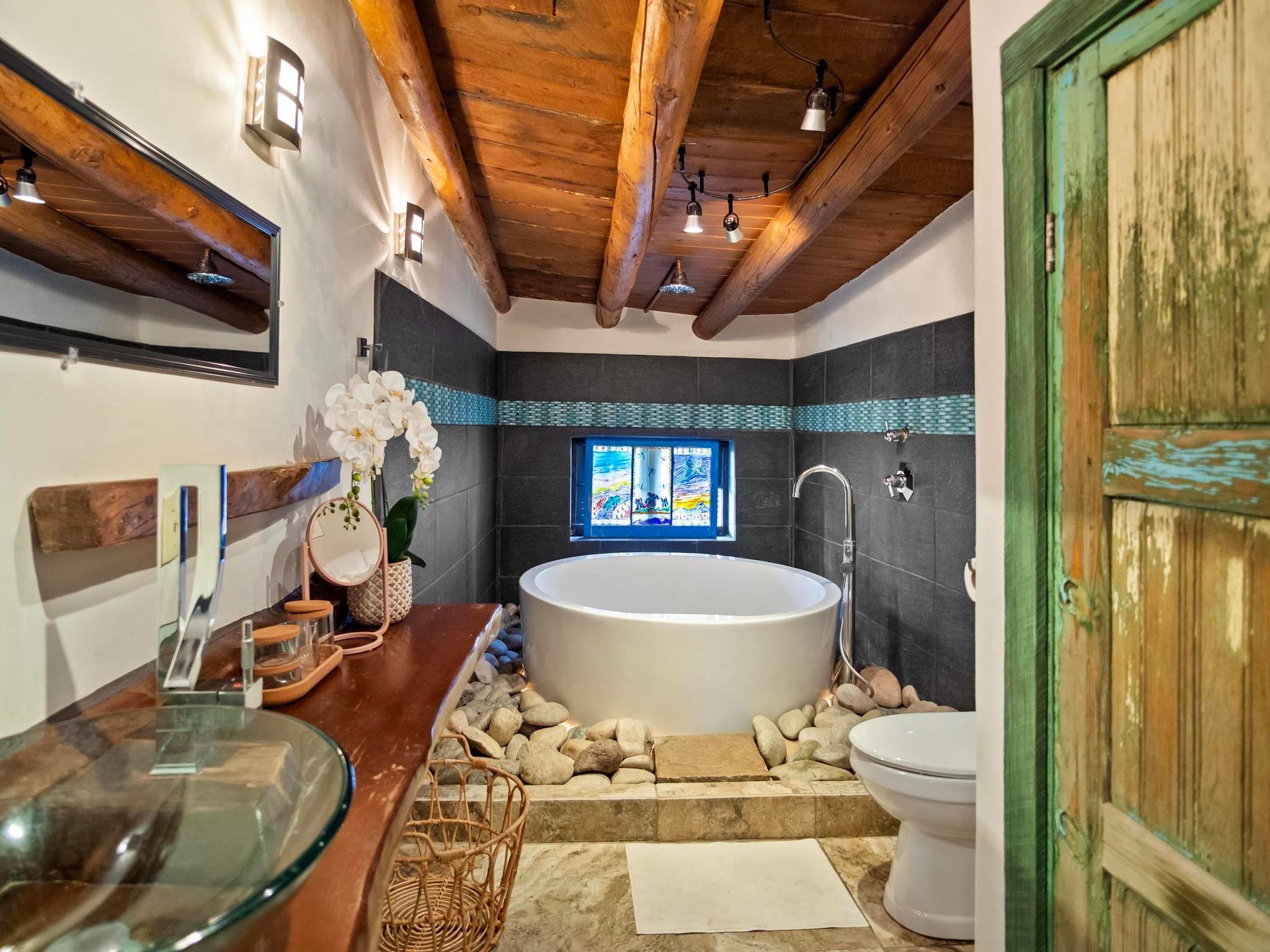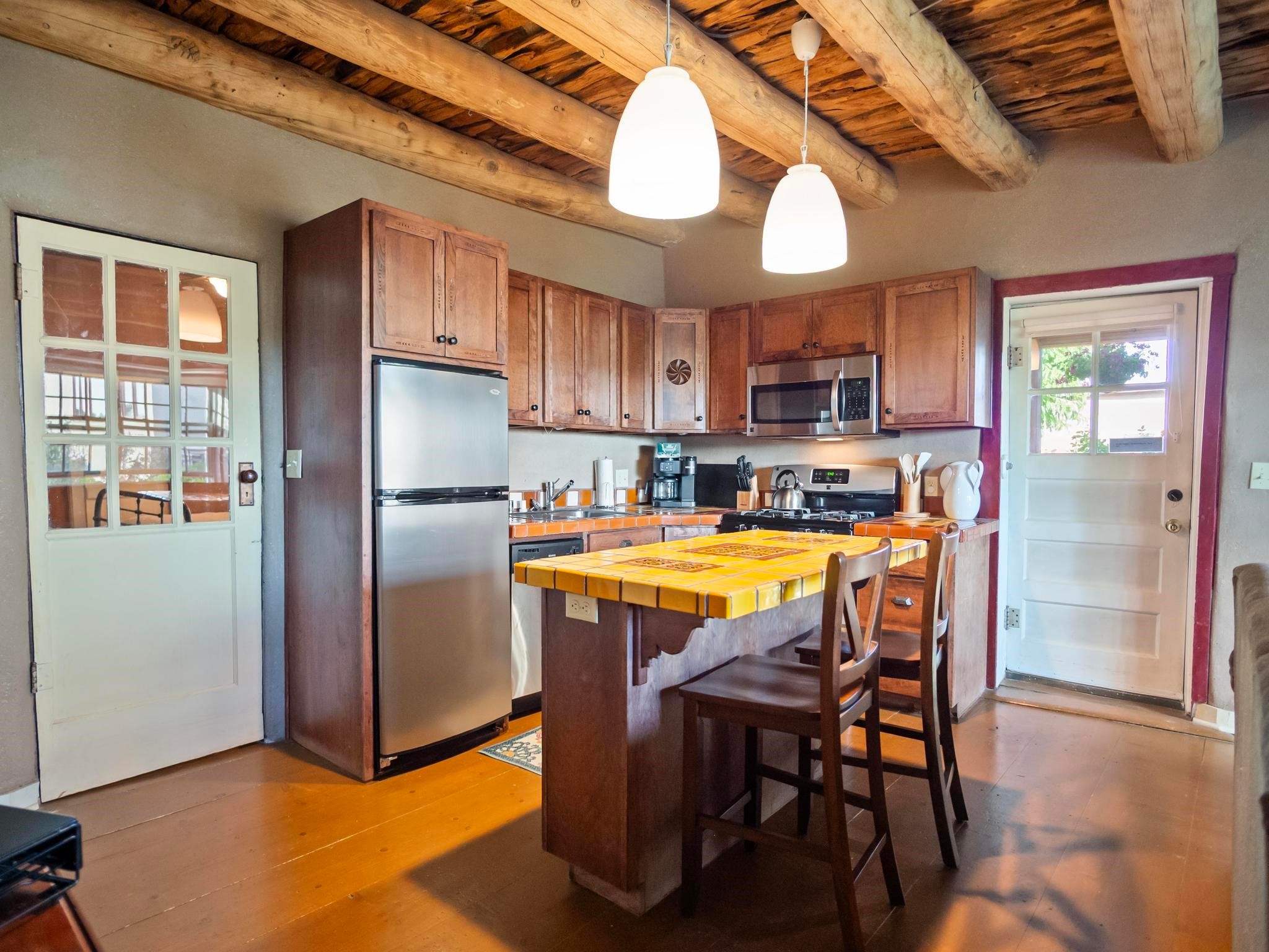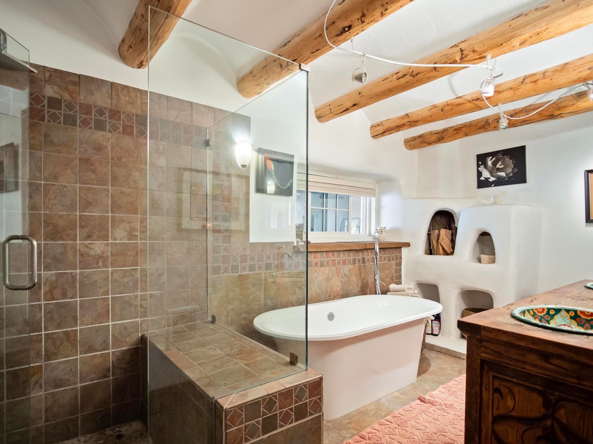 Wonderful historic Ranchos de Taos residence on 1.55 acres of land for in-town privacy. The primary home includes two attached guesthouses that can provide additional income or be used for expanded living space, a recently built studio could be converted into a separate apartment or used to pursue your artistic passions. The property is beautifully landscaped with multiple outdoor living spaces each enveloped by mature flowering flora. The home is what you would expect from a historic Taos dwelling, adobe block with plastered interior walls, New Mexican decor, 6 fireplaces, fine finishes, original hardwood floors, copper countertops and so much more. To top off this special property, there are acequia water rights top help keep the lawn and garden green and productive. The property is minutes from the Taos Plaza, restaurants, galleries and nightlife. Several iconic Taos landmarks are within walking distance and with a location on the south end of Taos there is the added benefit of being only an hour driving time to Santa Fe. You owe it to yourself to visit this amazing Taos retreat. Bring your toothbrush, this property is being sold furnished!