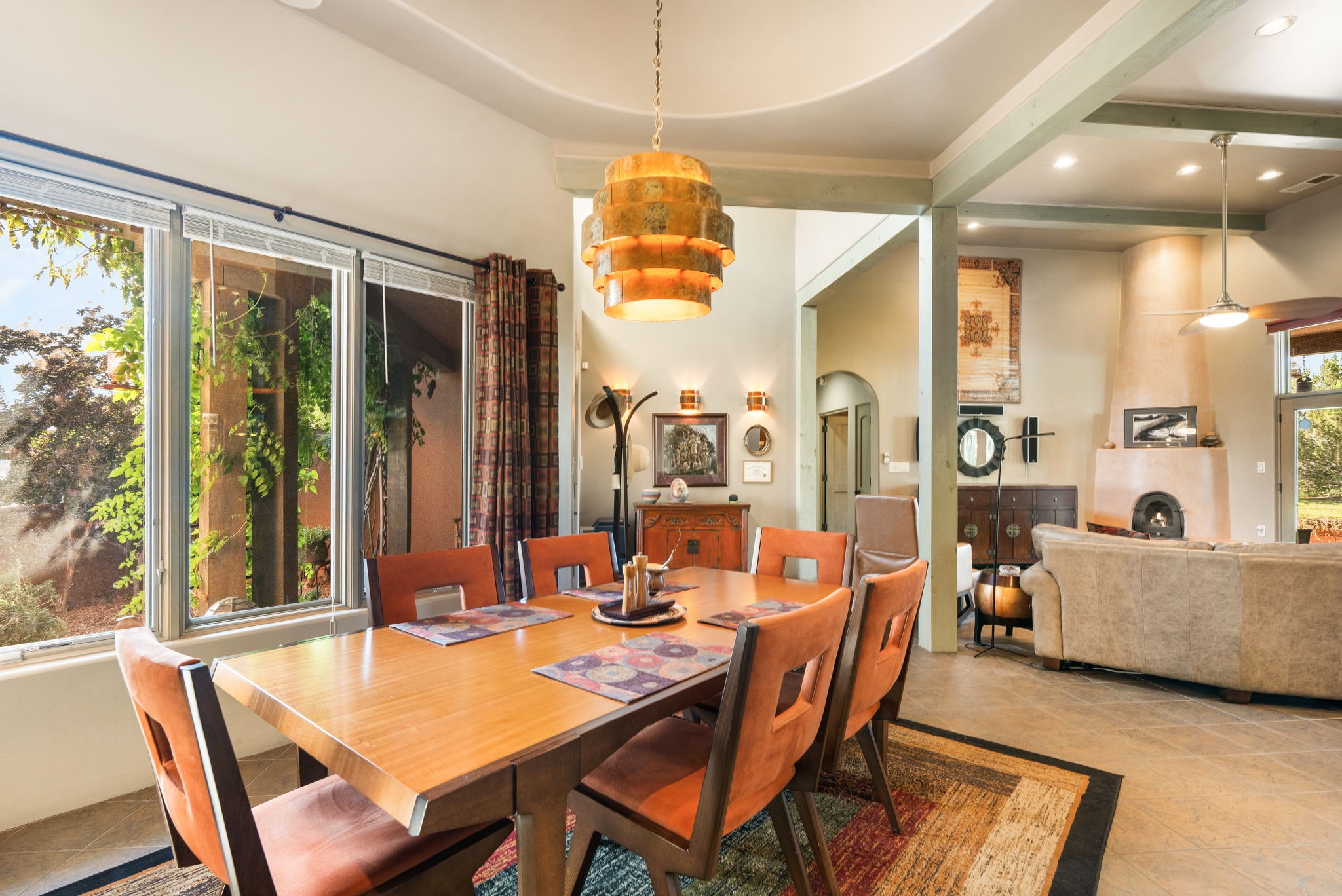 Perched Above It All | 53 Private Drive, Medanales, NMSet atop a quiet mesa with nearly 360 views of Northern New Mexico's iconic landscape, this soulful 3-bedroom, 2-bath Southwestern retreat rests on just under 9 acres of open sky and timeless beauty.Inside, the home blends rustic charm with clean comfort--Santa Fe-style smooth plaster walls, exposed wood beams, classic tile floors, and warm light moving through every space. With 2,295 square feet, the layout feels open and thoughtful, and a detached studio offers the perfect setup for remote work, a creative retreat, or private guest quarters. High-speed internet and refrigerated air ensure you're both off the grid and on the grid.From the front portal, the views stretch endlessly--from the Rio Chama Valley to the jagged outline of Cerro Pedernal, the mountain Georgia O'Keeffe painted again and again. There's a reason artists, writers, and seekers have long been drawn to this land--it stirs something deep.Whether you're sipping coffee at sunrise under your gazebo, sketching the shifting light, or heading out for a day trip to Abiquiu Lake, Ghost Ranch, or Ojo Caliente, life here moves slower, feels fuller, and breathes easier. Santa Fe is just 55 minutes away, Los Alamos about 45, and Taos a scenic 75-minute drive--putting world-class art, culture, and dining within easy reach.This isn't just a home--it's a place to live inspired.