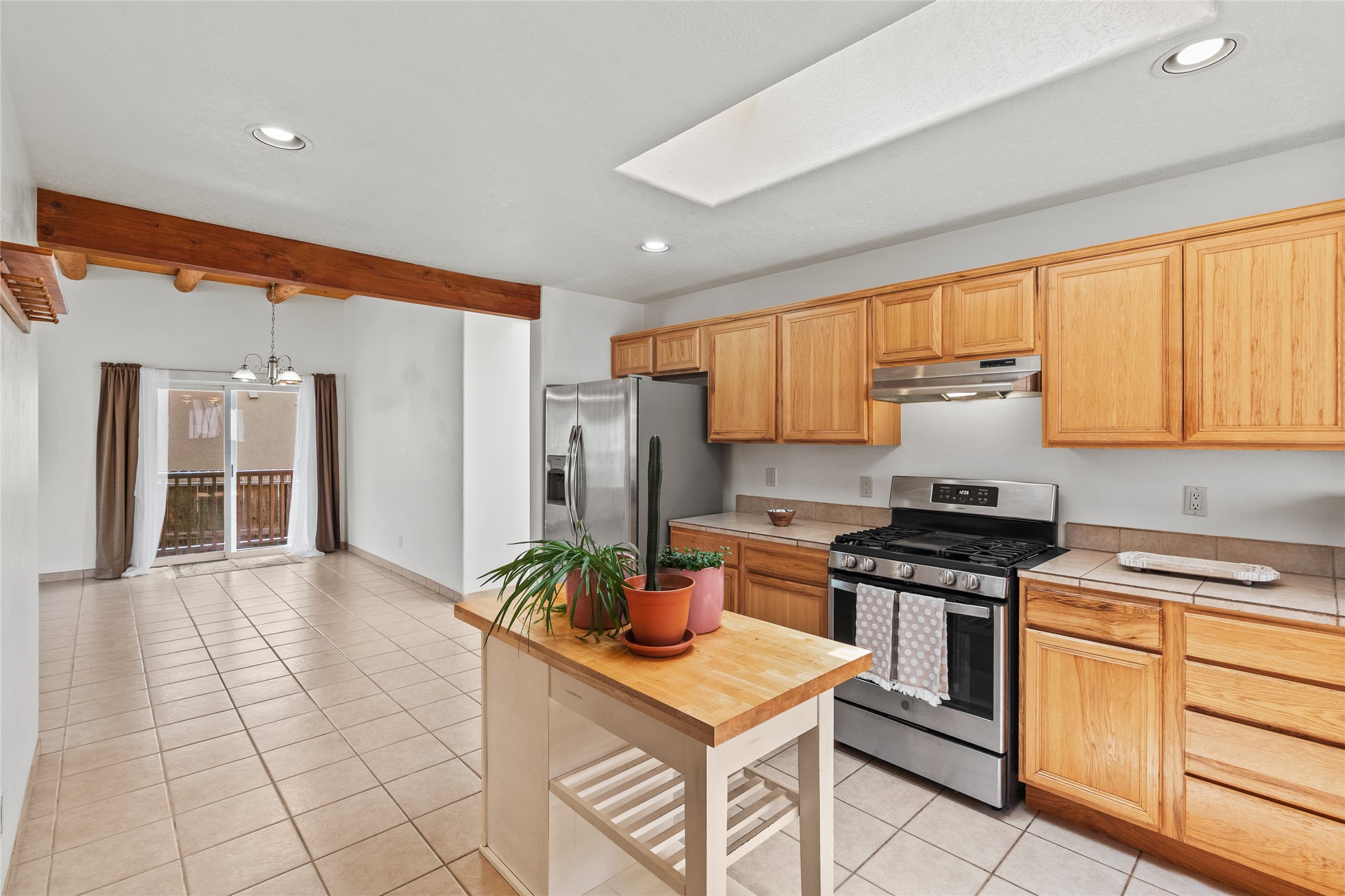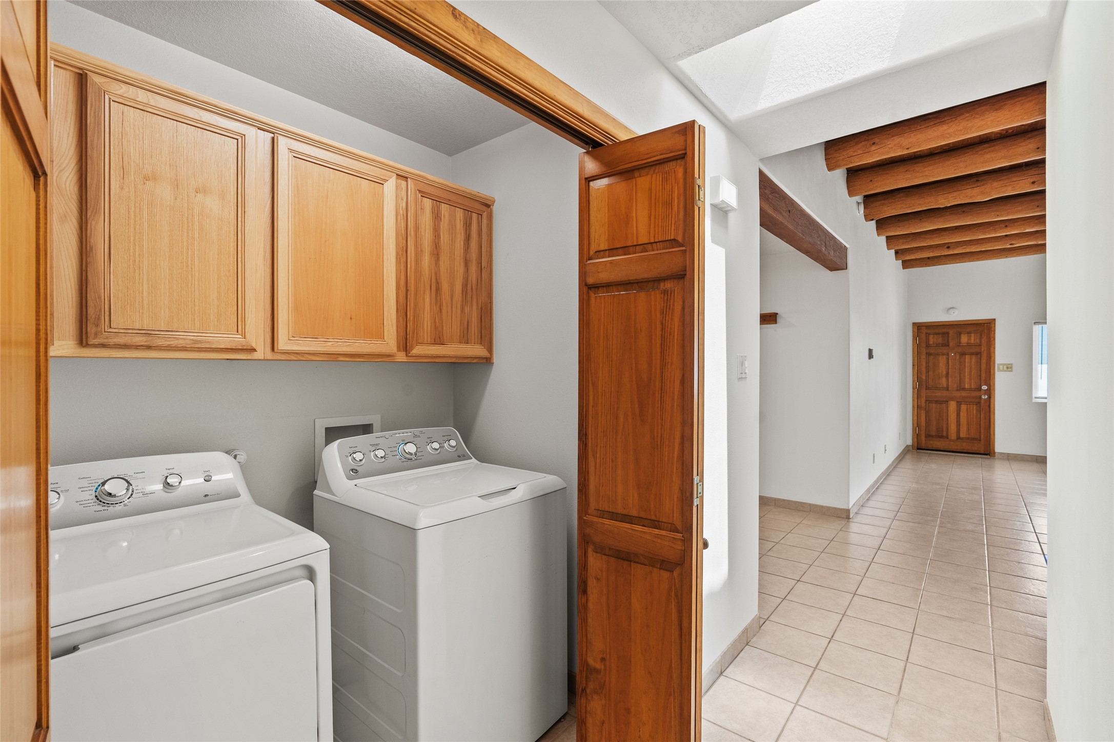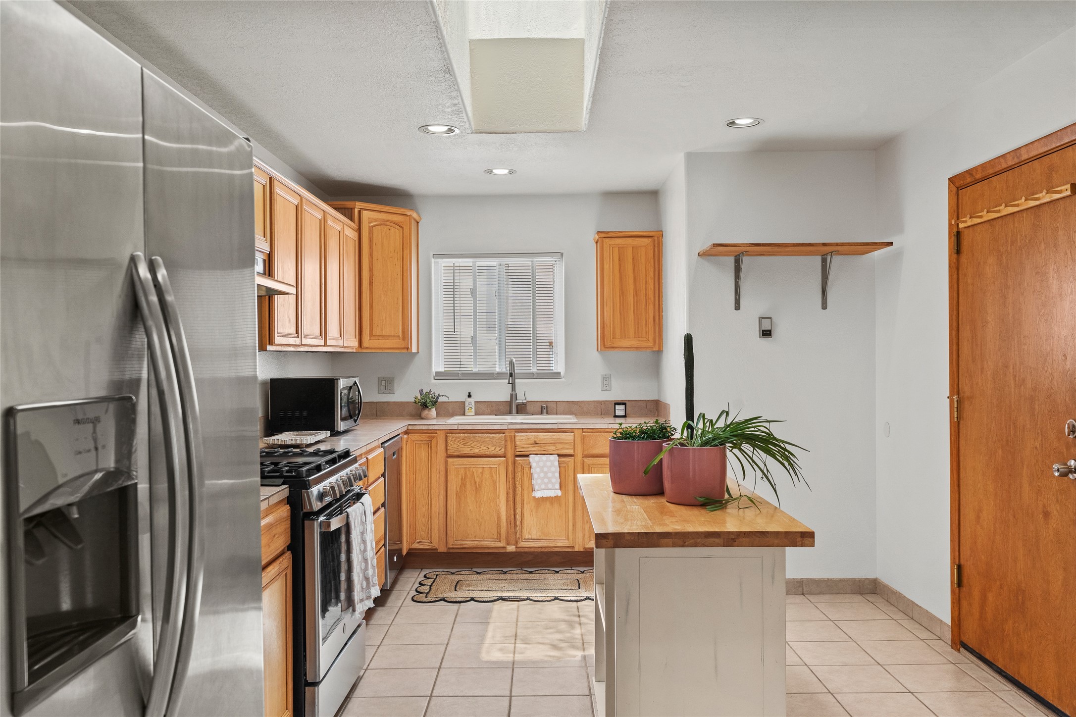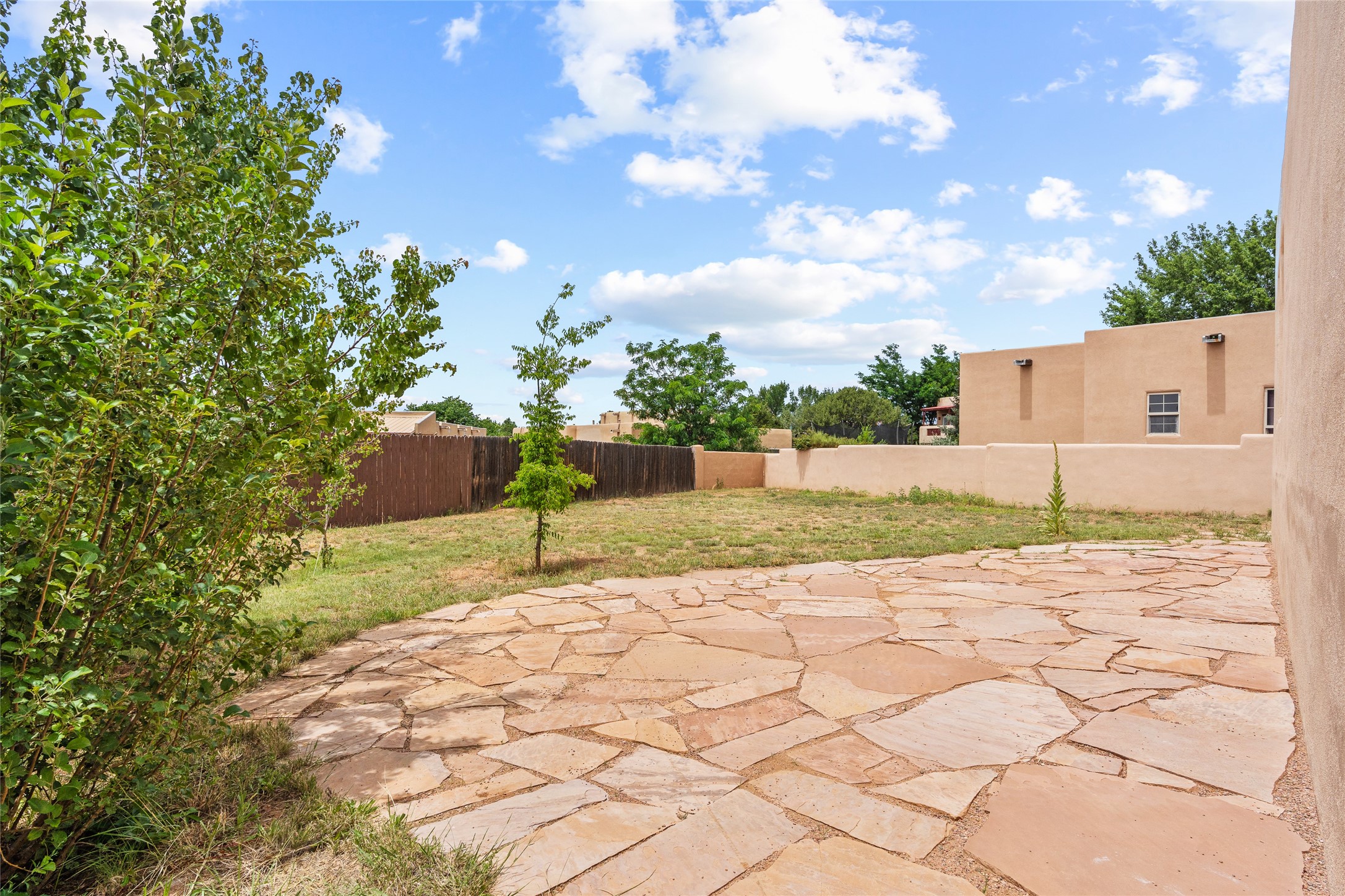 Welcome to 2866 Pueblo Jacona, a move-in ready gem tucked into one of Santa Fe's most beloved communities--Pueblos Del Sol. This sweet and sunny 3-bedroom, 2-bath home sits on an oversized lot with lovely front landscaping and an expansive backyard that offers room to relax, play, and dream. Step inside to find a warm and inviting interior with beautiful tongue-and-groove ceilings accented by classic vigas, adding rich character and Southwestern charm. The open living and dining area flows easily to the outdoors, where a covered deck leads to a flagstone path, mature trees, and a large flagstone patio--a perfect spot for entertaining or enjoying Santa Fe's beautiful weather. Freshly painted and newly carpeted in all bedrooms, the home feels fresh and move-in ready. Three comfortable bedrooms, two full baths, and a 2-car garage round out this thoughtfully maintained home. Pueblos Del Sol is known for its beautiful walking trails, community parks, and proximity to schools, shopping, and restaurants, making this a perfect location for full-time living or a second home retreat. Come experience the charm, character, and light of 2866 Pueblo Jacona--your next chapter starts here.