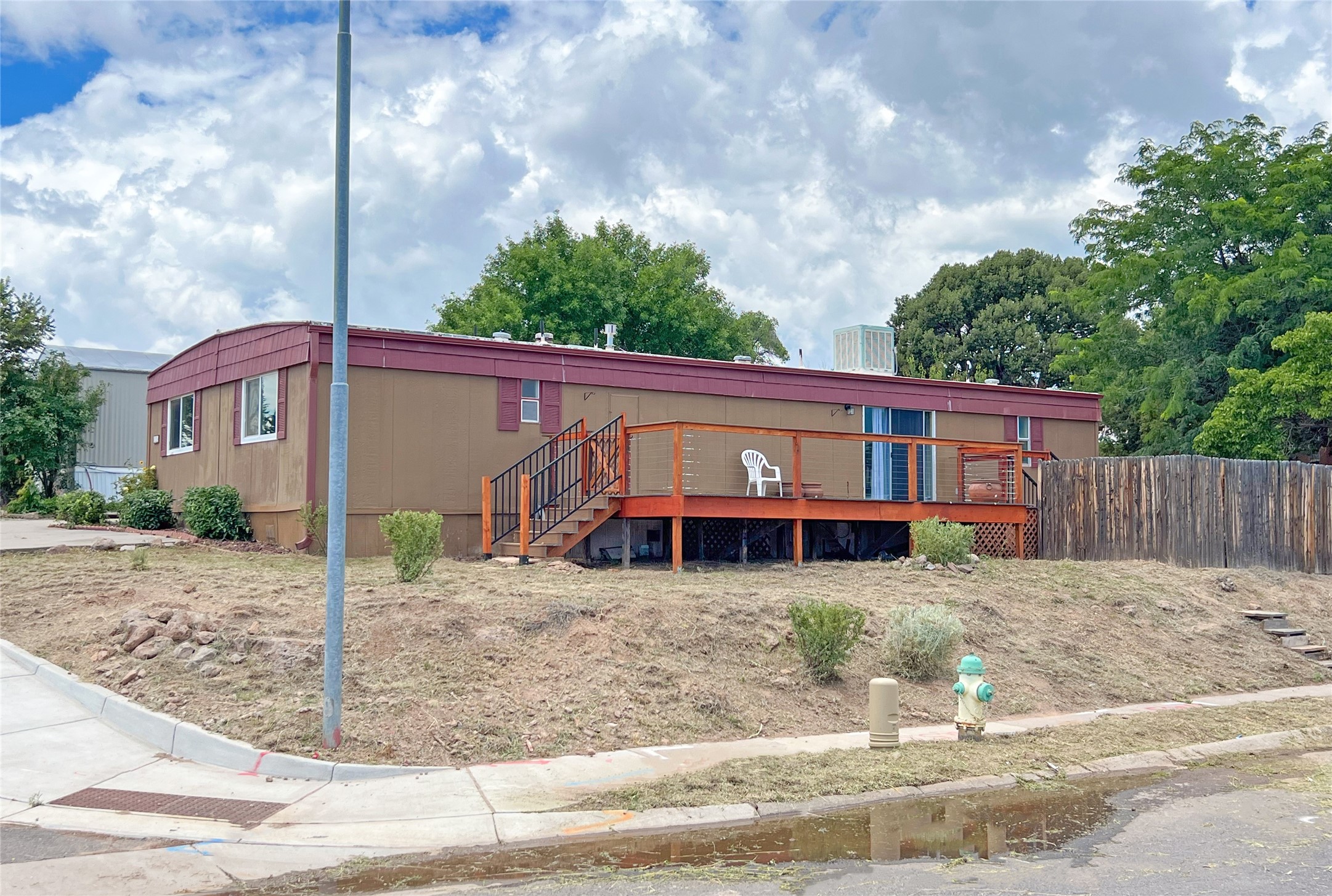Don't miss this incredible opportunity to own a 3-bedroom, 2-bath home situated on a spacious corner lot in the Tsikumu Village neighborhood of Los Alamos. The home underwent an interior renovation in 2021, which included a modern kitchen with ample countertops, many cabinets, recessed lighting, and stainless steel appliances. Durable wood-vinyl flooring runs through the living area, while vinyl tile is in the dining room, and updated laminate flooring is in the primary bedroom. The open-concept layout offers a bright and welcoming space that's completely move-in ready. Step outside to a private, fully fenced backyard perfect for relaxing or entertaining. Enjoy the low-maintenance Trex deck, mature trees, and a shed with electricity, perfect for a workshop, studio, or additional storage. The property also includes a gated carport and ample off-street parking. This large corner lot offers extra space and plenty of curb appeal. Come see all that this well-located home has to offer. Schedule a private showing today.