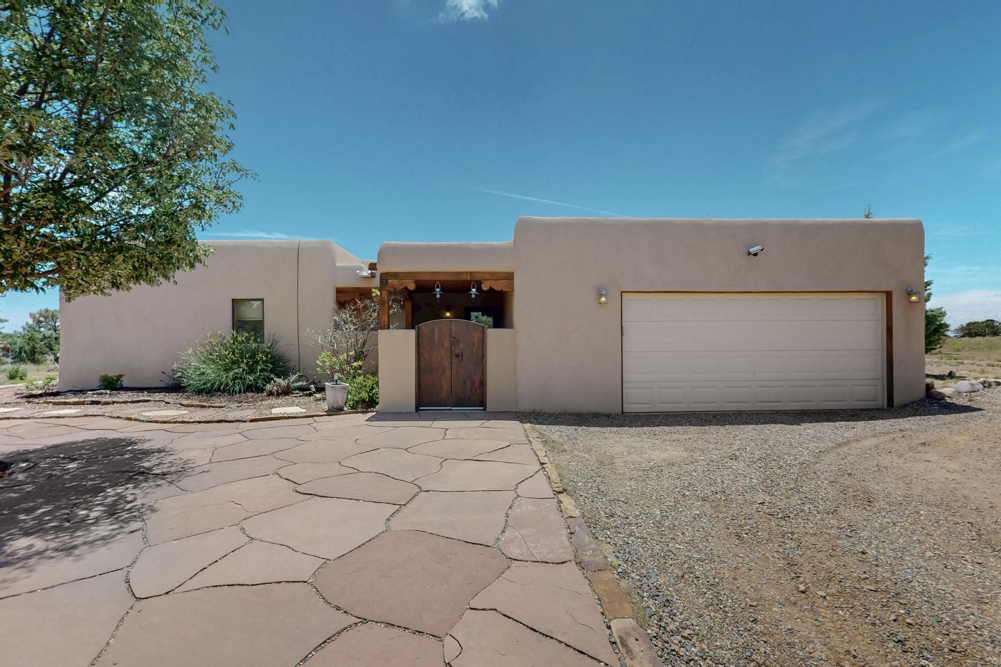 Enjoy privacy and stunning views from this Eldorado home, featuring a tranquil back garden oasis with serene mountain vistas. This well-loved property has only had two owners and is move-in ready. Many updates over the years include high-end Pella windows, re-stuccoing, re-roofing, new skylights, toilet replacements in 2023, a water heater replacement in 2018, and much more. Please see the list of all the updates. You will spend most of your time in this stunning backyard that is filled with mature trees, lush landscaping, and plenty of singing birds. The large covered portal allows you to enjoy all your meals outdoors in the beautiful Santa Fe weather. It is hard to find a home that is this well cared for.