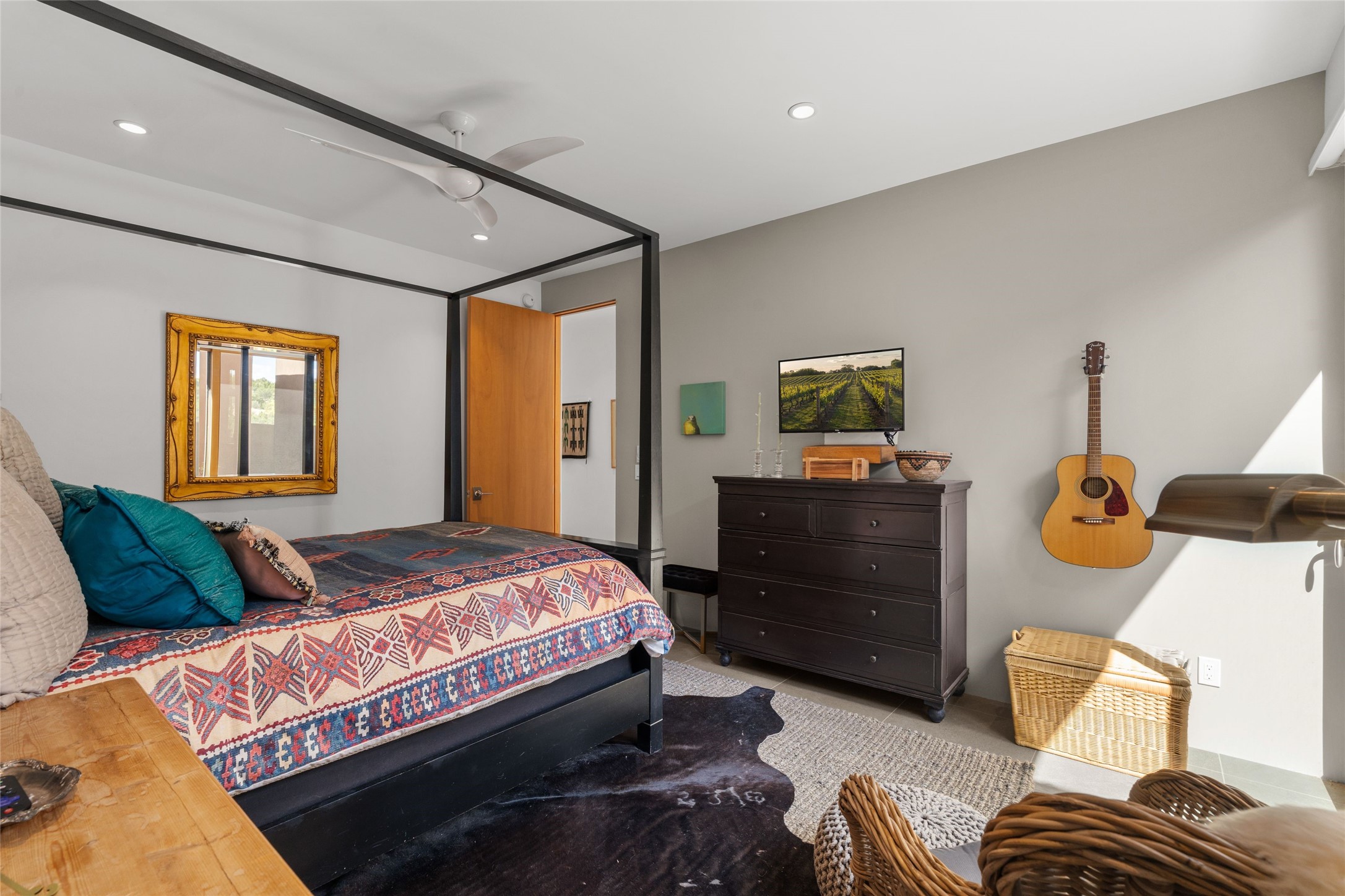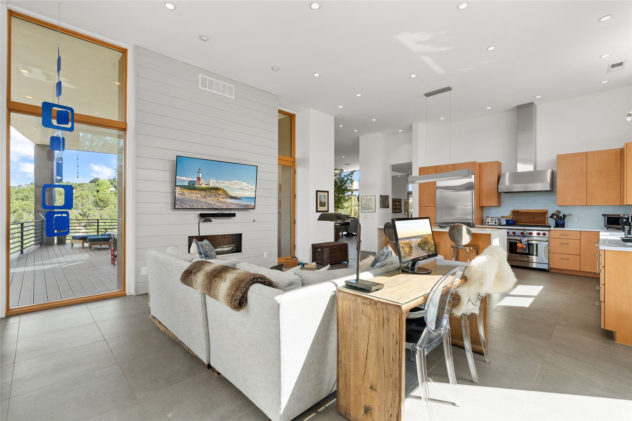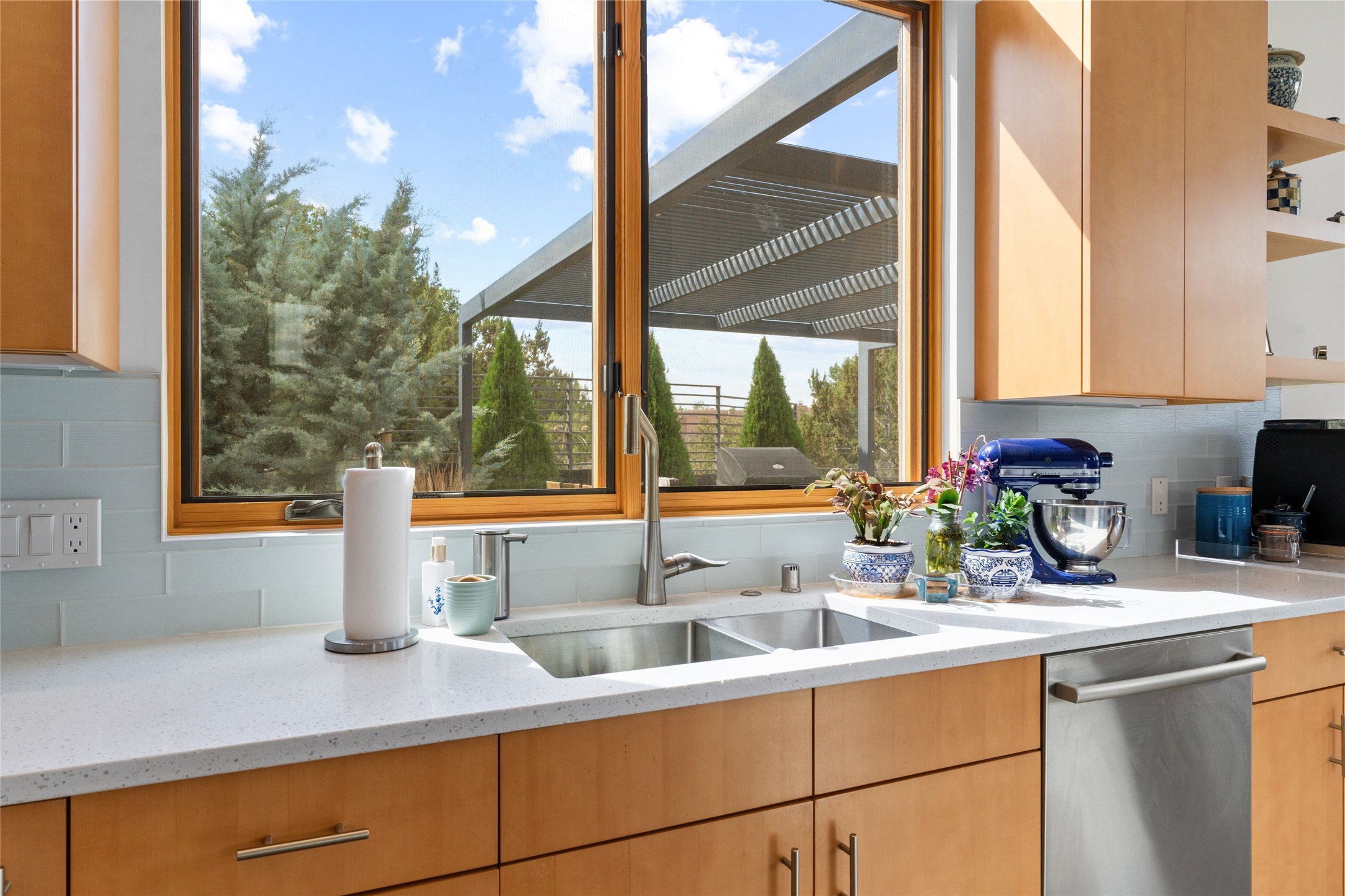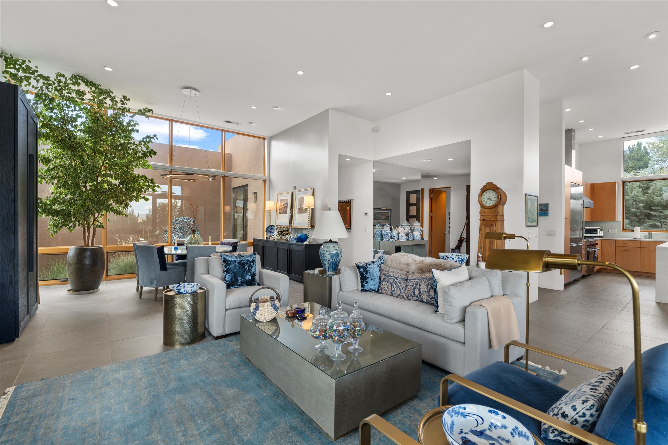 Welcome to the Opera House. Just a stones throw to the entrance to the world renowned Santa Fe Opera is this stunning soft contemporary home situated on a beautiful view lot that boasts expansive private views of the Sangre de Christo Mountain range and the Badlands to the north. This light filled home is a dream residence for the most discriminating Buyer. Top of the line quality abounds in every area from landscaping, custom rock retaining walls, and a stone drive way that greet your guests arrival. Extensive native plant landscaping compliments every entry for a dramatic effect. Custom outdoor kitchen is a entertaining dream plus a fully covered deck that faces the north east off both living areas. The home offers a split floor plan, each bedroom with their own ensuite bath and privacy. The 2 living areas have soaring floor to ceiling windows with unobstructed views. Top of the line appliances, cabinetry that grace the kitchen great room area for a spacious and relaxed environment. Custom hot tub, a bonus, overlooking the mountains and natural landscape and offering a starlit New Mexico sky for your evening relaxation. Impeccably maintained, one of a kind, this this property is a special offering.