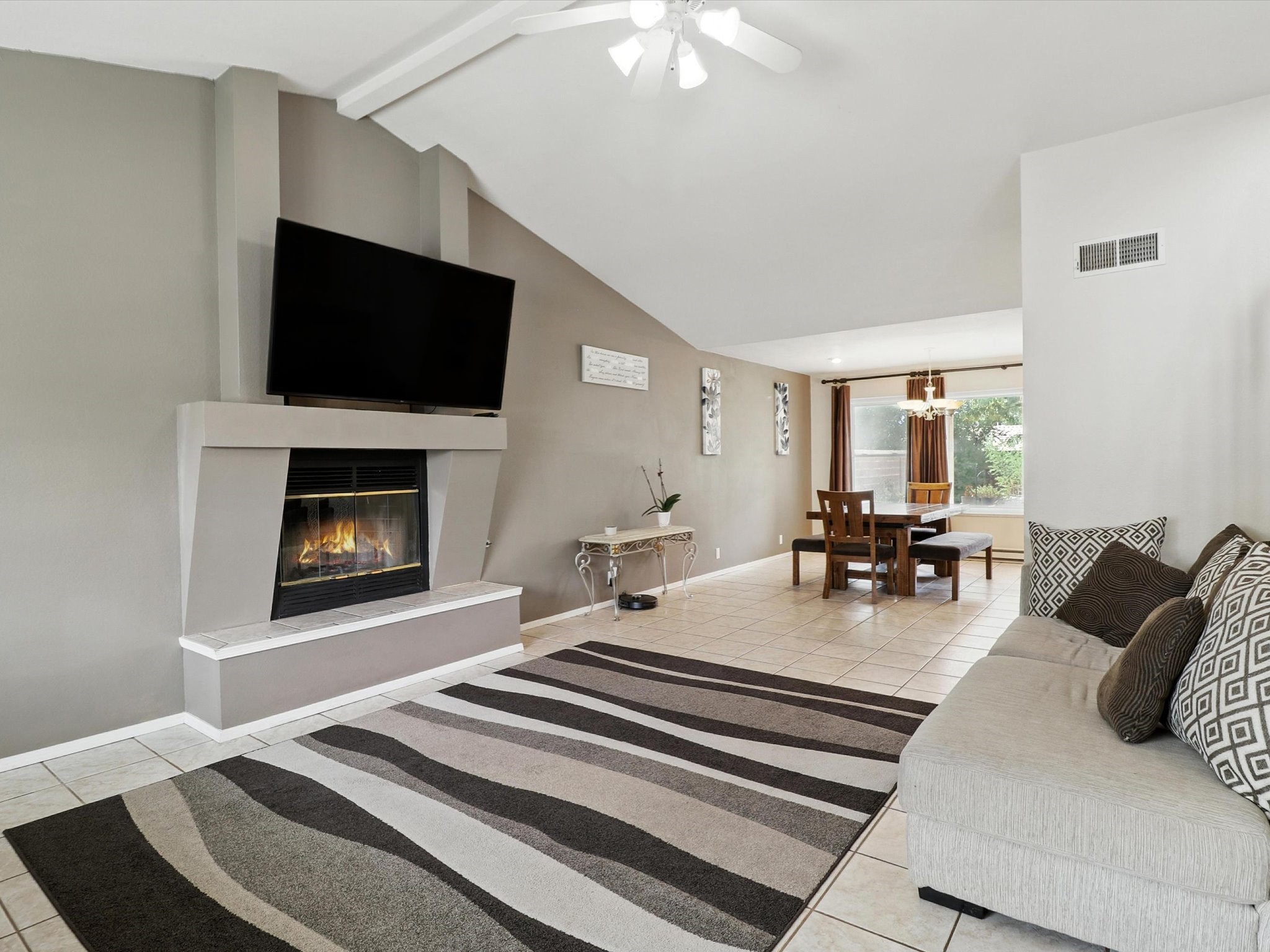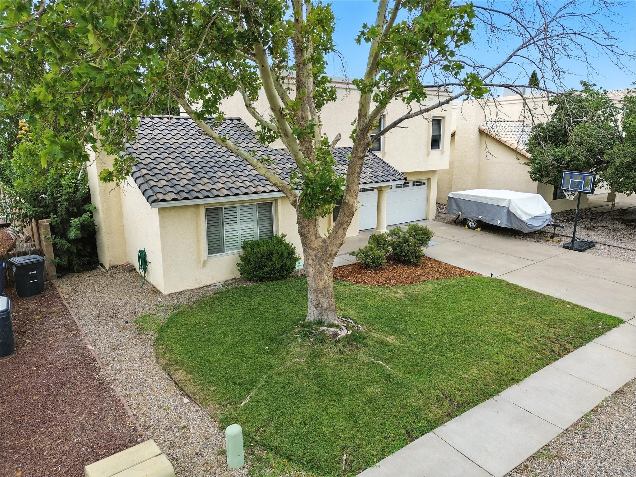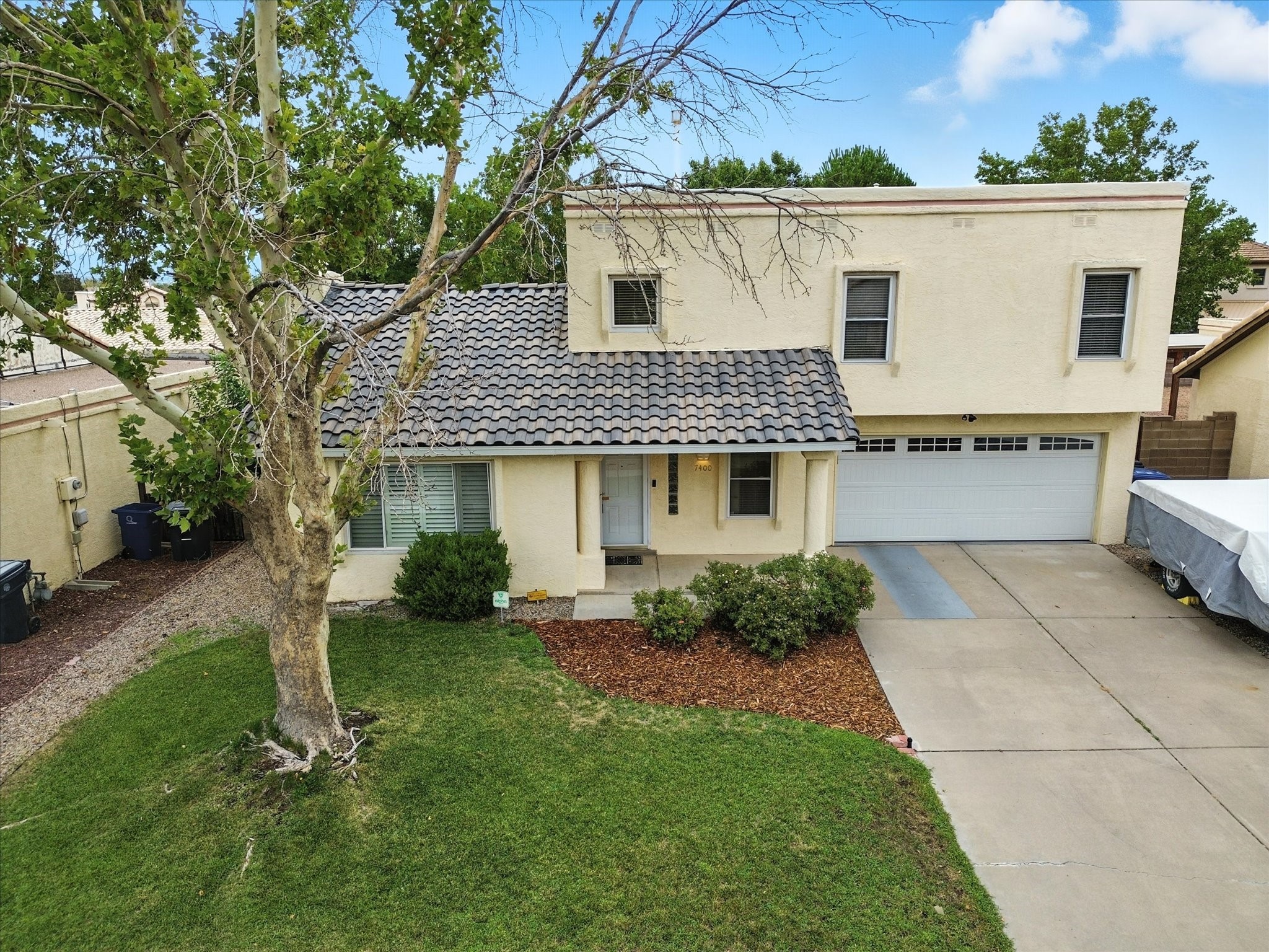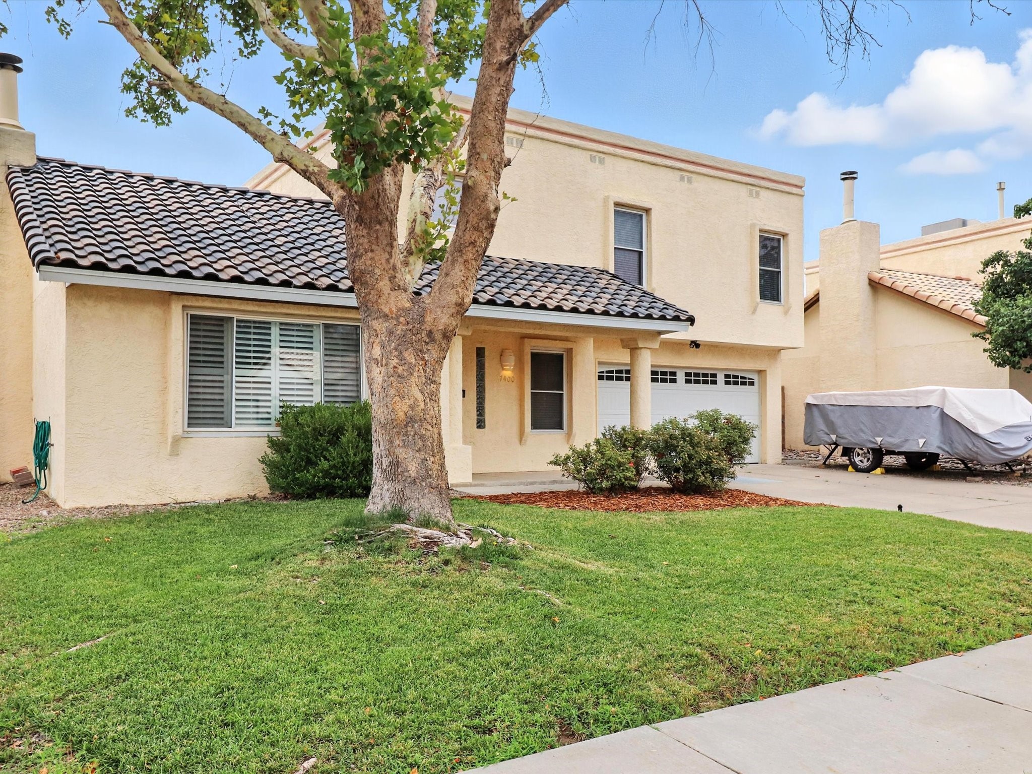 Discover this spacious 3-bedroom, 4-bathroom Spanish Contemporary home located on Albuquerque's desirable Westside in Ladera Heights. With 2,318 square feet of well-designed living space, this property offers a seamless blend of comfort, style, and function. Step inside to warm maple wood-laminate and tile flooring throughout, a dramatic vaulted ceiling in the living area, and a cozy wood, burning fireplace that adds charm and comfort. The generous floor plan offers versatile living and dining spaces ideal for both everyday life and entertaining. The home includes a two-car garage for added convenience, and the beautifully landscaped yards feature natural grass in both the front and back. The backyard is perfect for gatherings, outdoor dining, or simply enjoying the New Mexico sunshine. Perfectly located with excellent proximity to Coors Boulevard, Unser, and I-40, this home offers easy access to shopping, dining, parks, and major commuting routes-combining comfort, convenience, and style in one exceptional package. Imagine the Possibilities and schedule your showing today.