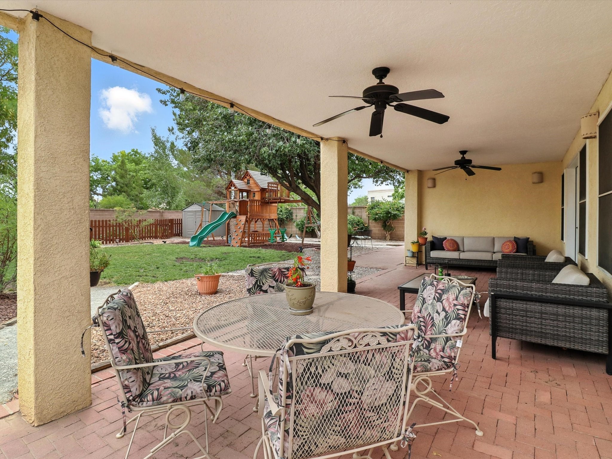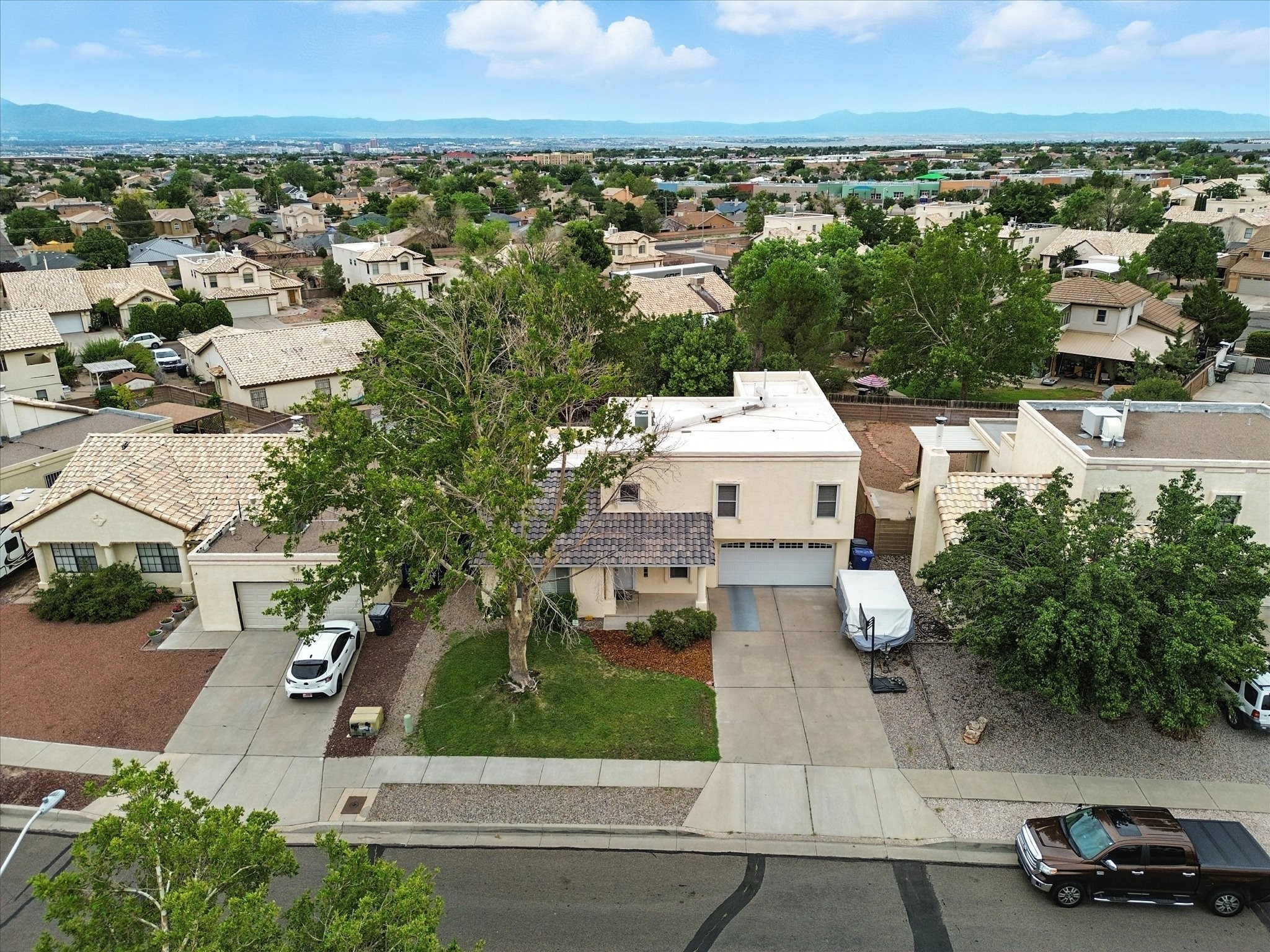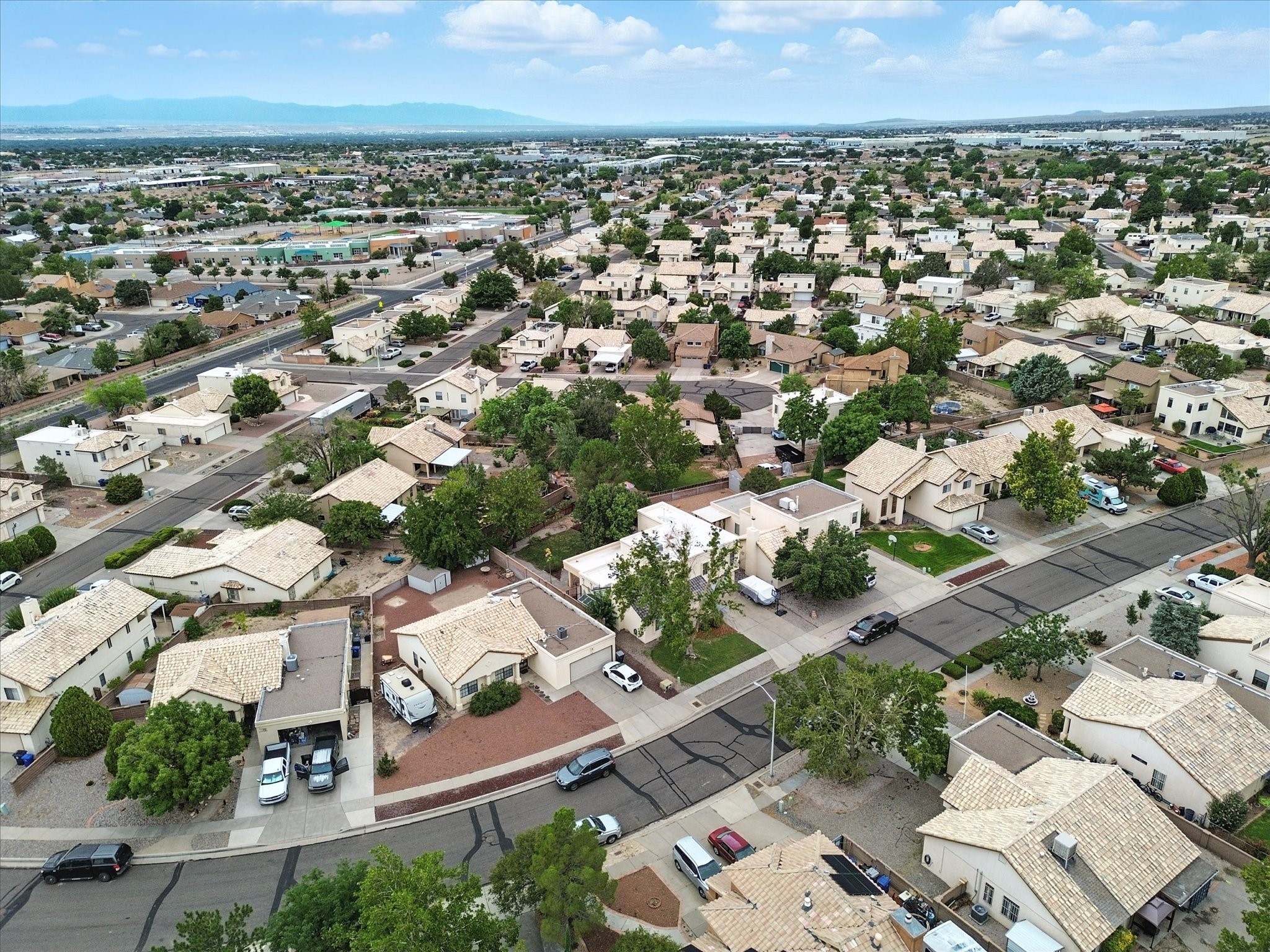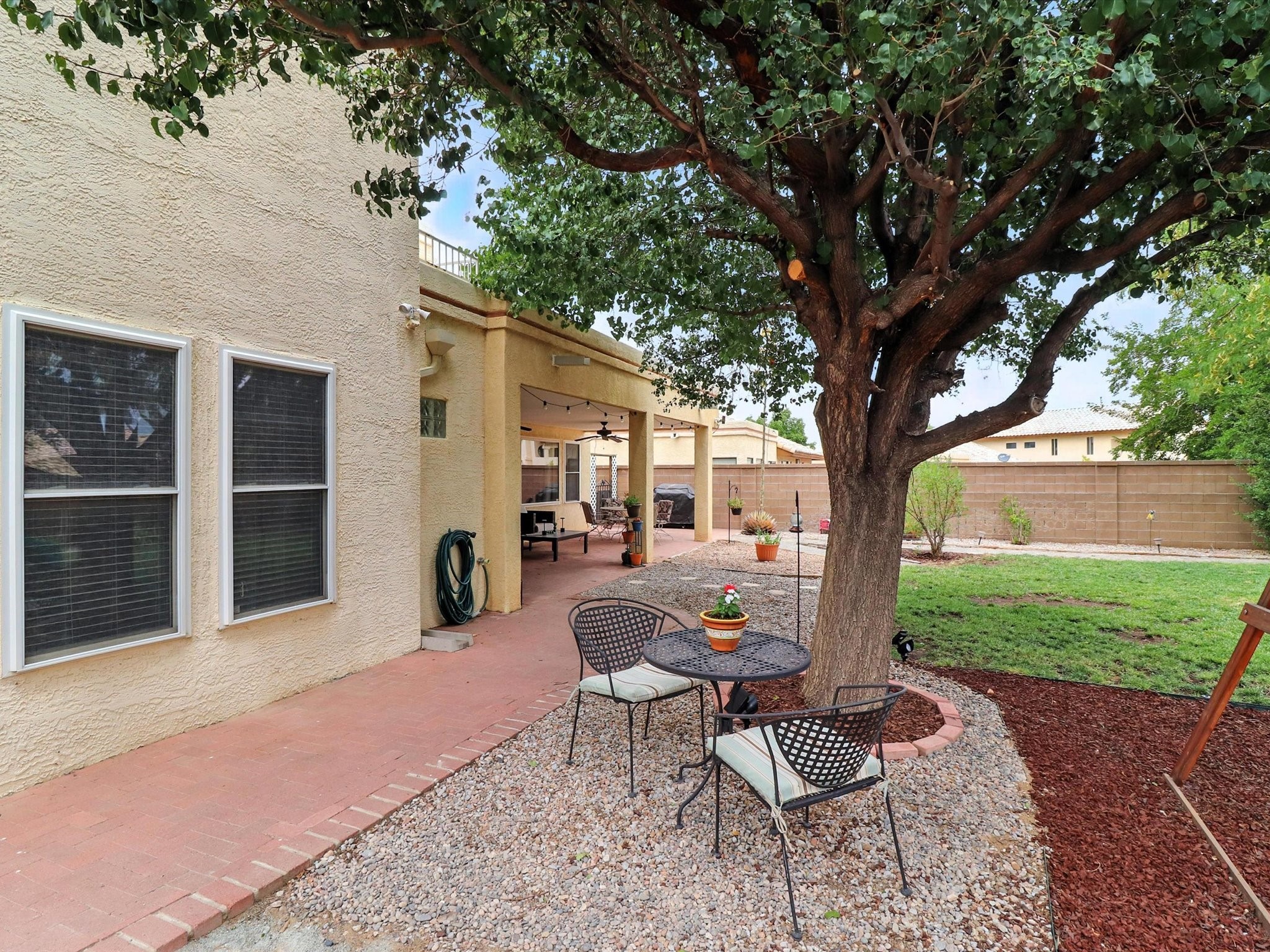 Discover this spacious 3-bedroom, 4-bathroom Spanish Contemporary home located on Albuquerque's desirable Westside in Ladera Heights. With 2,318 square feet of well-designed living space, this property offers a seamless blend of comfort, style, and function. Step inside to warm maple wood-laminate and tile flooring throughout, a dramatic vaulted ceiling in the living area, and a cozy wood, burning fireplace that adds charm and comfort. The generous floor plan offers versatile living and dining spaces ideal for both everyday life and entertaining. The home includes a two-car garage for added convenience, and the beautifully landscaped yards feature natural grass in both the front and back. The backyard is perfect for gatherings, outdoor dining, or simply enjoying the New Mexico sunshine. Perfectly located with excellent proximity to Coors Boulevard, Unser, and I-40, this home offers easy access to shopping, dining, parks, and major commuting routes-combining comfort, convenience, and style in one exceptional package. Imagine the Possibilities and schedule your showing today.