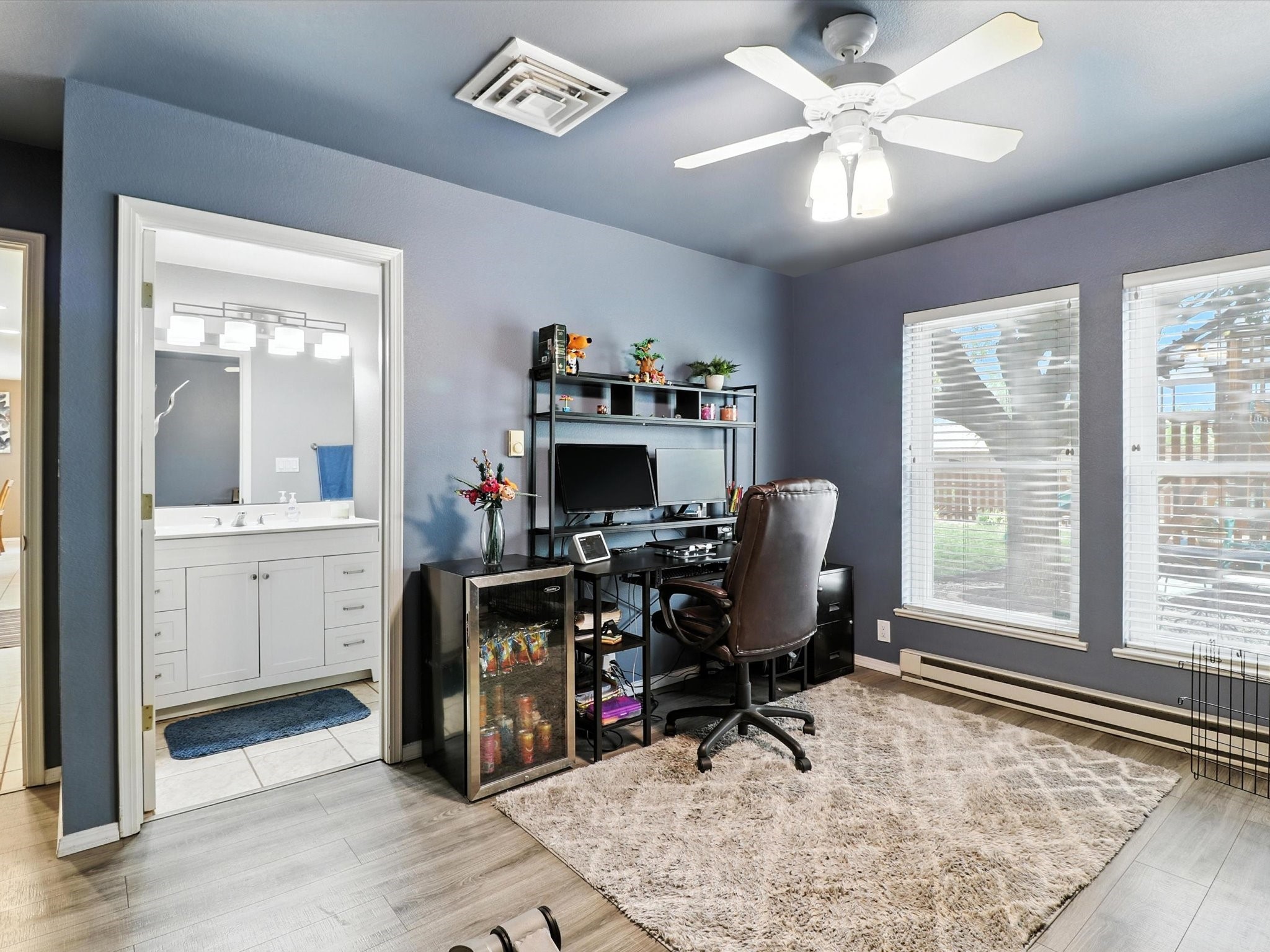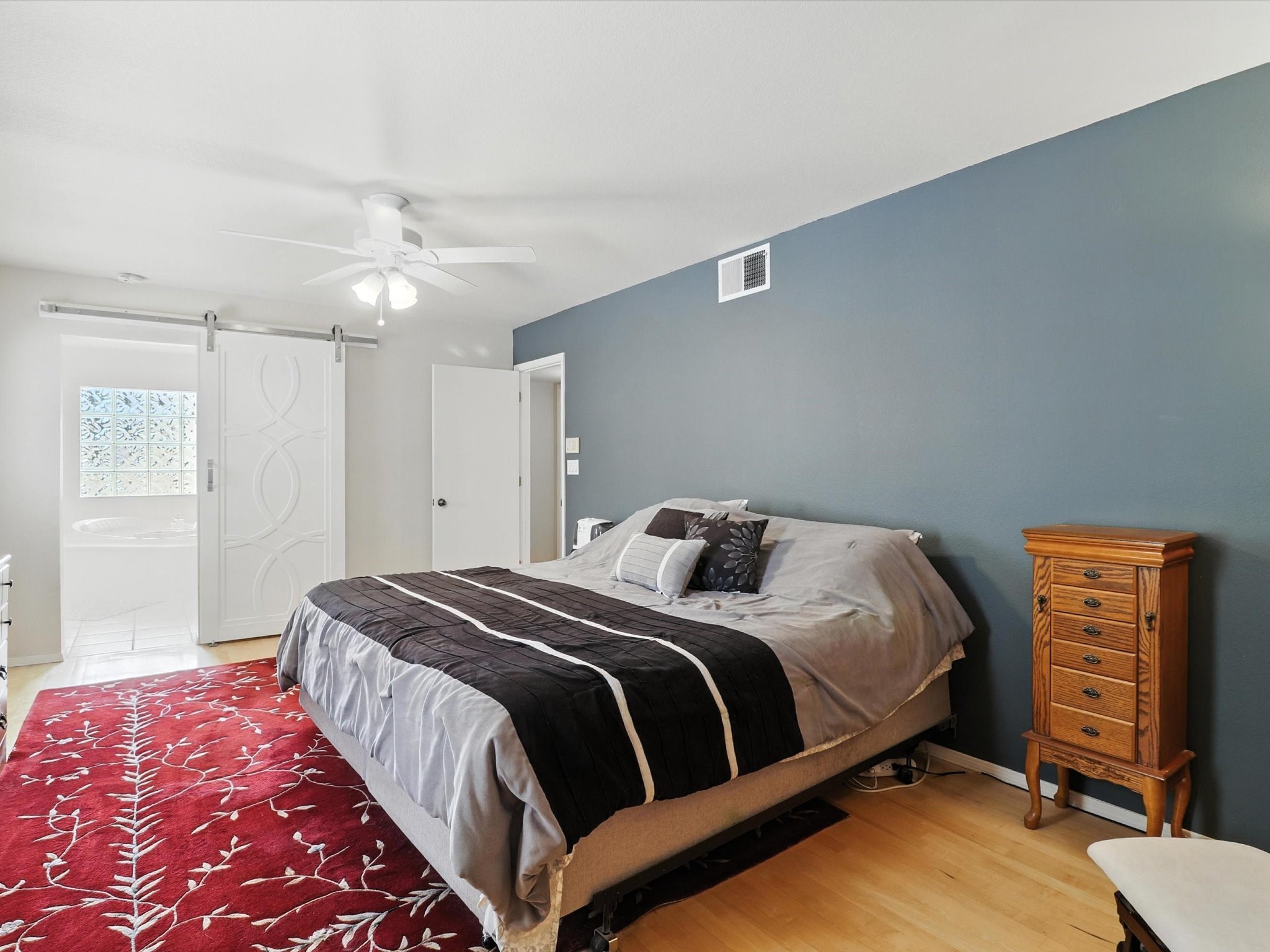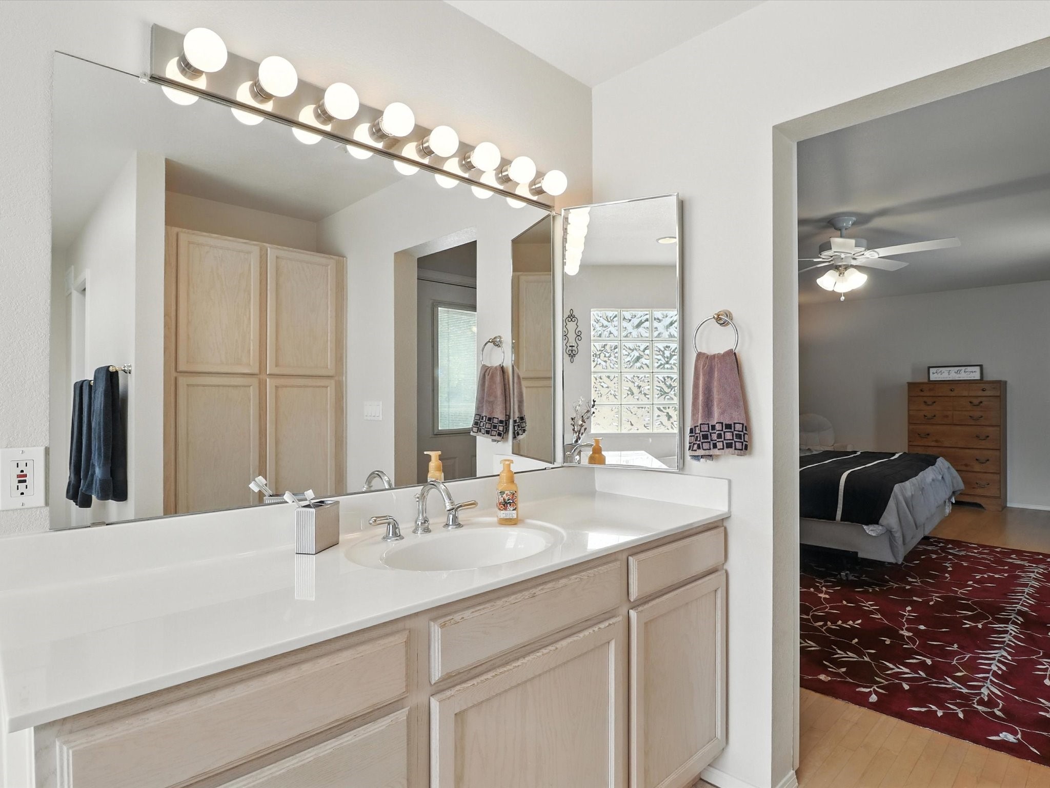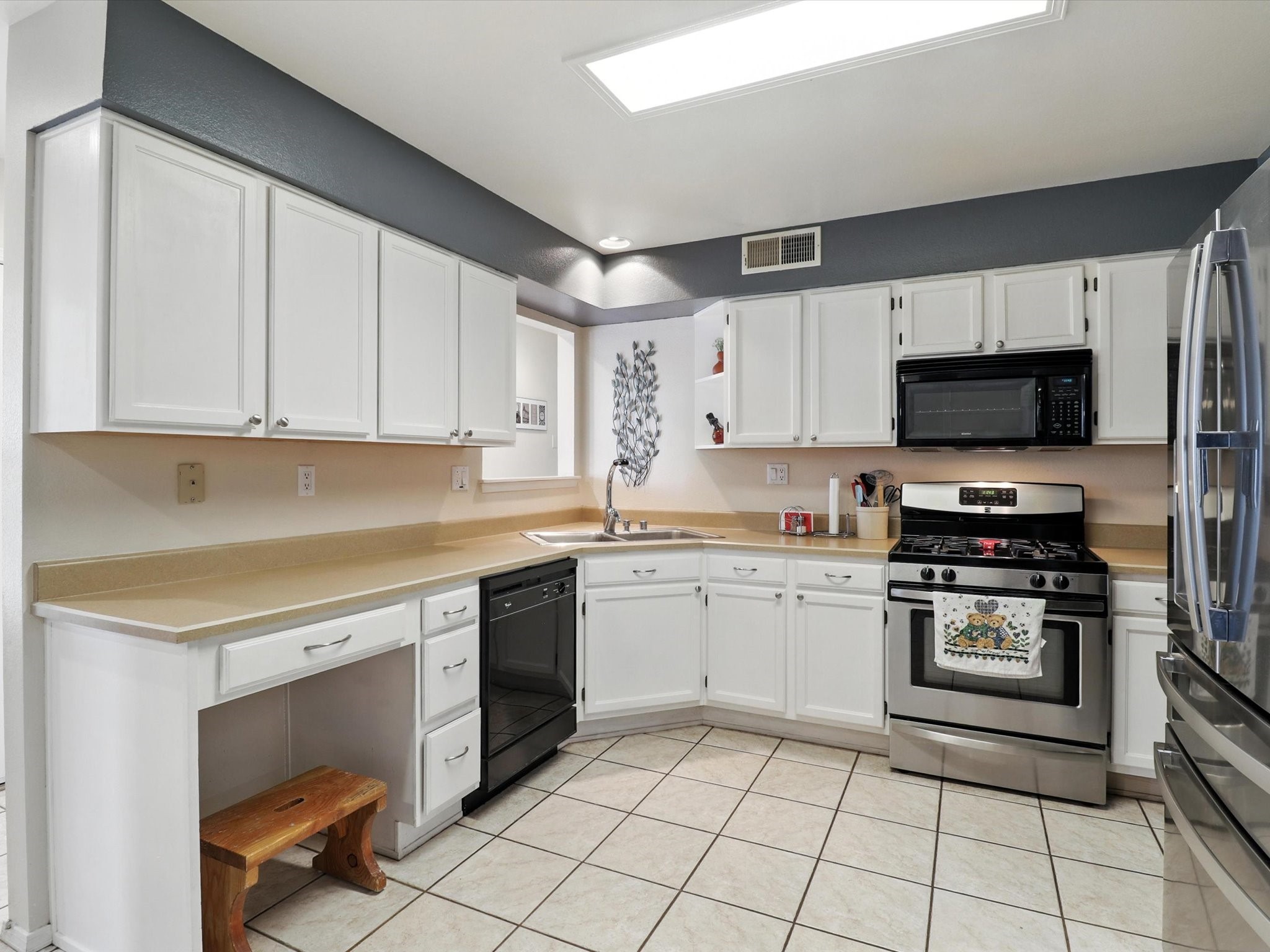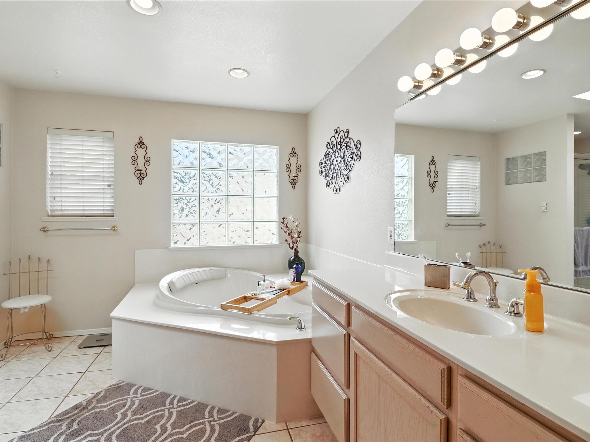 Discover this spacious 3-bedroom, 4-bathroom Spanish Contemporary home located on Albuquerque's desirable Westside in Ladera Heights. With 2,318 square feet of well-designed living space, this property offers a seamless blend of comfort, style, and function. Step inside to warm maple wood-laminate and tile flooring throughout, a dramatic vaulted ceiling in the living area, and a cozy wood, burning fireplace that adds charm and comfort. The generous floor plan offers versatile living and dining spaces ideal for both everyday life and entertaining. The home includes a two-car garage for added convenience, and the beautifully landscaped yards feature natural grass in both the front and back. The backyard is perfect for gatherings, outdoor dining, or simply enjoying the New Mexico sunshine. Perfectly located with excellent proximity to Coors Boulevard, Unser, and I-40, this home offers easy access to shopping, dining, parks, and major commuting routes-combining comfort, convenience, and style in one exceptional package. Imagine the Possibilities and schedule your showing today.