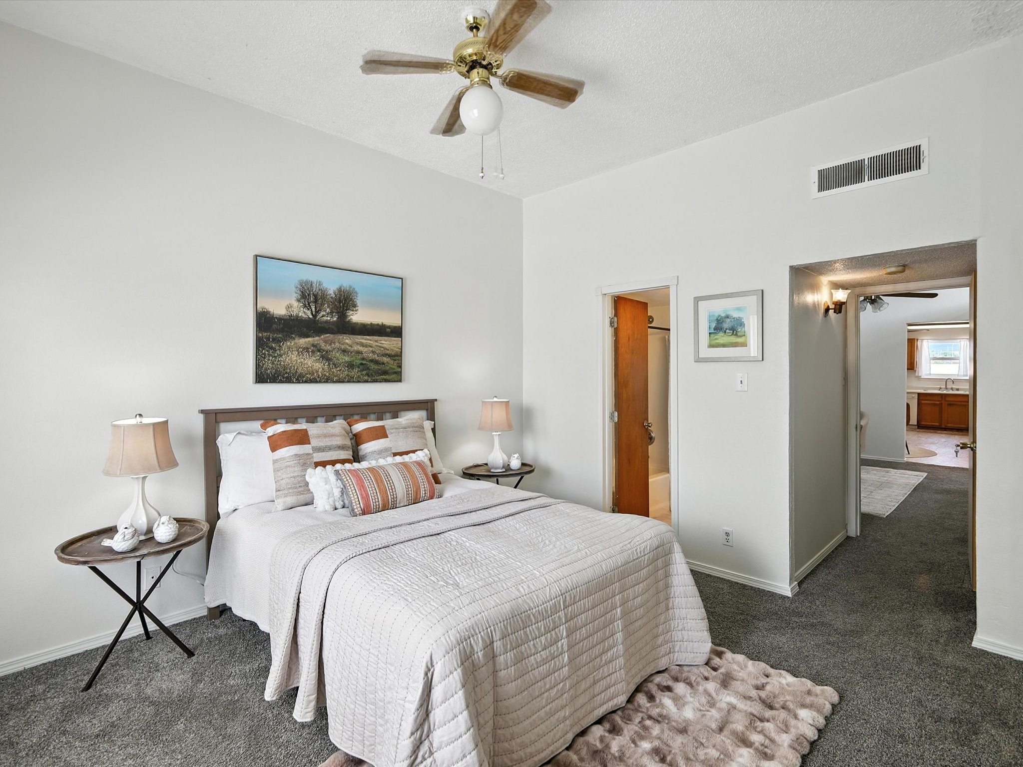 Perfect Home for Families or Investors - Low Maintenance & Prime Location. This thoughtfully designed single-level home is ideal for families or savvy investors seeking a low-maintenance property in a convenient Santa Fe location. With no interior steps, it offers easy accessibility and comfort throughout. Highlights include: Two skylights for natural light, Ceiling fans in most rooms to enhance airflow, Private, walled backyard - perfect for relaxing or entertaining outdoors, Minimal upkeep required, offering peace of mind for busy lifestyles or rental purposes. Situated close to Santa Fe's premier westside restaurants, shopping, Meow Wolf, and major commuter routes including 599, Cerrillos Rd., and St. Francis Dr., this home offers both comfort and convenience. Don't miss this versatile opportunity in one of Santa Fe's most accessible neighborhoods.