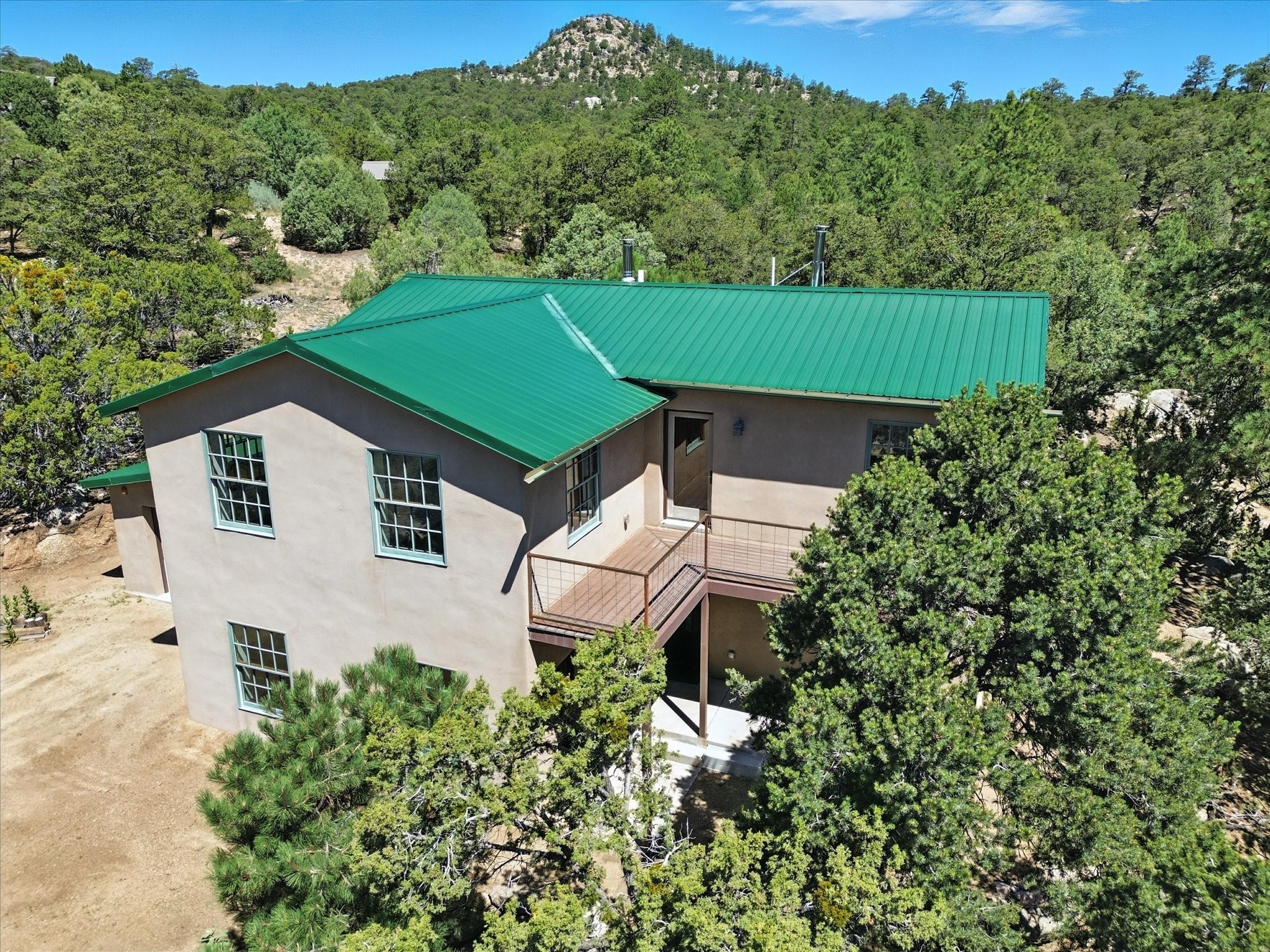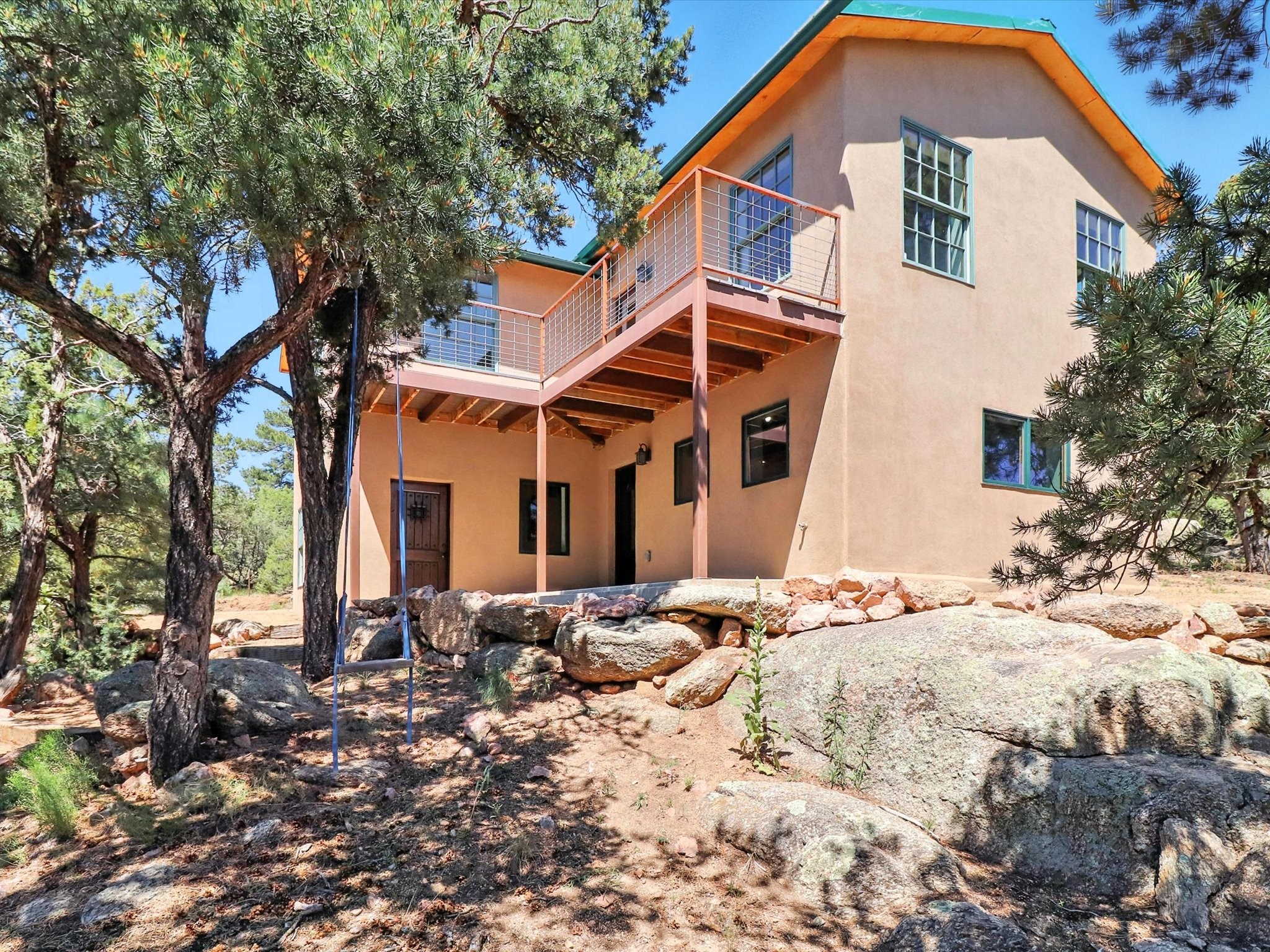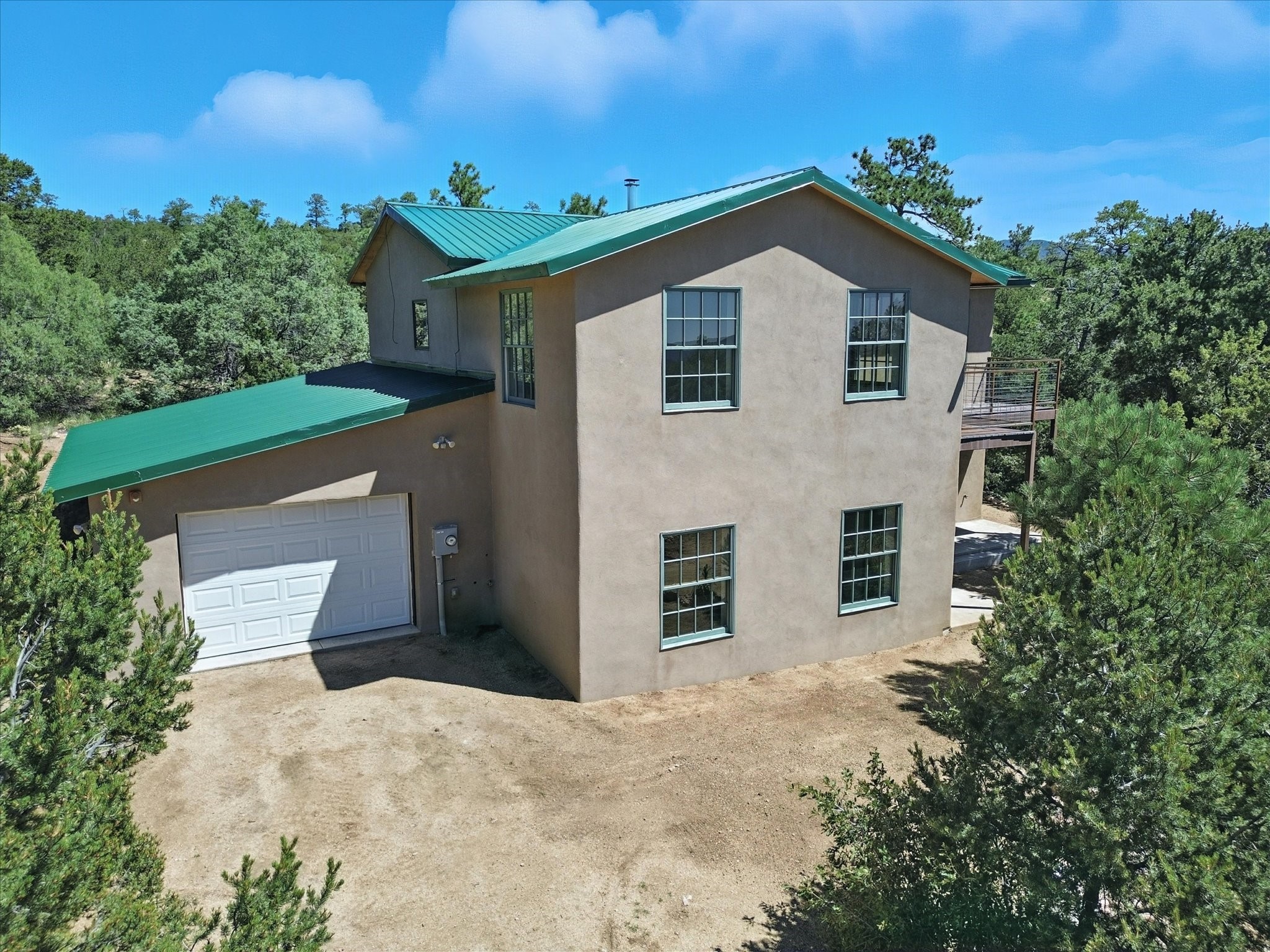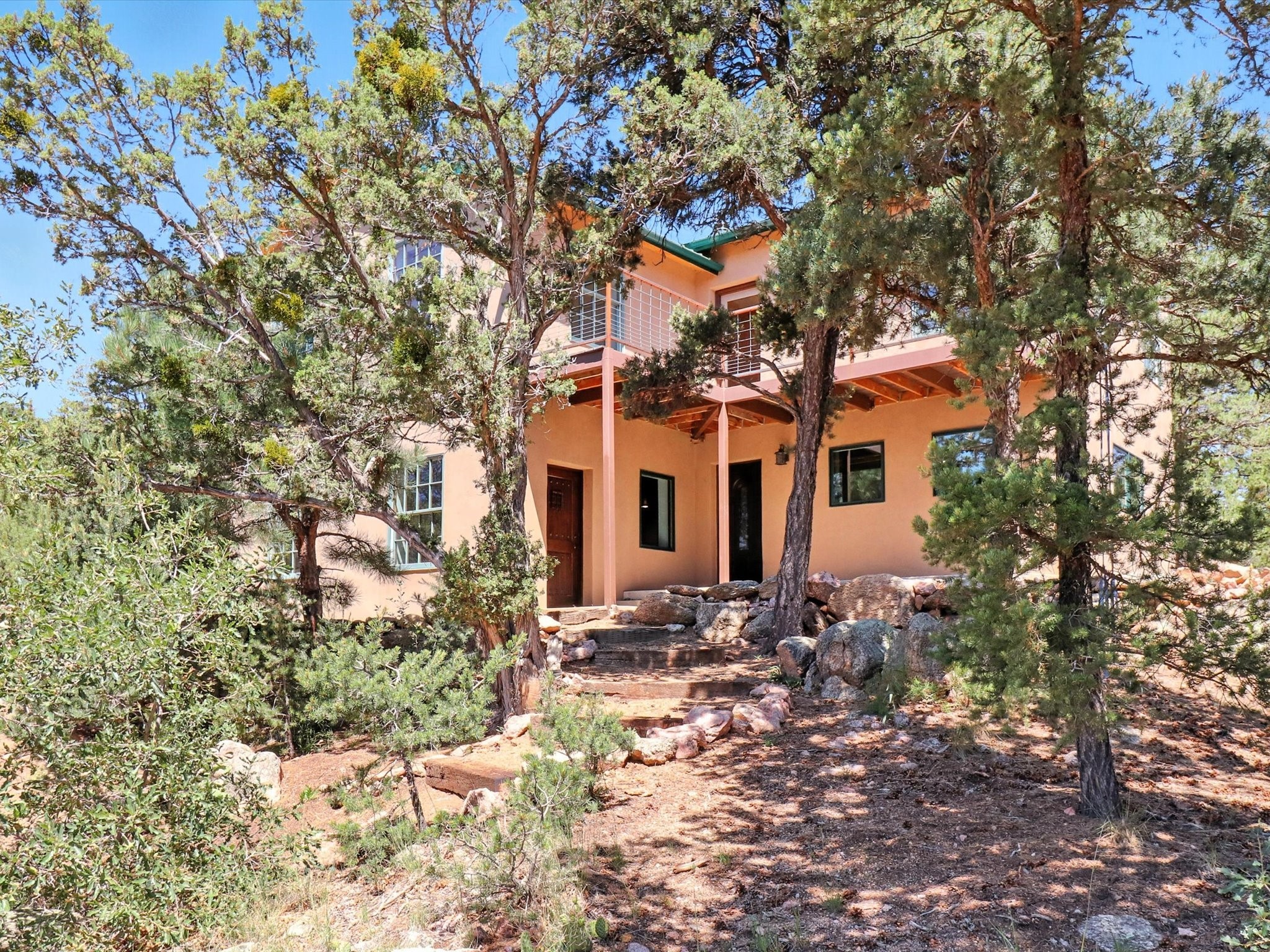 Modern Mountain Retreat Just off of Old Santa Fe Trail. A serene sanctuary nestled into the mountainside and surrounded with pines. This beautiful home offers breathtaking views of the green valley, the Shaggy Peaks and Pecos Mountains beyond--an ideal setting for those seeking peace, space, and connection with nature.With 3 spacious bedrooms and 2 full bathrooms, this home has a spacious living area perfect for relaxing, entertaining, and creating. The open-concept layout seamlessly blends the dining and kitchen spaces; all bathed in natural light from large windows that frame the stunning landscape. The kitchen is crafted for both functionality and style, making it the true heart of the home.Enjoy the comfort of a stone-tiled en-suite bath with a soaking tub and a cozy fireplace, a spacious walk-in closet, and private access to a balcony where morning coffee comes with inspiring Forest views.Each bedroom is graced with large windows that invite sunlight and forest views, while a separate laundry room upstairs adds everyday convenience. The attached garage adds to the practicality of this quiet haven, blending comfort and utility.Set in a peaceful, rural-feeling location, yet with easy access to town, 25 Calle Marisol offers the best of both worlds--tranquility and convenience. If you're seeking a lifestyle surrounded by nature, with room to breathe and views to inspire, this is your perfect place to call home.