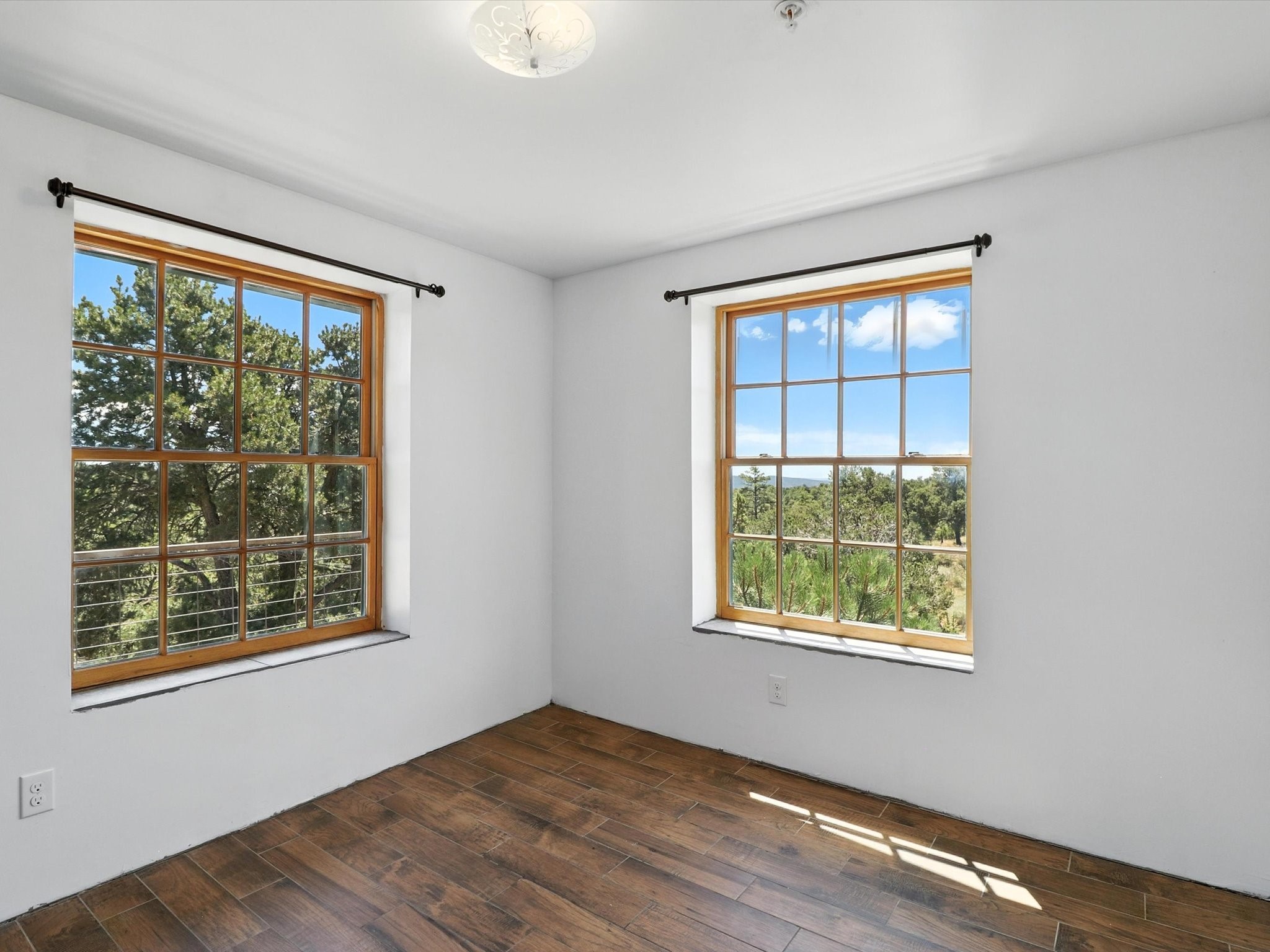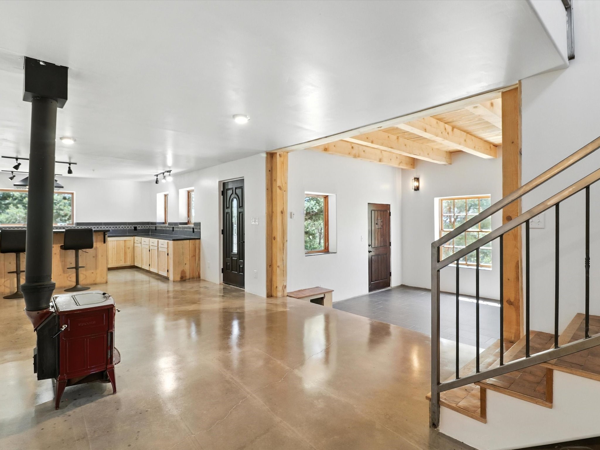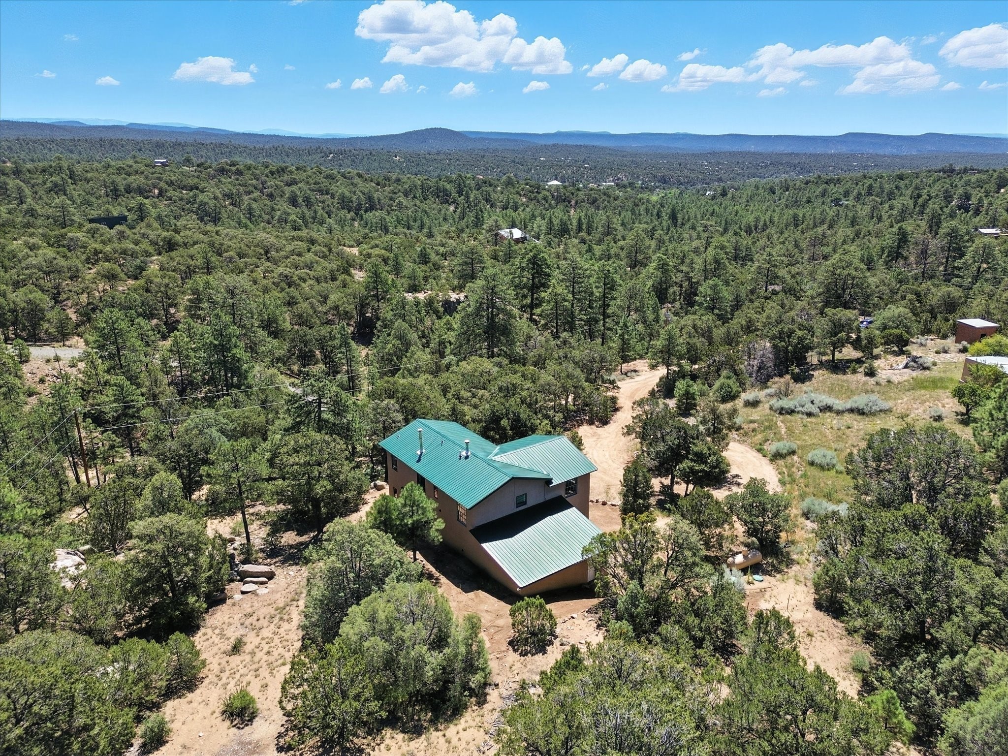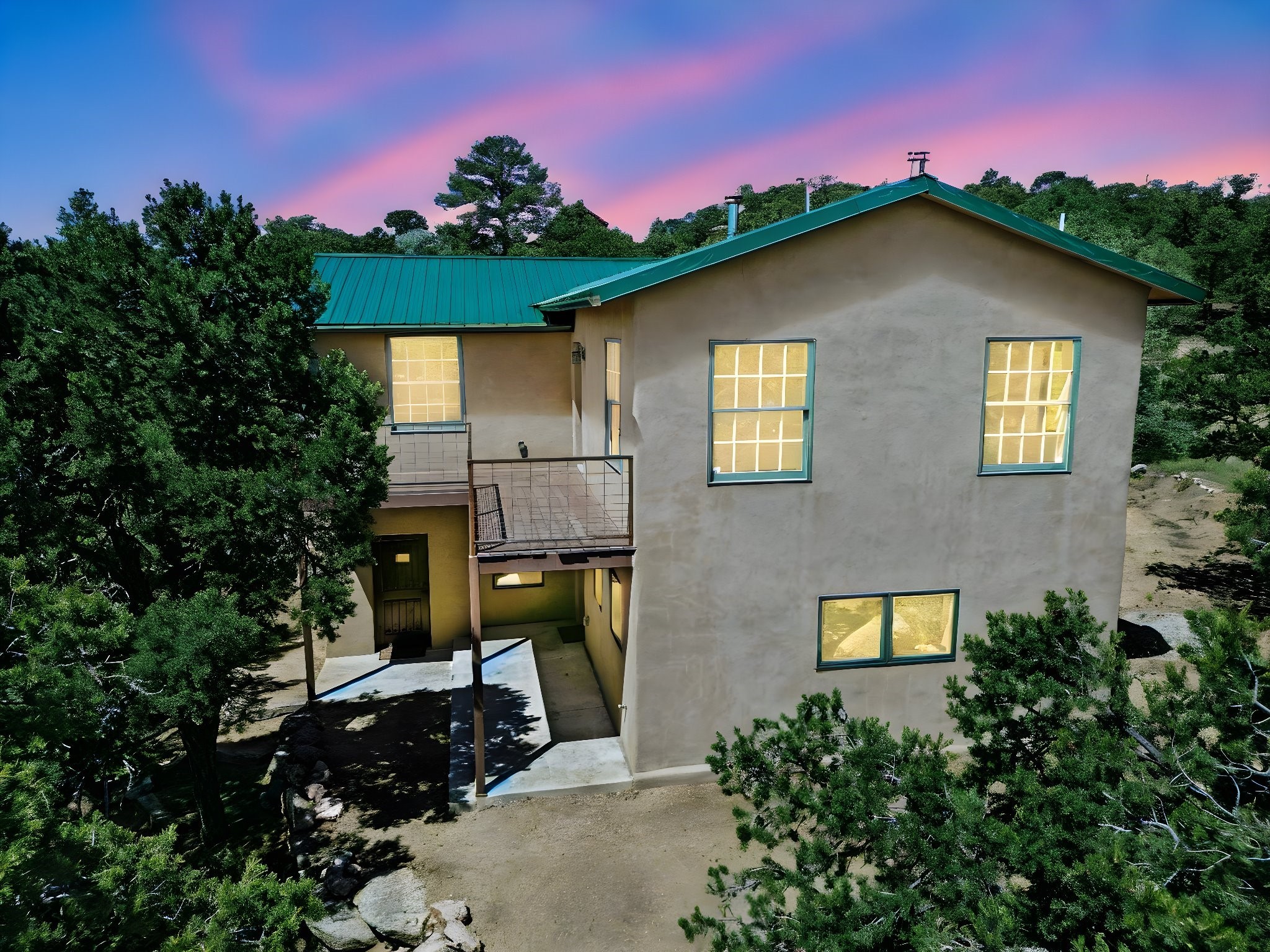 Modern Mountain Retreat Just off of Old Santa Fe Trail. A serene sanctuary nestled into the mountainside and surrounded with pines. This beautiful home offers breathtaking views of the green valley, the Shaggy Peaks and Pecos Mountains beyond--an ideal setting for those seeking peace, space, and connection with nature.With 3 spacious bedrooms and 2 full bathrooms, this home has a spacious living area perfect for relaxing, entertaining, and creating. The open-concept layout seamlessly blends the dining and kitchen spaces; all bathed in natural light from large windows that frame the stunning landscape. The kitchen is crafted for both functionality and style, making it the true heart of the home.Enjoy the comfort of a stone-tiled en-suite bath with a soaking tub and a cozy fireplace, a spacious walk-in closet, and private access to a balcony where morning coffee comes with inspiring Forest views.Each bedroom is graced with large windows that invite sunlight and forest views, while a separate laundry room upstairs adds everyday convenience. The attached garage adds to the practicality of this quiet haven, blending comfort and utility.Set in a peaceful, rural-feeling location, yet with easy access to town, 25 Calle Marisol offers the best of both worlds--tranquility and convenience. If you're seeking a lifestyle surrounded by nature, with room to breathe and views to inspire, this is your perfect place to call home.