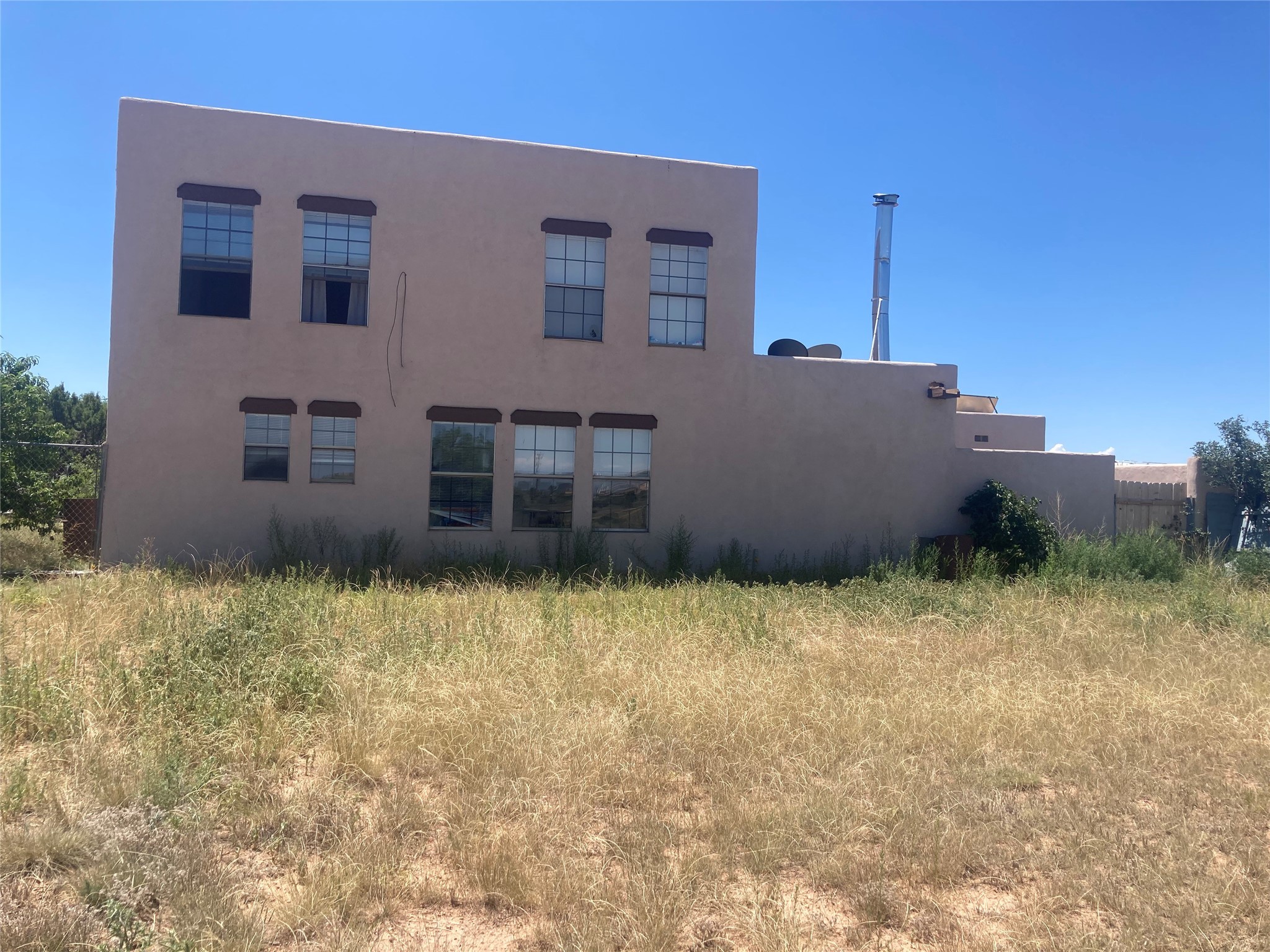 This spacious move-in ready home with 4 bedrooms, 3 bathrooms, a bonus room and horse amenities sits on little over 2 acres and is fully fenced. The home is located in the sprawling southside of Santa Fe close to shopping, schools, dining, hotels and has easy access to the major roads and highways. All of the rooms are generously sized and there is ample natural light throughout the house. Downstairs you will find the kitchen with an adjacent dining area, a large living room, a bathroom, a bedroom and a bonus room, which can be used as another bedroom or office. Upstairs is the master bedroom with two walk-in closets and the attached master bathroom. Also upstairs are two bedrooms and a large bathroom. The living room, dining room, downstairs hallways and downstairs lounge area have Saltillo tile floors. All bedrooms and the living room have newer carpet. There is a fireplace in the living room and a wood stove in the dining room. Off the dining room is a walled-in courtyard with a garden. In the front of the house is a covered porch. The garage is finished and has 3 closets with sliding doors, a shop area and a window. Fences separate the land surrounding the house from the horse area. The horse area has electricity and water available. This one-of-a kind property has a lot to offer!