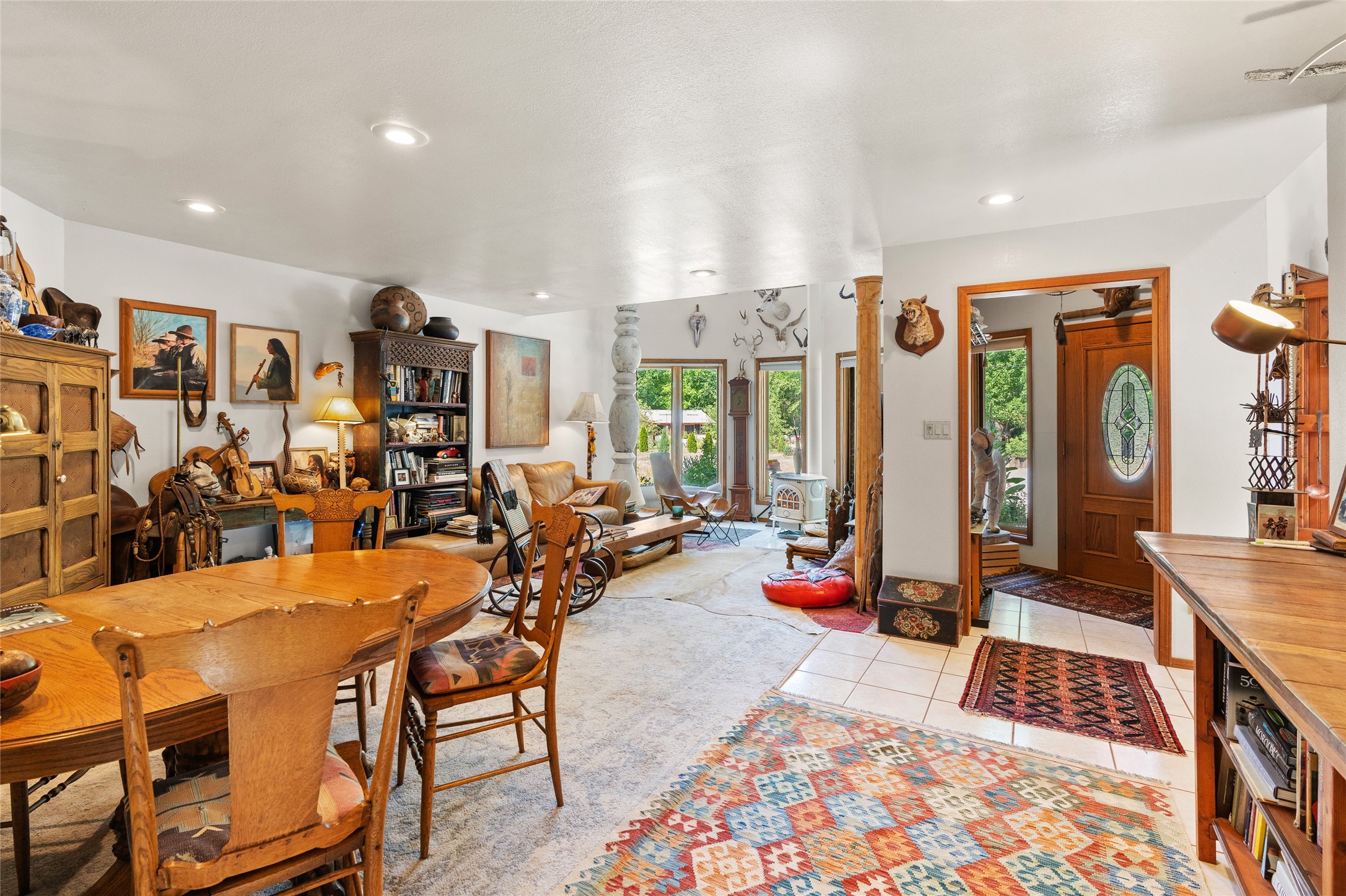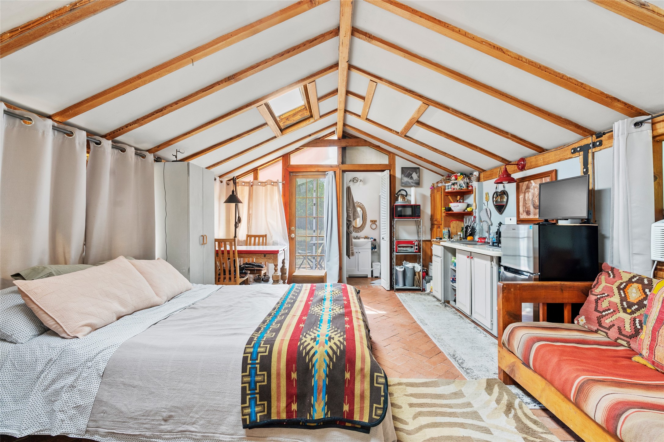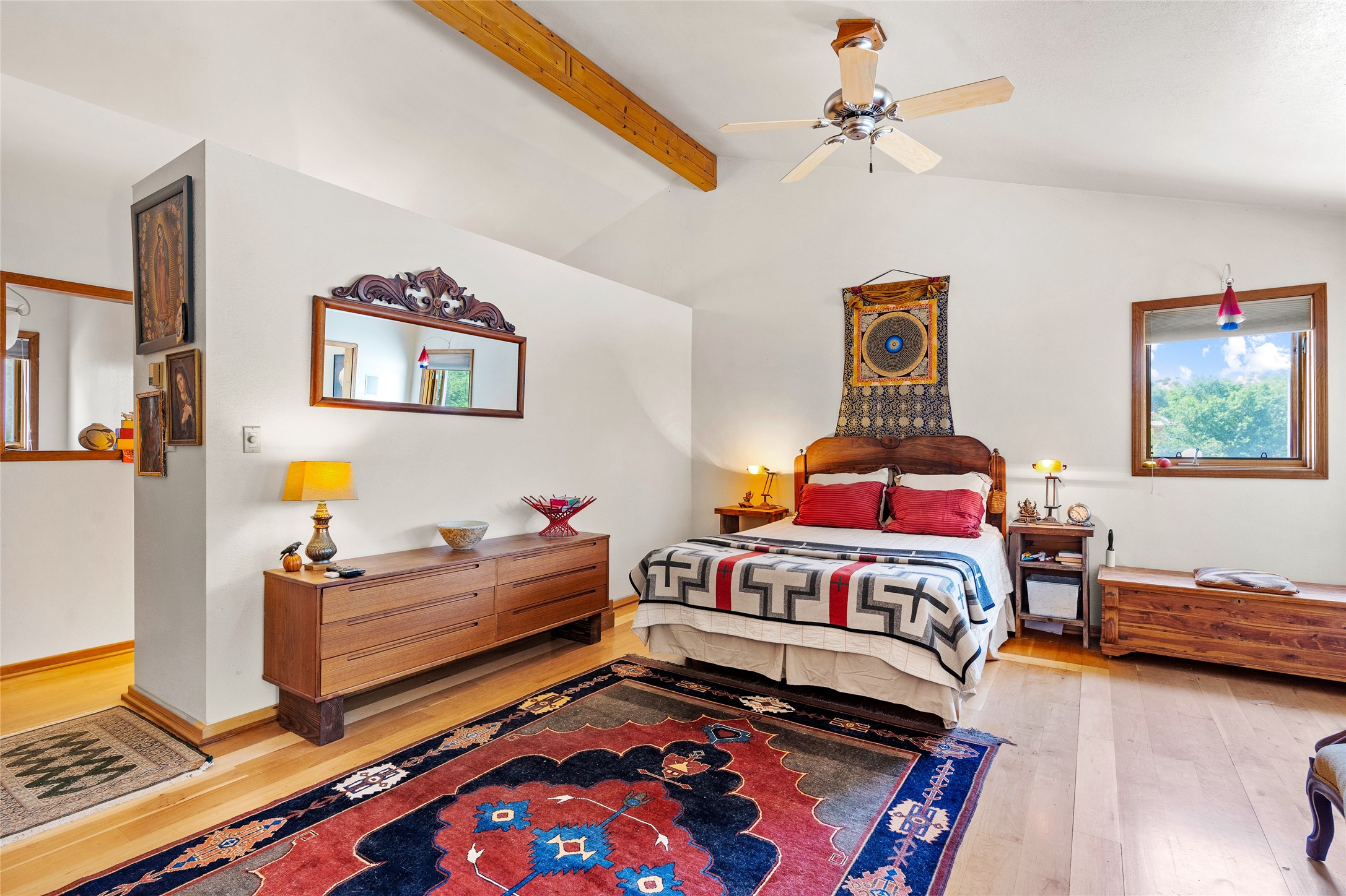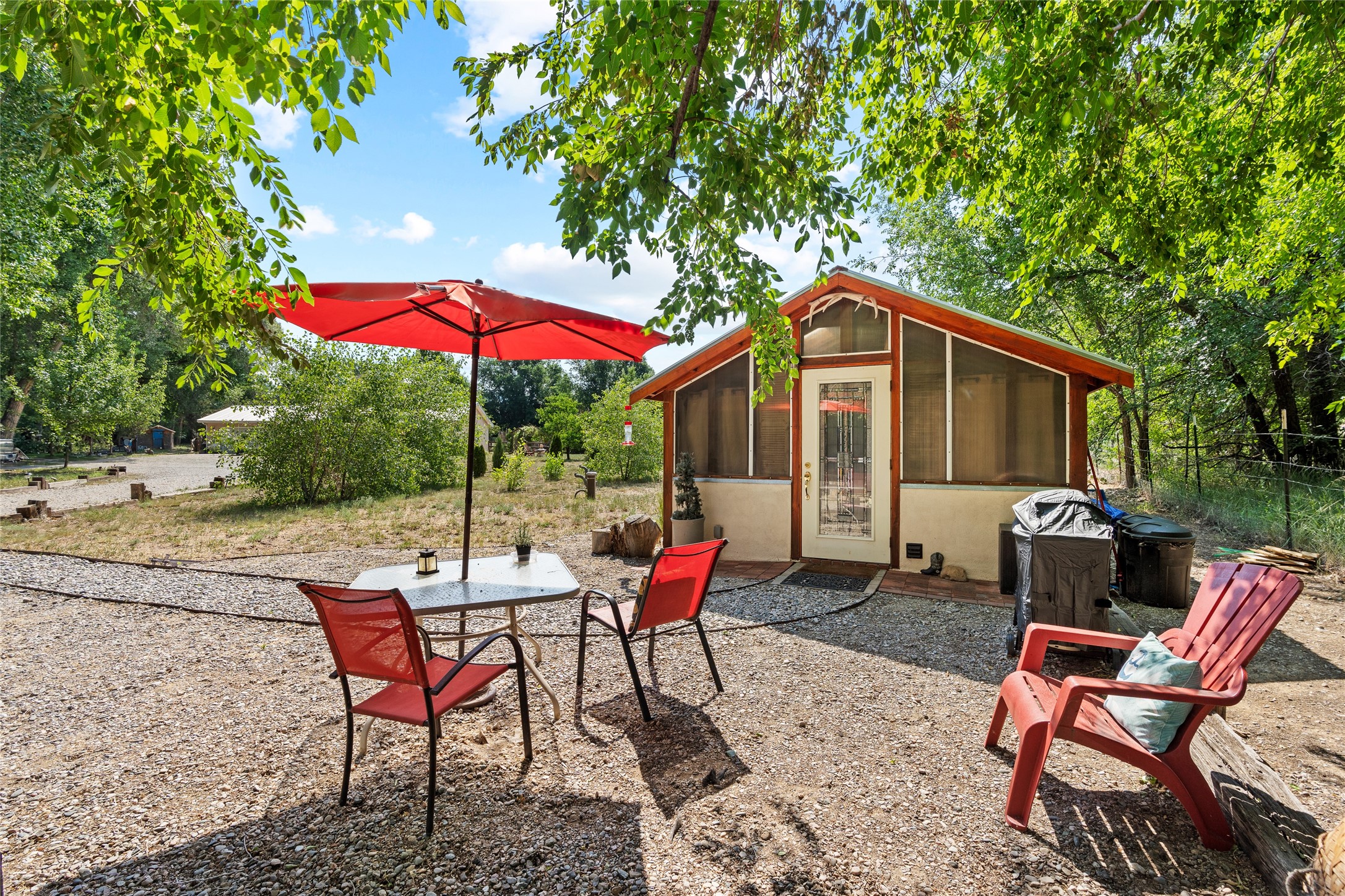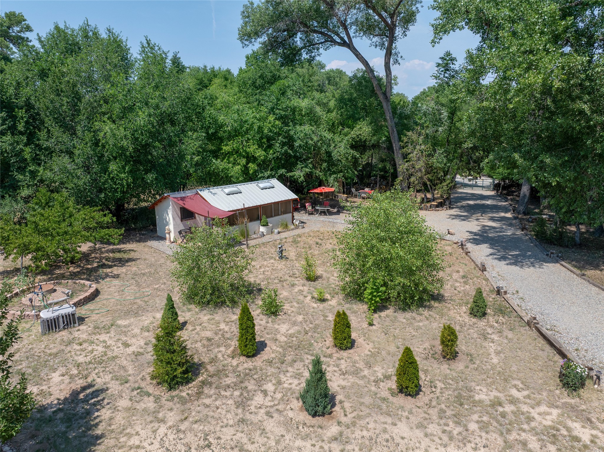 Welcome to 26 County Road 113S, a serene retreat nestled in the lush and verdant Nambe River Valley. This unique 3-bedroom, 2-bathroom home sits on 1.47 acres of picturesque land bordered by the gentle flow of the Nambe River. Towering Rio Grande cottonwood trees shade the property, creating a peaceful sanctuary filled with birdsong and dappled light -- perfect for summer relaxation.Inside the 2,127 sq ft main house, you'll find an airy and open layout, anchored by a loft-style primary bedroom that offers exceptional separation and privacy. Large windows invite in natural light and views of the surrounding greenery, while thoughtful finishes create a warm and inviting atmosphere.On the opposite side of the property sits a charming 280 sq ft guest casita -- a fully self-contained 1-bedroom 1-bathroom unit ideal for rental income, studio space, or hosting visitors.Sustainability meets convenience with a photovoltaic solar power system, dramatically reducing energy costs while supporting eco-conscious living. The passive solar design enhances the home's eco-friendly features.Located just a short drive from the historic Santa Fe Plaza and the Los Alamos National Laboratory, this property offers the rare combination of tranquil country living with easy access to culture, science, and community.Whether you're seeking a full-time residence, a getaway, or a dual-living/rental opportunity, 26 County Road 113S is a rare find in one of Northern New Mexico's most beautiful and storied valleys.