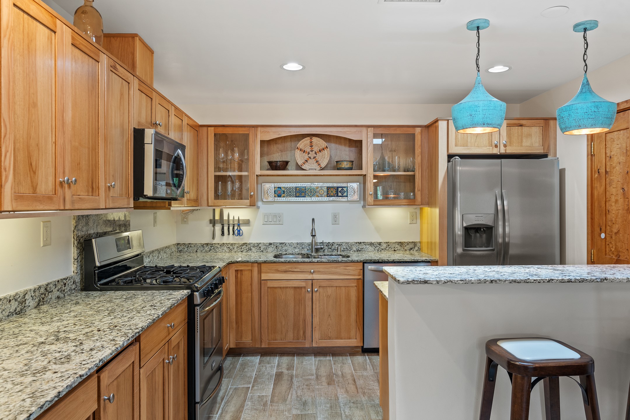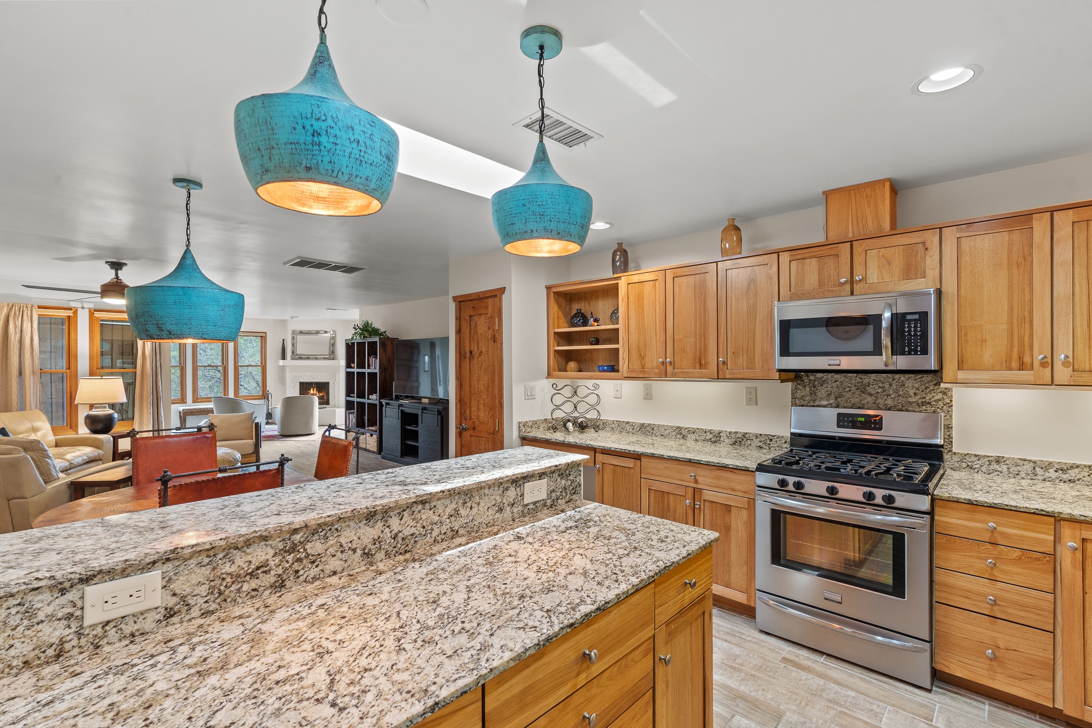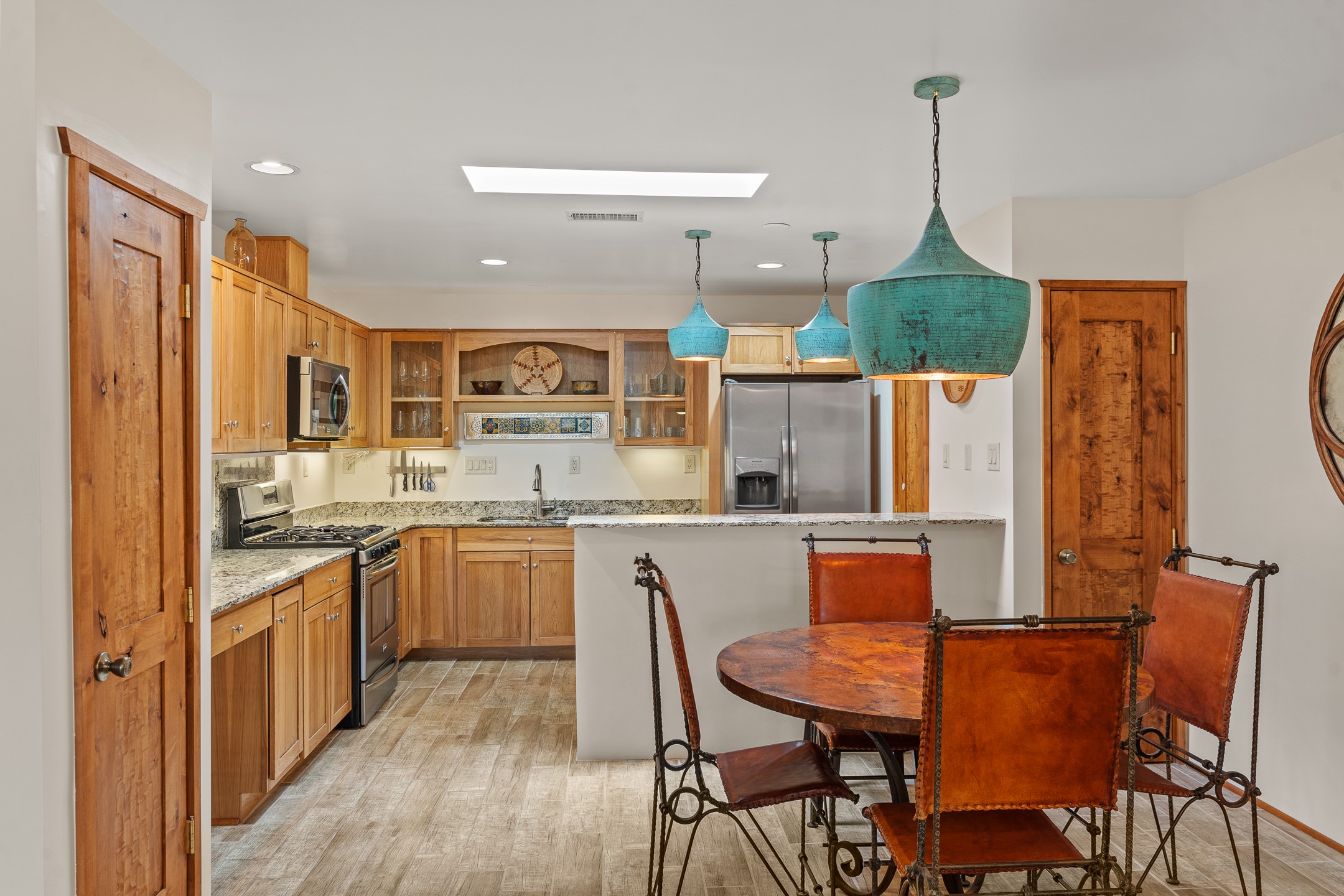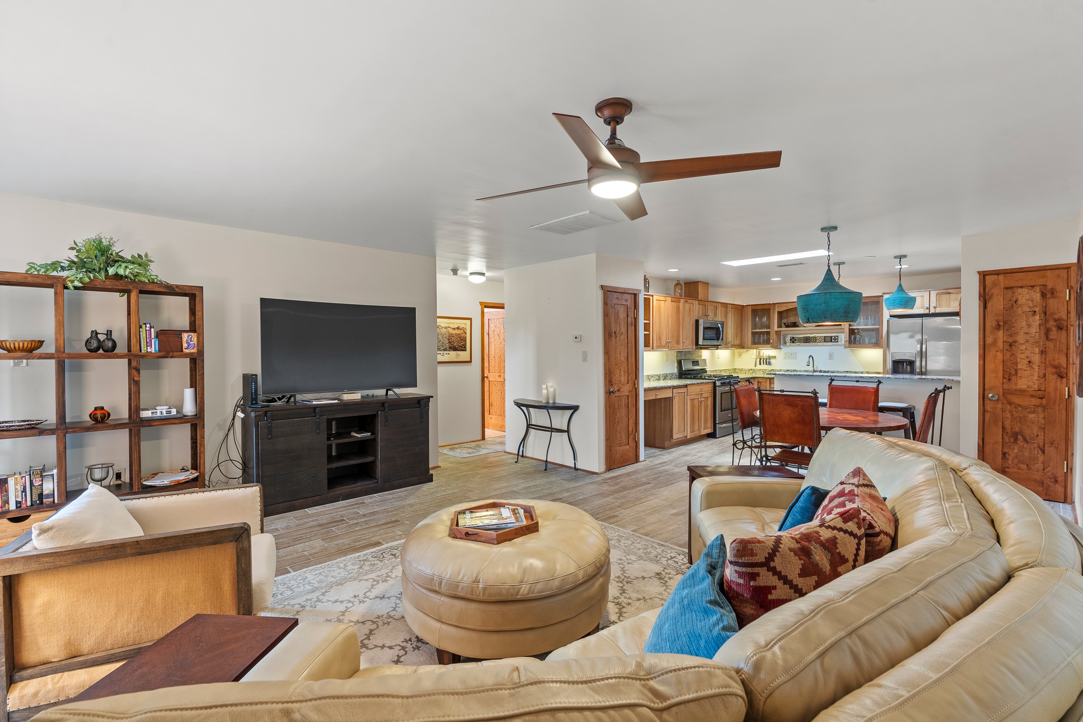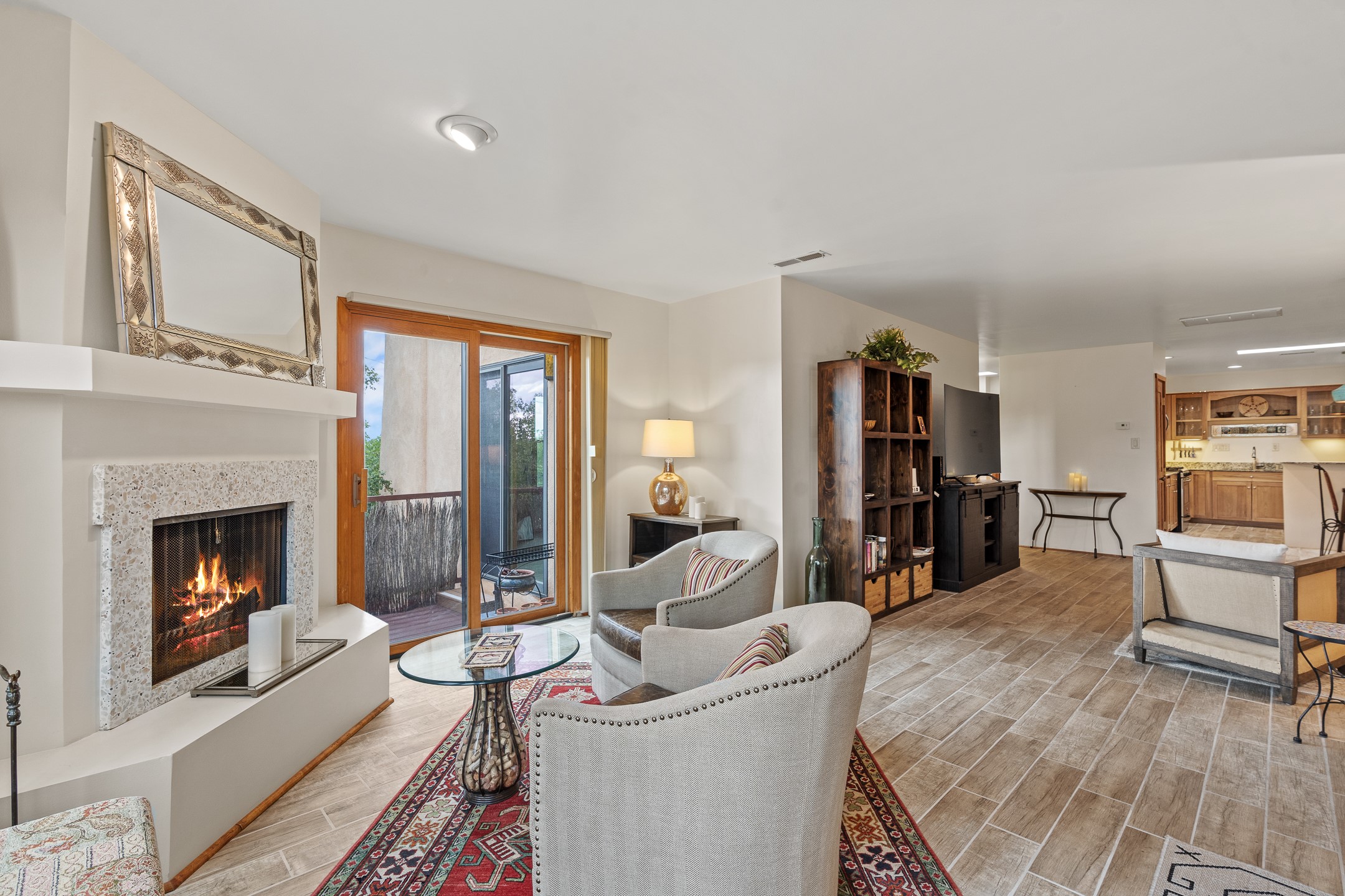 Located in the sought-after South Capital neighborhood, this beautifully updated condo in Los Pueblos is a hidden gem offering both comfort and convenience. Just under 1.5 miles to the Santa Fe Plaza and less than a mile to the Railyard District, enjoy easy access to Whole Foods, Trader Joe's, Natural Grocers, popular restaurants, and local amenities.Spanning 1,472 sqft, this 2-bedroom, 1-bath home (originally a 2-bath and still plumbed for a second bath) features a spacious open-concept layout that seamlessly blends the kitchen, dining, and living areas. A cozy sitting area with a fireplace and sliding glass doors opens to a private balcony, also accessible from the primary bedroom--perfect for relaxing.The home is tiled throughout, offering ease of maintenance and a clean, cohesive look. The tastefully updated kitchen is a standout with granite countertops, a bar-top counter, pantry, and chic lighting fixtures over both the kitchen and dining areas. Newer double-paned windows and a ceiling fan in the living room add comfort and energy efficiency.The large primary suite connects directly to the oversized bathroom, which also serves as the guest bath with a secondary entrance from the hallway. The bathroom includes a walk-in shower and generous space for comfort. The guest bedroom is privately situated down the hall.A former second bathroom has been thoughtfully converted into a large laundry and storage room, complete with a stackable washer and dryer (included) and ample closet space throughout.Additional highlights include:An 8x8 storage unit in the secure underground garage,furniture package available,prime location near Santa Fe's best shopping, dining, and cultural attractions.Whether you're looking for a full-time residence, weekend retreat, or investment opportunity, this stylish condo offers the best of Santa Fe living in an unbeatable location.