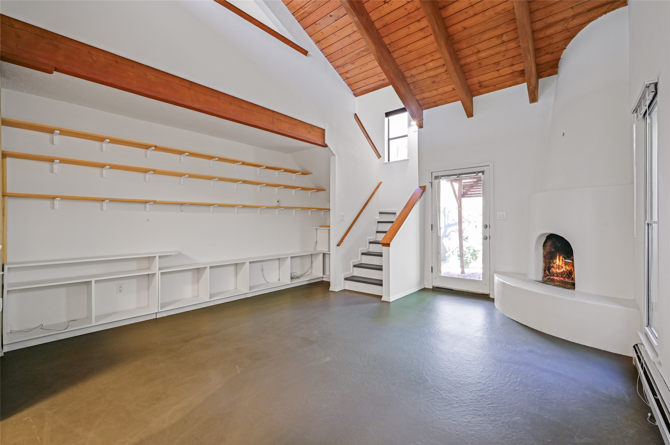 A charming townhome in the Las Americas development, located in the heart of Santa Fe. This inviting open-concept layout flows seamlessly from the living room to the kitchen. The living area features a cozy kiva fireplace, built-in bookshelves, and soaring vaulted ceilings. Upstairs, you'll find a spacious studio with a private balcony offering scenic views, while the primary bedroom is conveniently located on the main level along with a full bath for easy accessibility. The property also includes a fenced backyard with mature landscaping, perfect for relaxing or entertaining. Centrally located, this townhome offers close access to Santa Fe's vibrant shops, restaurants, and beautiful natural spaces. With several nearby trails, it provides the ideal balance of urban living and outdoor adventure.