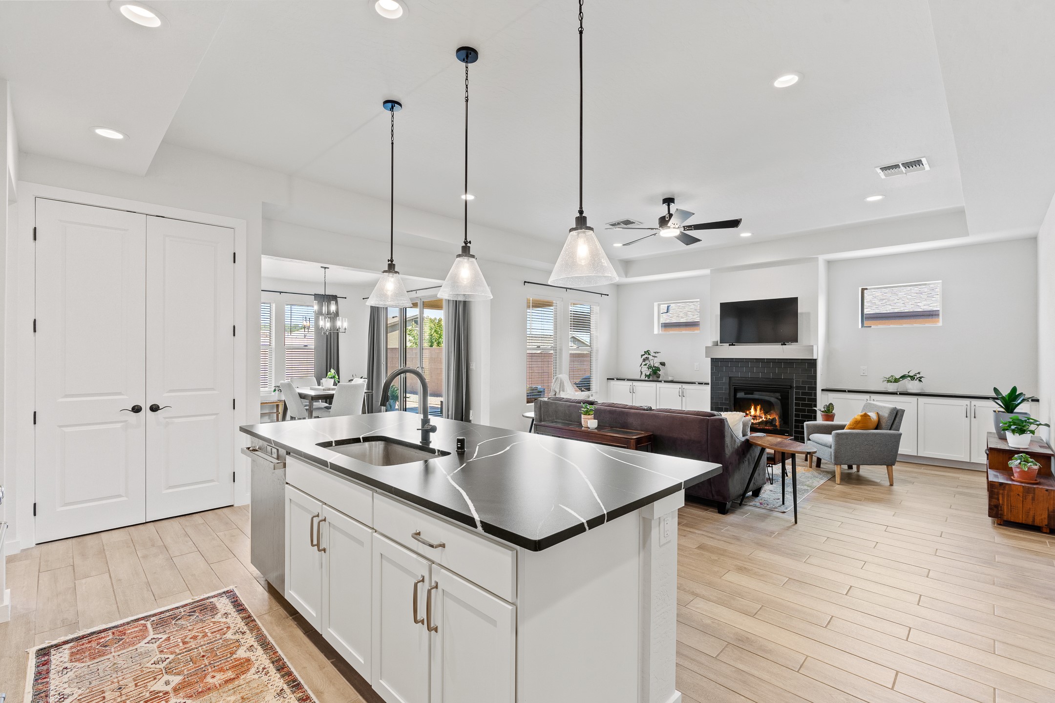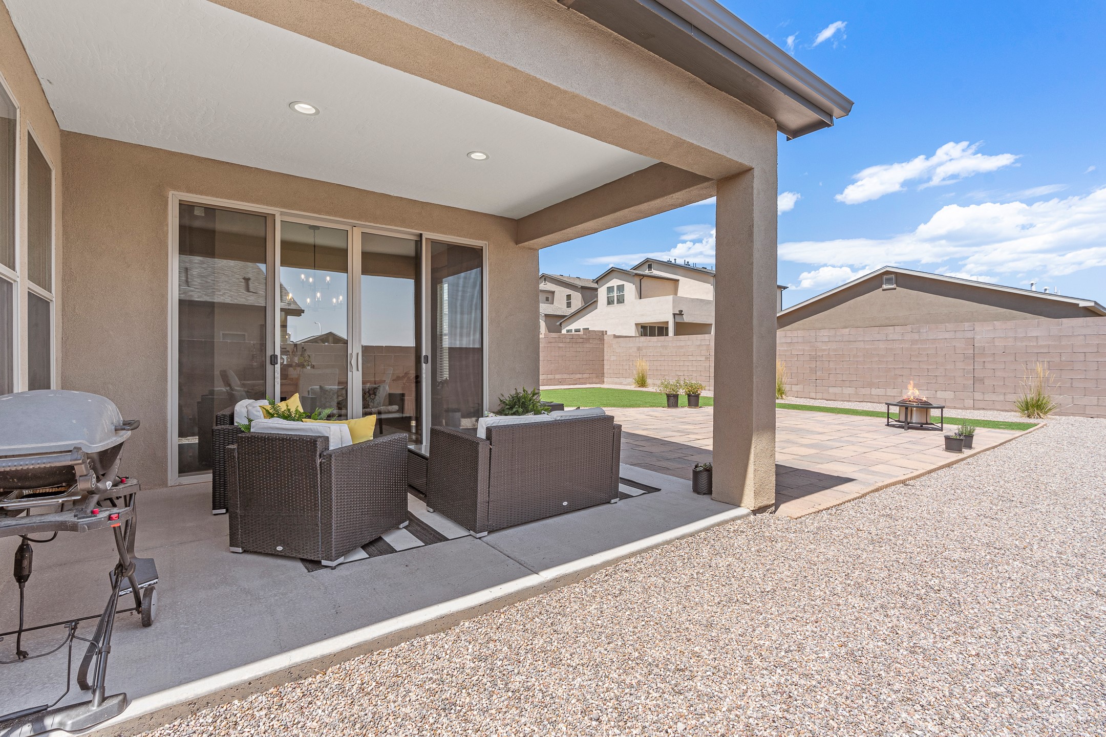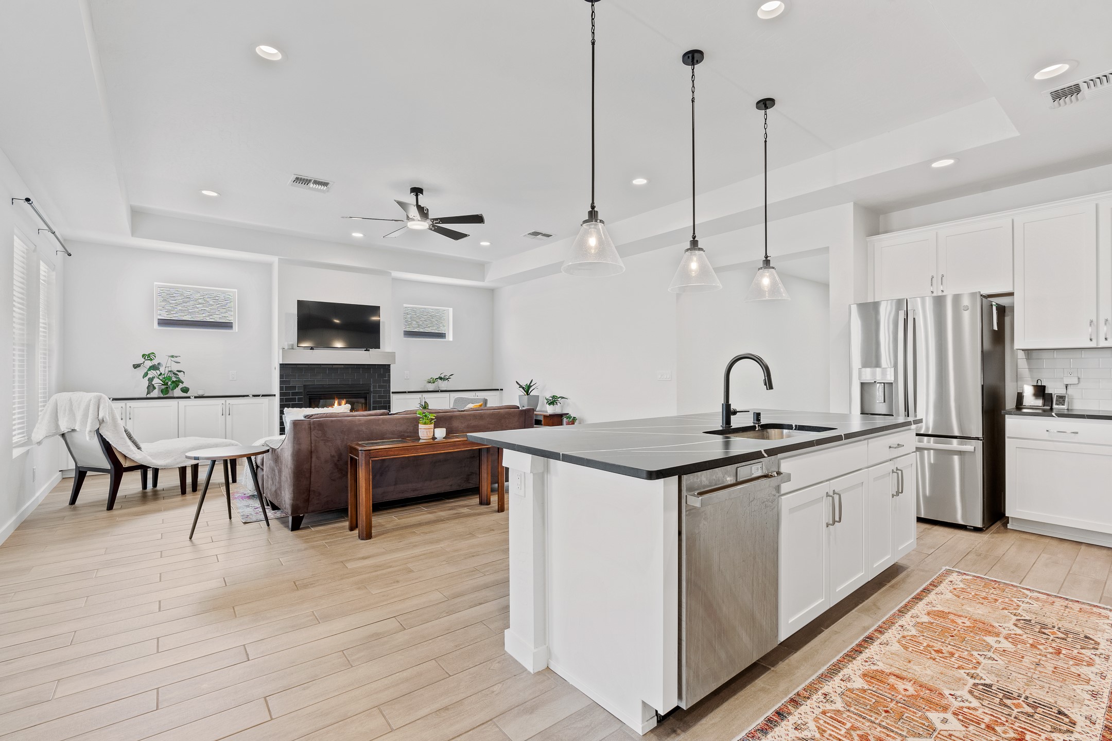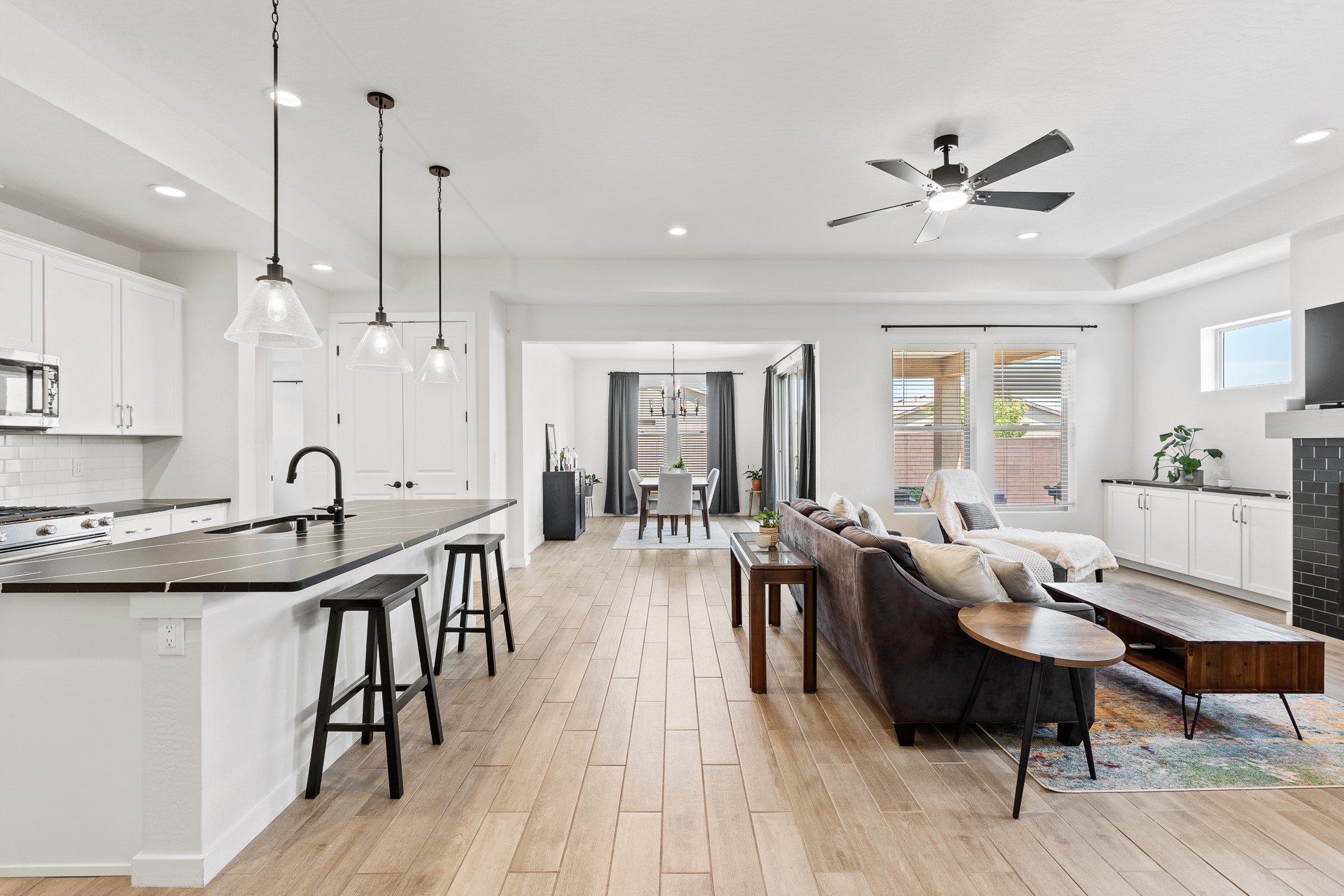 Welcome to this immaculate, nearly new home that blends stylish modern finishes with thoughtful upgrades and everyday comfort. Designed for today's lifestyle, this move-in-ready residence offers an open-concept layout filled with natural light, high ceilings, and high-end details throughout. The heart of the home is the beautifully appointed kitchen, featuring sleek countertops, stainless steel appliances, and an oversized island perfect for gathering and entertaining. The spacious living area is anchored by a cozy gas fireplace, creating a warm and inviting atmosphere year-round. The luxurious primary suite provides a peaceful retreat with a spa-like en-suite bathroom and a generous walk-in closet. Custom electric blinds in the home offer privacy and convenience at the touch of a button, while additional bedrooms provide flexibility for guests, work, or hobbies. Step outside and enjoy the thoughtfully designed outdoor living space--ideal for al fresco dining, relaxing evenings, or morning coffee. The low-maintenance yard includes two outdoor storage sheds, providing ample room for tools and gear. The garage is equally impressive, featuring two 240V amp circuits for EV charging or workshop needs, hanging storage shelves, and newly installed gutters for peace of mind. Blink security cameras at the front and back of the home offer added safety and convenience. Located in a desirable neighborhood close to parks, schools, and local amenities, this nearly new home is a special place to move right in and start making memories. Don't miss your chance to make it yours--schedule your showing today!
