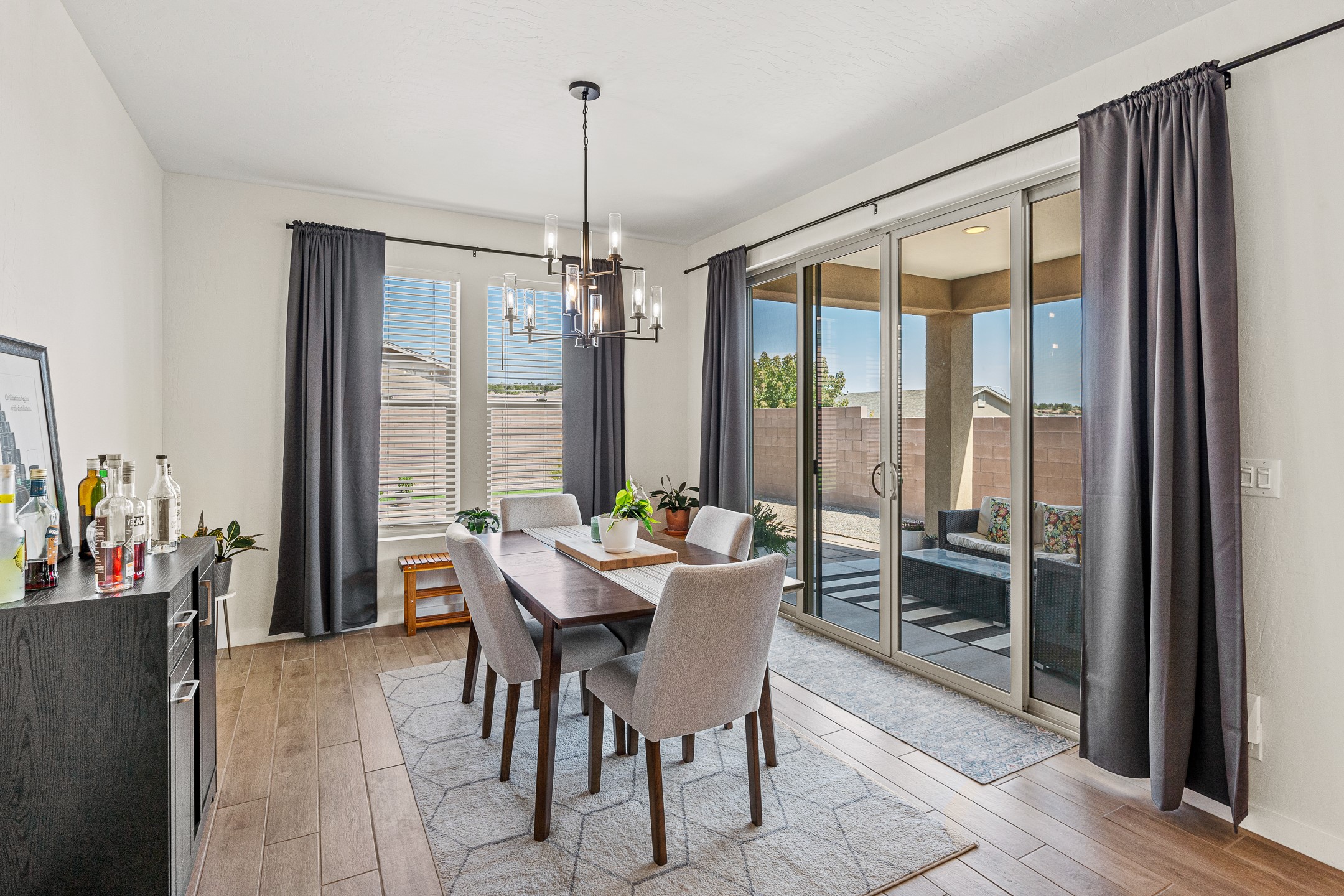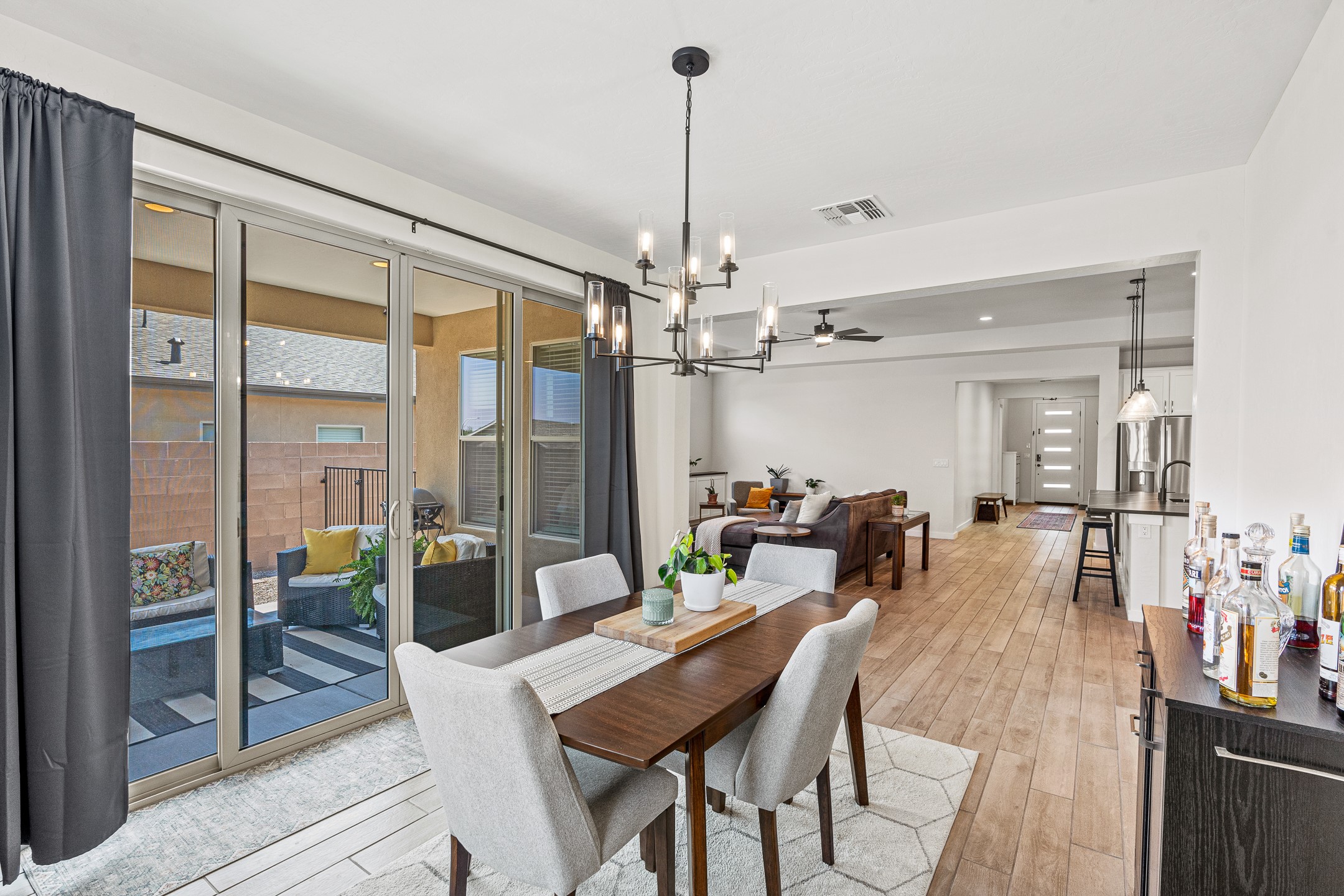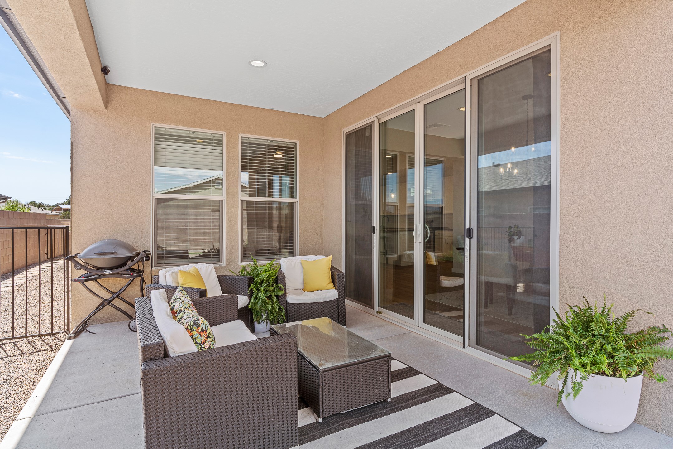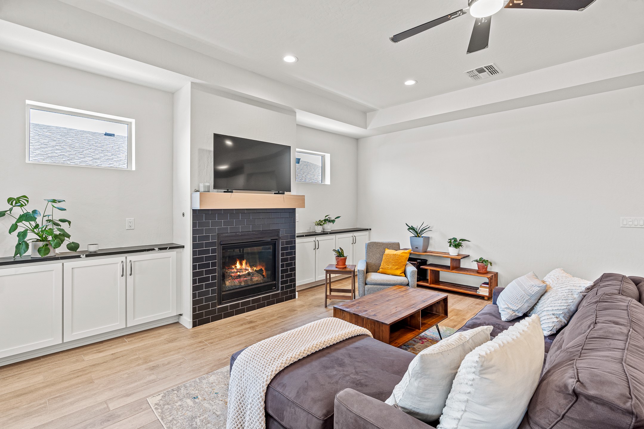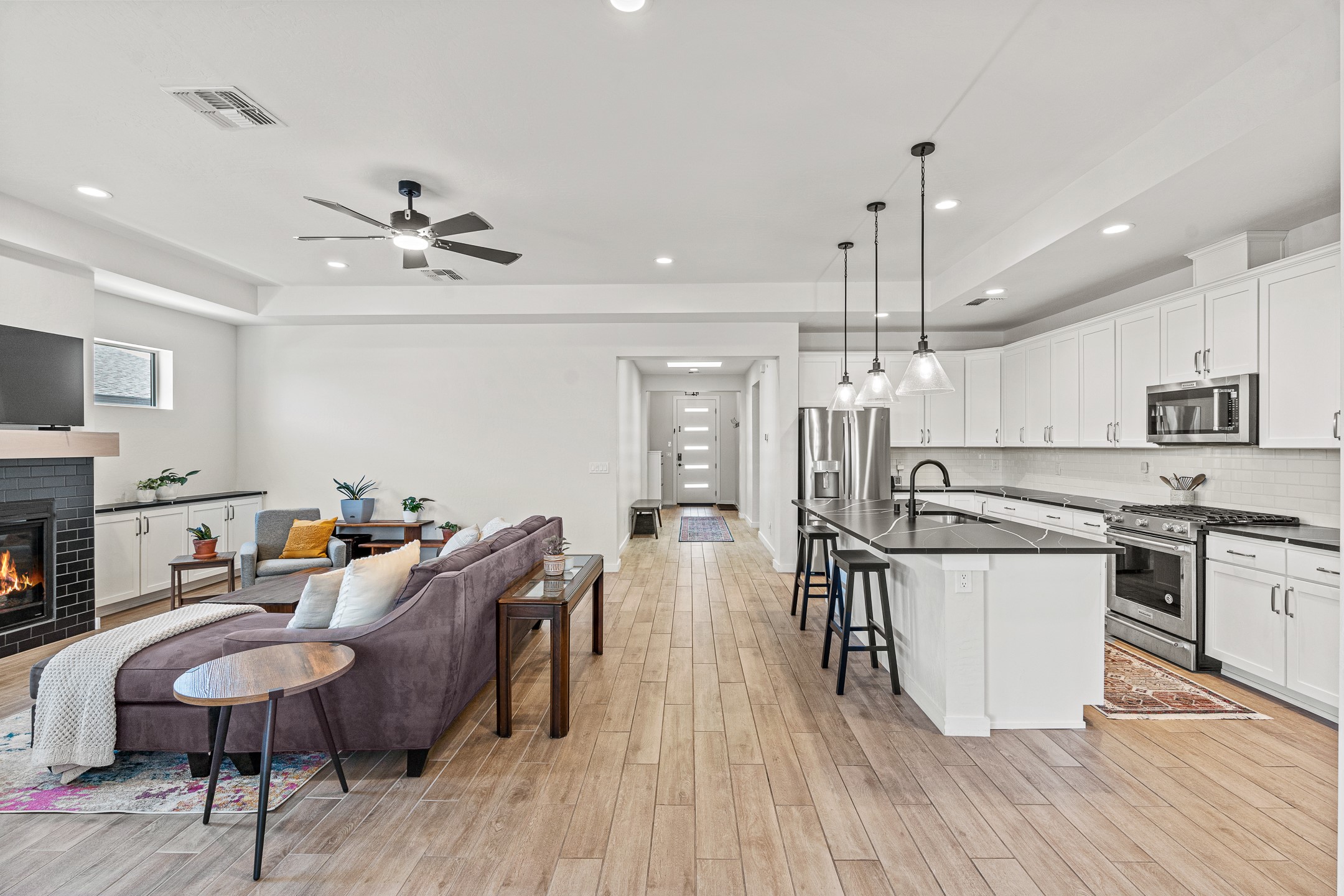 Welcome to this immaculate, nearly new home that blends stylish modern finishes with thoughtful upgrades and everyday comfort. Designed for today's lifestyle, this move-in-ready residence offers an open-concept layout filled with natural light, high ceilings, and high-end details throughout. The heart of the home is the beautifully appointed kitchen, featuring sleek countertops, stainless steel appliances, and an oversized island perfect for gathering and entertaining. The spacious living area is anchored by a cozy gas fireplace, creating a warm and inviting atmosphere year-round. The luxurious primary suite provides a peaceful retreat with a spa-like en-suite bathroom and a generous walk-in closet. Custom electric blinds in the home offer privacy and convenience at the touch of a button, while additional bedrooms provide flexibility for guests, work, or hobbies. Step outside and enjoy the thoughtfully designed outdoor living space--ideal for al fresco dining, relaxing evenings, or morning coffee. The low-maintenance yard includes two outdoor storage sheds, providing ample room for tools and gear. The garage is equally impressive, featuring two 240V amp circuits for EV charging or workshop needs, hanging storage shelves, and newly installed gutters for peace of mind. Blink security cameras at the front and back of the home offer added safety and convenience. Located in a desirable neighborhood close to parks, schools, and local amenities, this nearly new home is a special place to move right in and start making memories. Don't miss your chance to make it yours--schedule your showing today!