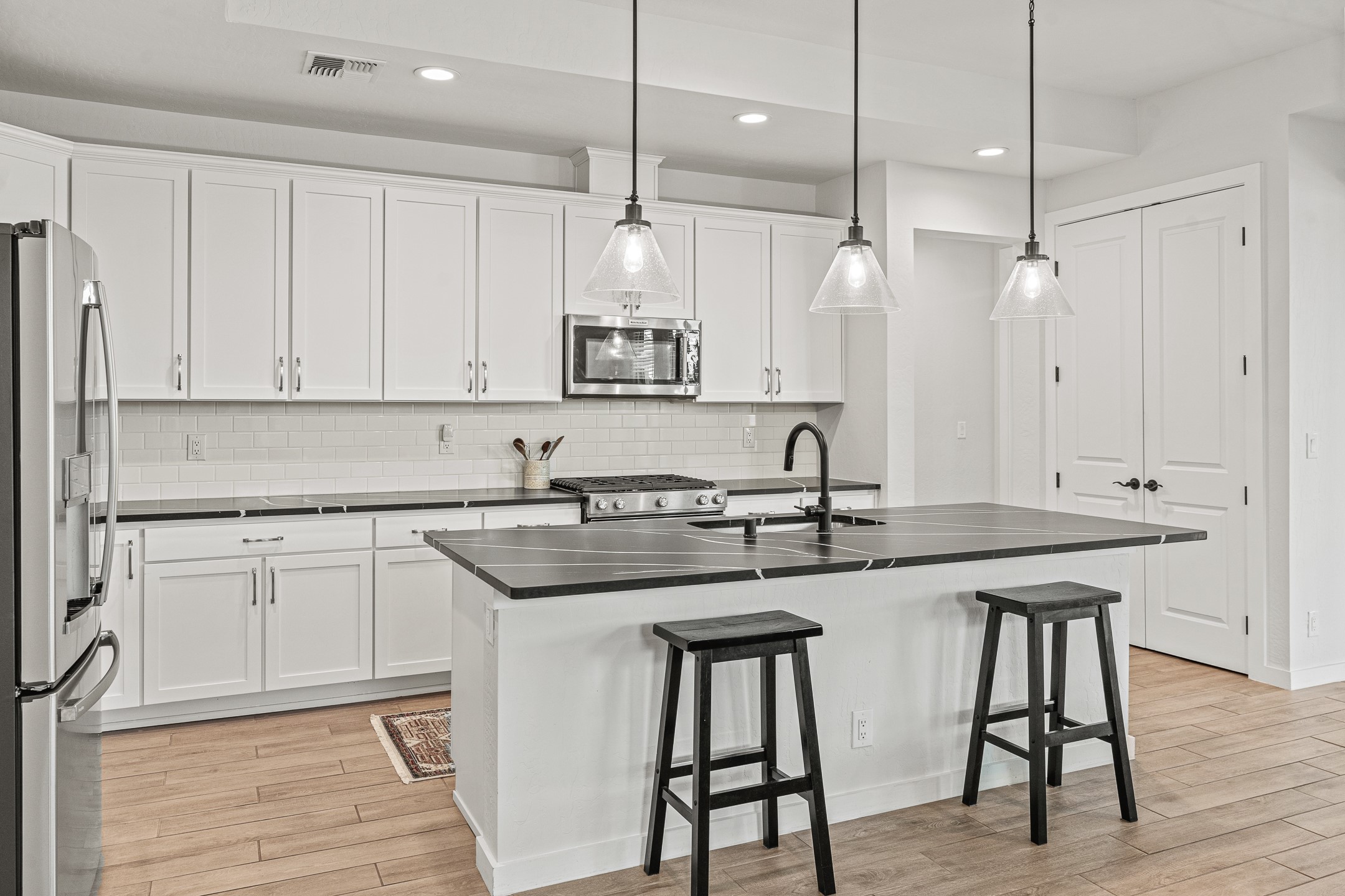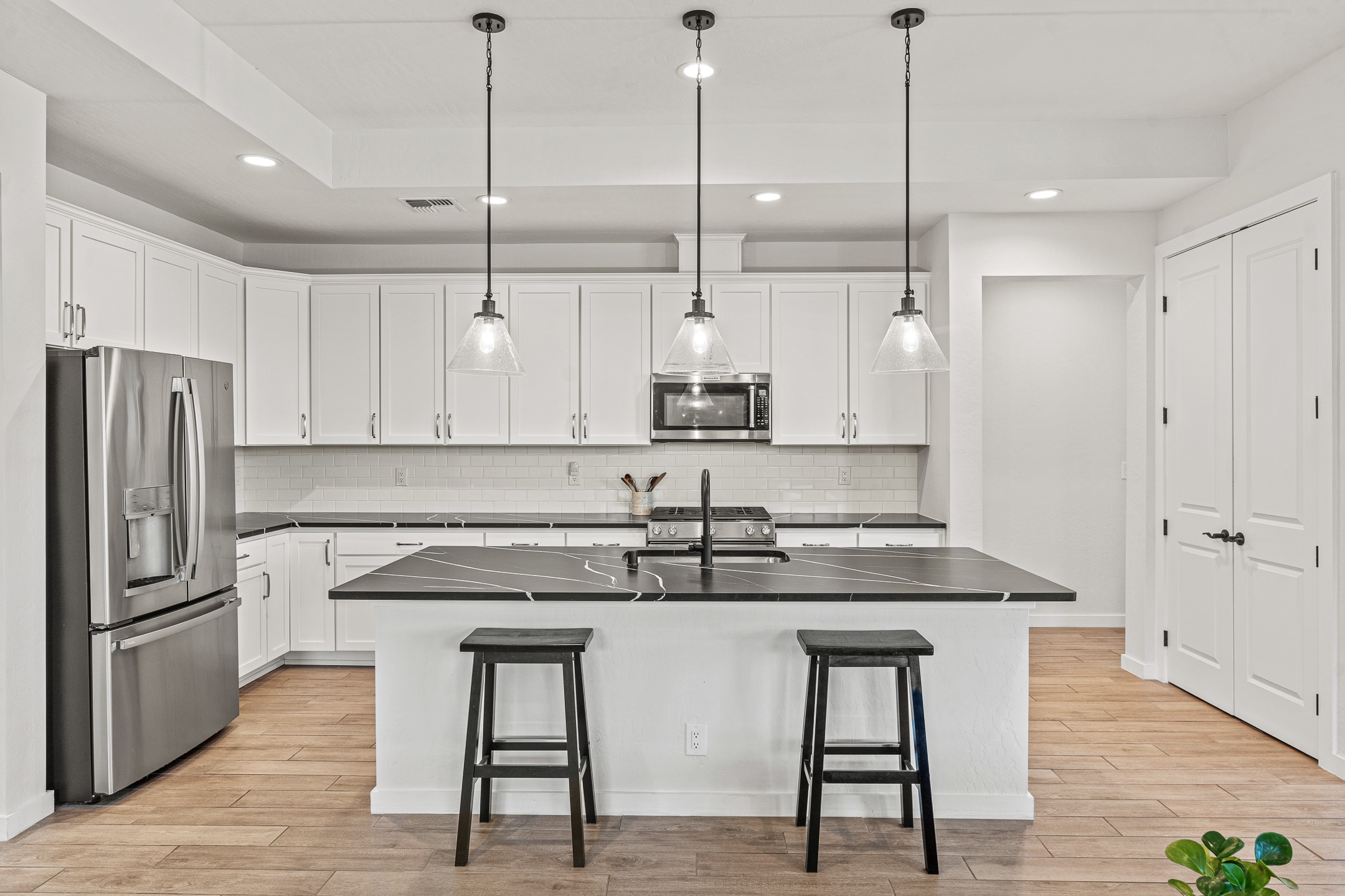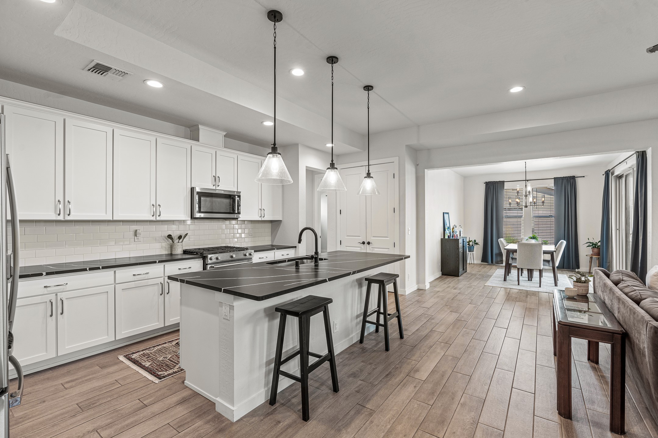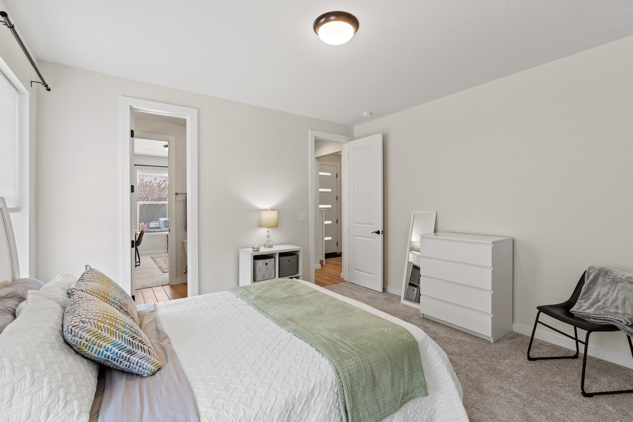 Welcome to this immaculate, nearly new home that blends stylish modern finishes with thoughtful upgrades and everyday comfort. Designed for today's lifestyle, this move-in-ready residence offers an open-concept layout filled with natural light, high ceilings, and high-end details throughout. The heart of the home is the beautifully appointed kitchen, featuring sleek countertops, stainless steel appliances, and an oversized island perfect for gathering and entertaining. The spacious living area is anchored by a cozy gas fireplace, creating a warm and inviting atmosphere year-round. The luxurious primary suite provides a peaceful retreat with a spa-like en-suite bathroom and a generous walk-in closet. Custom electric blinds in the home offer privacy and convenience at the touch of a button, while additional bedrooms provide flexibility for guests, work, or hobbies. Step outside and enjoy the thoughtfully designed outdoor living space--ideal for al fresco dining, relaxing evenings, or morning coffee. The low-maintenance yard includes two outdoor storage sheds, providing ample room for tools and gear. The garage is equally impressive, featuring two 240V amp circuits for EV charging or workshop needs, hanging storage shelves, and newly installed gutters for peace of mind. Blink security cameras at the front and back of the home offer added safety and convenience. Located in a desirable neighborhood close to parks, schools, and local amenities, this nearly new home is a special place to move right in and start making memories. Don't miss your chance to make it yours--schedule your showing today!