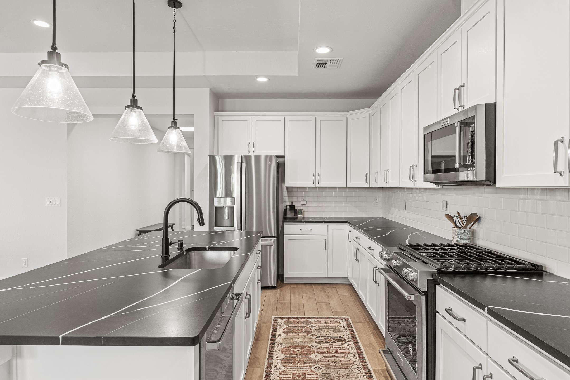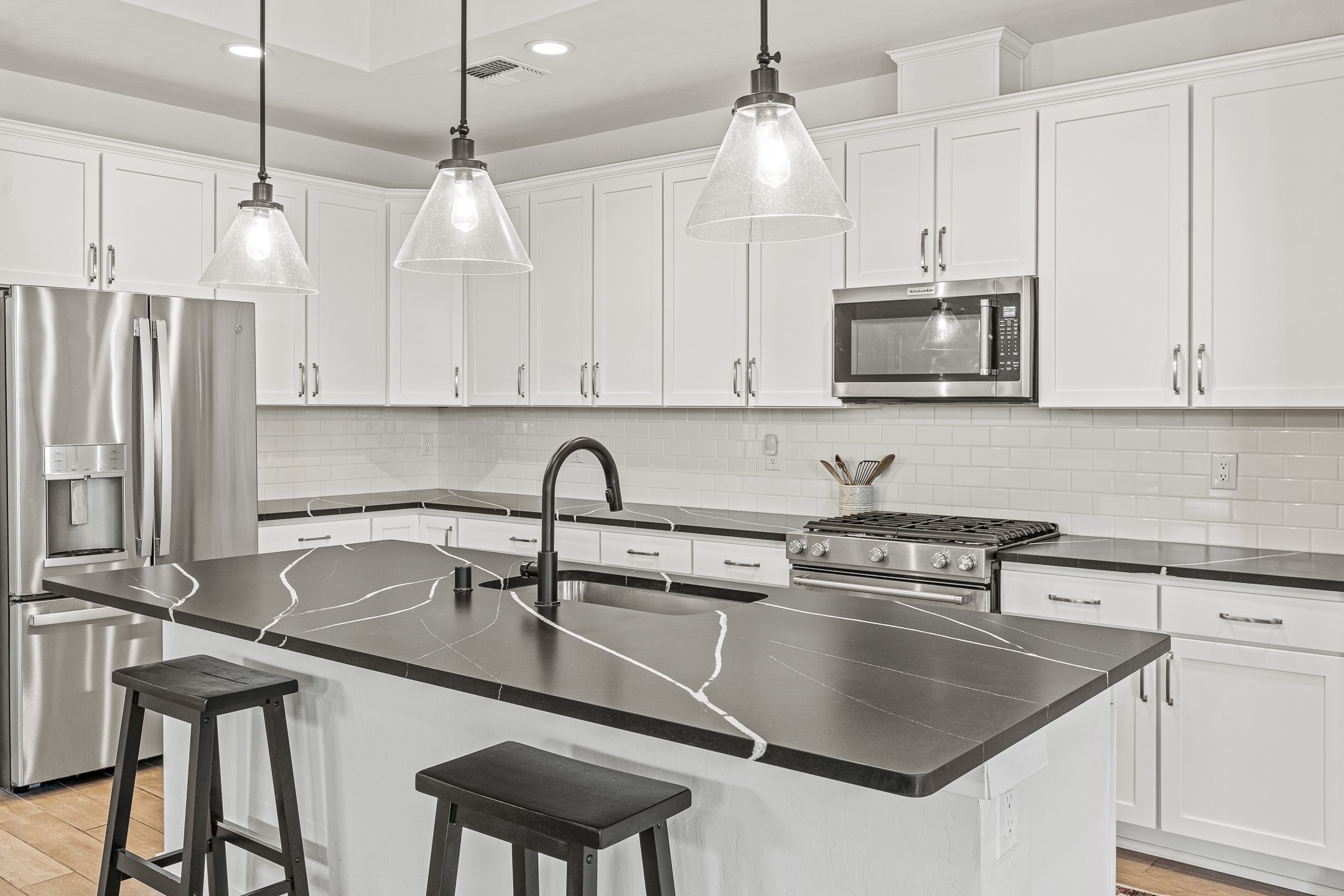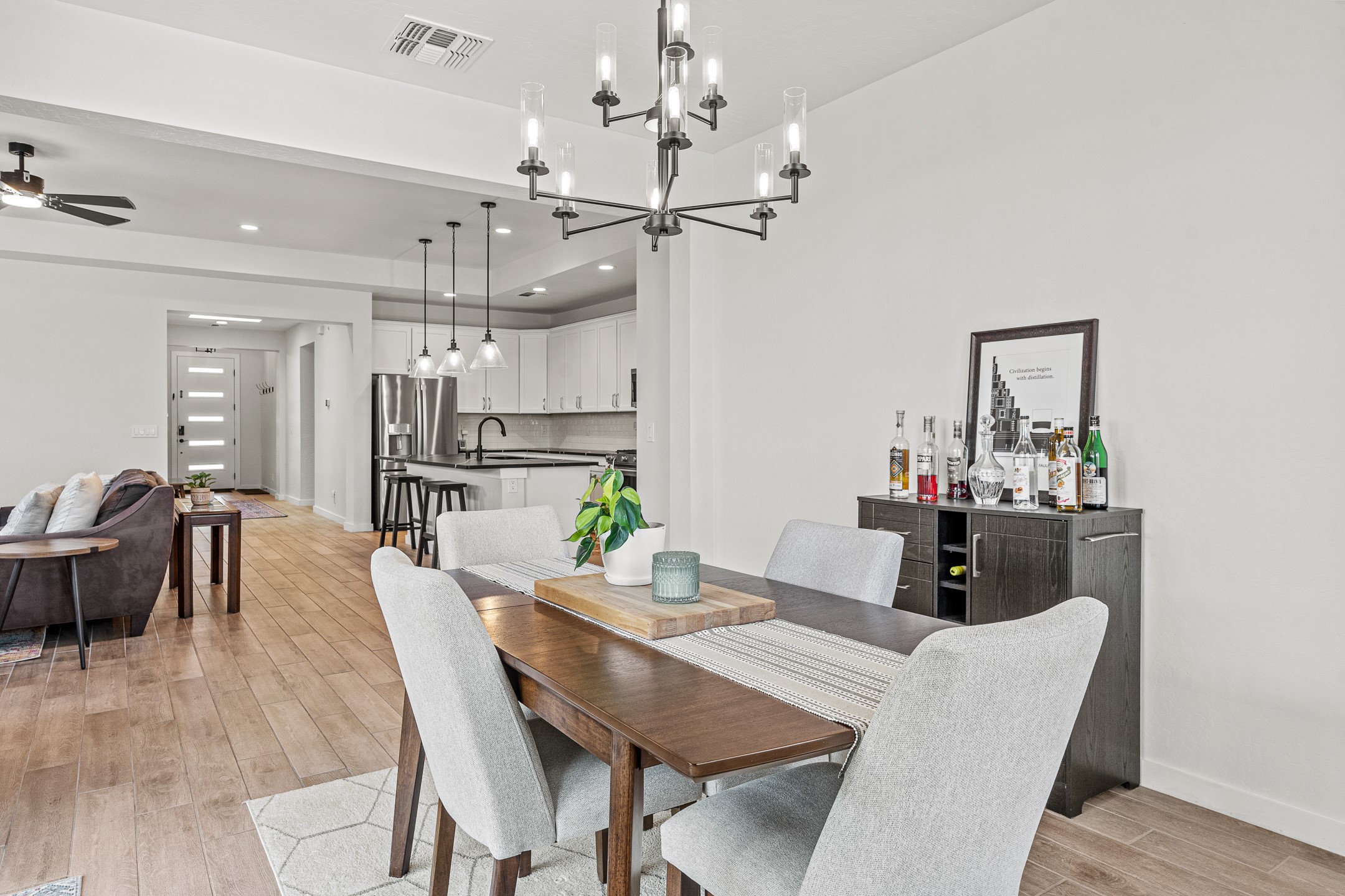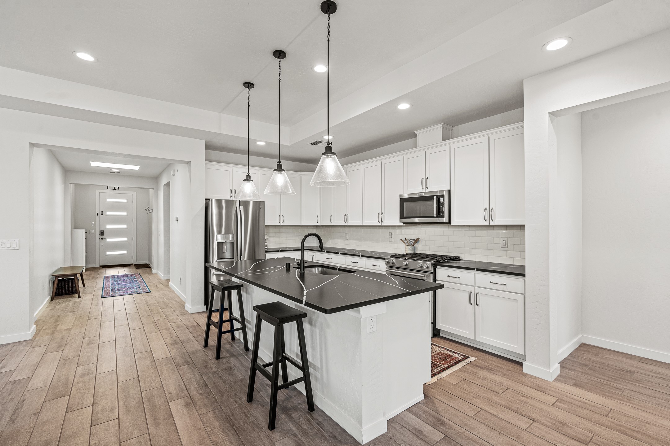 Welcome to this immaculate, nearly new home that blends stylish modern finishes with thoughtful upgrades and everyday comfort. Designed for today's lifestyle, this move-in-ready residence offers an open-concept layout filled with natural light, high ceilings, and high-end details throughout. The heart of the home is the beautifully appointed kitchen, featuring sleek countertops, stainless steel appliances, and an oversized island perfect for gathering and entertaining. The spacious living area is anchored by a cozy gas fireplace, creating a warm and inviting atmosphere year-round. The luxurious primary suite provides a peaceful retreat with a spa-like en-suite bathroom and a generous walk-in closet. Custom electric blinds in the home offer privacy and convenience at the touch of a button, while additional bedrooms provide flexibility for guests, work, or hobbies. Step outside and enjoy the thoughtfully designed outdoor living space--ideal for al fresco dining, relaxing evenings, or morning coffee. The low-maintenance yard includes two outdoor storage sheds, providing ample room for tools and gear. The garage is equally impressive, featuring two 240V amp circuits for EV charging or workshop needs, hanging storage shelves, and newly installed gutters for peace of mind. Blink security cameras at the front and back of the home offer added safety and convenience. Located in a desirable neighborhood close to parks, schools, and local amenities, this nearly new home is a special place to move right in and start making memories. Don't miss your chance to make it yours--schedule your showing today!