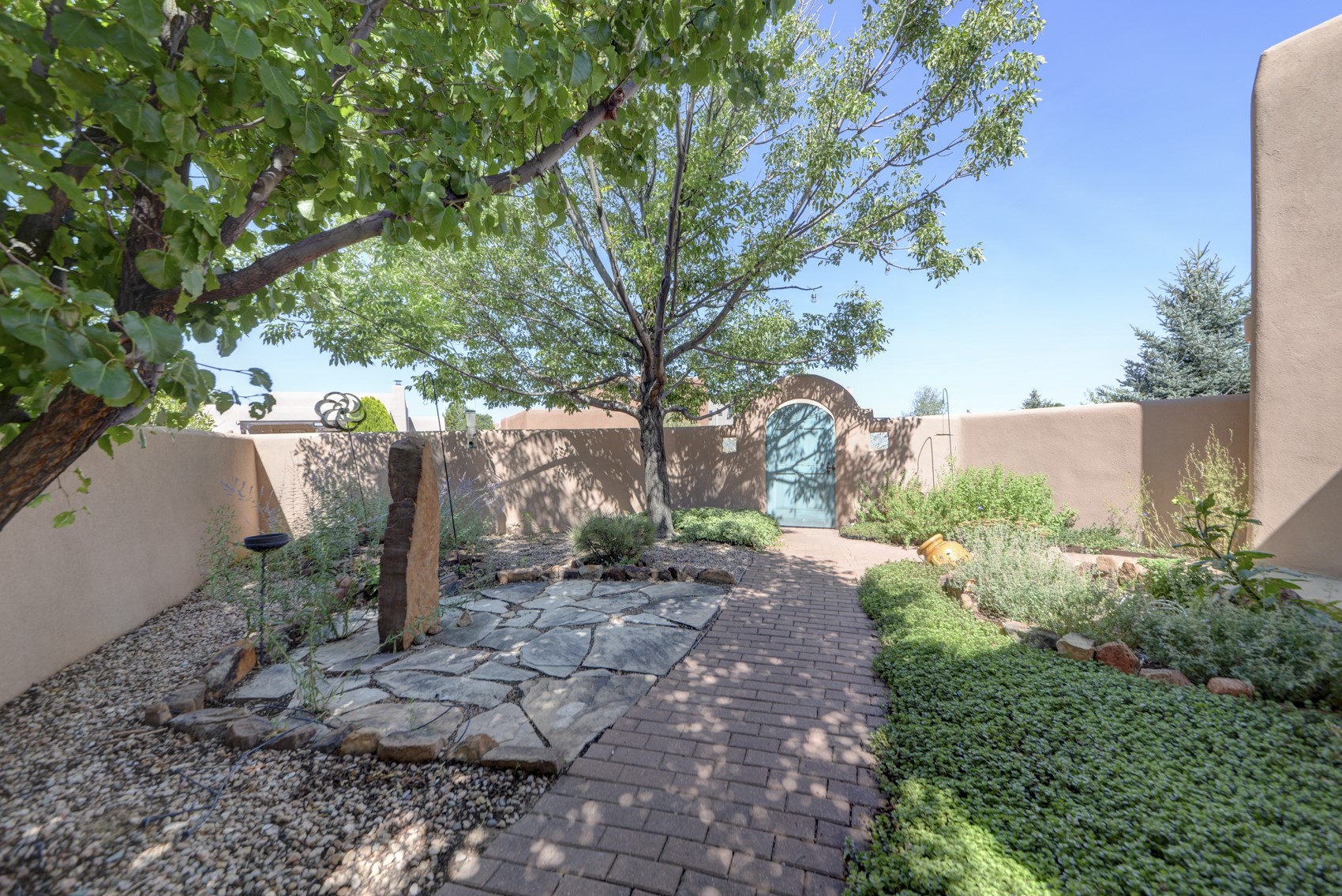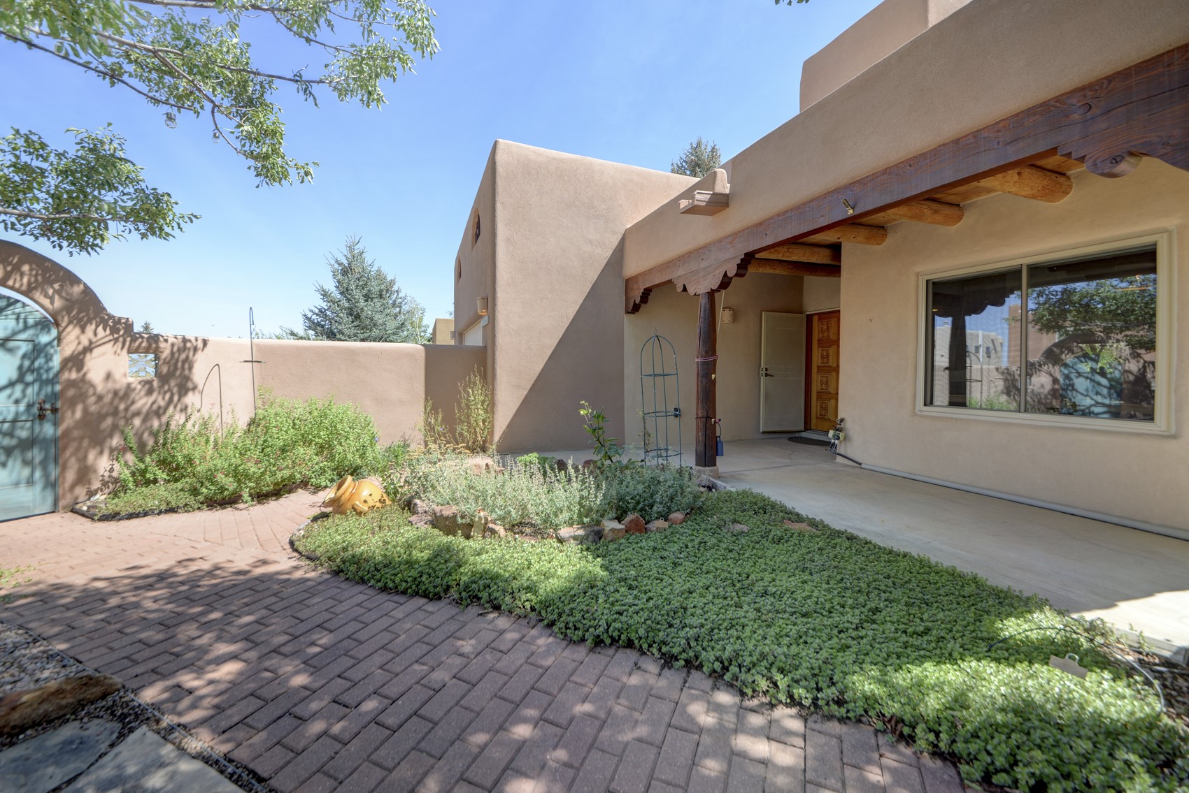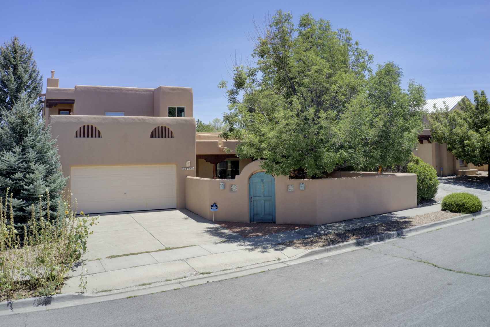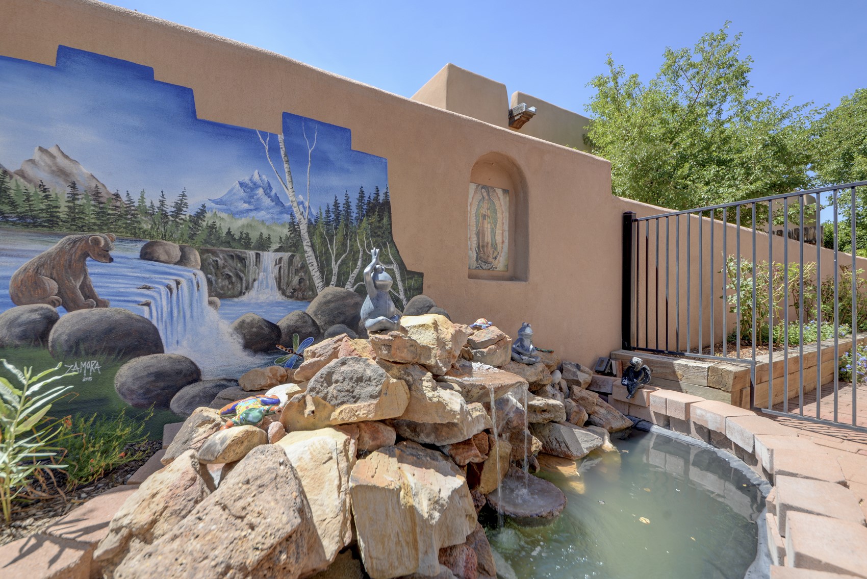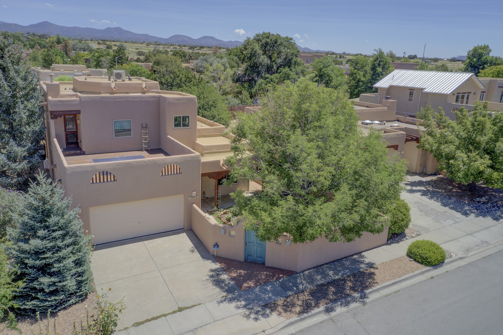 Fantastic Custom home nestled on a Stunning Park-like lot in Pueblos Del Sol, boasting over 100K in Upgrades/Updates!An Oasis in the Heart of Santa Fe! Raised Viga Beam Tongue and Groove Ceilings & Custom Kiva Fireplace in Spacious Living Area! Designer Chandelier in Open Dining Area! Chef's Delight Kitchen has updated smooth surface counter + SS Appliances/Casual Dining Area! Main Level offers 2 Bedrooms and a Gorgeous Remodeled Bath with a Huge Custom Tile shower! Upper Level has wrap-around LOFT Library with live-edge wood bookshelves! Ideal for Art studio/Home office/Work out! View deck off Loft! Luxurious Owner's Suite with Private Deck! Indulge in a SPA-like Experience in the remodeled bath! Relax in the Steam Shower with Body Jets or Linger in the Jet Tub! Upgrades Include: 2019 EE Windows and Patio Doors! 2019 Stucco!/Recent Roof! Remodeled Baths! Updated Kitchen! 2018 Blinds! 2 Mini Split Heat/AC units! 2024 Partial Paint.Stunning Professional Landscaping Designed by a Horticulturist! From the Private Courtyard to the Meandering Flagstone paths, you will be Enchanted! Beautiful SW Original Mural by local Artist! Enjoy the Soothing Stone Waterfall as you Dine on the covered Patio! EZ care Buffalo Grass! Santa Fe Charm meets Modern Comfort! Located just minutes from downtown Santa Fe, local parks, trails, and dining, this home puts you close to everything while still feeling like a private escape!