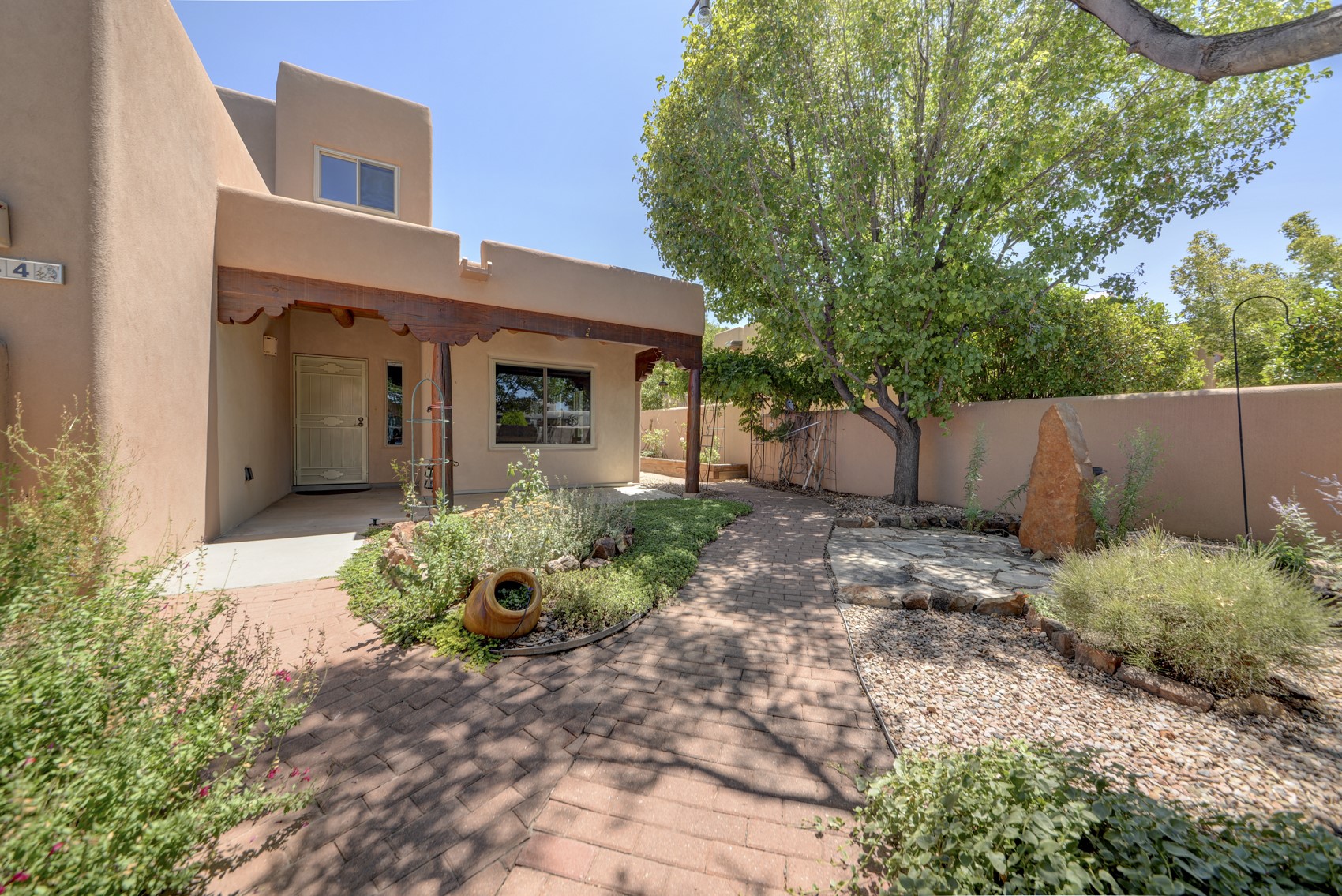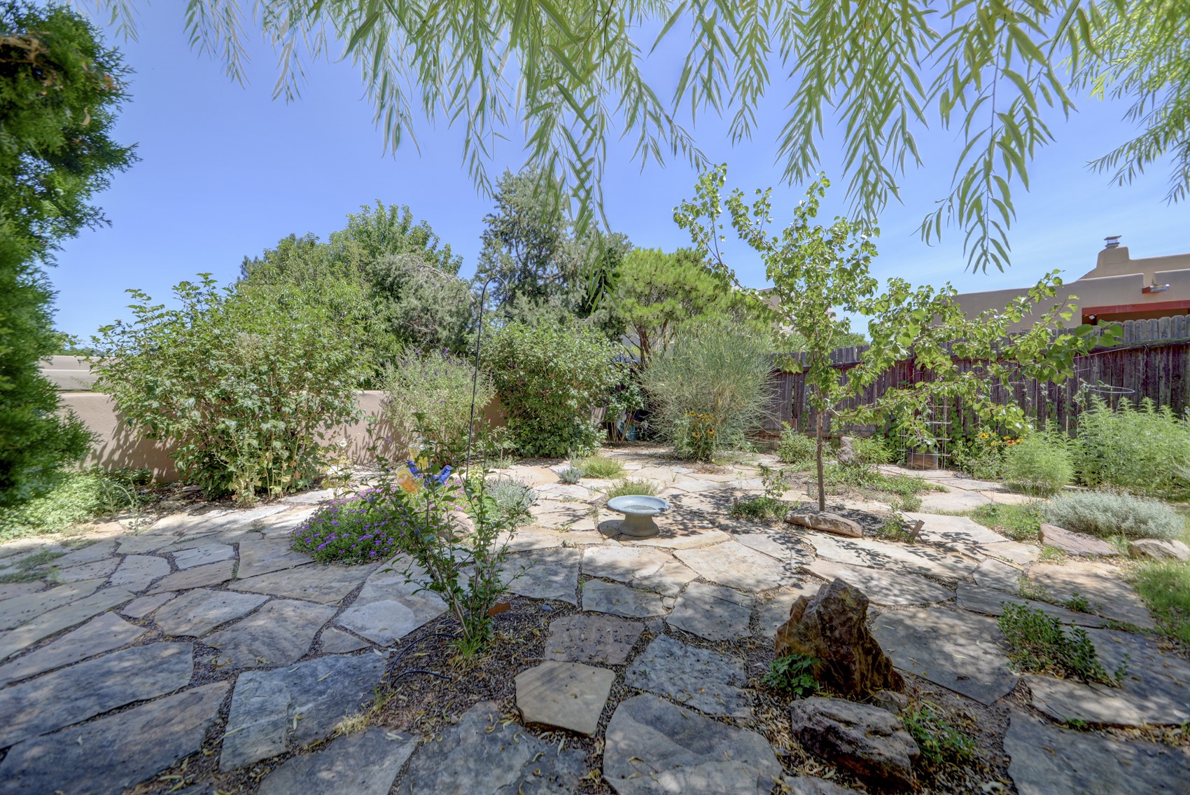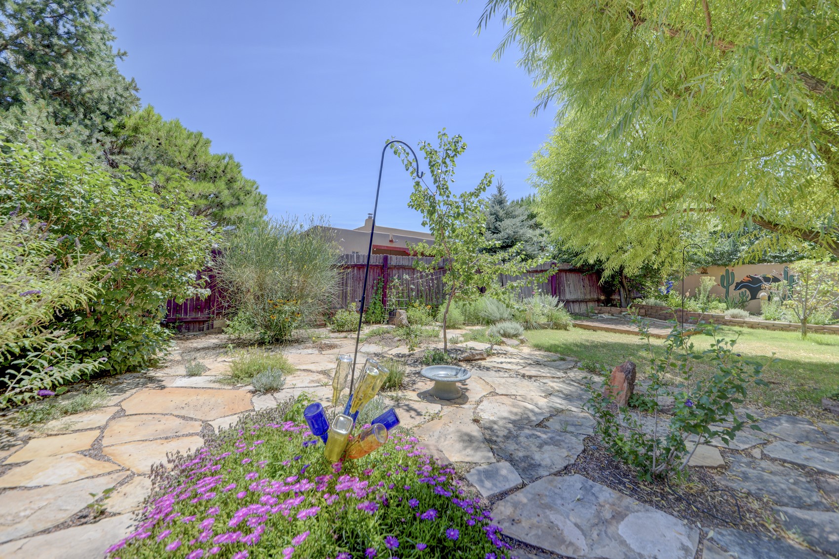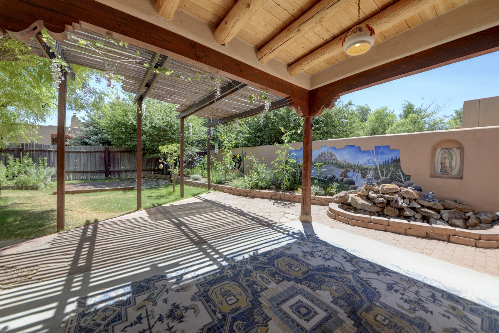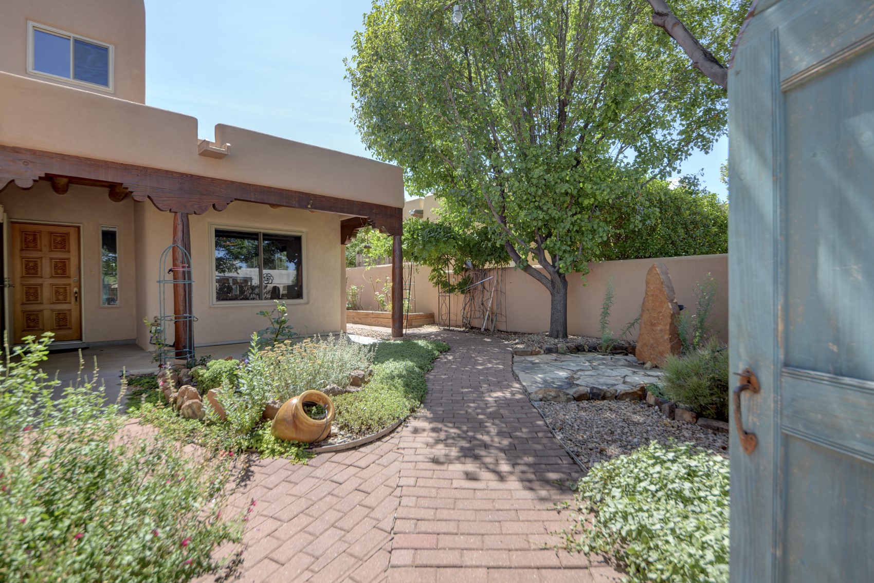 Fantastic Custom home nestled on a Stunning Park-like lot in Pueblos Del Sol, boasting over 100K in Upgrades/Updates!An Oasis in the Heart of Santa Fe! Raised Viga Beam Tongue and Groove Ceilings & Custom Kiva Fireplace in Spacious Living Area! Designer Chandelier in Open Dining Area! Chef's Delight Kitchen has updated smooth surface counter + SS Appliances/Casual Dining Area! Main Level offers 2 Bedrooms and a Gorgeous Remodeled Bath with a Huge Custom Tile shower! Upper Level has wrap-around LOFT Library with live-edge wood bookshelves! Ideal for Art studio/Home office/Work out! View deck off Loft! Luxurious Owner's Suite with Private Deck! Indulge in a SPA-like Experience in the remodeled bath! Relax in the Steam Shower with Body Jets or Linger in the Jet Tub! Upgrades Include: 2019 EE Windows and Patio Doors! 2019 Stucco!/Recent Roof! Remodeled Baths! Updated Kitchen! 2018 Blinds! 2 Mini Split Heat/AC units! 2024 Partial Paint.Stunning Professional Landscaping Designed by a Horticulturist! From the Private Courtyard to the Meandering Flagstone paths, you will be Enchanted! Beautiful SW Original Mural by local Artist! Enjoy the Soothing Stone Waterfall as you Dine on the covered Patio! EZ care Buffalo Grass! Santa Fe Charm meets Modern Comfort! Located just minutes from downtown Santa Fe, local parks, trails, and dining, this home puts you close to everything while still feeling like a private escape!