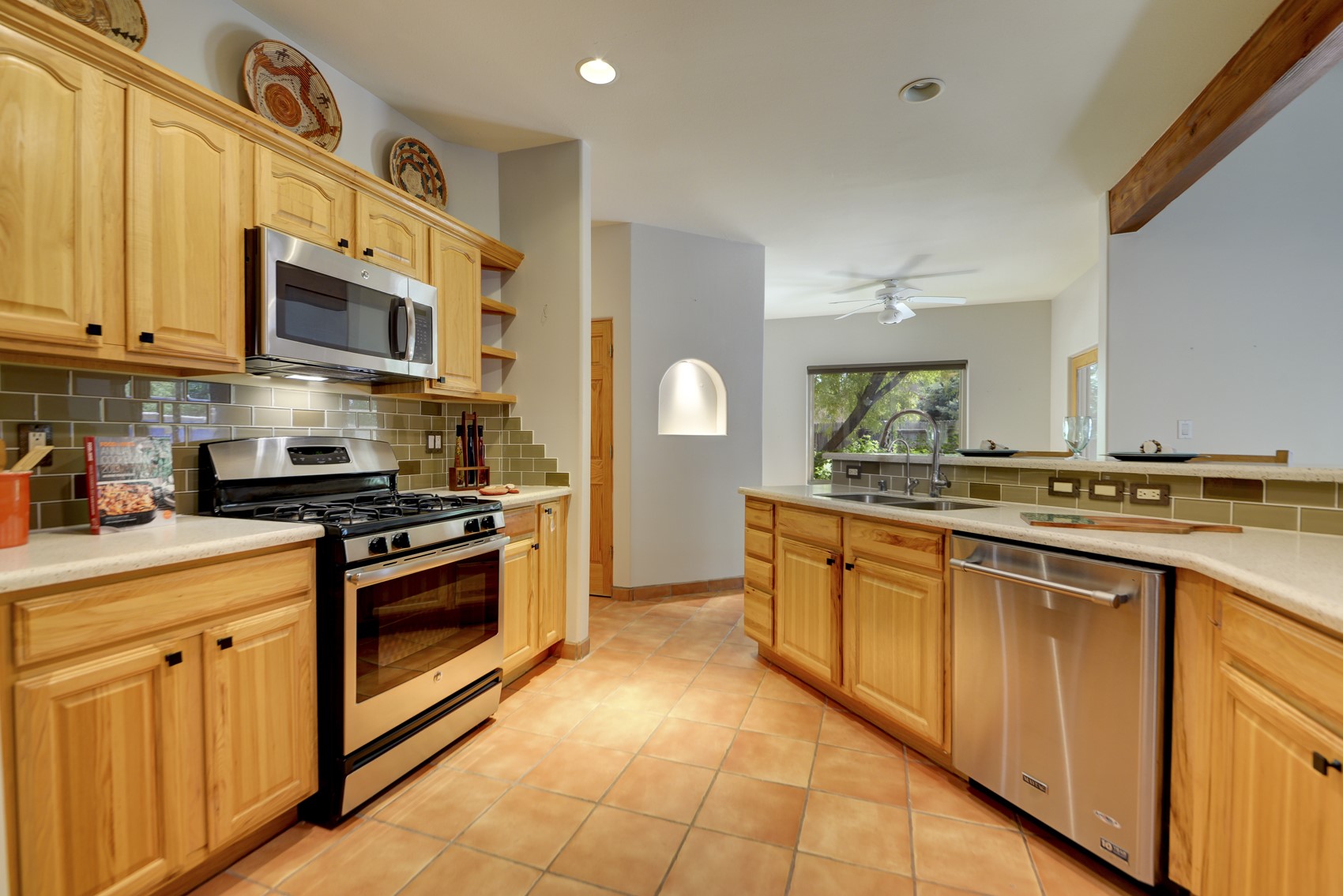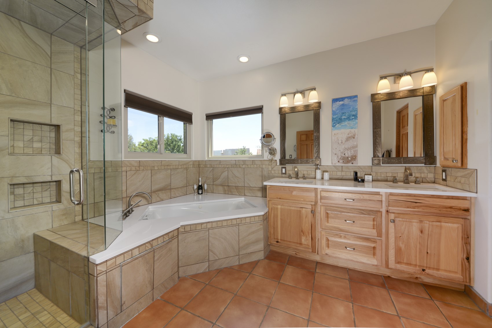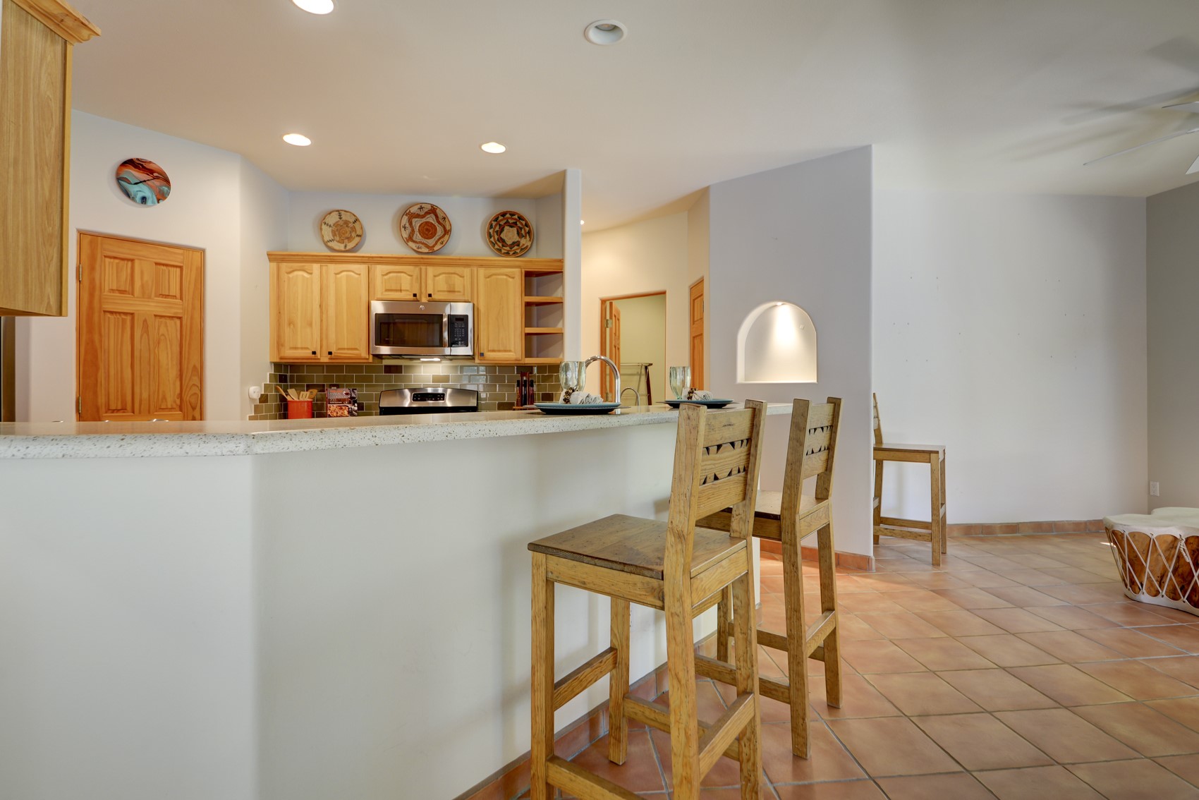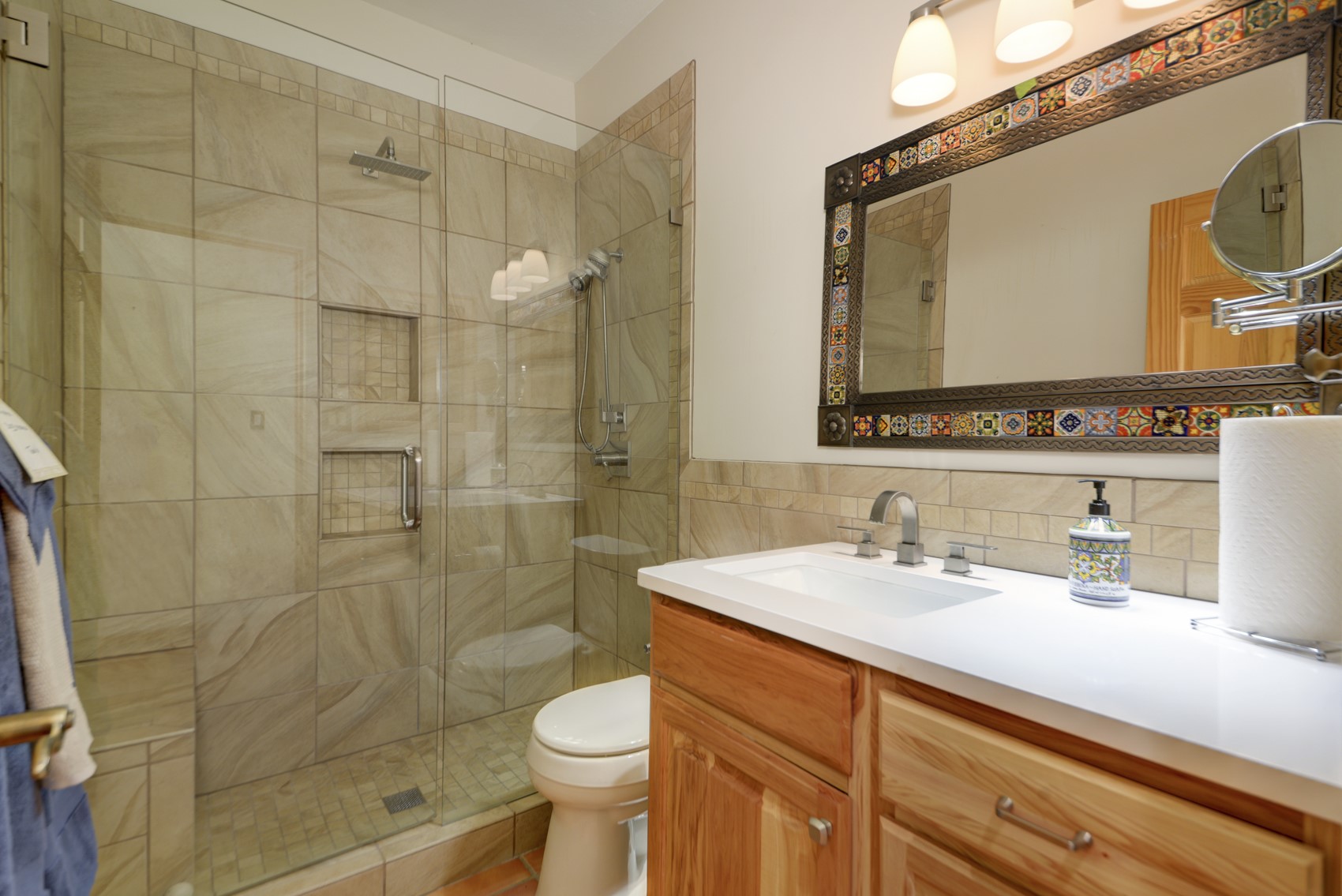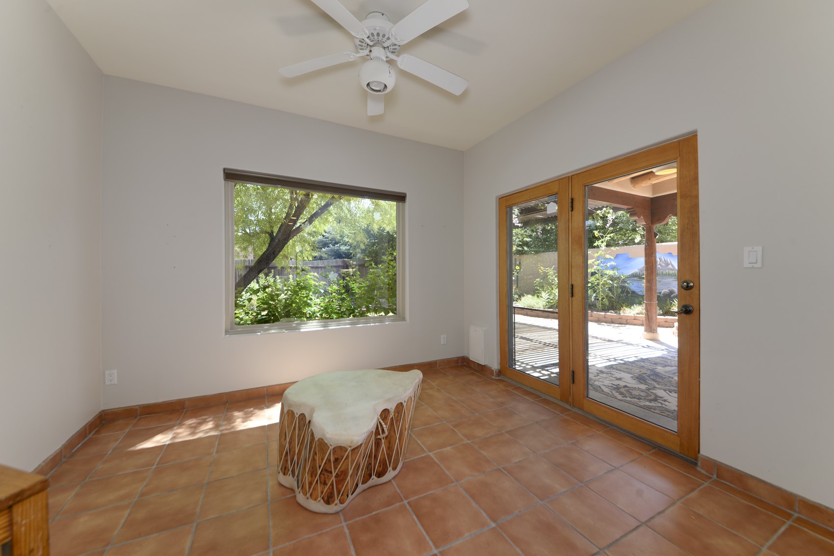 Fantastic Custom home nestled on a Stunning Park-like lot in Pueblos Del Sol, boasting over 100K in Upgrades/Updates!An Oasis in the Heart of Santa Fe! Raised Viga Beam Tongue and Groove Ceilings & Custom Kiva Fireplace in Spacious Living Area! Designer Chandelier in Open Dining Area! Chef's Delight Kitchen has updated smooth surface counter + SS Appliances/Casual Dining Area! Main Level offers 2 Bedrooms and a Gorgeous Remodeled Bath with a Huge Custom Tile shower! Upper Level has wrap-around LOFT Library with live-edge wood bookshelves! Ideal for Art studio/Home office/Work out! View deck off Loft! Luxurious Owner's Suite with Private Deck! Indulge in a SPA-like Experience in the remodeled bath! Relax in the Steam Shower with Body Jets or Linger in the Jet Tub! Upgrades Include: 2019 EE Windows and Patio Doors! 2019 Stucco!/Recent Roof! Remodeled Baths! Updated Kitchen! 2018 Blinds! 2 Mini Split Heat/AC units! 2024 Partial Paint.Stunning Professional Landscaping Designed by a Horticulturist! From the Private Courtyard to the Meandering Flagstone paths, you will be Enchanted! Beautiful SW Original Mural by local Artist! Enjoy the Soothing Stone Waterfall as you Dine on the covered Patio! EZ care Buffalo Grass! Santa Fe Charm meets Modern Comfort! Located just minutes from downtown Santa Fe, local parks, trails, and dining, this home puts you close to everything while still feeling like a private escape!