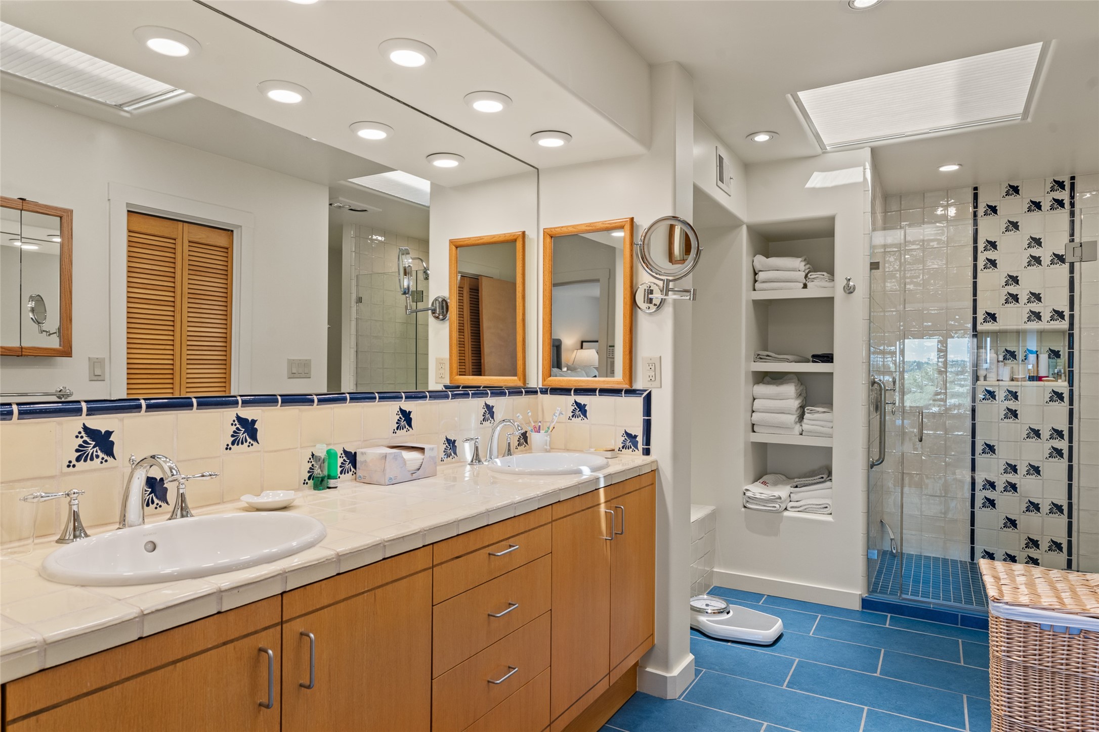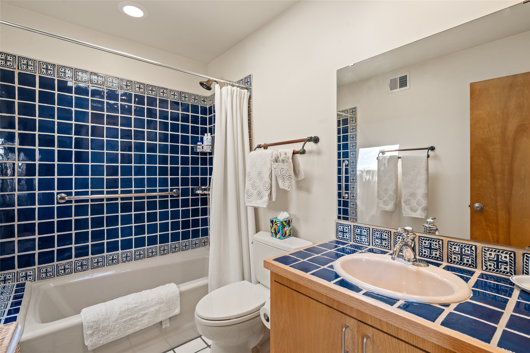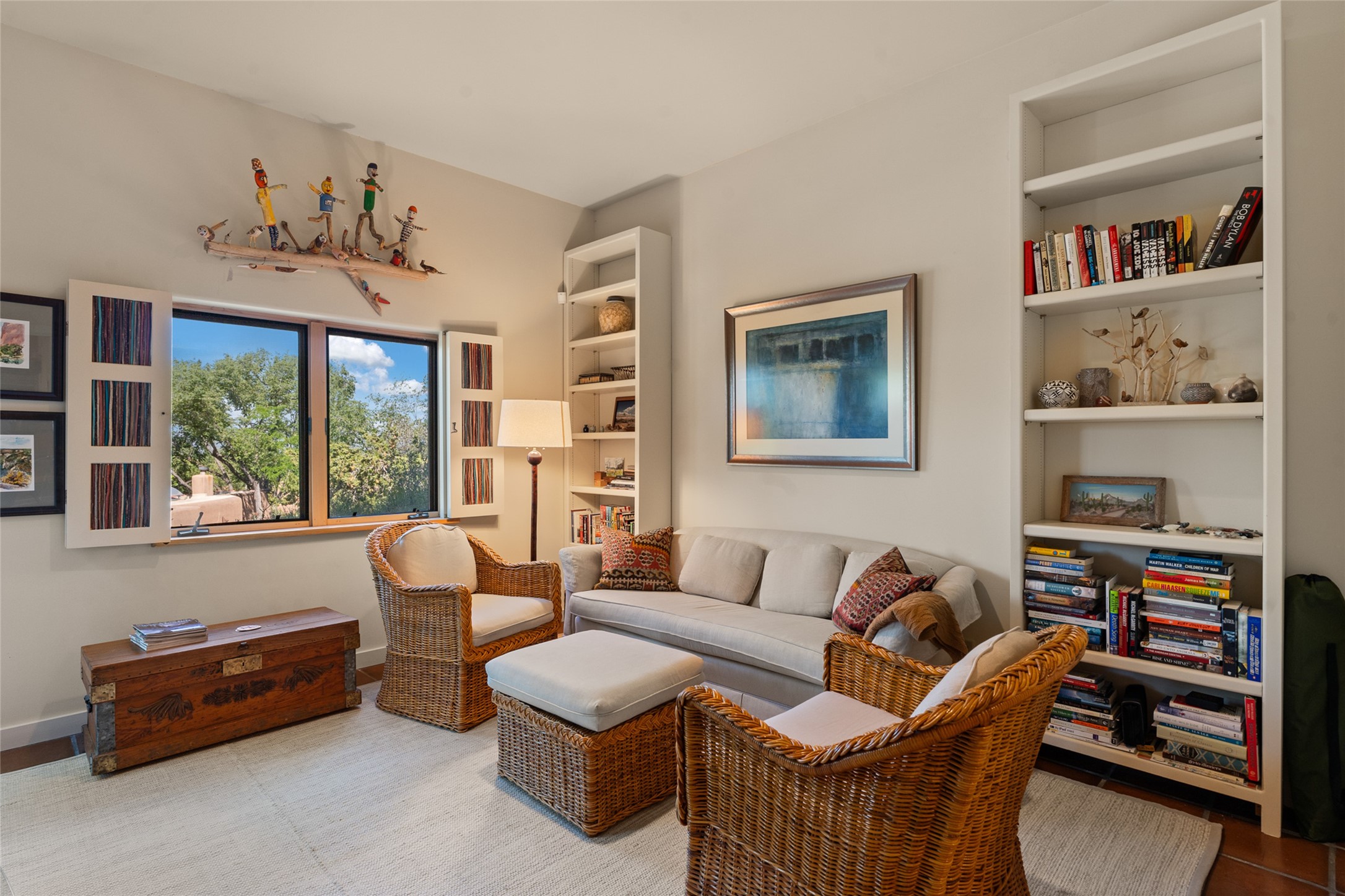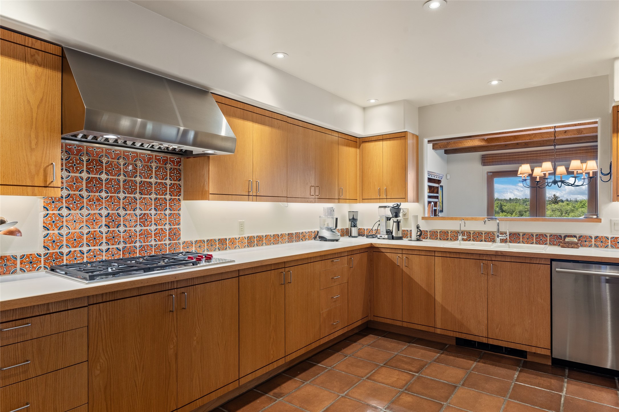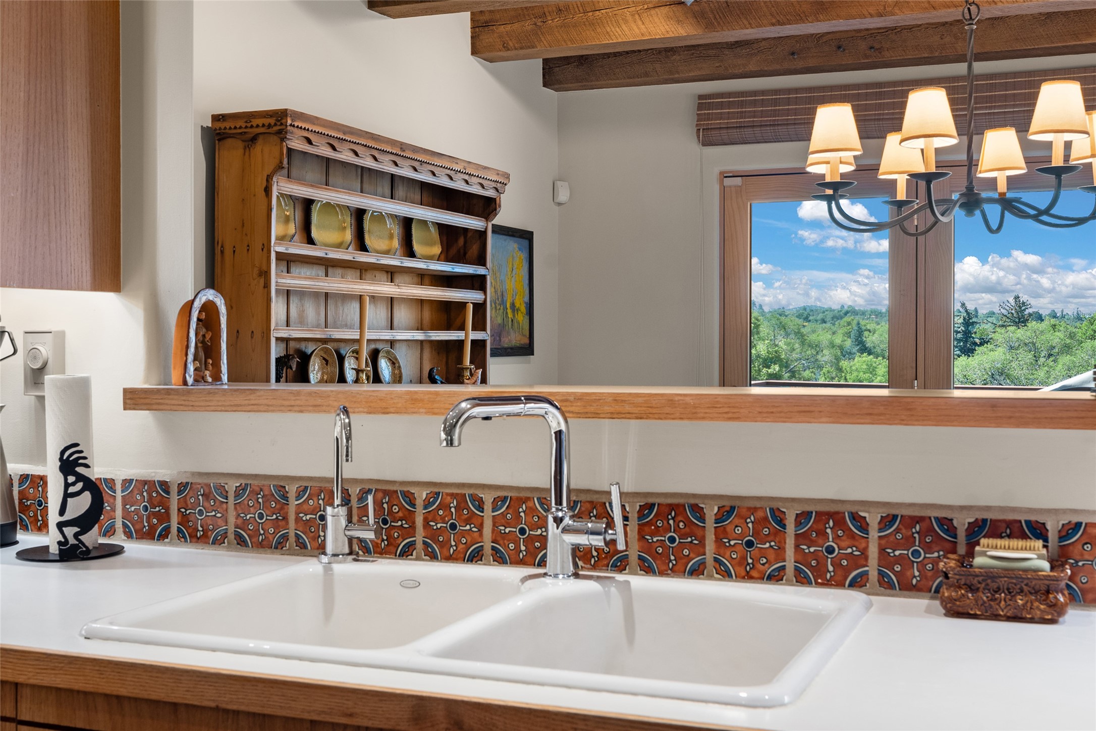 This Eastside gem in the prestigious La Vereda Compound offers an enviable location and stunning views. Unit 30, perched at the highest point of the compound, boasts breathtaking vistas of Sun & Moon Mountain from the dining room deck and spectacular city light and sunset views of the Jemez Range from the upper-level outdoor deck. This tri-level condo, elegantly updated, embodies the quintessential Santa Fe style. It features three bedrooms and three baths, with the ground floor bedroom suite doubling as a media room and its own private outdoor deck. Delight in three separate outdoor spaces with Trex decking, rich wood beamed ceilings, Saltillo tile floors, and a Kiva fireplace in the main living area. The open floor plan is bathed in natural light, ideal for entertaining and refined living. The owner's suite is a retreat of its own, complete with a fireplace, a beautifully tiled bath with double vanity, and a walk-in shower. The spacious chef's kitchen includes hardwood cabinetry, stainless steel appliances, and a sizable pantry. Additional conveniences include a two-car garage with ample storage, including a full-sized wine refrigerator, and a Carrier HVAC unit for central refrigerated A/C and forced air heating. La Vereda Compound is renowned for its gorgeous grounds with a mature tree canopy and its proximity to the Historic Plaza and Canyon Road, offering an unparalleled Eastside location.