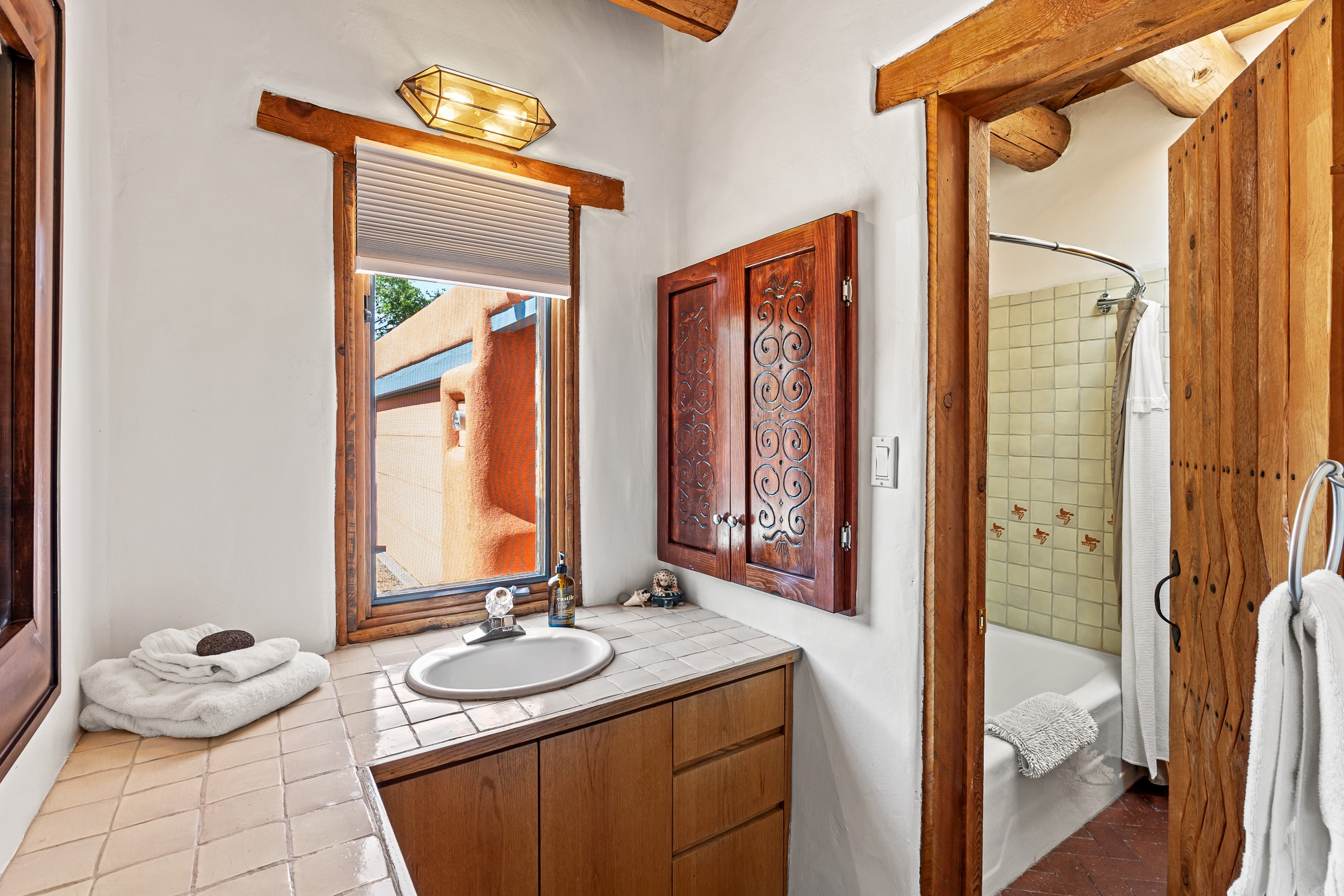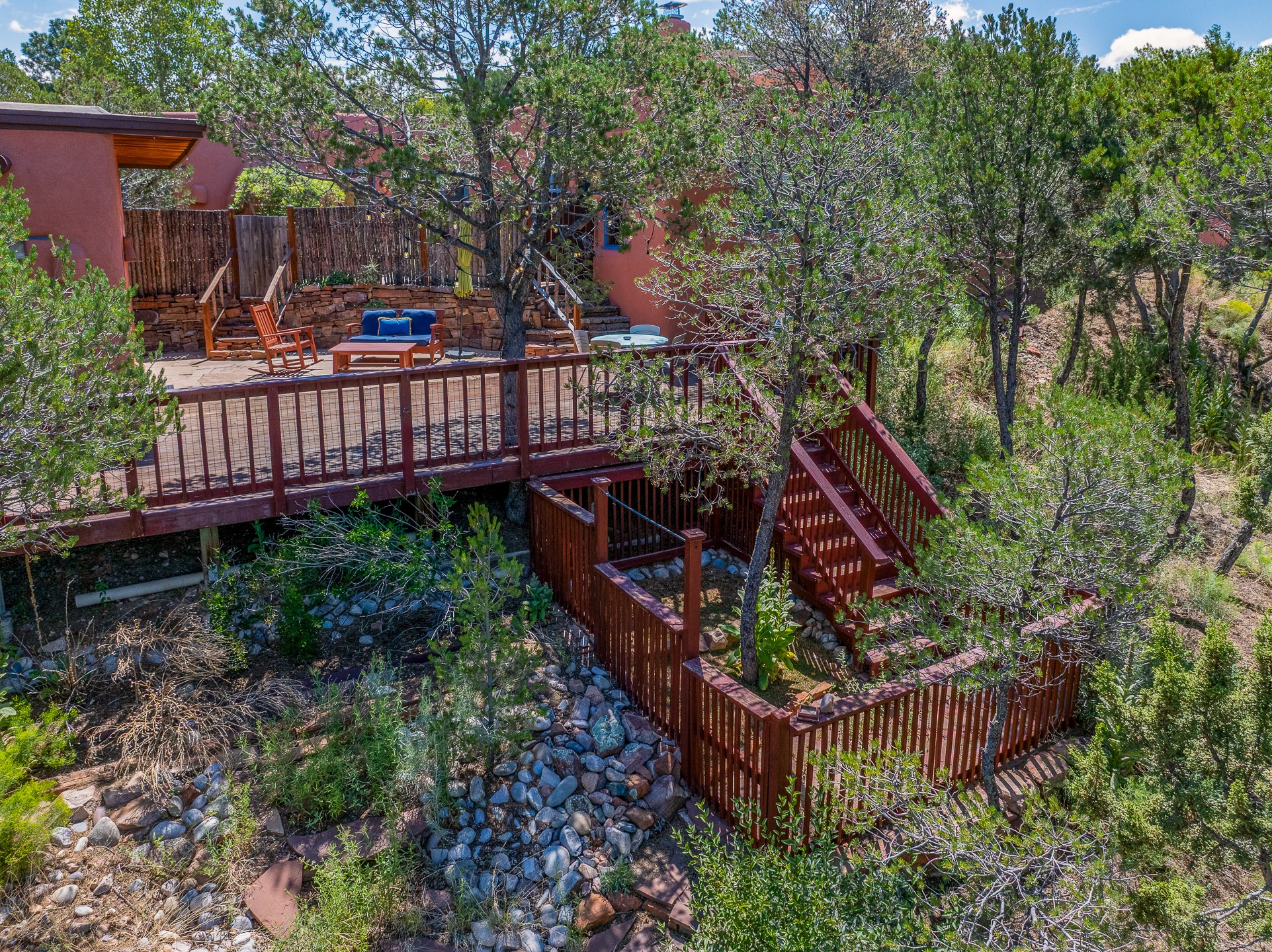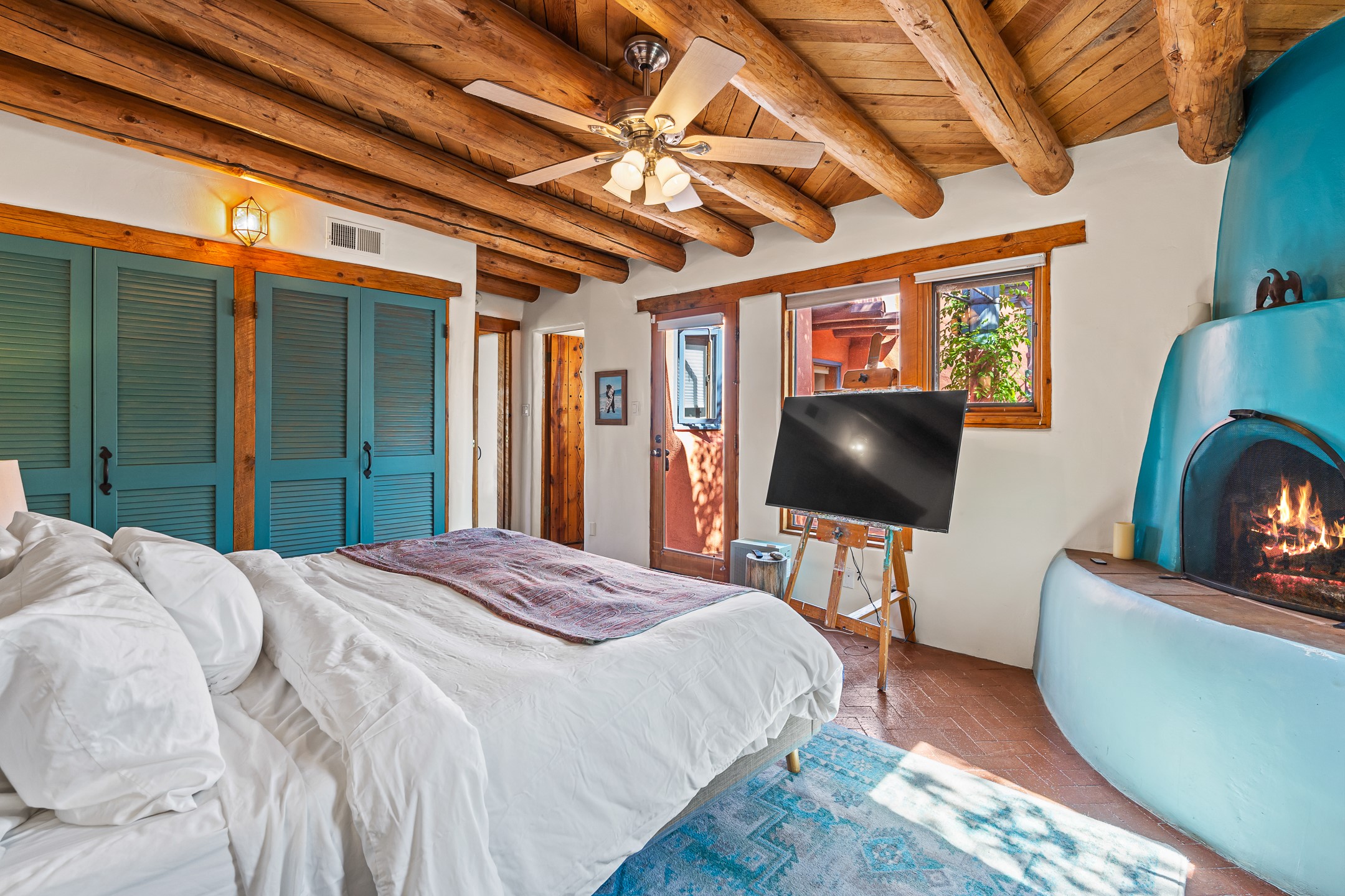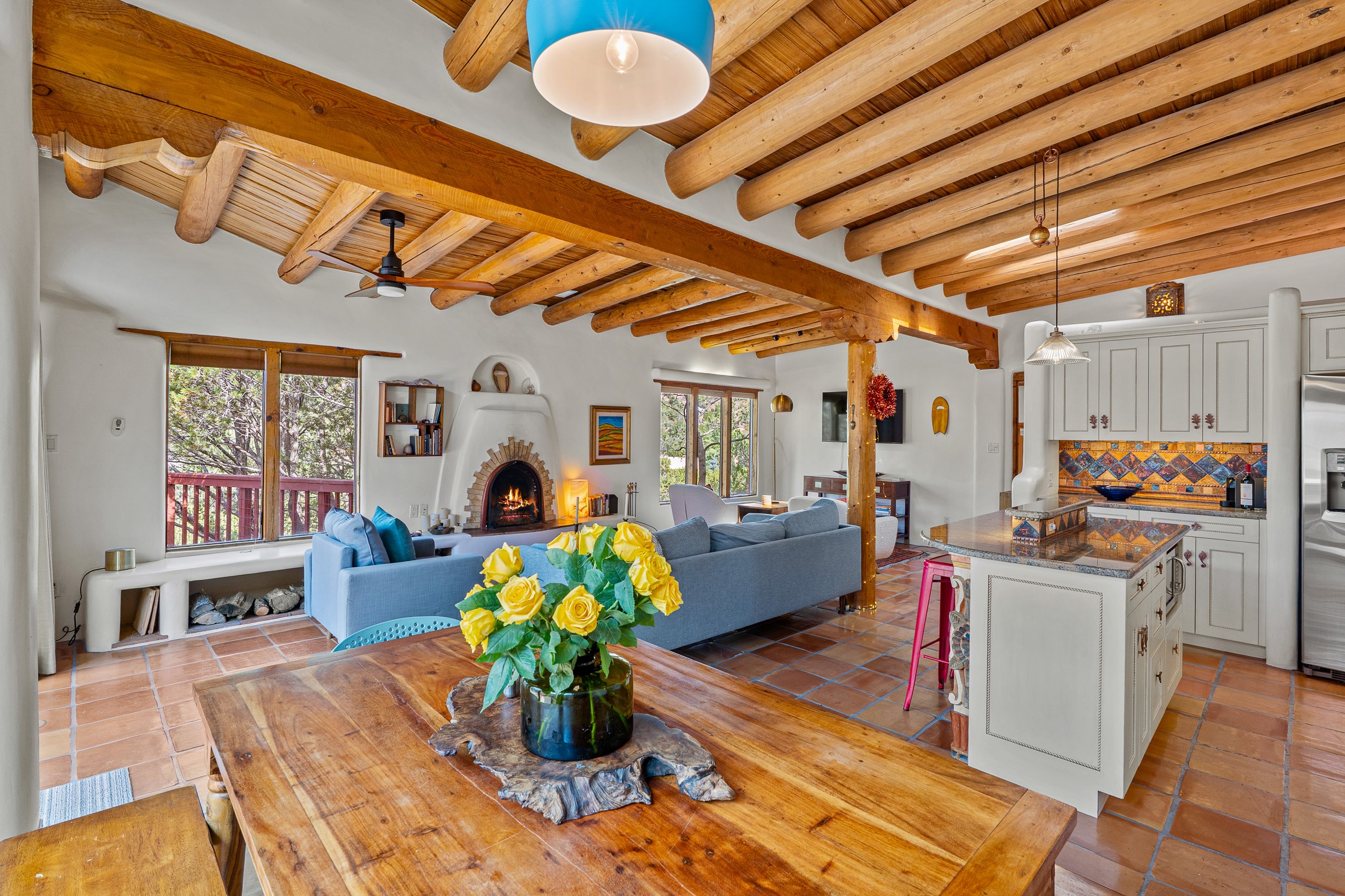 A truly rare opportunity in the heart of Santa Fe, this 3,896 sq. ft. home on 1.2 acres offers exceptional flexibility and timeless Southwestern style. Designed with versatility in mind, the property can live as one four-bedroom residence or as two fully independent 2-bedroom, 2-bath homes. Whether you're seeking a multi-generational retreat, a live/rent investment, or the ease of a duplex, the options are abundant. Vigas, Saltillo tile, and effortless indoor-outdoor living bring warmth and authenticity throughout. Though distinct in character, both living spaces reflect the region's soulful charm. Privately sited with a 2-car garage and minutes from the Plaza, Canyon Road, and the Railyard District, this is a rare chance to live, share, or invest in one extraordinary property.