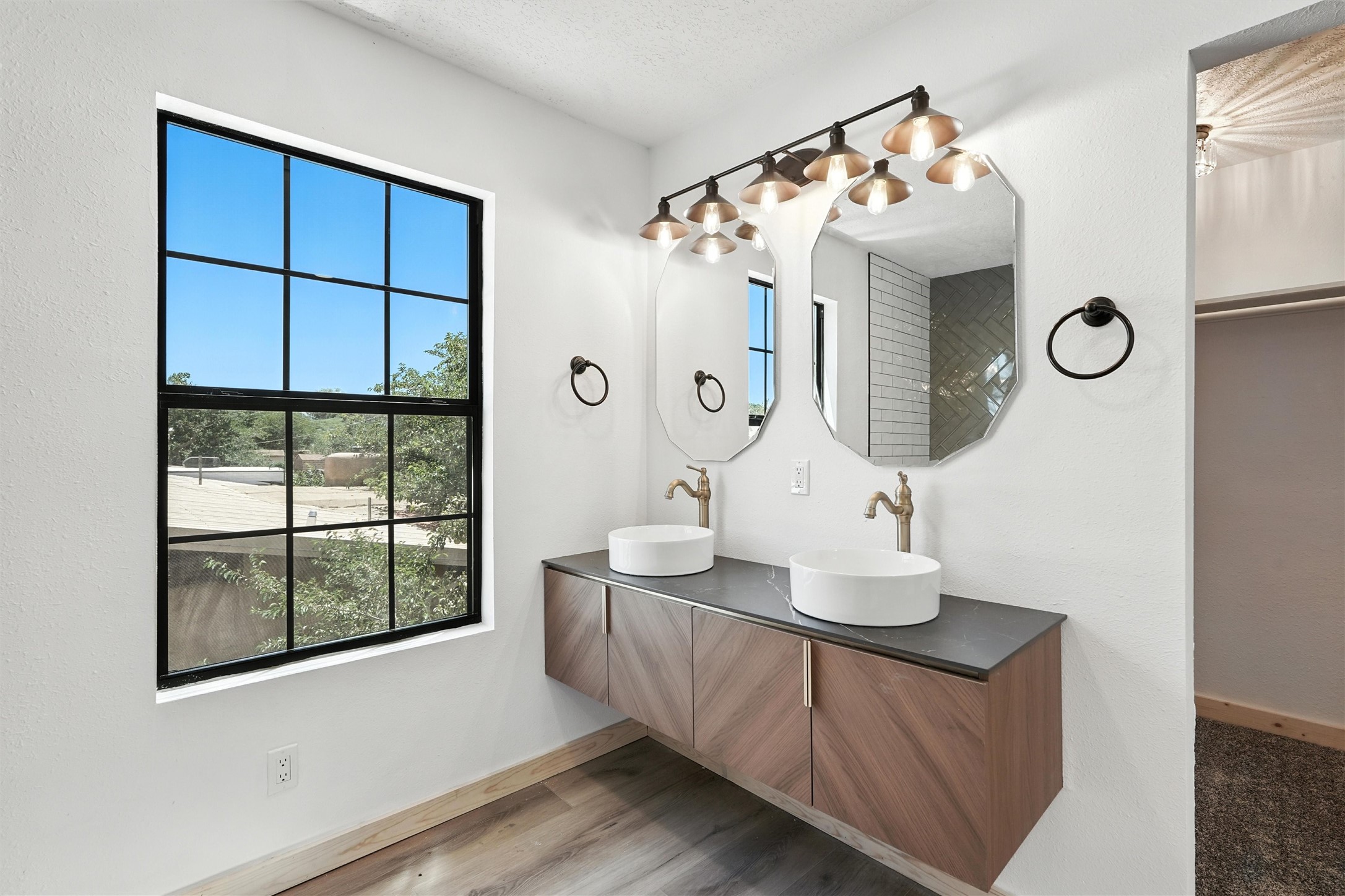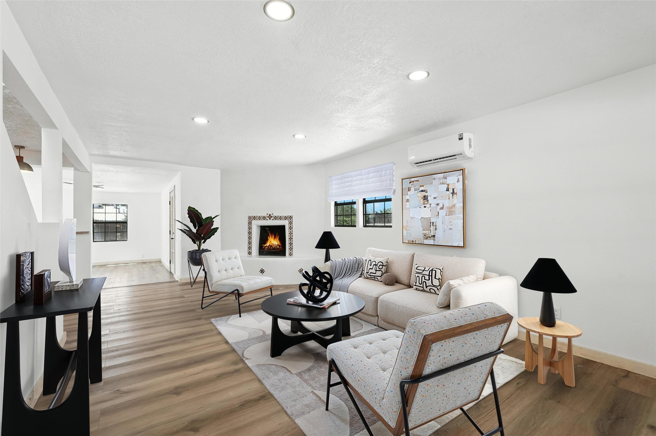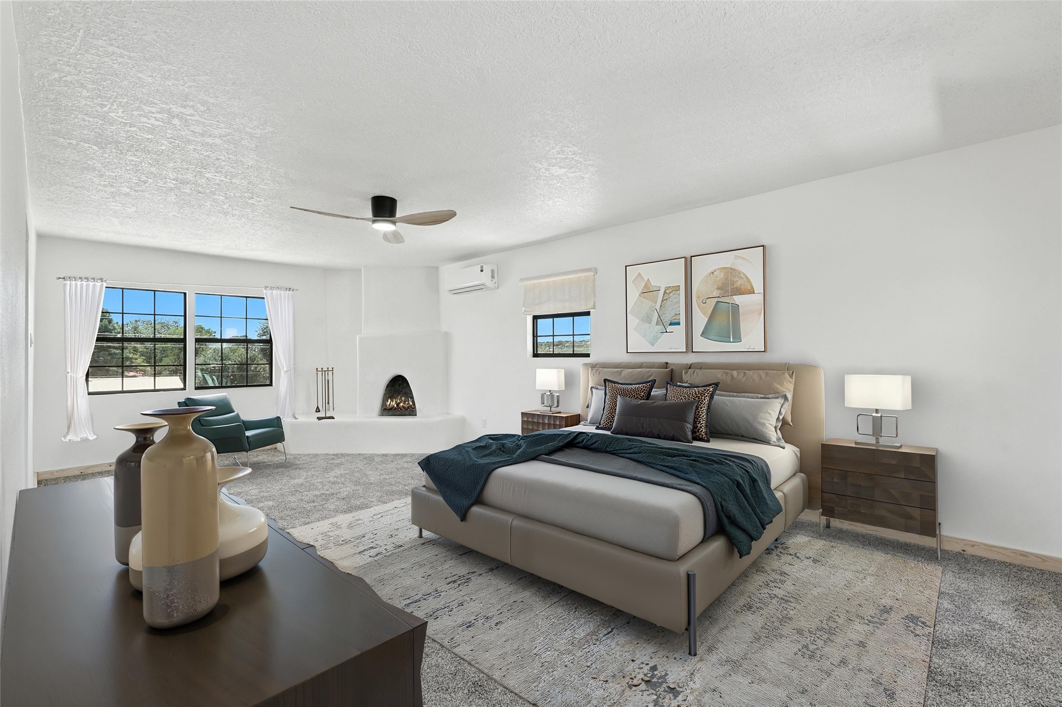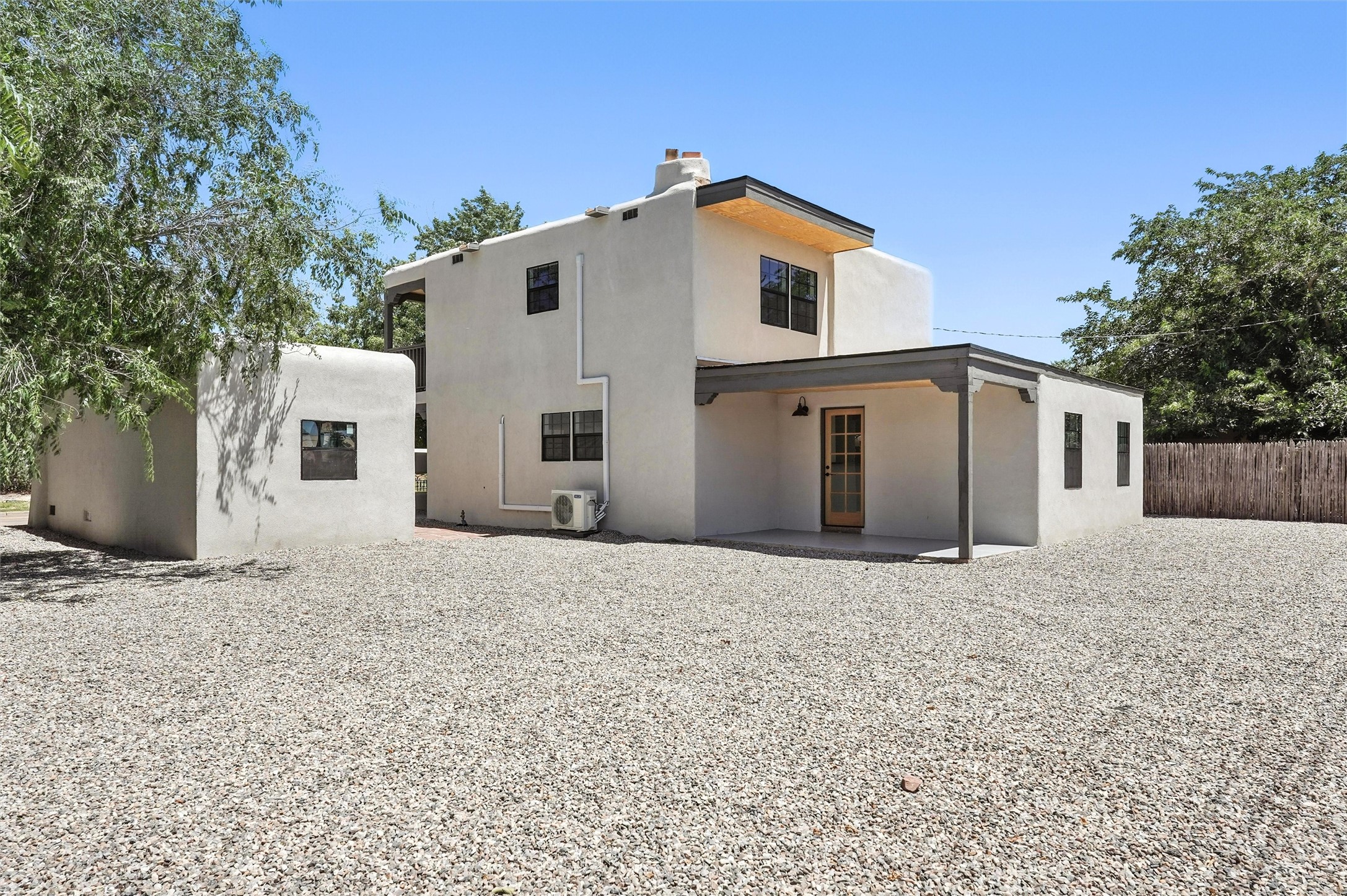 Fully remodeled and move-in ready, this charming 3-bedroom, 3-bath home blends modern upgrades with classic Santa Fe style. Updates include new heating, cooling, windows, roof, and stucco--just to name a few. Located in the desirable, established Barrio La Caada neighborhood, you're less than 3 miles from the historic Santa Fe Plaza and under 2 miles from the vibrant Railyard Arts District & Plaza. The main floor offers a bedroom and bath, while upstairs features two bedrooms, each with its own en suite. Cozy up by the beautiful custom wood-burning kiva fireplace, or enjoy the nearby Santa Fe River's walking and biking trails, just blocks away.
