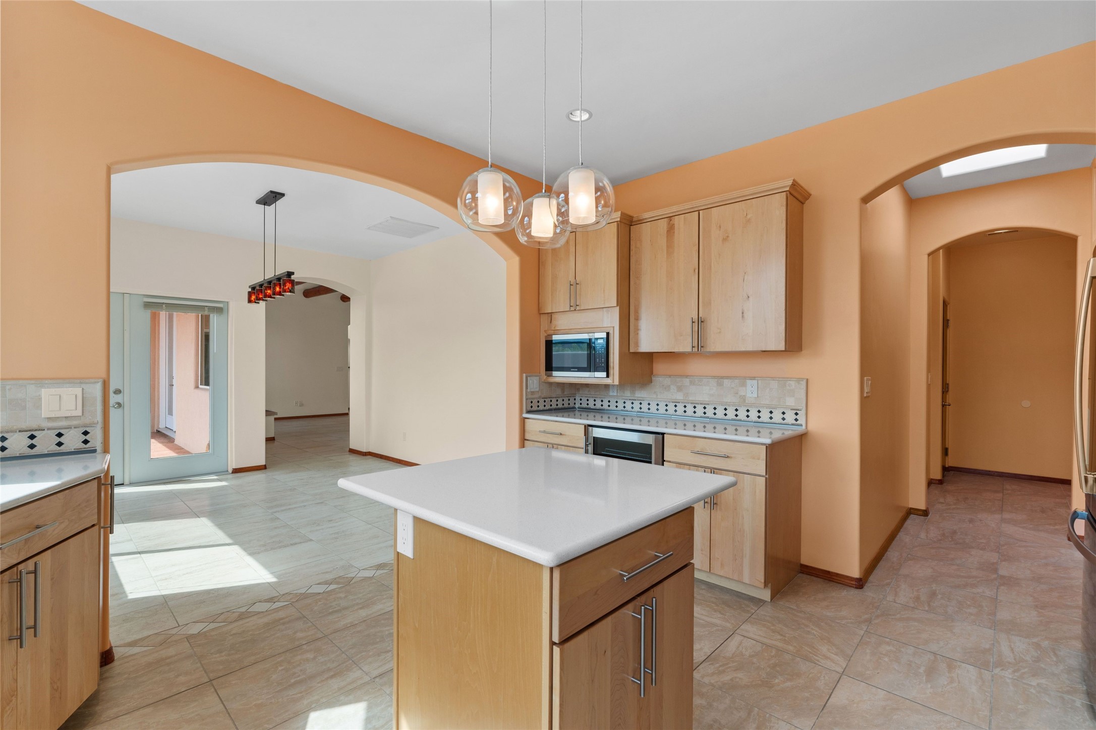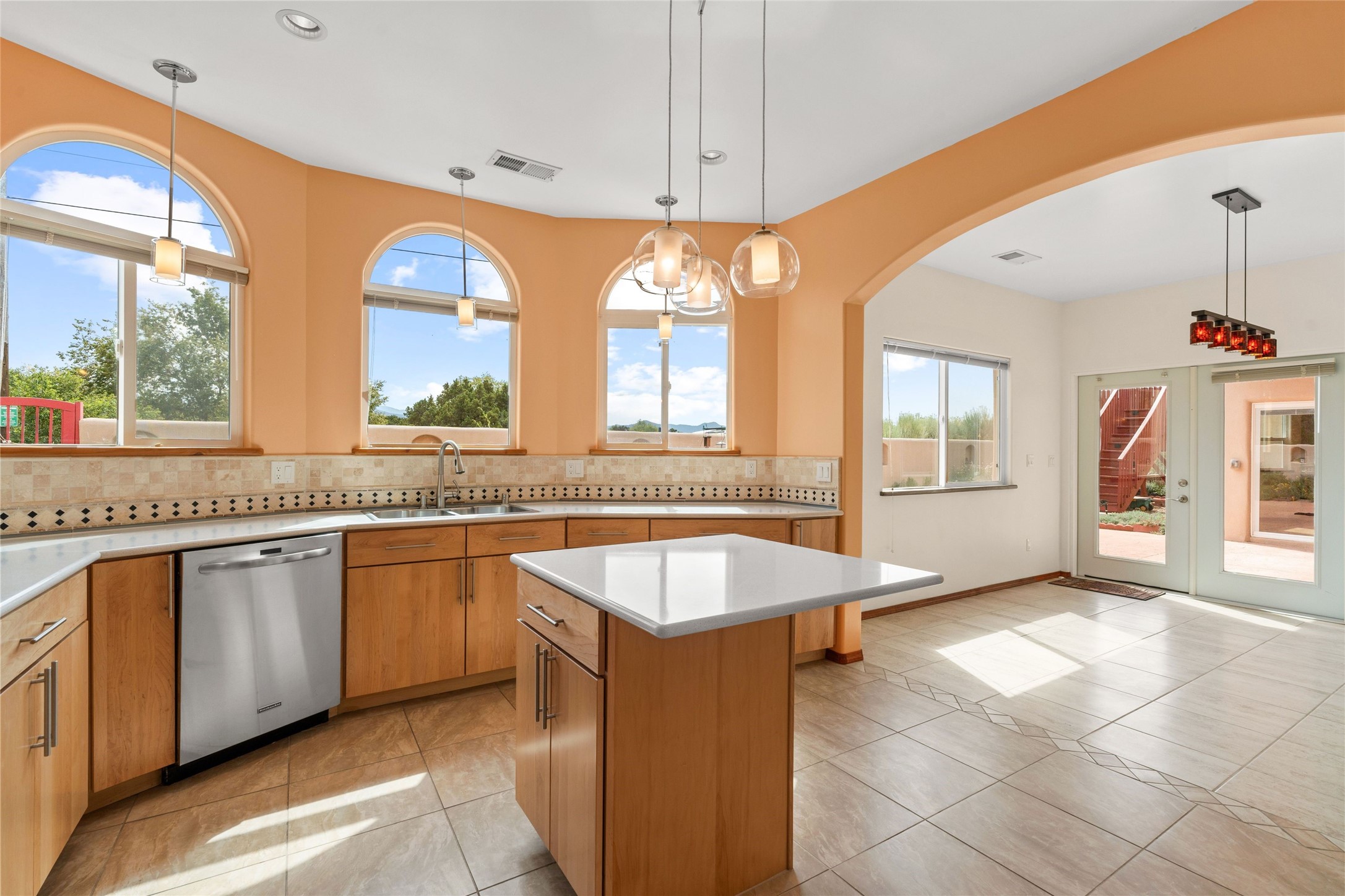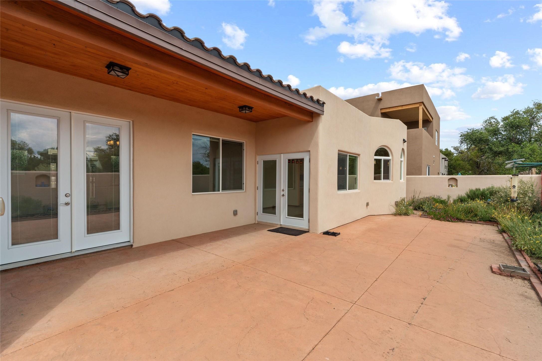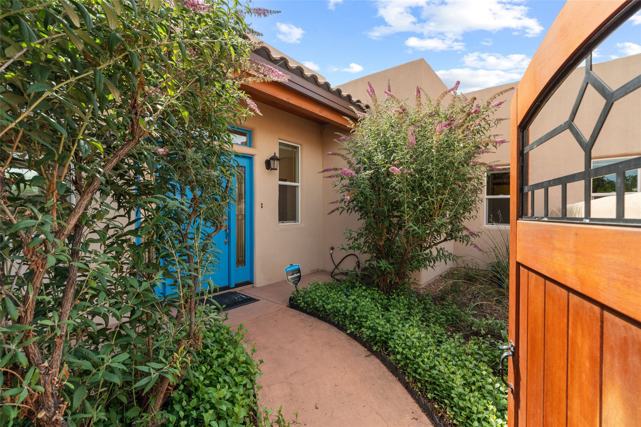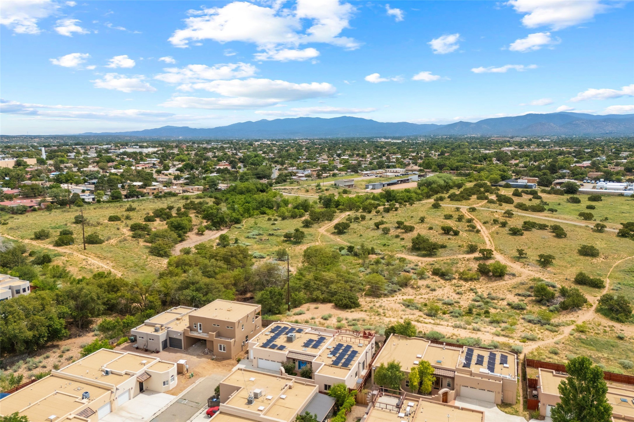 Kachina Ridge 3-bedroom, 2-bathroom residence, crafted by Master Green Builder Arch Sproul, showcases numerous custom upgrades and green features, making it an eco-friendly choice for the modern homeowner. Wide doorways, nichos, and porcelain tile and hardwood hickory floors throughout. The solid knotty pine doors add a touch of rustic charm, while the enlarged living room with log vigas and a gas fireplace with a flagstone hearth, invites you to unwind in style. The bright, east-facing kitchen is appointed with a center island, solid maple cabinets finished in natural tones, Silestone quartz countertops and Energy Star Appliances. The primary suite includes a walk-in closet and en-suite bath with soaking tub and walk-in shower. The two guest bedrooms offer versatile options, whether you need a studio, office, or additional space for visitors. Plus, a bonus room awaits your creativity--perfect for exercise or artistic endeavors. Step outside to the expansive back portal featuring a tongue and groove ceiling, where you can enjoy al fresco dining. The front and backyard gardens are thoughtfully designed with low-water perennials and buried irrigation lines. Enlarged, fully finished garage with 10-foot ceiling and overhead storage. Equipped with 30 photovoltaic panels installed by Positive Energy, you can enjoy lower energy costs while reducing your carbon footprint. The Kachina Ridge Subdivision homes are located adjacent to a greenbelt with no through streets. Convenient city location close to shopping, restaurants and the Santa Fe Plaza.