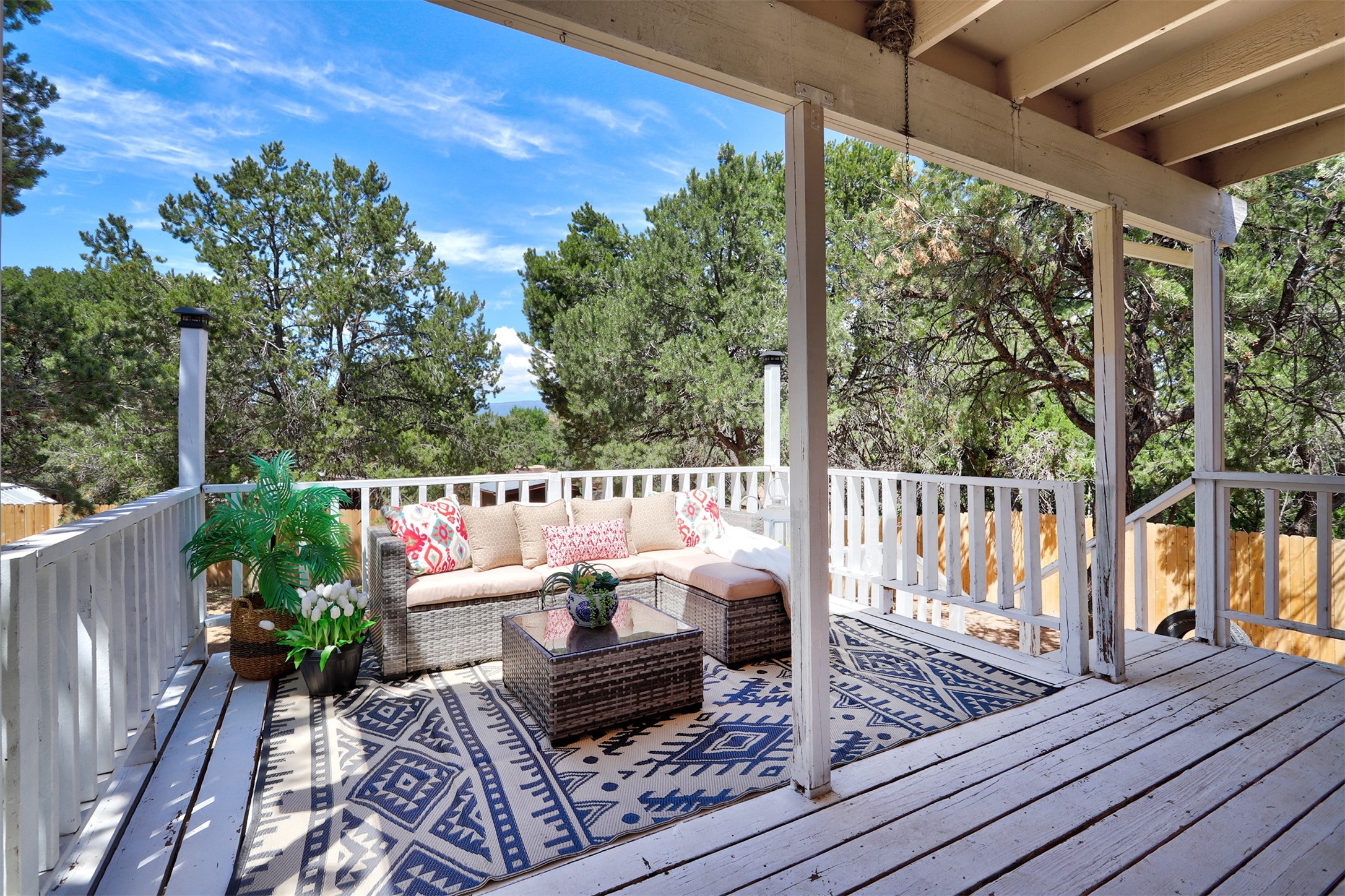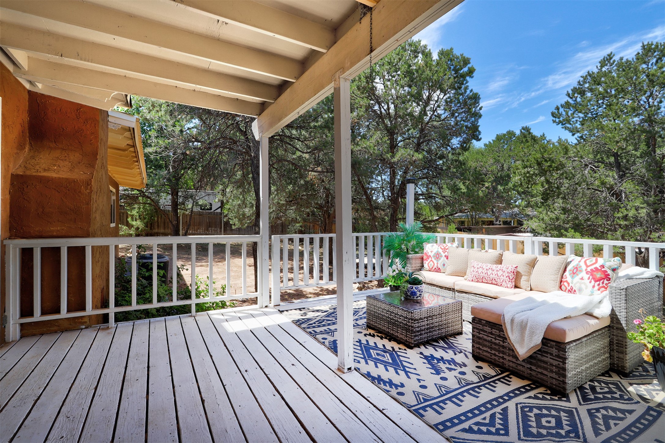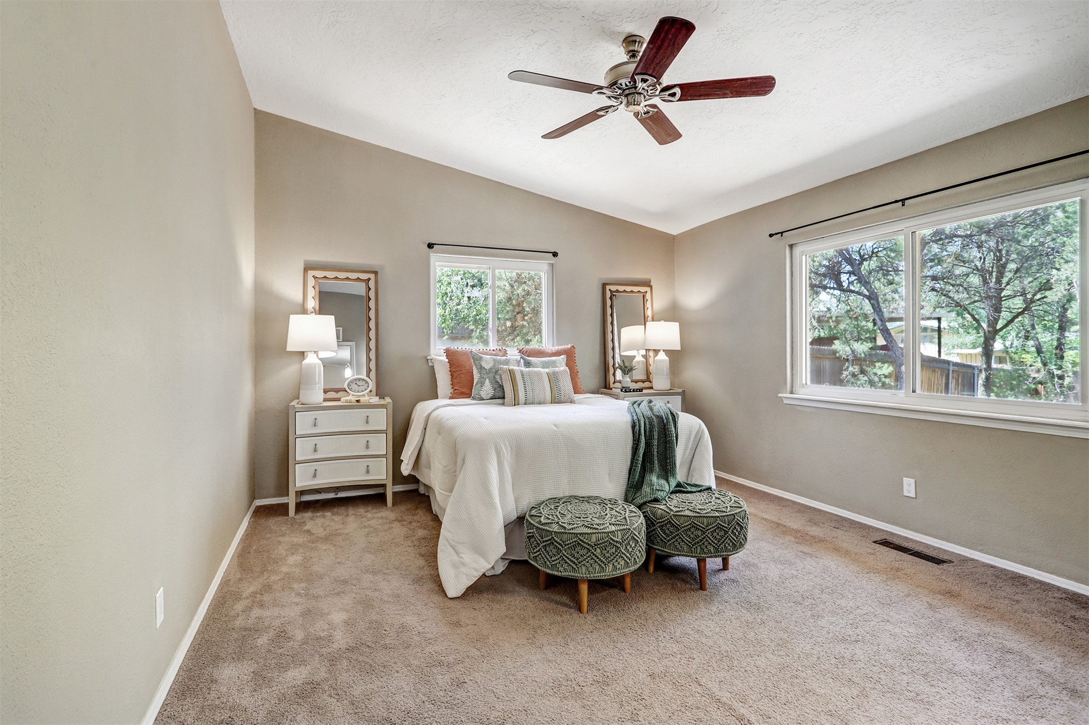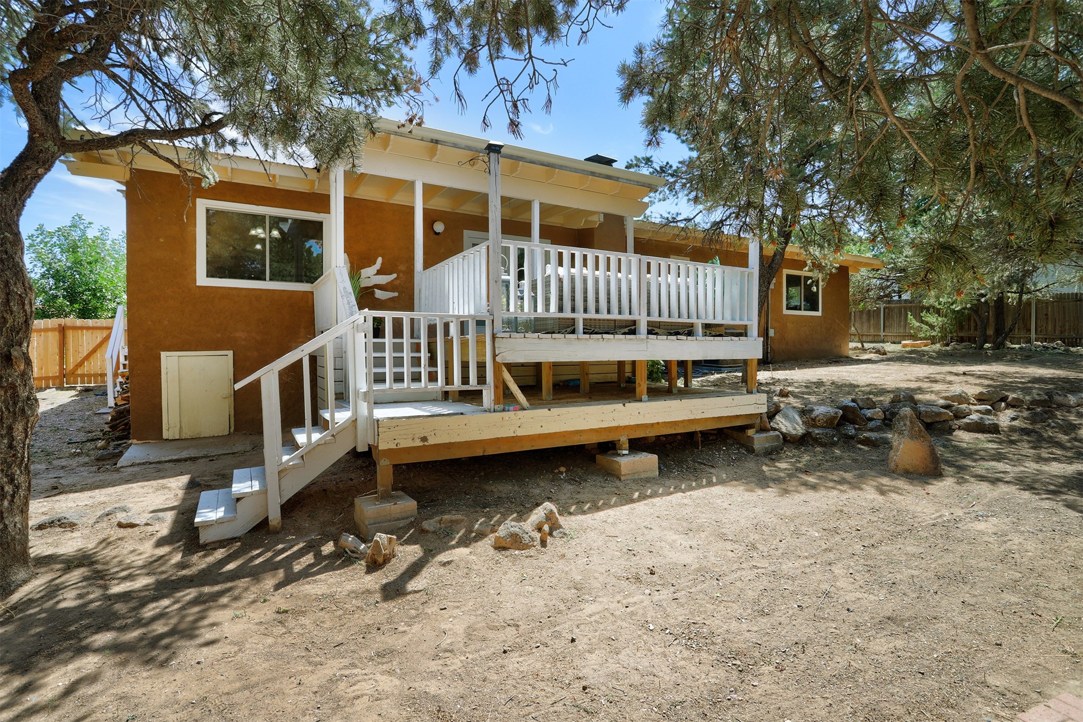Welcome to 108 La Vista Dr, a beautifully maintained 3-bedroom, 2-bathroom home that blends classic charm with modern updates. Offering 1,878 square feet of living space on an expansive one-third-acre lot, this property provides both comfort and room to grow. The front yard features low-maintenance xeriscaping, while a charming enclosed courtyard offers a private retreat or a convenient spot to keep toys out of sight. Inside, the bright and inviting living room is filled with natural light. The open kitchen boasts updated countertops, contemporary fixtures, and ample cabinetry ideal for both everyday living and entertaining. A second living area adds flexibility to the layout, perfect for relaxing by the fireplace or hosting guests. French doors lead to a spacious deck that overlooks the large backyard, offering the perfect setting for summer grilling, relaxing evenings, and outdoor gatherings. The primary suite includes a generous walk-in closet and an en-suite bathroom with a soaking tub. Two additional bedrooms and a well-appointed guest bathroom provide comfortable accommodations for family or visitors. A separate laundry room adds convenience, and a drop zone off the garage entry. Additional highlights include central air conditioning and a durable, low-maintenance metal roof. Thoughtfully cared for and move-in ready, this home is prepared for its next chapter. Schedule your private tour today.