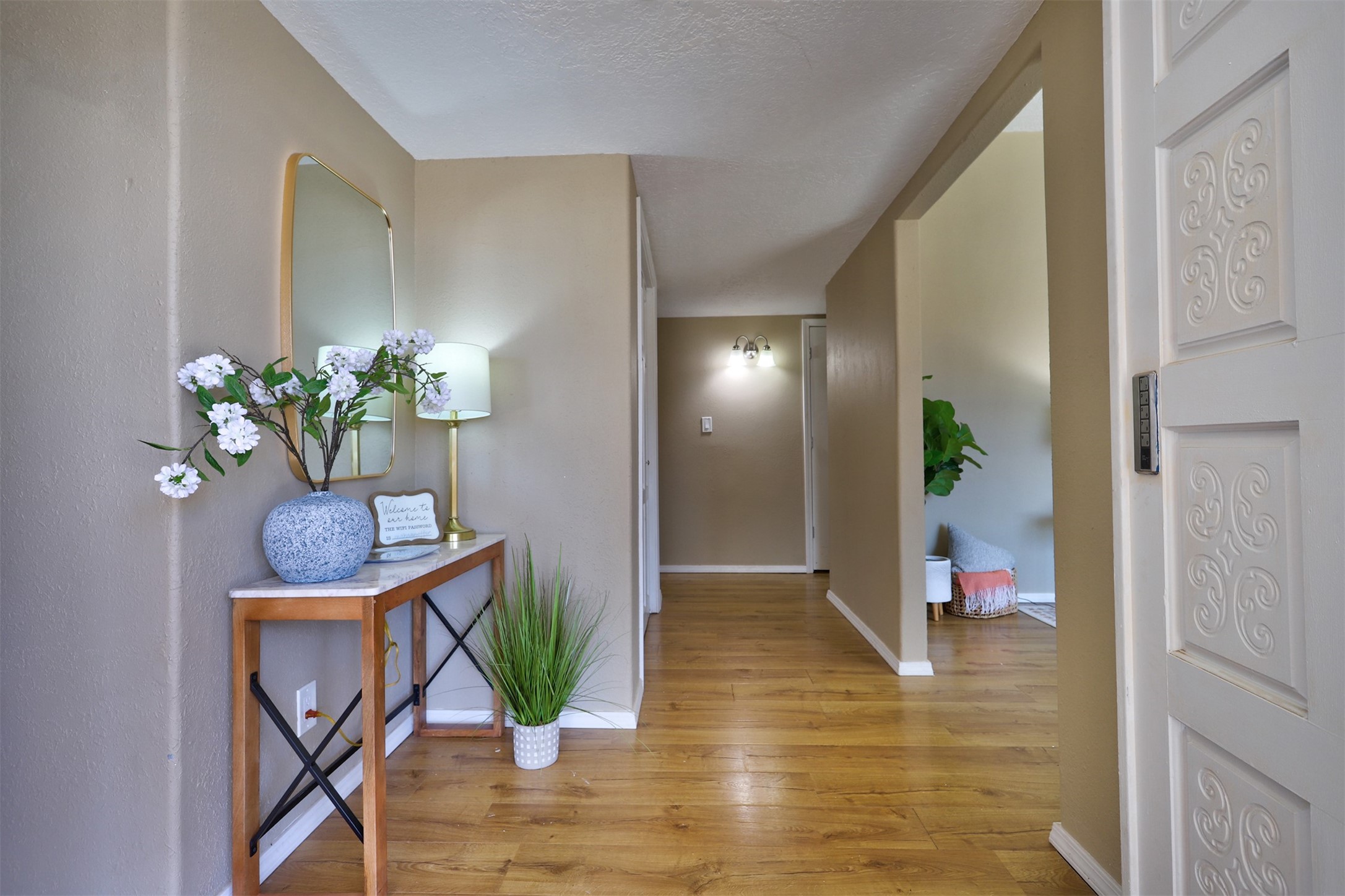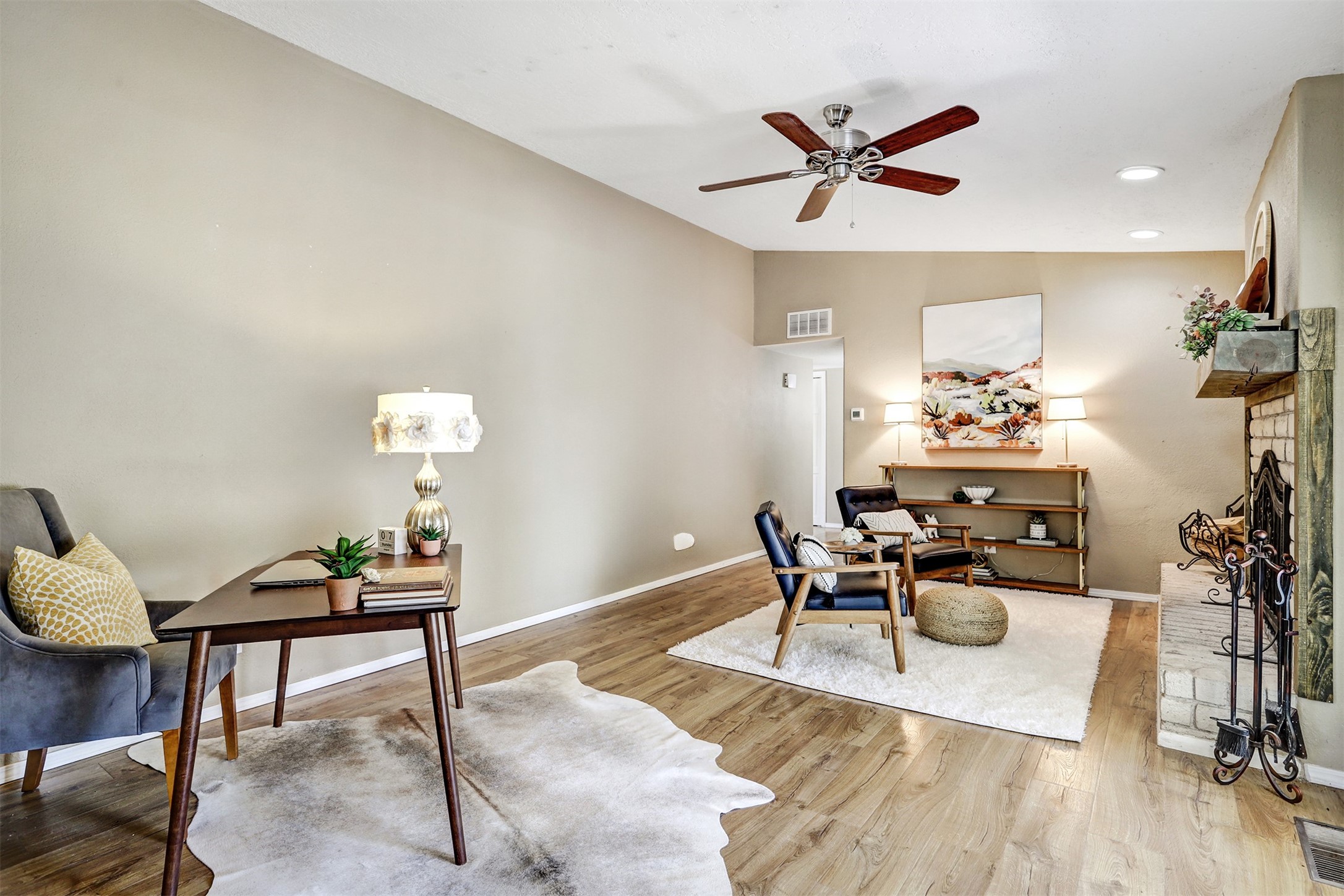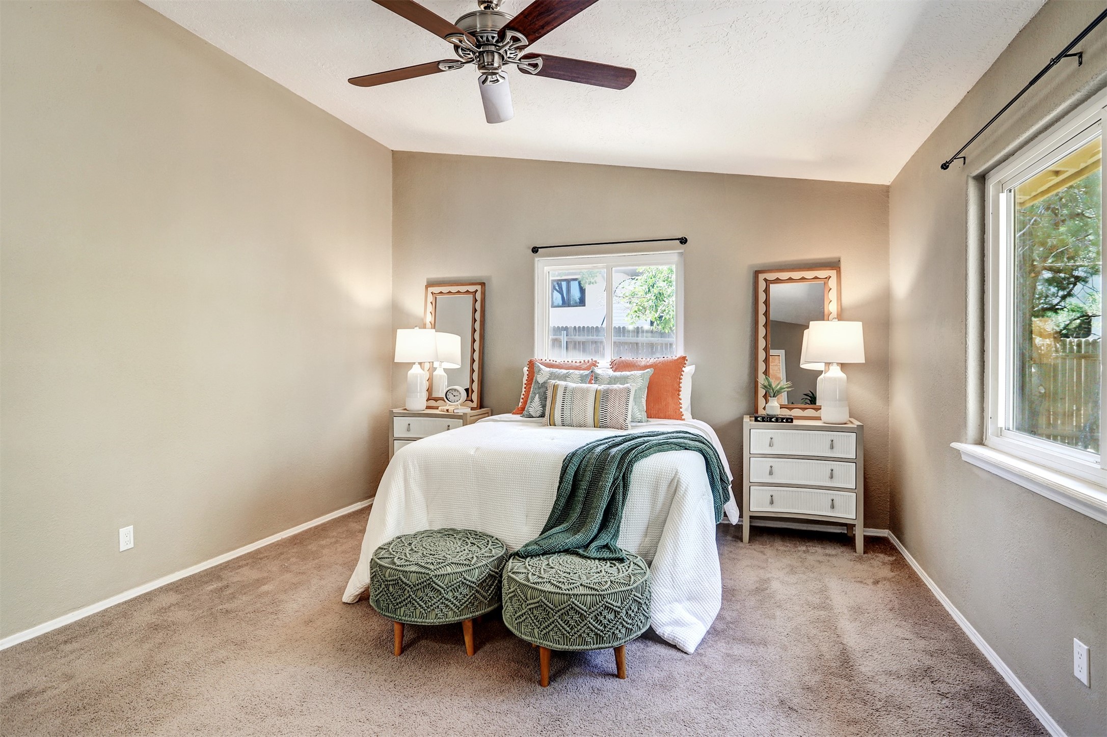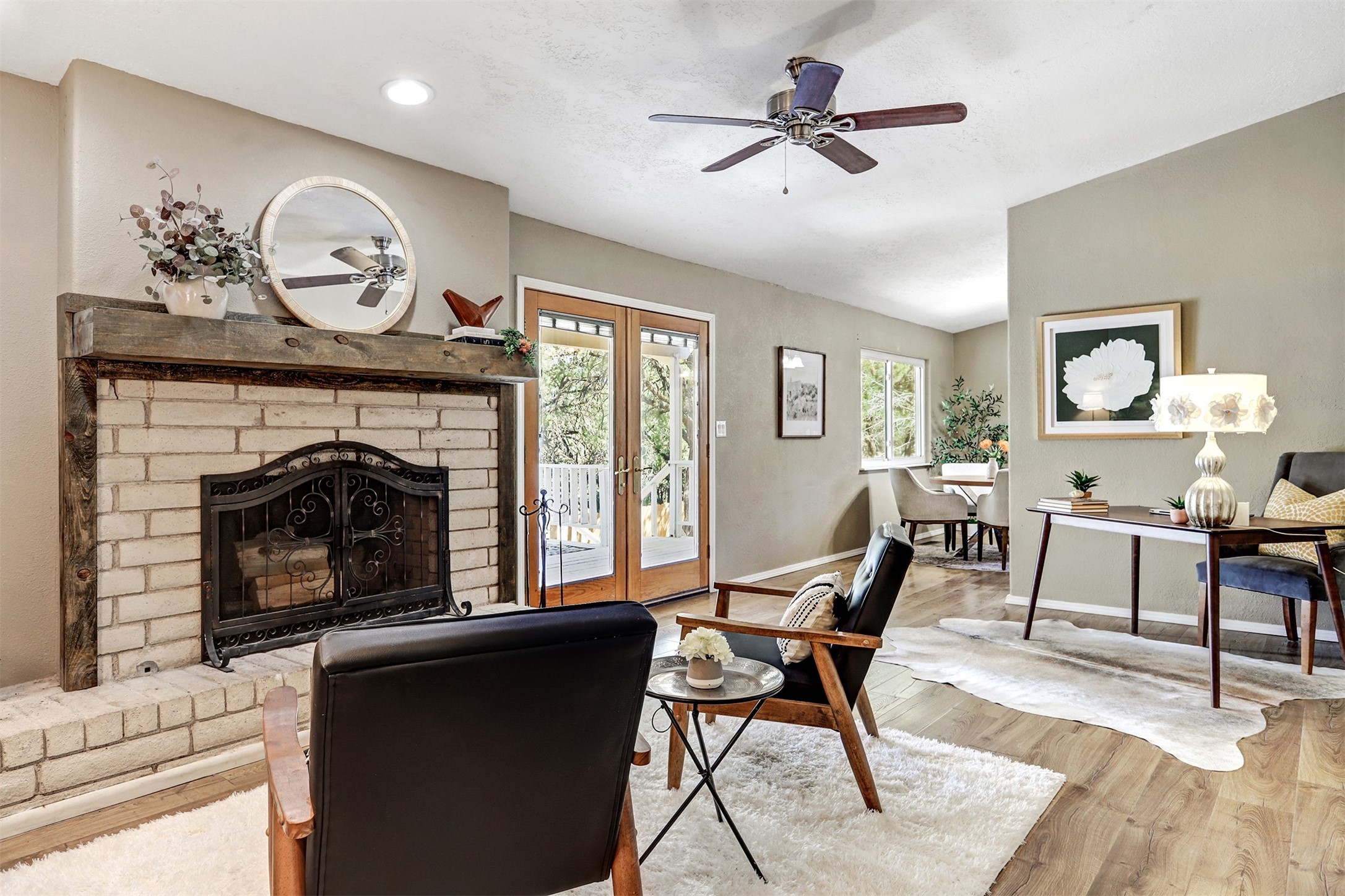 Welcome to 108 La Vista Dr, a beautifully maintained 3-bedroom, 2-bathroom home that blends classic charm with modern updates. Offering 1,878 square feet of living space on an expansive one-third-acre lot, this property provides both comfort and room to grow. The front yard features low-maintenance xeriscaping, while a charming enclosed courtyard offers a private retreat or a convenient spot to keep toys out of sight. Inside, the bright and inviting living room is filled with natural light. The open kitchen boasts updated countertops, contemporary fixtures, and ample cabinetry ideal for both everyday living and entertaining. A second living area adds flexibility to the layout, perfect for relaxing by the fireplace or hosting guests. French doors lead to a spacious deck that overlooks the large backyard, offering the perfect setting for summer grilling, relaxing evenings, and outdoor gatherings. The primary suite includes a generous walk-in closet and an en-suite bathroom with a soaking tub. Two additional bedrooms and a well-appointed guest bathroom provide comfortable accommodations for family or visitors. A separate laundry room adds convenience, and a drop zone off the garage entry. Additional highlights include central air conditioning and a durable, low-maintenance metal roof. Thoughtfully cared for and move-in ready, this home is prepared for its next chapter. Schedule your private tour today.