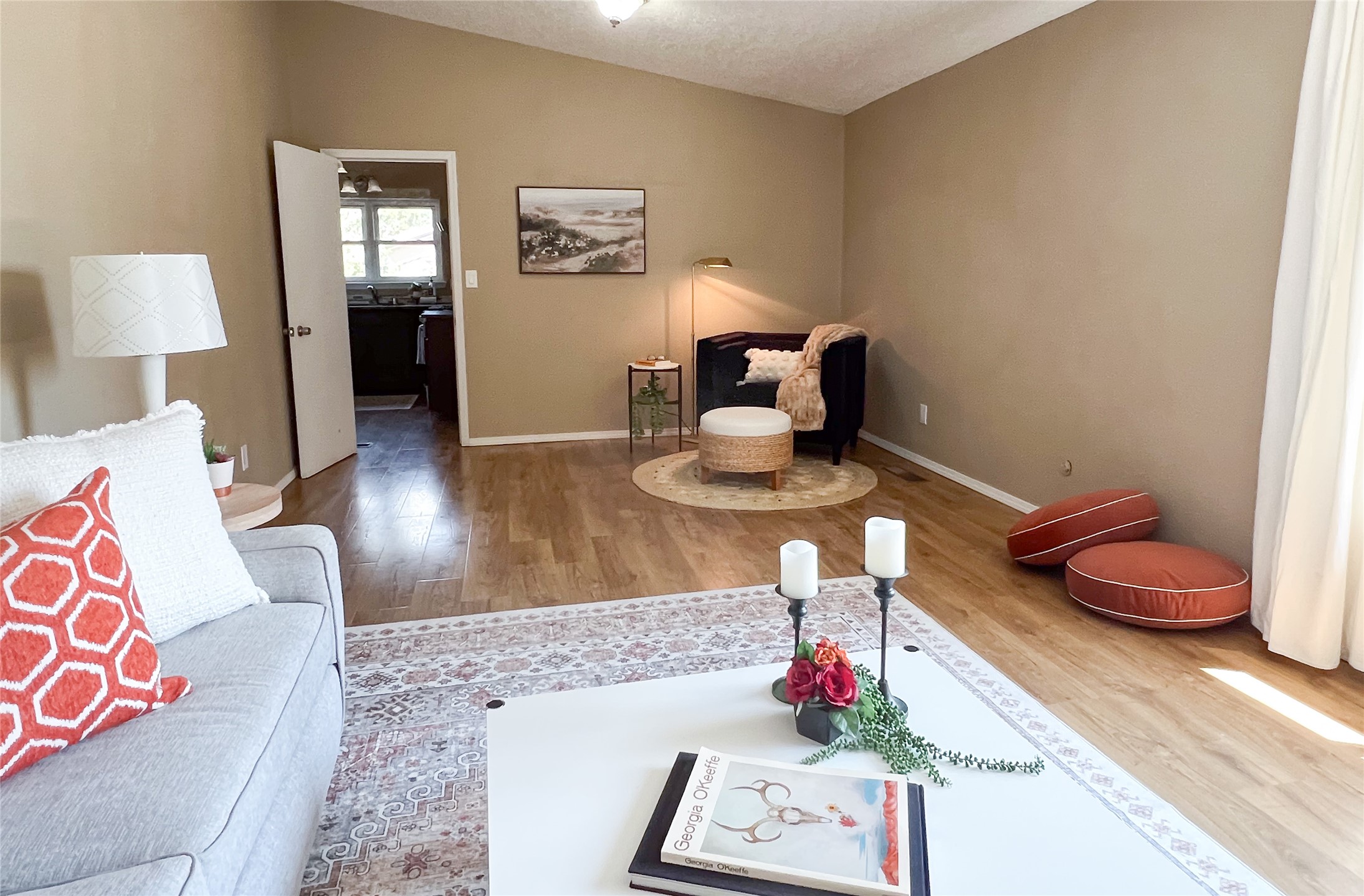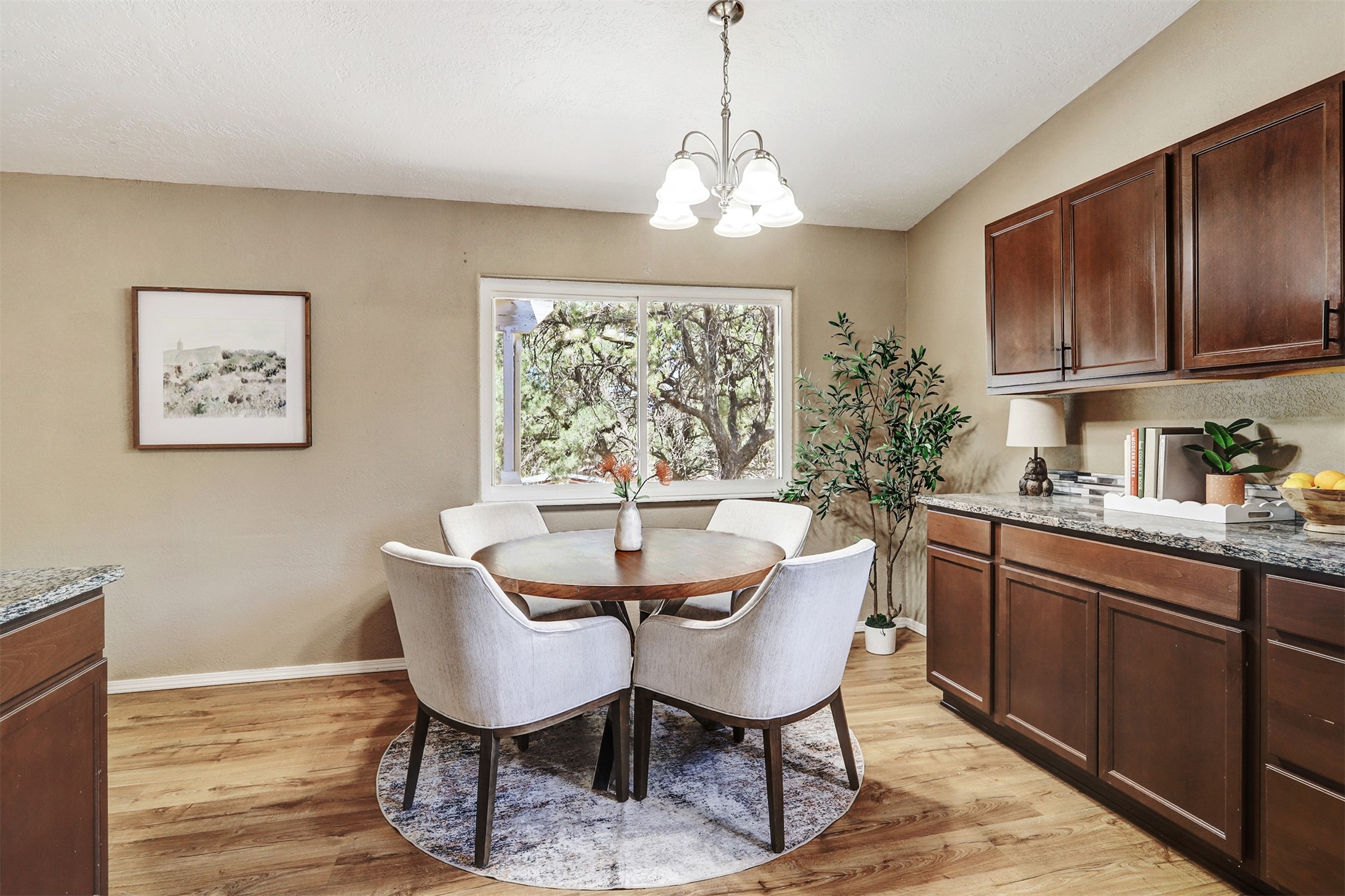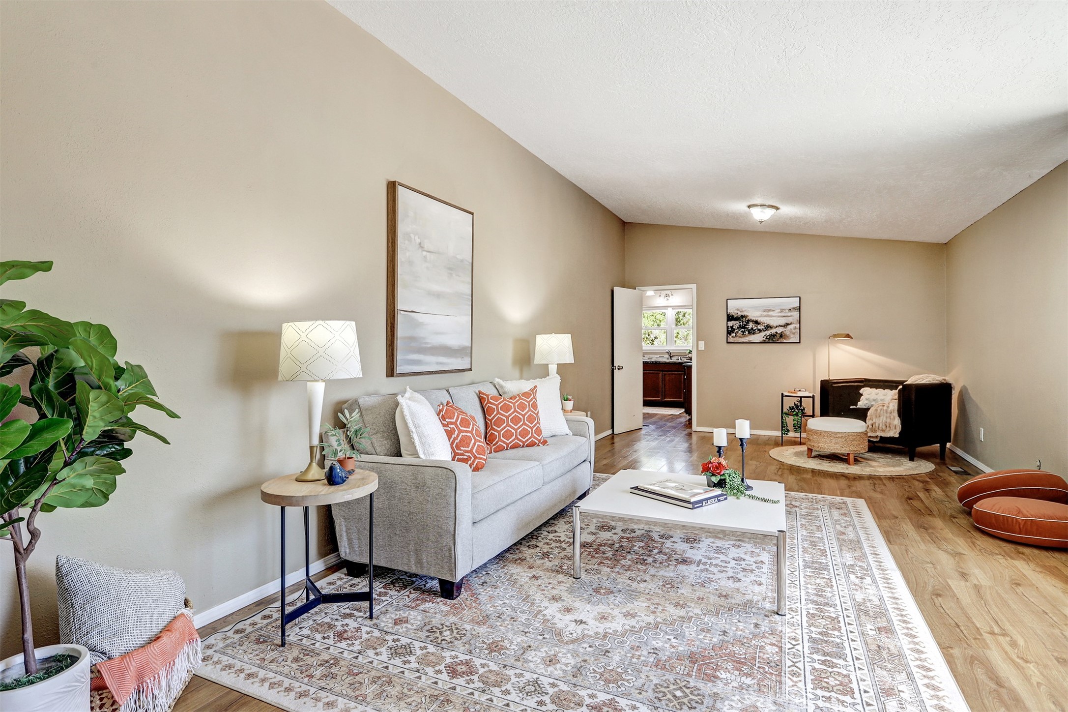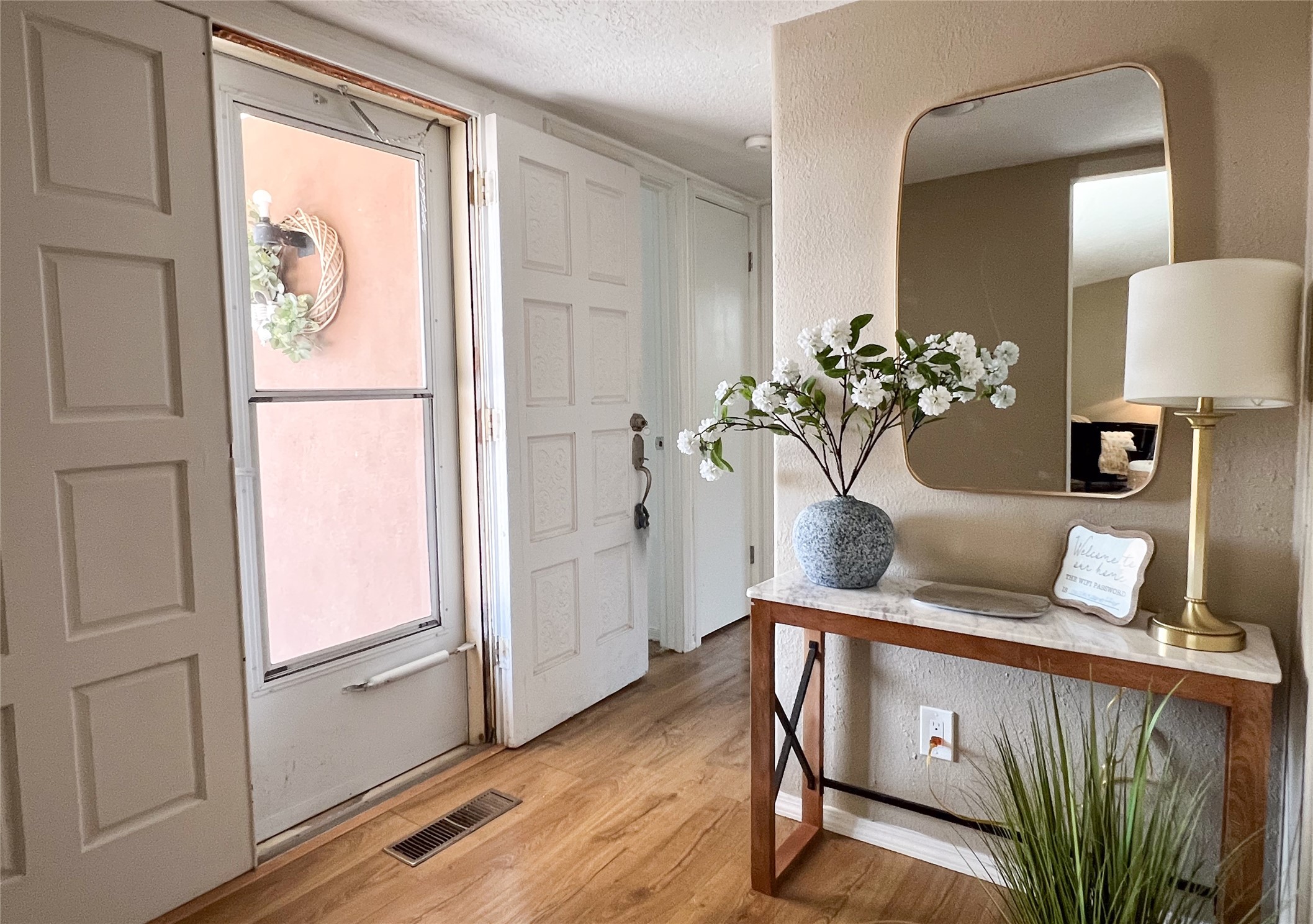 Welcome to 108 La Vista Dr, a beautifully maintained 3-bedroom, 2-bathroom home that blends classic charm with modern updates. Offering 1,878 square feet of living space on an expansive one-third-acre lot, this property provides both comfort and room to grow. The front yard features low-maintenance xeriscaping, while a charming enclosed courtyard offers a private retreat or a convenient spot to keep toys out of sight. Inside, the bright and inviting living room is filled with natural light. The open kitchen boasts updated countertops, contemporary fixtures, and ample cabinetry ideal for both everyday living and entertaining. A second living area adds flexibility to the layout, perfect for relaxing by the fireplace or hosting guests. French doors lead to a spacious deck that overlooks the large backyard, offering the perfect setting for summer grilling, relaxing evenings, and outdoor gatherings. The primary suite includes a generous walk-in closet and an en-suite bathroom with a soaking tub. Two additional bedrooms and a well-appointed guest bathroom provide comfortable accommodations for family or visitors. A separate laundry room adds convenience, and a drop zone off the garage entry. Additional highlights include central air conditioning and a durable, low-maintenance metal roof. Thoughtfully cared for and move-in ready, this home is prepared for its next chapter. Schedule your private tour today.