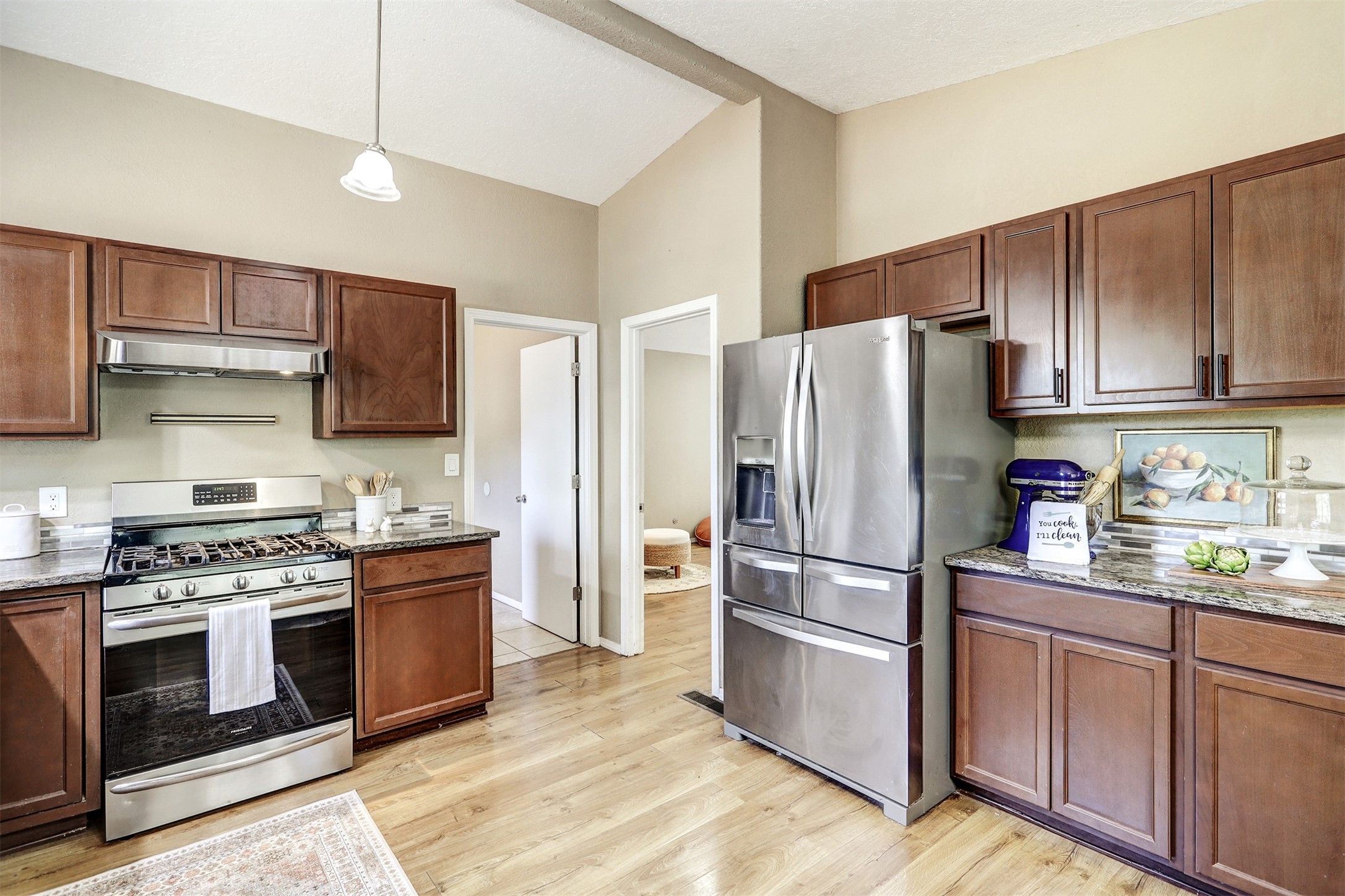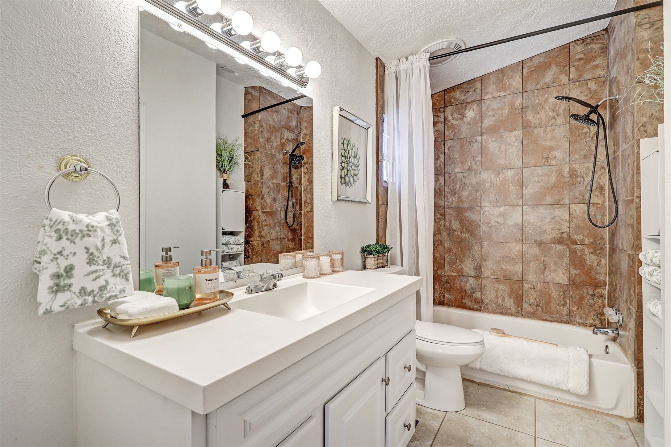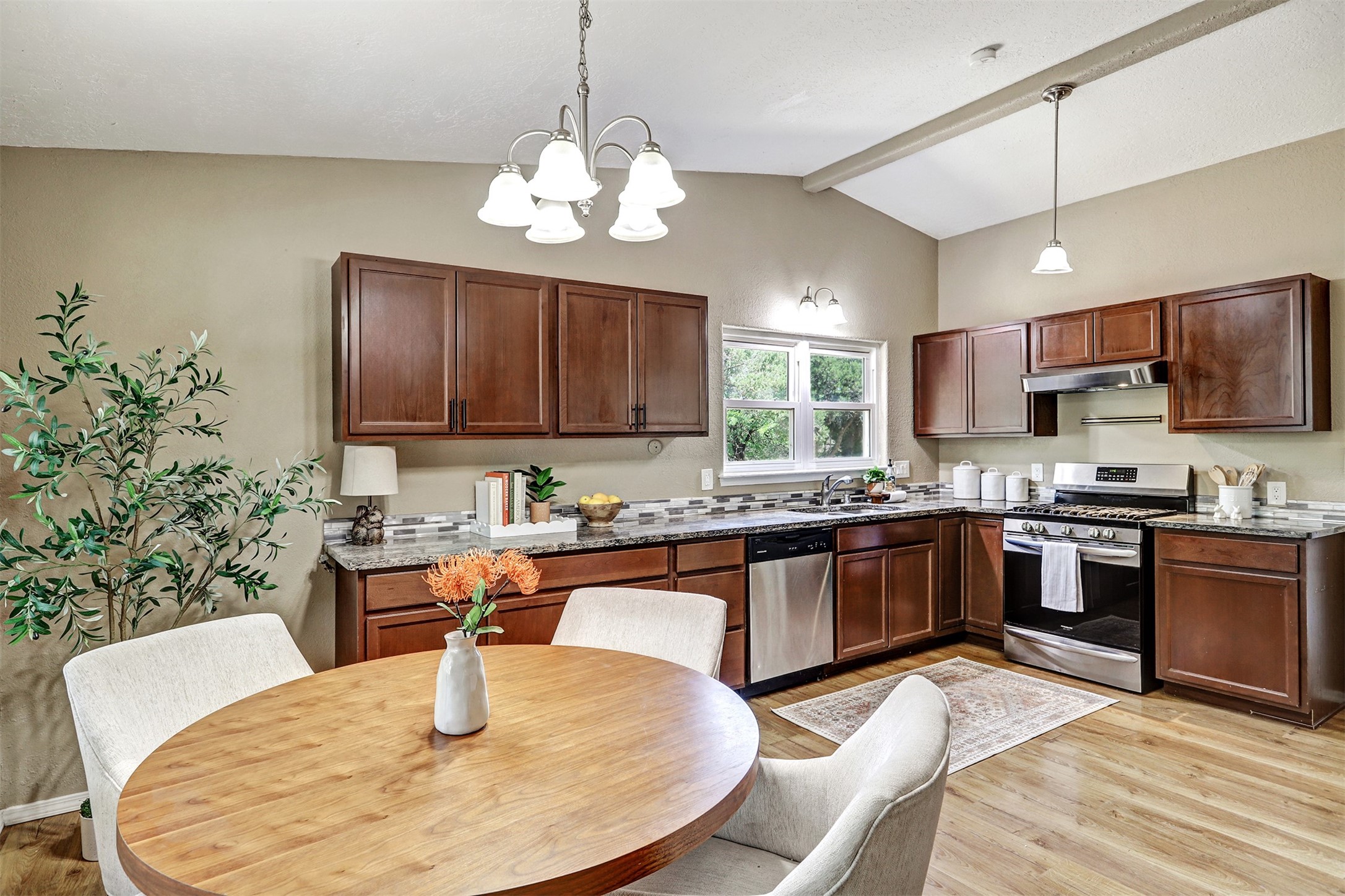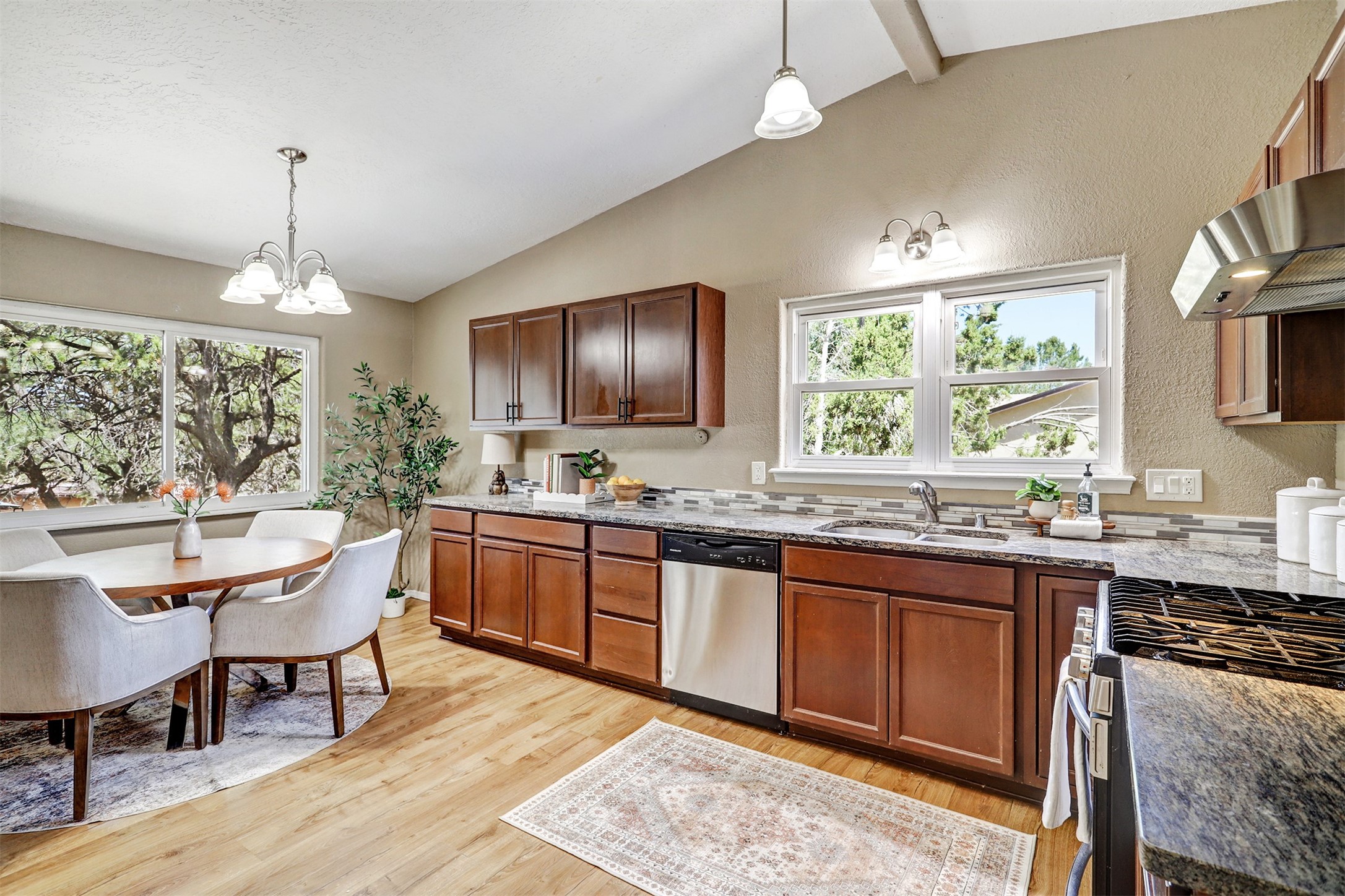 Welcome to 108 La Vista Dr, a beautifully maintained 3-bedroom, 2-bathroom home that blends classic charm with modern updates. Offering 1,878 square feet of living space on an expansive one-third-acre lot, this property provides both comfort and room to grow. The front yard features low-maintenance xeriscaping, while a charming enclosed courtyard offers a private retreat or a convenient spot to keep toys out of sight. Inside, the bright and inviting living room is filled with natural light. The open kitchen boasts updated countertops, contemporary fixtures, and ample cabinetry ideal for both everyday living and entertaining. A second living area adds flexibility to the layout, perfect for relaxing by the fireplace or hosting guests. French doors lead to a spacious deck that overlooks the large backyard, offering the perfect setting for summer grilling, relaxing evenings, and outdoor gatherings. The primary suite includes a generous walk-in closet and an en-suite bathroom with a soaking tub. Two additional bedrooms and a well-appointed guest bathroom provide comfortable accommodations for family or visitors. A separate laundry room adds convenience, and a drop zone off the garage entry. Additional highlights include central air conditioning and a durable, low-maintenance metal roof. Thoughtfully cared for and move-in ready, this home is prepared for its next chapter. Schedule your private tour today.