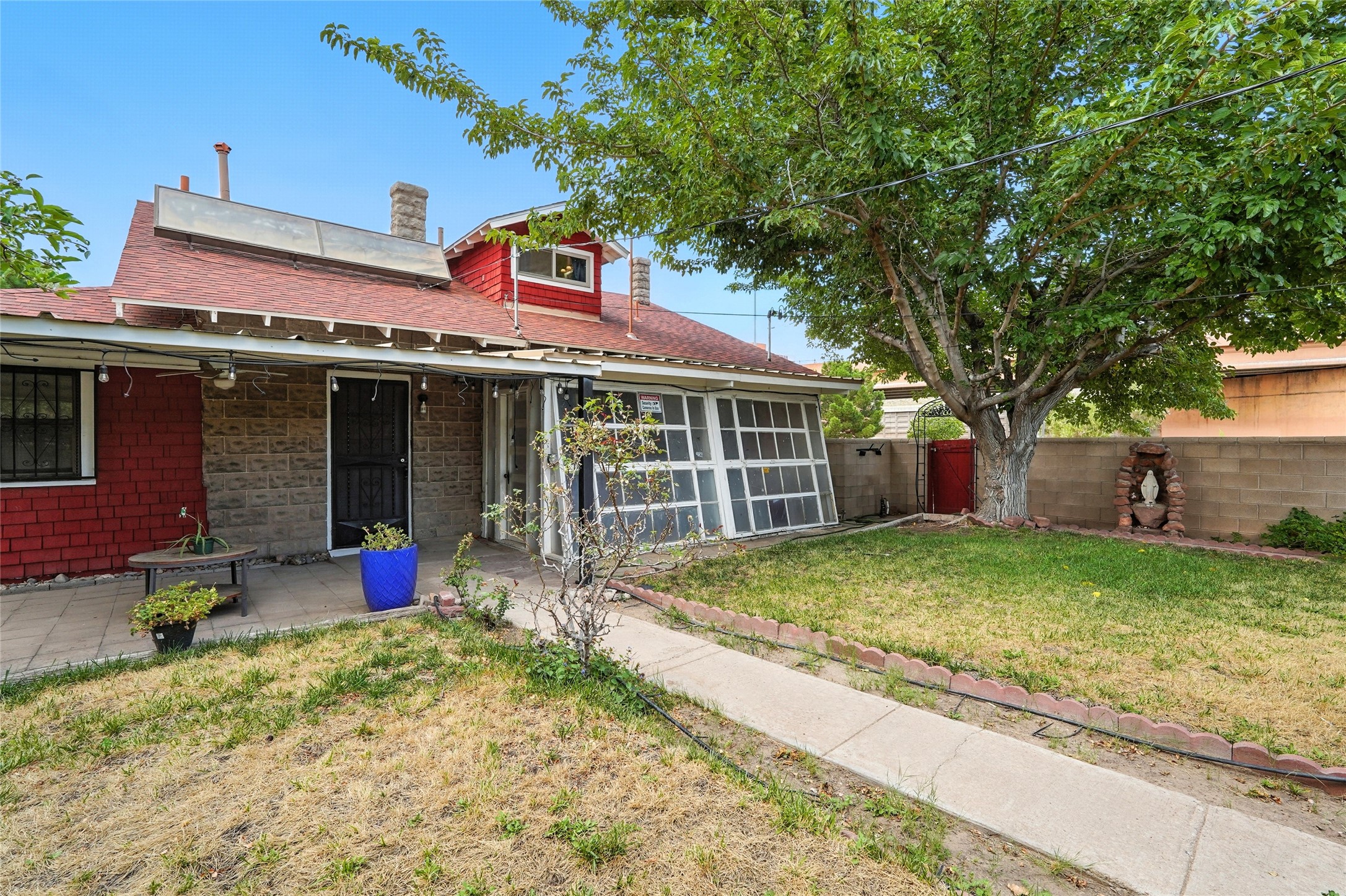 Seller to offer up to $10,000 towards buyers closing costs or interest rate buy down, REC with 20% down Discover the soul of historic Albuquerque in this captivating Huning Highlands 2 story bungalow! This 4 bedroom gem radiates timeless style and character, from its gorgeous original hardwood floors and crown molding to the stunning natural stone facade. Gather around the cozy fireplace or retreat to the beautifully updated kitchen, featuring sleek quartz countertops, a subway tile backsplash, and a charming breakfast nook. Step into a private paradise in the lush backyard, a verdant haven brimming with vibrant flower gardens, fragrant rose bushes, and towering trees--an entertainer's dream! The home also boasts an updated bathroom, a newer roof, and a huge laundry room with endless storage. An automatic gate leads to a two-car garage and carport. ...Plus, a fantastic basement offers.......even more possibilities. All this, perfectly situated across from Highland Park, with the city's best dining, shopping, and museums just moments away. This isn't just a house; it's a piece of history, reimagined.