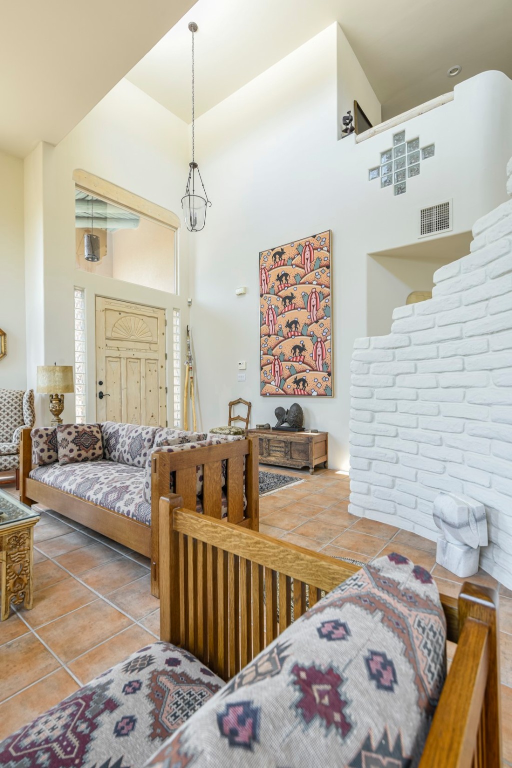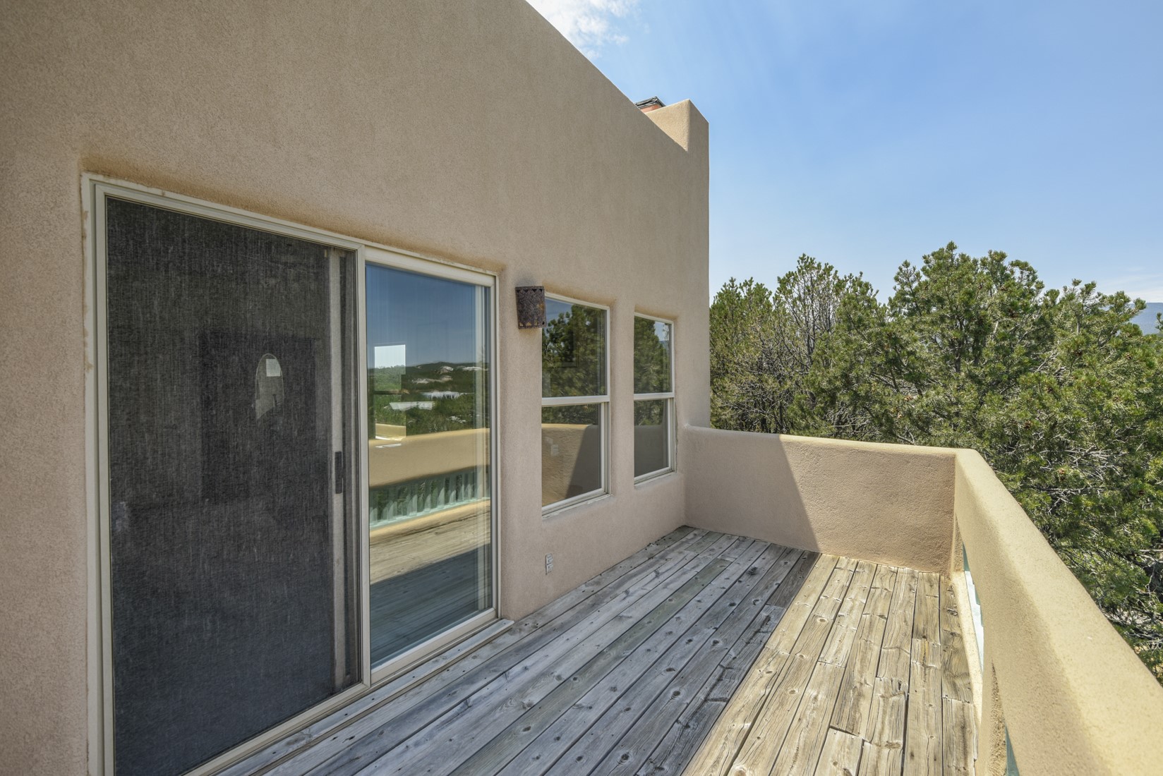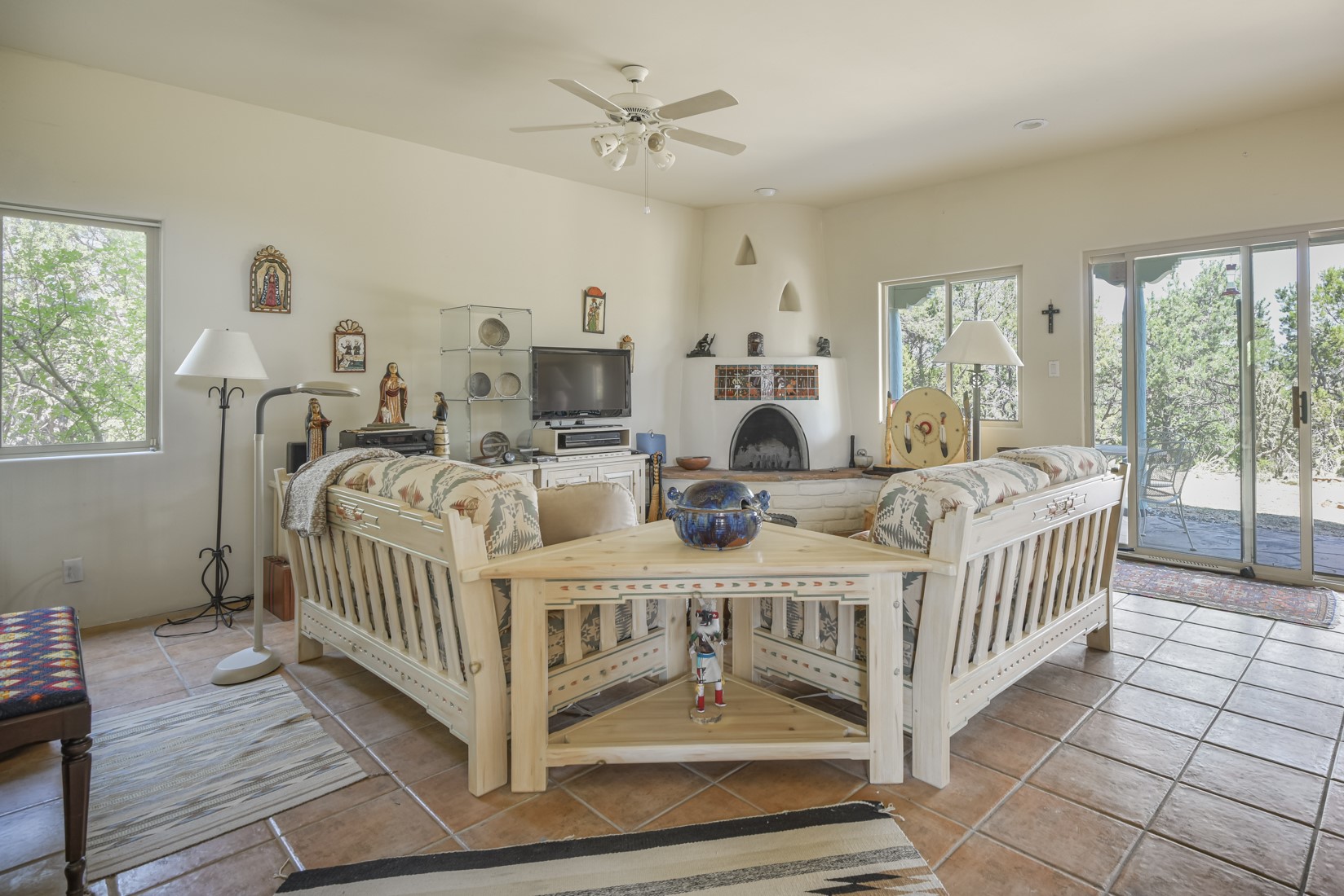 Welcome to this 1995 custom home by Elan Homes, designed and built for the original owner and rich with unique features. A grand Santa Fe Door welcomes you into a light-filled living space with a custom fireplace, exposed wood, and adobe accents. The open kitchen, breakfast area, and informal family room featuring a 2nd custom fireplace flow to a covered patio. A lower-level bedroom with a separate entrance and a close-by 3/4 bath offers flexibility. Upstairs includes a spacious main ensuite with panoramic views, two more bedrooms, a full bath, and two view decks. The 3-car garage includes an oversized bay with a raised door and ceiling for mid-size RV storage. A great Paa-Ko value and A must-see!