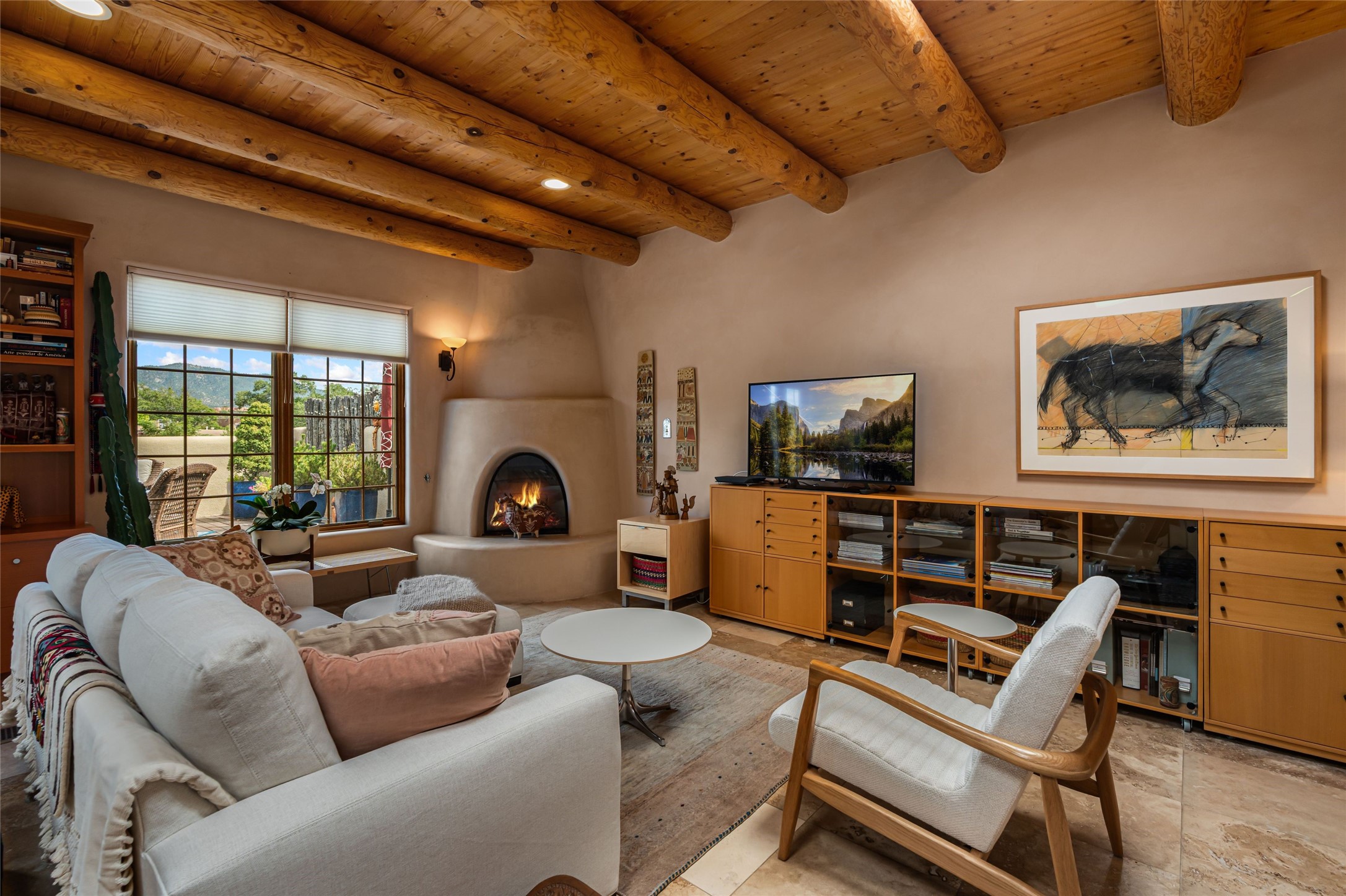 Step into this lovely two bed, three bath home in the highly coveted Rosario Hill Compound. Boasting a prime downtown location and a short walk to the Santa Fe Plaza, restaurants, retail shops and museums, inviting living spaces, indoors and out, and spectacular mountain views, this most-desirable home offers both privacy and charm and the ultimate in easy, low-maintenance and convenient living. Taking full advantage of the indoor/outdoor life loved by Santa Feans, this property has three outdoor areas perfect for dining, entertaining or just relaxing. The second level features an open concept, light-filled living and dining area with a kiva fireplace, opening onto a spacious deck offering beautiful mountain views; and a gourmet kitchen with stainless steel appliances and granite countertops, and leading to a private deck. The primary bedroom with ensuite bathroom and direct access to a private patio, a second bedroom and three-quarters bath are on the ground level. This unit also enjoys three parking spaces - a single car garage, a dedicated carport space and designated guest space. The Compound's grounds and exteriors are beautifully maintained and owners enjoy the benefit of having a property manager living on-site. Do not miss this downtown gem, offering the best of Santa Fe living!